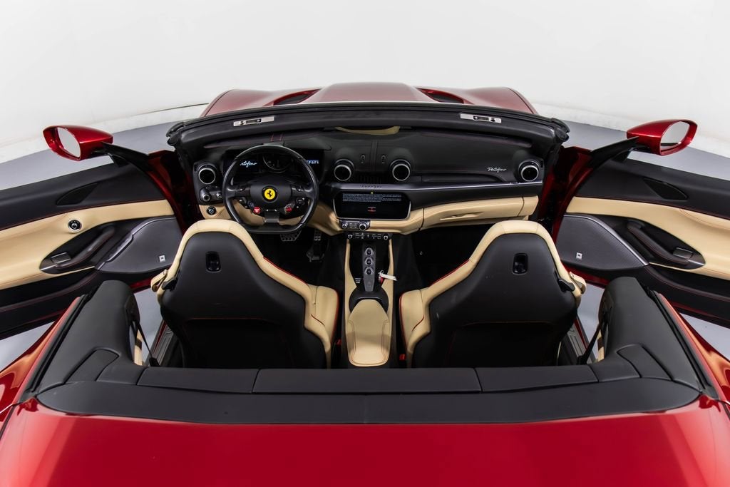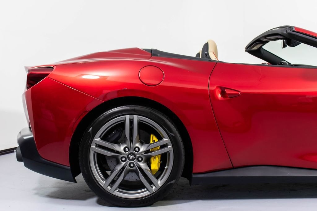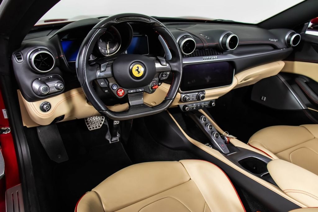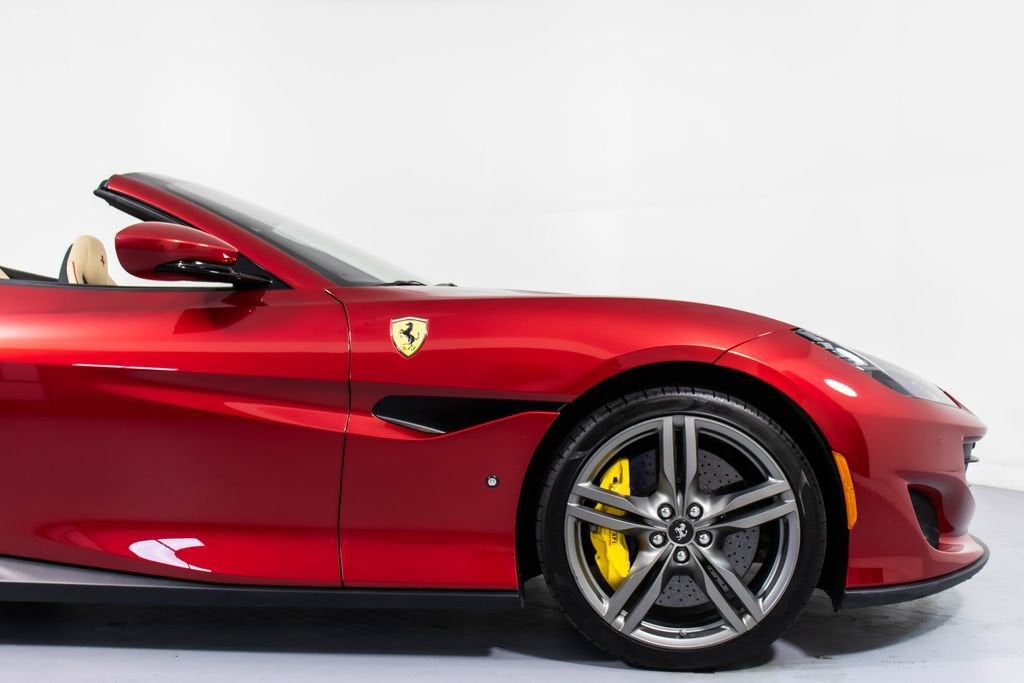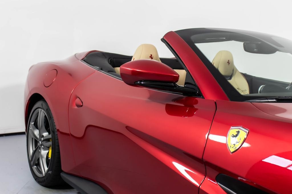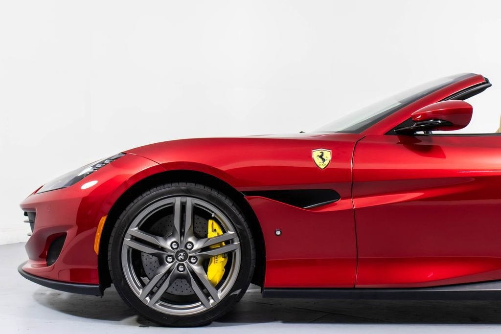 247139 Exterior: Rosso Portofino Interior: Sabbia Mats: Nero 2019 Ferrari Portofino Options: Yellow Brake Calipers Carbon Fiber Hub Caps Cavallino Stitched on Headrest in Rosso Black Tailpipe Tips High Emotion Low Emission Carb. Fib. Steering Wheel + LEDS 'Scuderia Ferrari' Shields Magneride Dual Mode Suspension Parking Camera Color Upon Request for Piping in Rosso Ferrari Special Colors in Rosso Portofino 20 Forged Dark Painted Rims Full Electric Seats High Power Hi-Fi System Colored Special Stitching O.R. in Rosso This 2019 Ferrari Portofino is a striking grand touring convertible finished in the rich and sophisticated Rosso Portofino over a beautifully contrasting Sabbia leather interior with Nero mats. Yellow brake calipers and 20-inch forged dark painted rims give the car a bold, athletic stance, while carbon fiber hub caps and a carbon fiber steering wheel with integrated LEDs reinforce its performance-focused DNA. Inside, Rosso Ferrari piping, Rosso contrast stitching, and a Rosso-stitched Cavallino on the headrests add bespoke detailing that complements the exterior perfectly. Equipped with Magneride dual-mode suspension, a parking camera, full electric seats, and a high-power Hi-Fi system, this Portofino seamlessly blends everyday comfort with thrilling twin-turbo V8 performance. Finished with Scuderia Ferrari shields and black tailpipe tips, this beautifully optioned example captures the essence of open-air Italian elegance and dynamic driving excitement.
