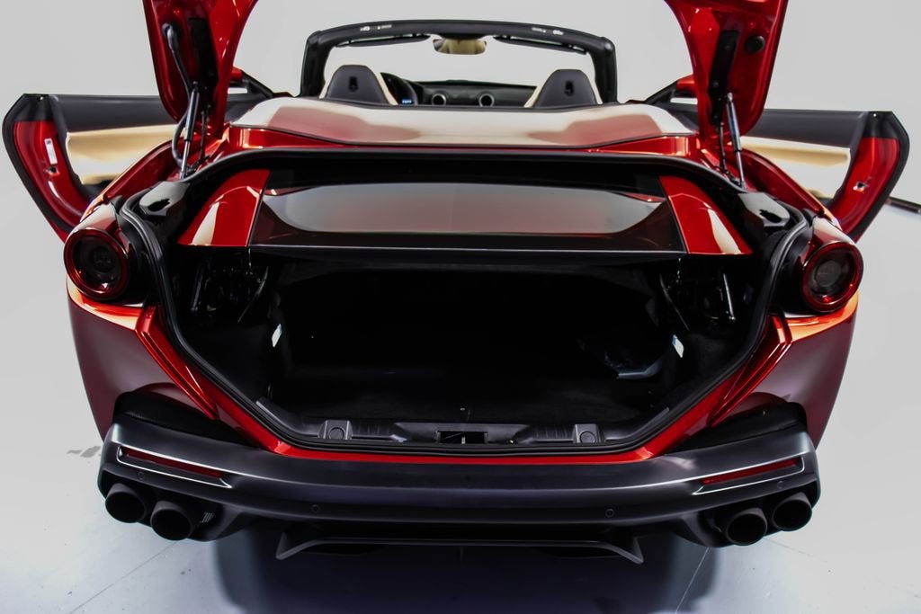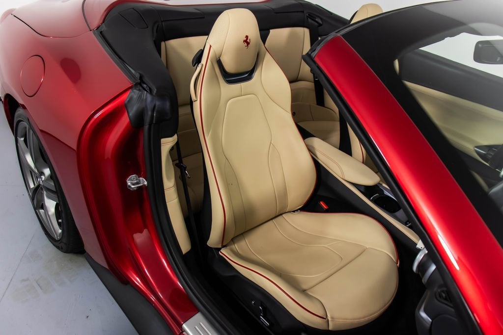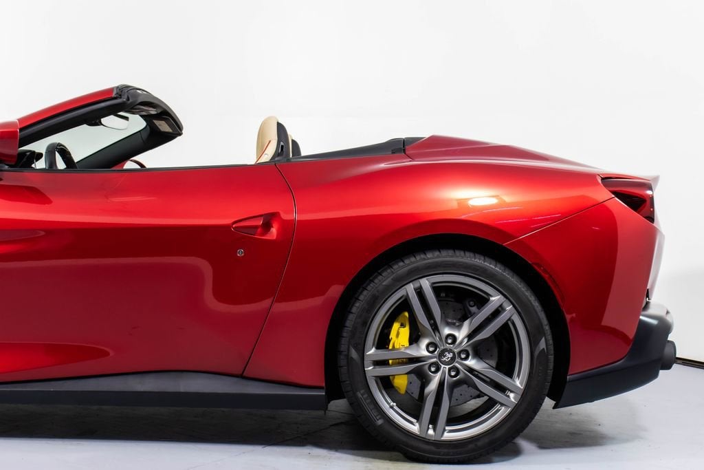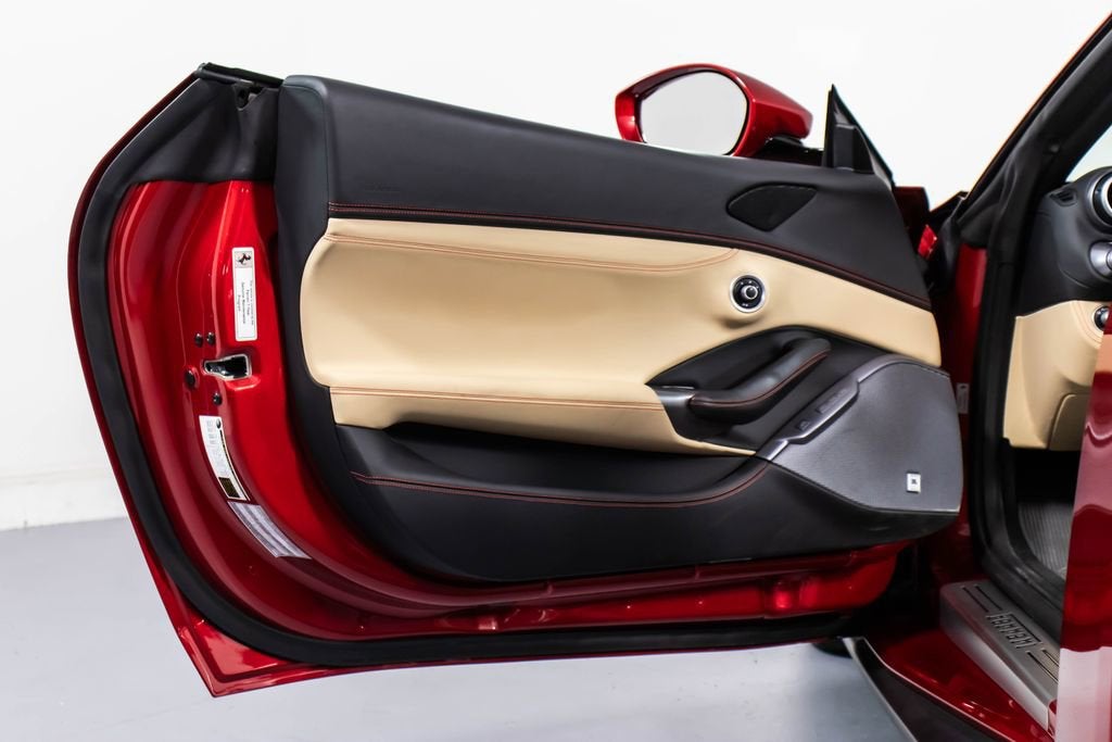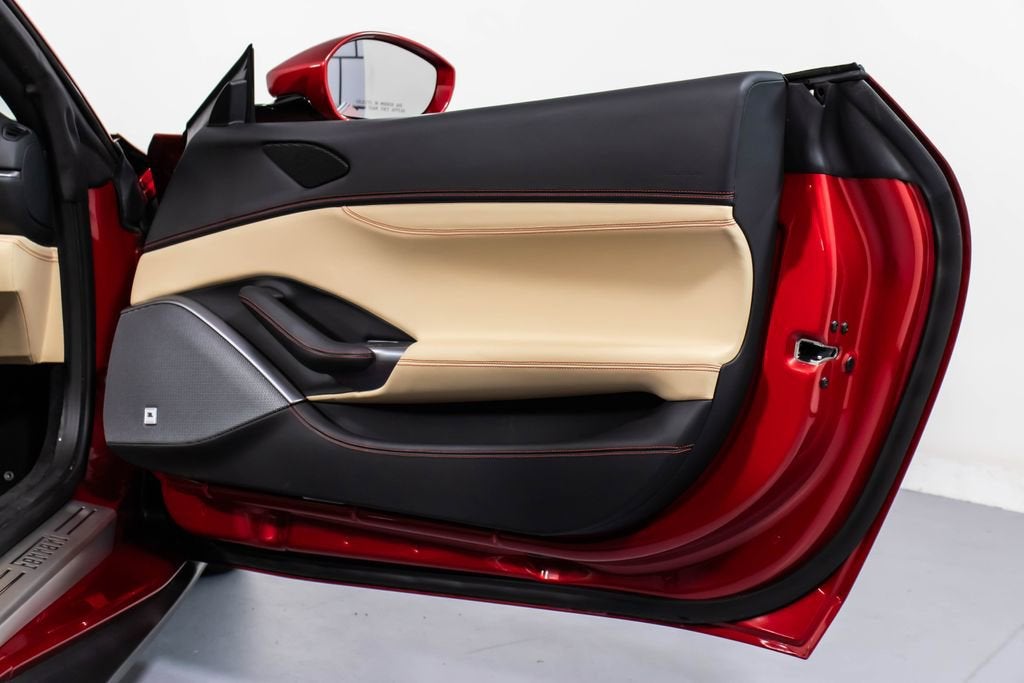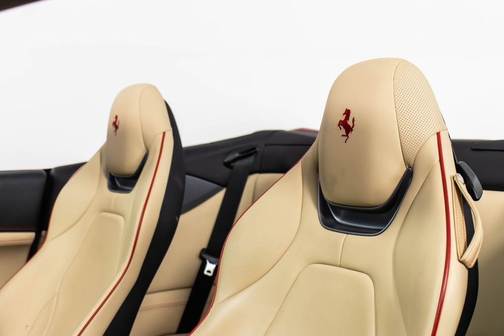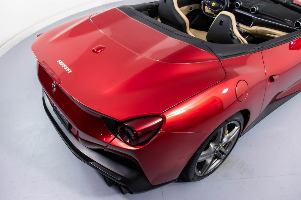 247139 Exterior: Rosso Portofino Interior: Sabbia Mats: Nero 2019 Ferrari Portofino Options: Yellow Brake Calipers Carbon Fiber Hub Caps Cavallino Stitched on Headrest in Rosso Black Tailpipe Tips High Emotion Low Emission Carb. Fib. Steering Wheel + LEDS 'Scuderia Ferrari' Shields Magneride Dual Mode Suspension Parking Camera Color Upon Request for Piping in Rosso Ferrari Special Colors in Rosso Portofino 20 Forged Dark Painted Rims Full Electric Seats High Power Hi-Fi System Colored Special Stitching O.R. in Rosso This 2019 Ferrari Portofino is a striking grand touring convertible finished in the rich and sophisticated Rosso Portofino over a beautifully contrasting Sabbia leather interior with Nero mats. Yellow brake calipers and 20-inch forged dark painted rims give the car a bold, athletic stance, while carbon fiber hub caps and a carbon fiber steering wheel with integrated LEDs reinforce its performance-focused DNA. Inside, Rosso Ferrari piping, Rosso contrast stitching, and a Rosso-stitched Cavallino on the headrests add bespoke detailing that complements the exterior perfectly. Equipped with Magneride dual-mode suspension, a parking camera, full electric seats, and a high-power Hi-Fi system, this Portofino seamlessly blends everyday comfort with thrilling twin-turbo V8 performance. Finished with Scuderia Ferrari shields and black tailpipe tips, this beautifully optioned example captures the essence of open-air Italian elegance and dynamic driving excitement.