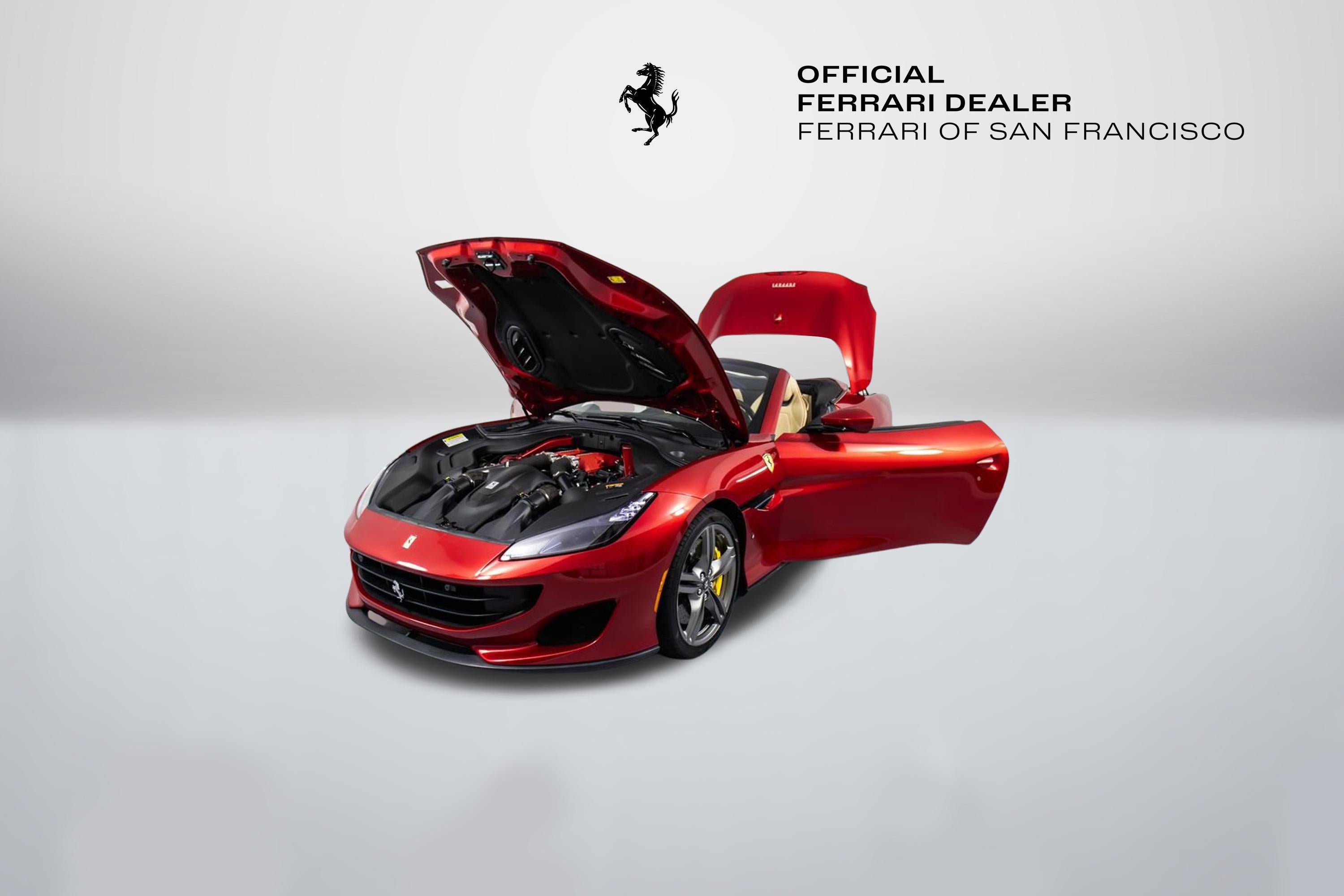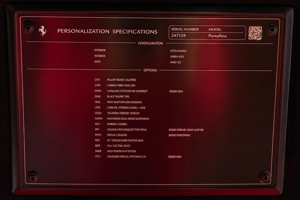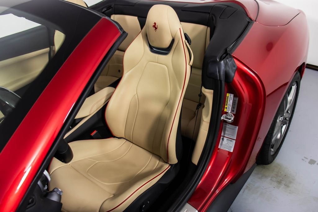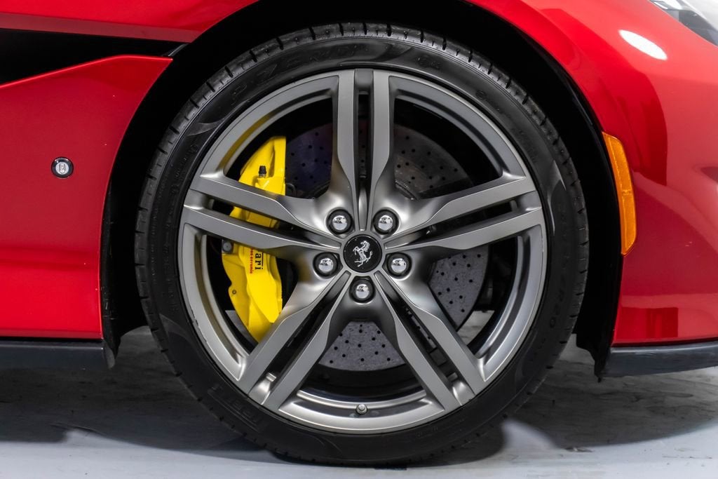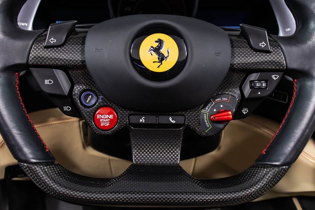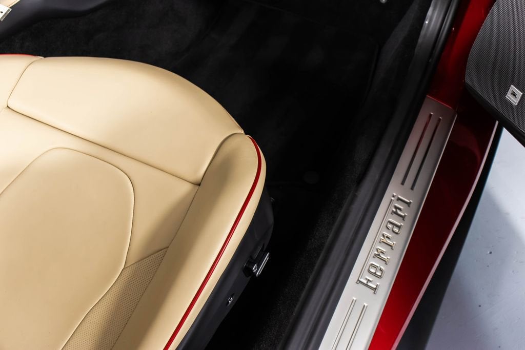 247139 Exterior: Rosso Portofino Interior: Sabbia Mats: Nero 2019 Ferrari Portofino Options: Yellow Brake Calipers Carbon Fiber Hub Caps Cavallino Stitched on Headrest in Rosso Black Tailpipe Tips High Emotion Low Emission Carb. Fib. Steering Wheel + LEDS 'Scuderia Ferrari' Shields Magneride Dual Mode Suspension Parking Camera Color Upon Request for Piping in Rosso Ferrari Special Colors in Rosso Portofino 20 Forged Dark Painted Rims Full Electric Seats High Power Hi-Fi System Colored Special Stitching O.R. in Rosso This 2019 Ferrari Portofino is a striking grand touring convertible finished in the rich and sophisticated Rosso Portofino over a beautifully contrasting Sabbia leather interior with Nero mats. Yellow brake calipers and 20-inch forged dark painted rims give the car a bold, athletic stance, while carbon fiber hub caps and a carbon fiber steering wheel with integrated LEDs reinforce its performance-focused DNA. Inside, Rosso Ferrari piping, Rosso contrast stitching, and a Rosso-stitched Cavallino on the headrests add bespoke detailing that complements the exterior perfectly. Equipped with Magneride dual-mode suspension, a parking camera, full electric seats, and a high-power Hi-Fi system, this Portofino seamlessly blends everyday comfort with thrilling twin-turbo V8 performance. Finished with Scuderia Ferrari shields and black tailpipe tips, this beautifully optioned example captures the essence of open-air Italian elegance and dynamic driving excitement.