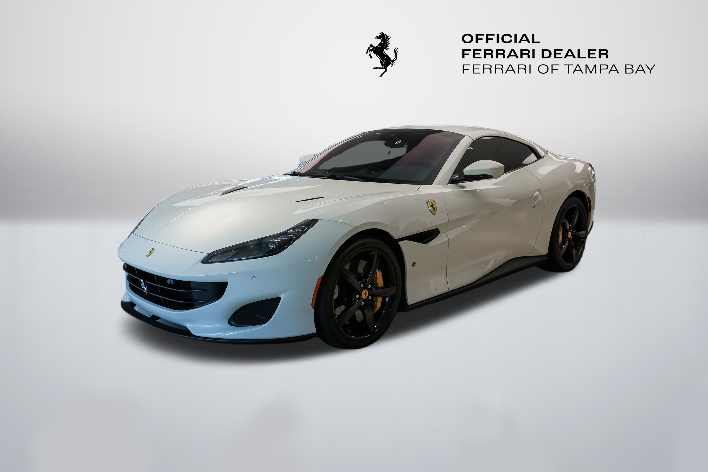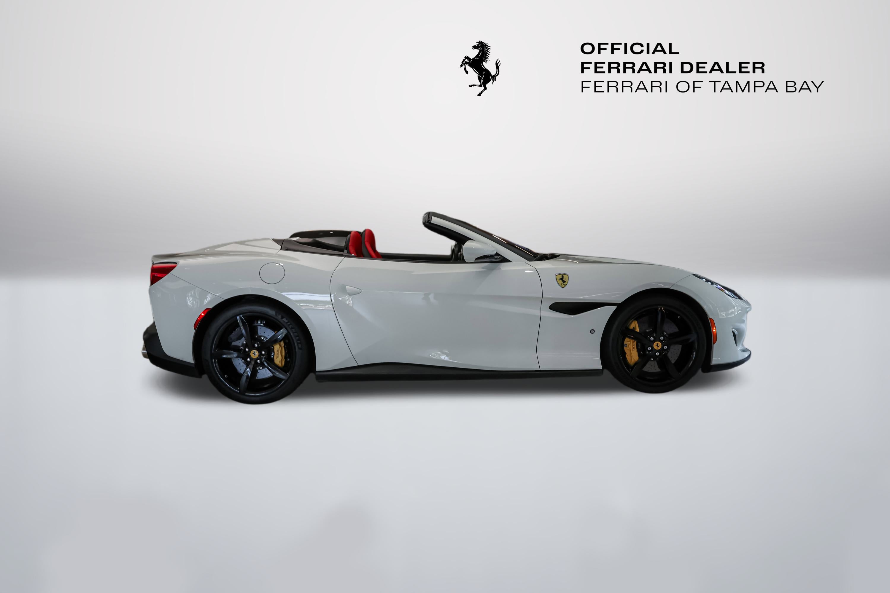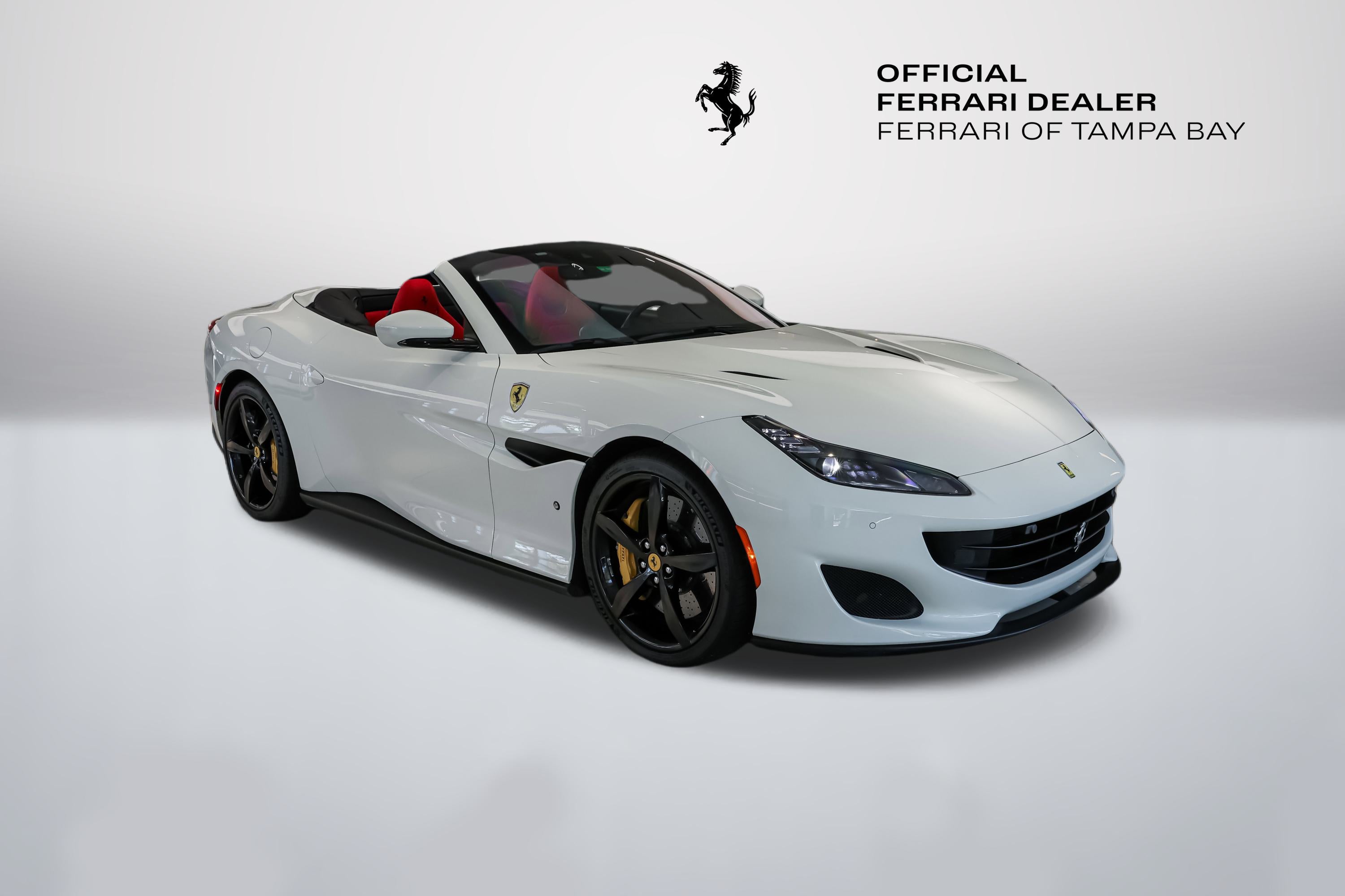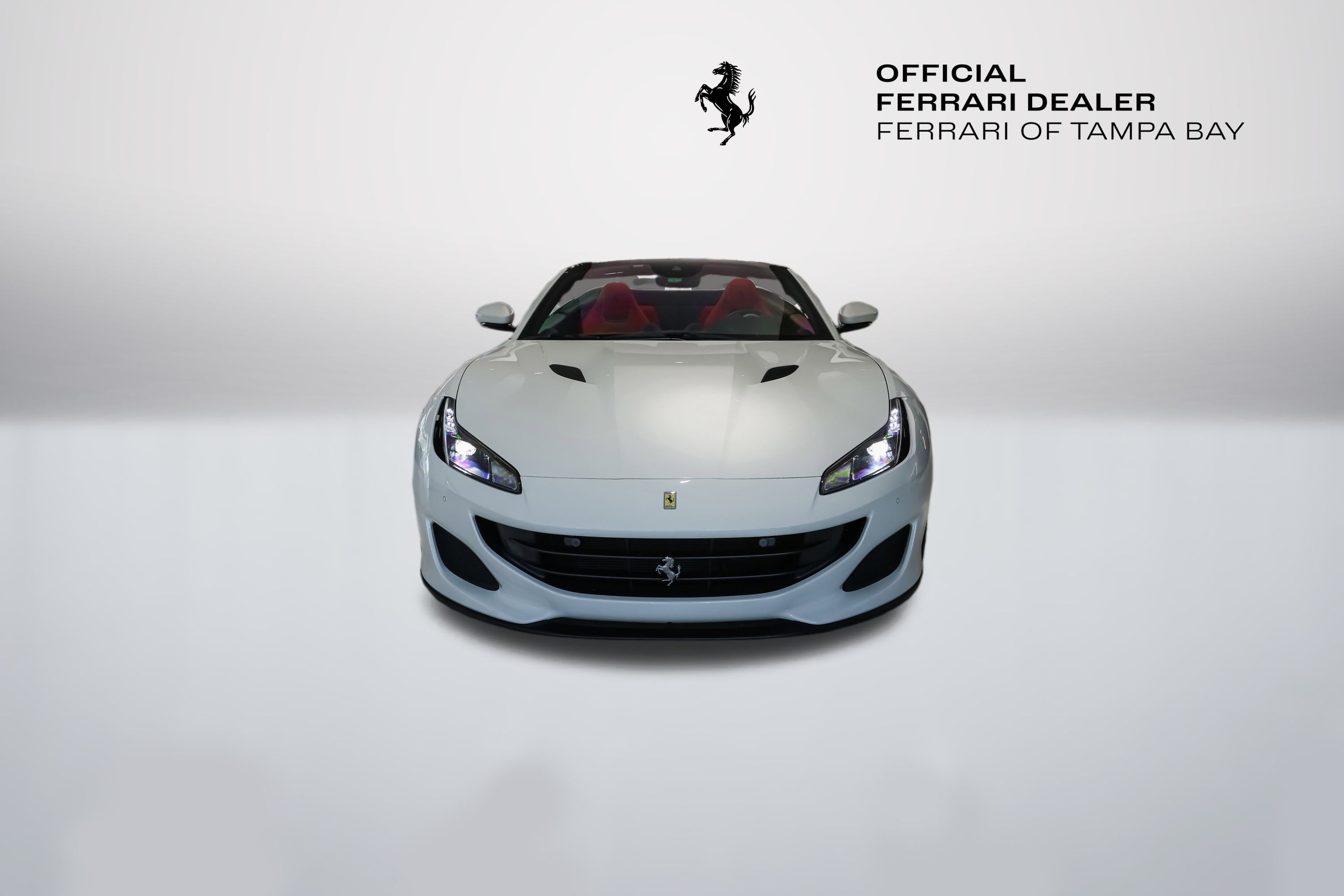 2020 Ferrari Portofino RHT Convertible available at Ferrari of Tampa Bay.  Finished in Bianco Avus (White) with Rosso Ferrari (Red) Interior.  Options include the following:  Yellow Brake Calipers, Scuderia Ferrari Shields, Parking Camera, Nero (Black) and Rosso Extracampionario Stitching, Ventilated Full-Electric Seats, Foldable Rear Seat Backrest, Advanced Front Driving Camera, Yellow Rev (Tachometer) Face Dial, and Cavallino Horse Stitched upon the Headrests in Nero.