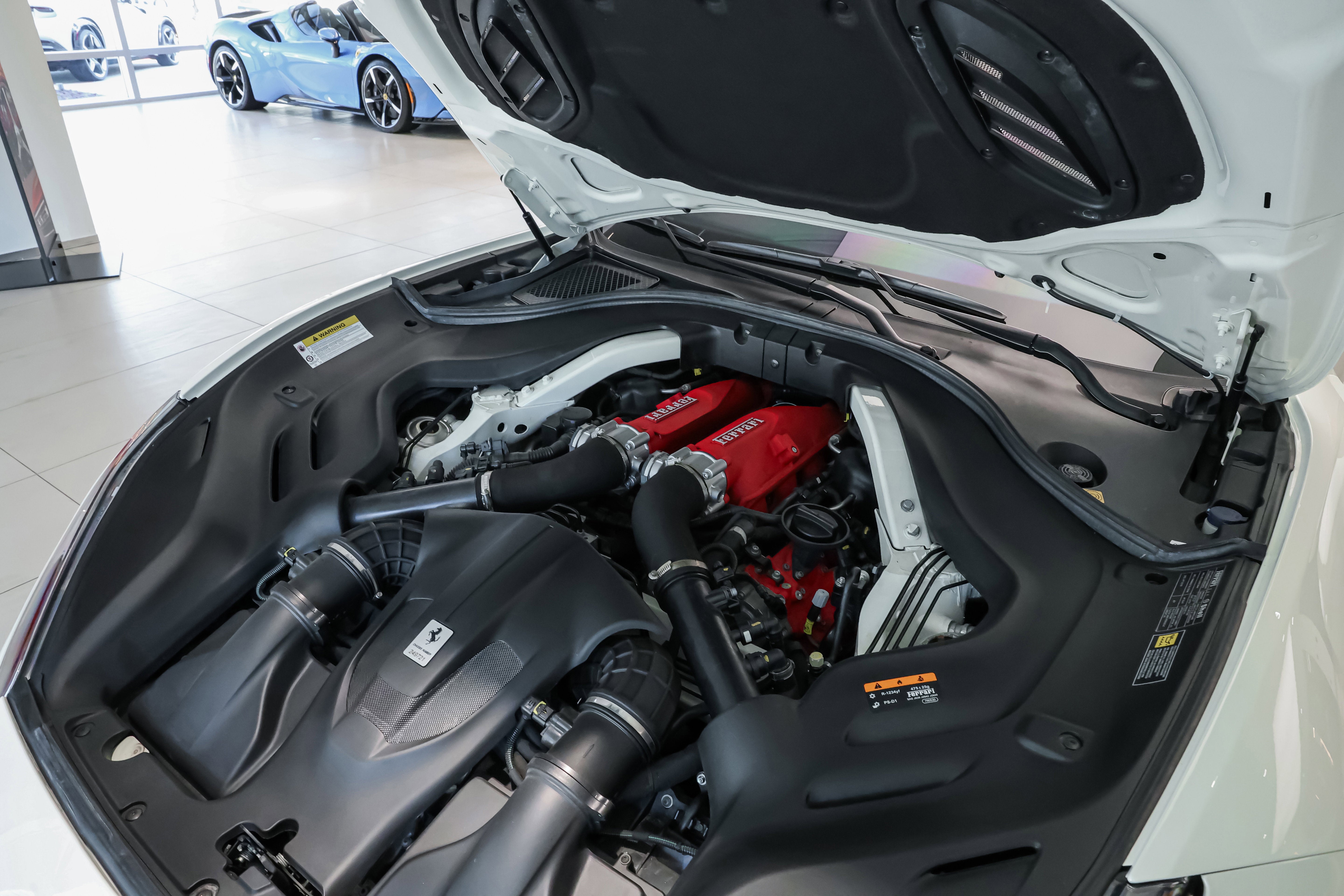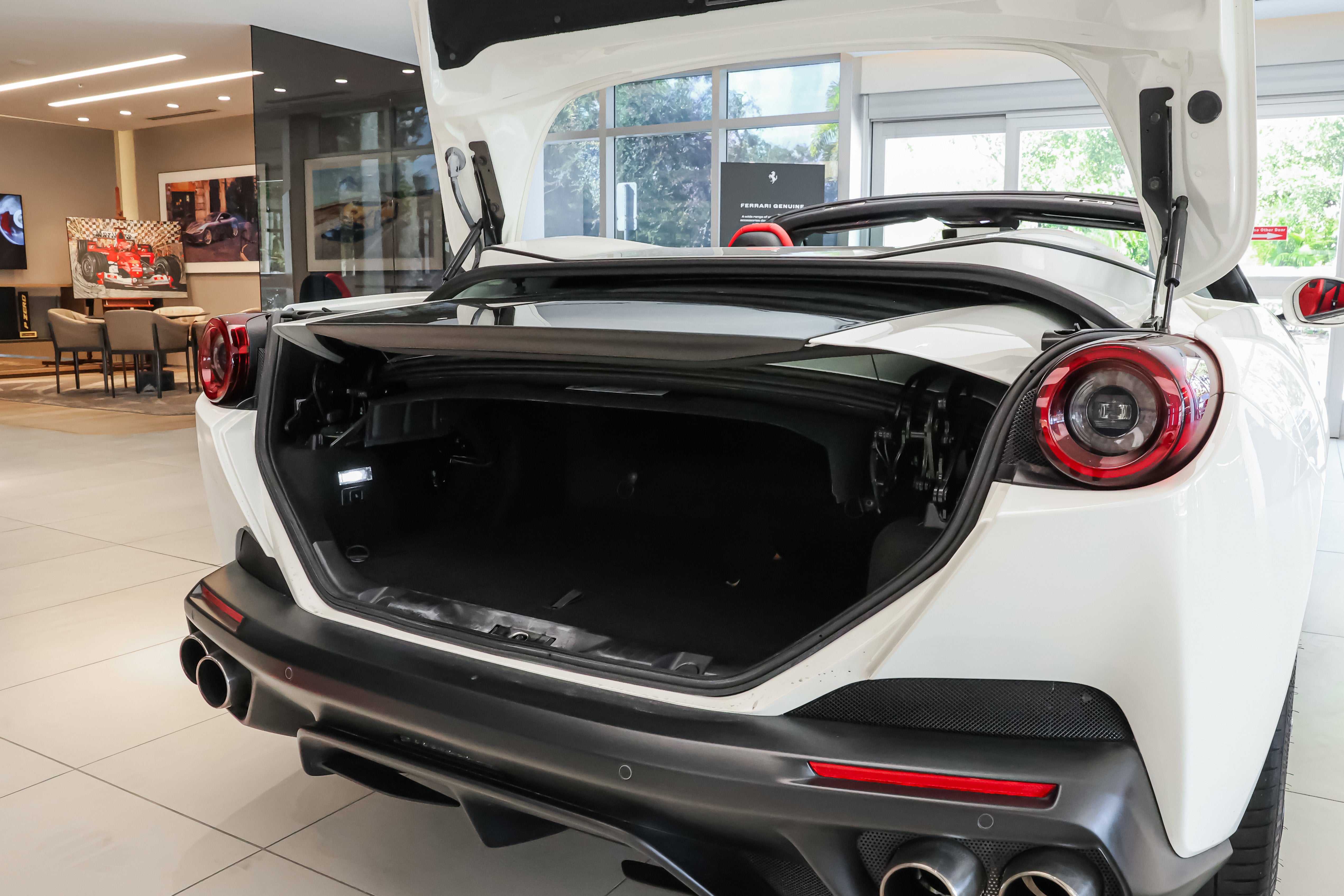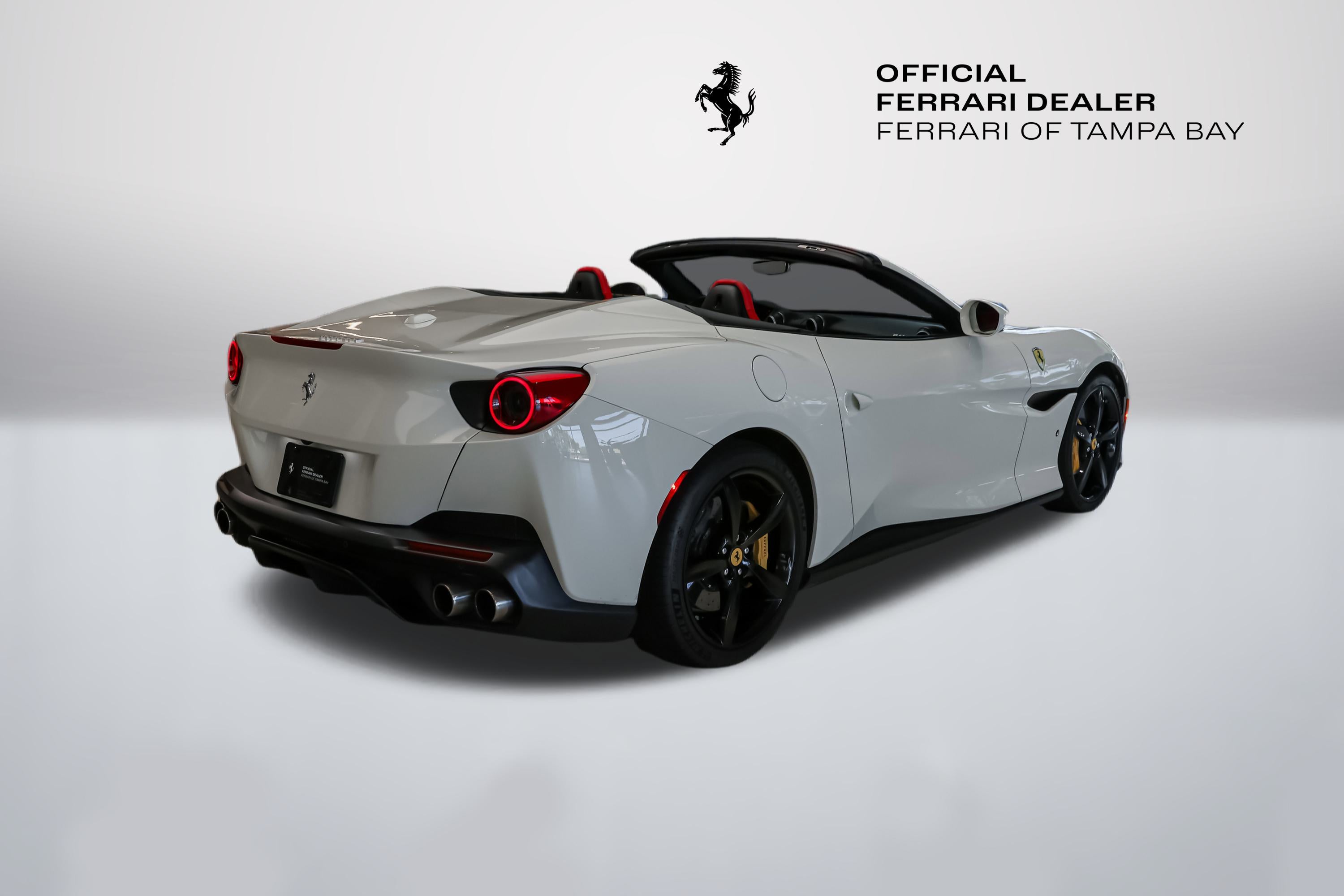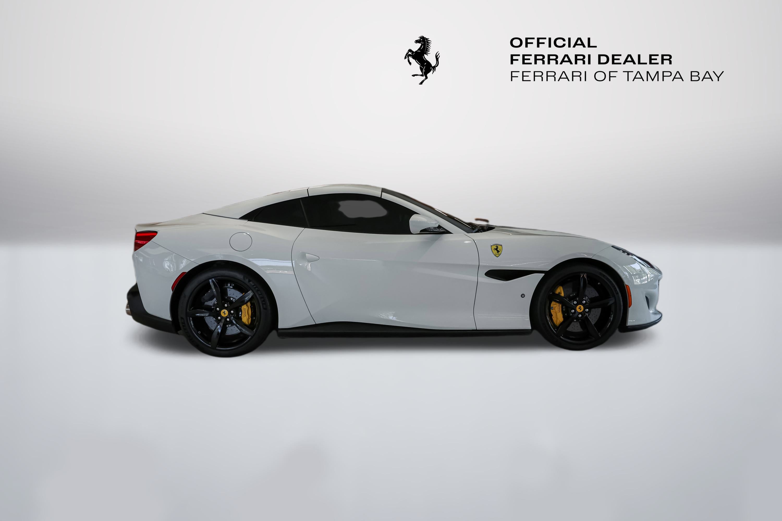 2020 Ferrari Portofino RHT Convertible available at Ferrari of Tampa Bay.  Finished in Bianco Avus (White) with Rosso Ferrari (Red) Interior.  Options include the following:  Yellow Brake Calipers, Scuderia Ferrari Shields, Parking Camera, Nero (Black) and Rosso Extracampionario Stitching, Ventilated Full-Electric Seats, Foldable Rear Seat Backrest, Advanced Front Driving Camera, Yellow Rev (Tachometer) Face Dial, and Cavallino Horse Stitched upon the Headrests in Nero.