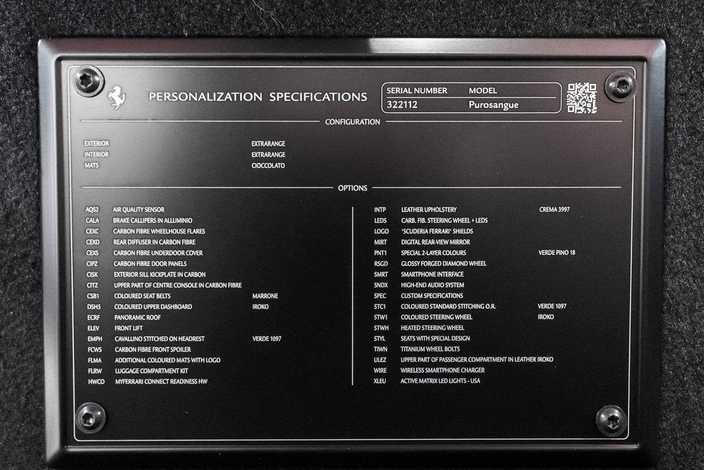 Ferrari of Lake Forest is Proud to Present this Certified Pre Owned 2025 Ferrari Purosangue Finished in Special 2 Layer Color Verde Pino over Crema and Iroko Interior. This Ferrari Purosangue is Optionally Equipped with: Aluminum Brake Calipers Carbon Fiber Wheel Arch Flares Carbon Fiber Under Door Cover Carbon Fiber Rear Diffuser Panoramic Roof Carbon Fiber Front Spoiler Scuderia Ferrari Shields Glossy Diamond Forged Wheels Titanium Wheel Bolts Active Matrix LED Headlights Air Quality Sensor Carbon Fiber Door Panels Exterior Sill Kick in Carbon Fiber Colored Seat Belts in Marrone Colored Upper Dashboard in Iroko Cavallino Stitched on Headrests in Verde Colored Mats with Logo Luggage Compartment Kit Carbon Fiber Steering Wheel with LEDs Digital Rear View Mirror Smartphone Interface High End Audio System Colored Standard Stitching in Verde Colored Steering Wheel in Iroko Heated Steering Wheel Seats with Special Design Upper Part of Passenger Compartment in Iroko Leather The Ferrari Purosangue is powered by a magnificent V12 that sings with the fury of Maranellos finest. Every press of the throttle unleashes a surge of power that feels endless, raw, and intoxicating. It handles with the poise of a grand tourer and the heart of a true Ferrari, turning every drive into a symphony of speed and emotion. The Ferrari Certified Pre Owned Coverage is Included in our asking price. For more information on this Ferrari Purosangue call one of our Ferrari Specialists today at 847.2956560