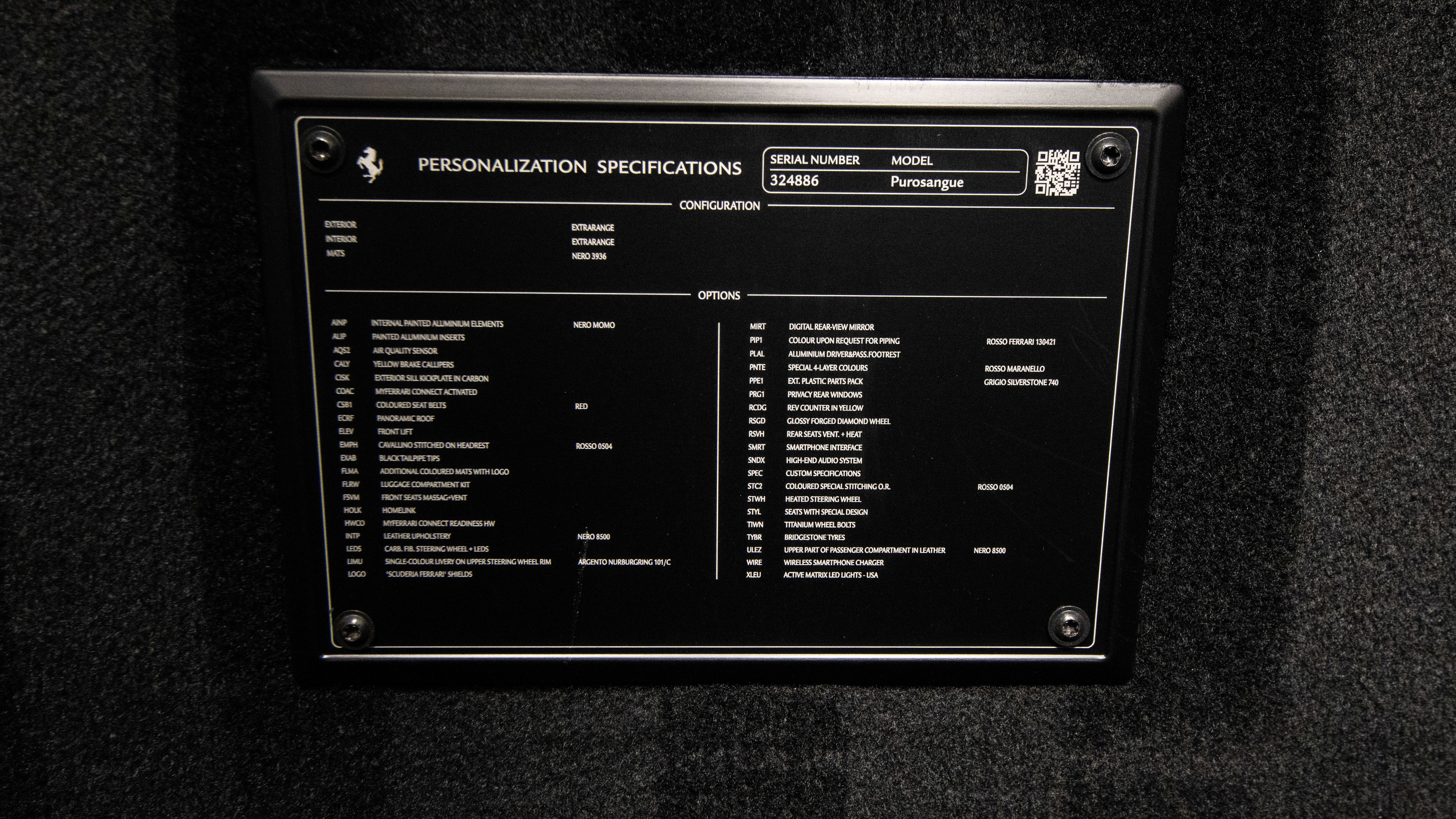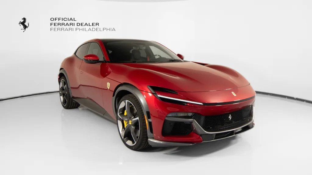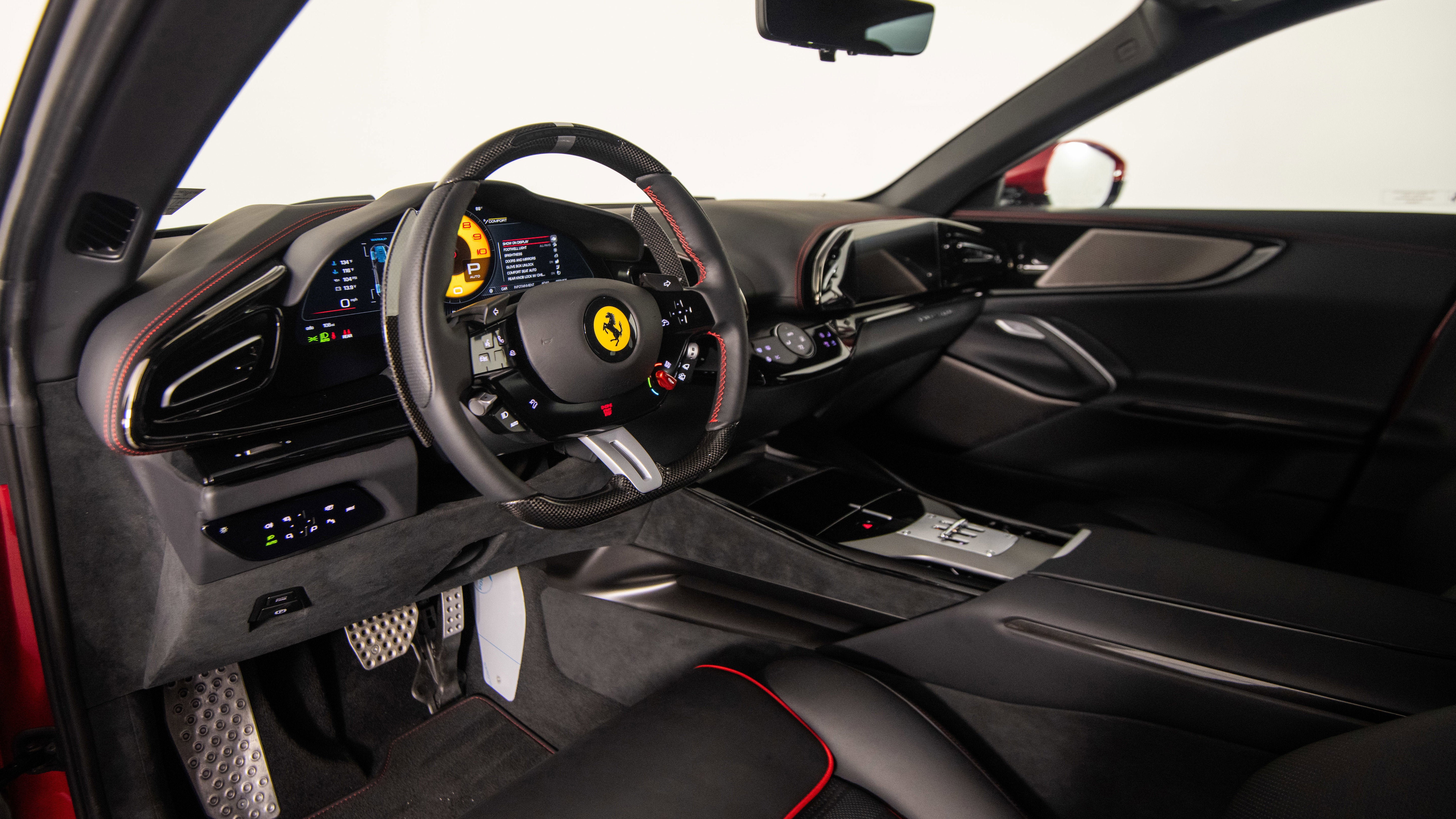 Ferrari Philadelphia is pleased to offer this 2025 Ferrari Purosangue with only 117 miles. This vehicle is being sold with the balance of the factory warranty valid until 12/24/2028 & is under the Ferrari Certified Pre-Owned program. The Ferrari Purosangue is the first four-door, four-seater ever built by Ferrari, redefining the boundaries of a modern GT. It features a mid-front-mounted, naturally aspirated 6.5-liter V12 engine that produces 725 cv and delivers instantaneous throttle response with a signature Ferrari soundtrack. Built on an all-new chassis, the Purosangue achieves perfect 49:51 weight distribution, ensuring outstanding dynamic balance and handling. Its active suspension system and cutting-edge vehicle dynamics technologies offer unparalleled performance across a wide range of conditions. With a luxurious, driver-focused cabin and innovative rear-hinged doors, the Purosangue blends everyday usability with unmistakable Ferrari character. The exterior color of this Ferrari is hand-finished in Rosso Maranello complemented by a Nero leather interior. The options on this Purosangue include: