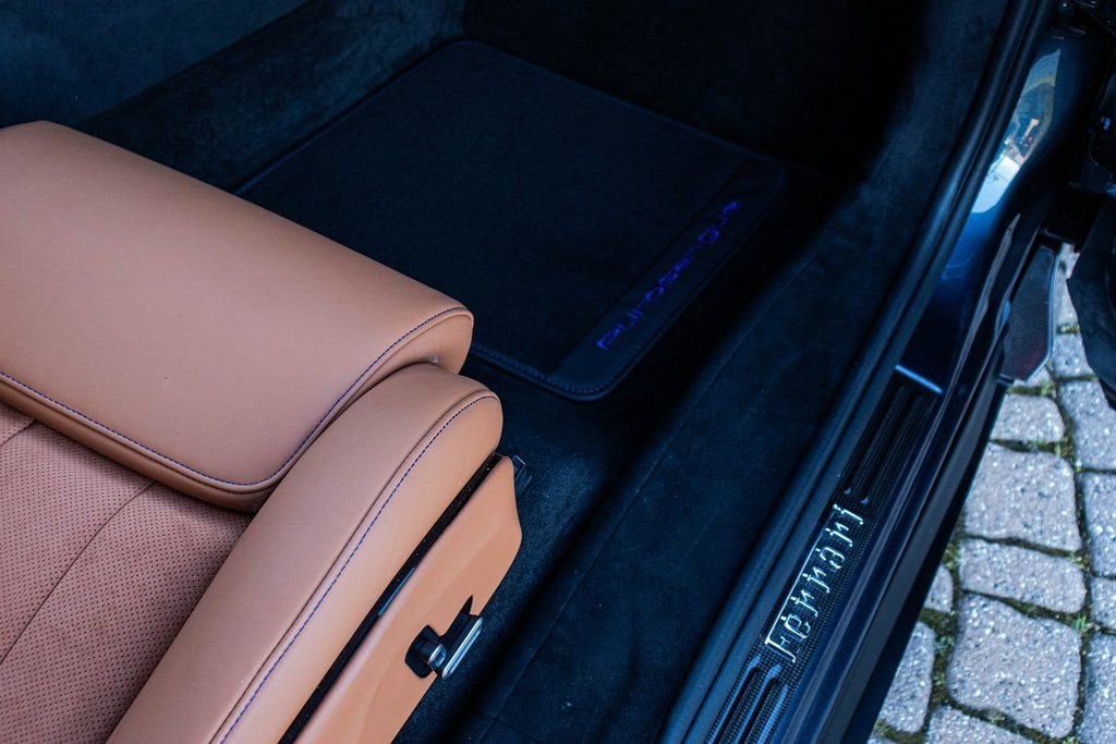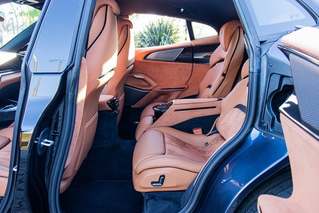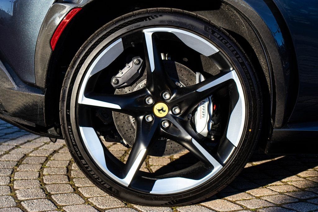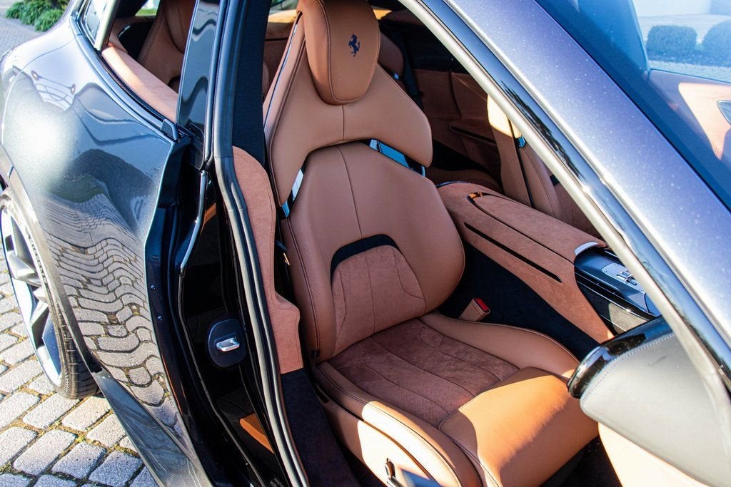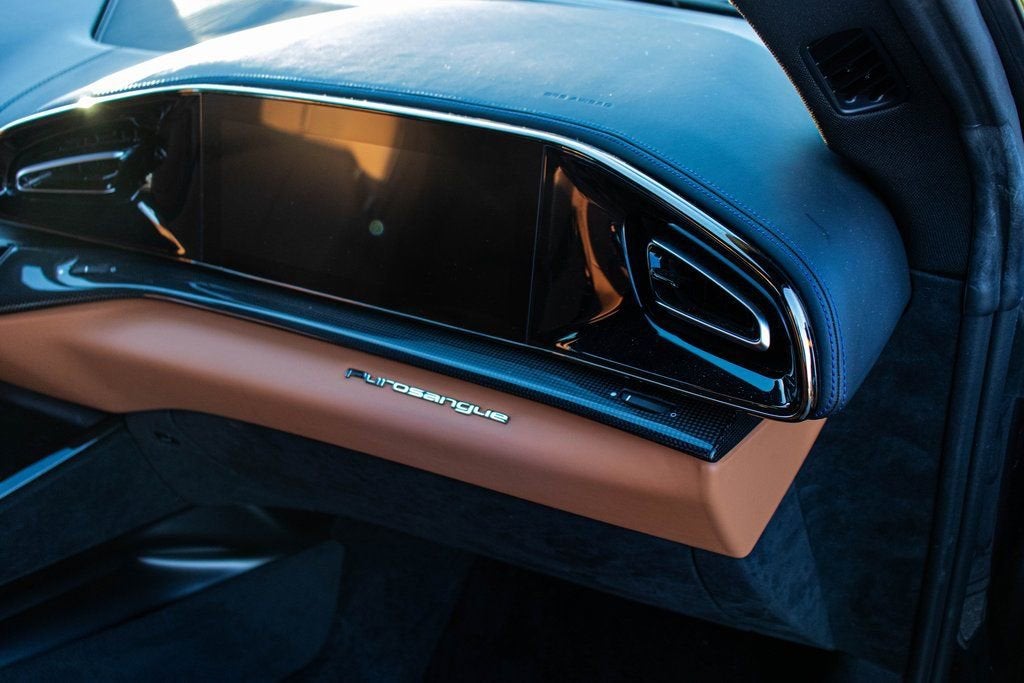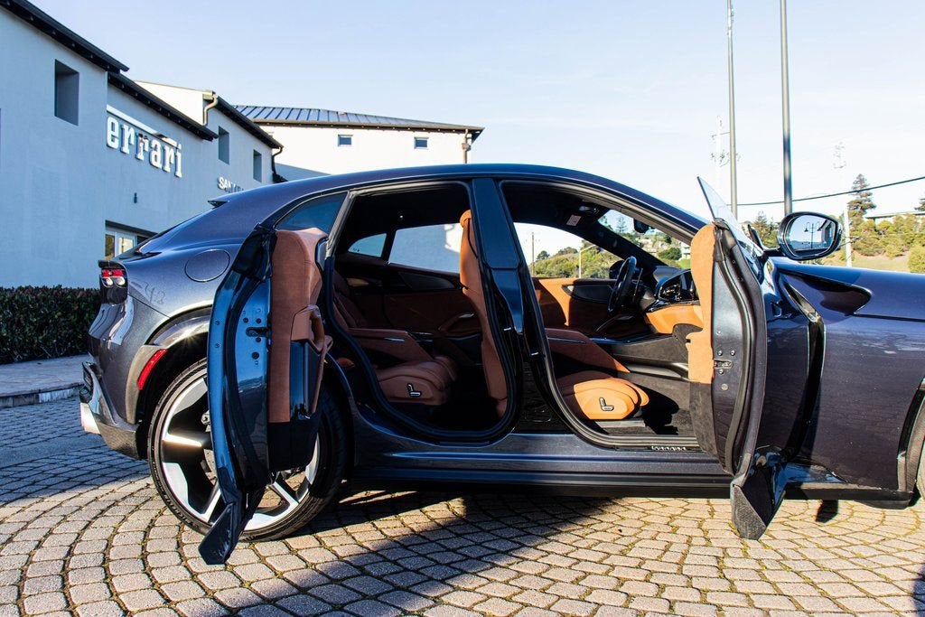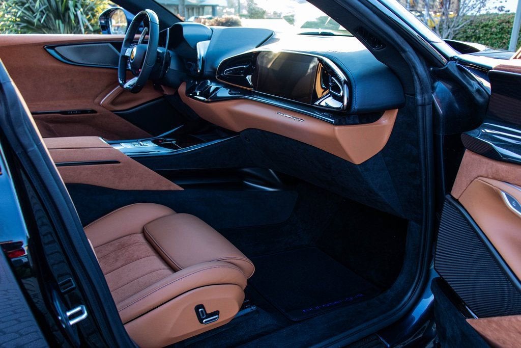 302065 Exterior: Blu Roma Interior: Cuoio Alcantara Mats: Nero 2024 Ferrari Purosangue Options: Air Quality Sensor Brake Calipers in Aluminum Carbon Fiber Wheelhouse Flares Rear Diffuser in Carbon Fiber Carbon Fiber Under Door Cover Carbon Fiber Door Panels Exterior Sill Kick in Carbon Front Lift Cavallino Stitched on Headrest in Blu Sport Tailpipe Tips Carbon Fiber Front Spoiler Additional Colored Mats with Logo Luggage Compartment Kit Front Seats Massag + Vent MyFerrari Connect Readiness HW Carb. Fib. Steering Wheel + LEDS Digital Rear-View Mirror Classic Colors in Blu Roma Tachometer in Aluminum Matte Black Forged Diamond Polished Wheels Rear Seats Vent. + Heat Smartphone Interface High-End Audio System Colored Special Stitching O.R. Blu Wheel Stud Bolts in Titanium Wireless Smartphone Charger Active Matrix LED Lights - USA This 2024 Ferrari Purosangue is finished in the elegant and timeless Blu Roma, complemented by a luxurious Cuoio Alcantara interior that delivers a perfect balance of sport and sophistication. Carbon fiber detailing is showcased throughout, including the wheelhouse flares, front spoiler, rear diffuser, door panels, underdoor covers, and exterior sill kicks, reinforcing its performance-driven DNA. The cabin is richly appointed with a carbon fiber steering wheel with LED shift lights, Cavallino-stitched headrests in Blu, aluminum tachometer, and Blu special stitching, while advanced comfort and technology features include front seats with massage and ventilation, heated and ventilated rear seats, a high-end audio system, smartphone interface, wireless charger, digital rear-view mirror, and Active Matrix LED headlights. Riding on matte black forged diamond-polished wheels with titanium wheel studs and equipped with a front lift system and sport tailpipe tips, this Purosangue delivers Ferraris unmistakable performance and luxury in an exceptionally versatile four-door grand tourer.
