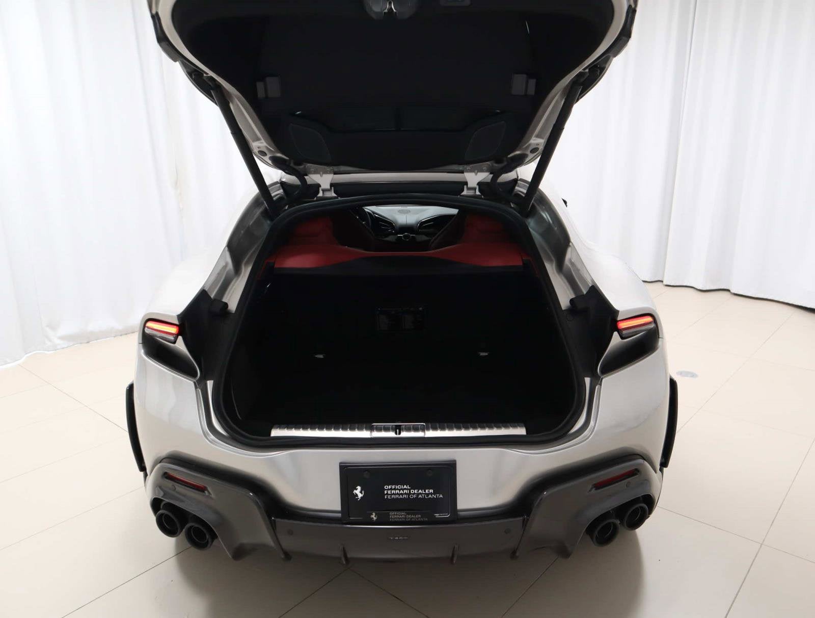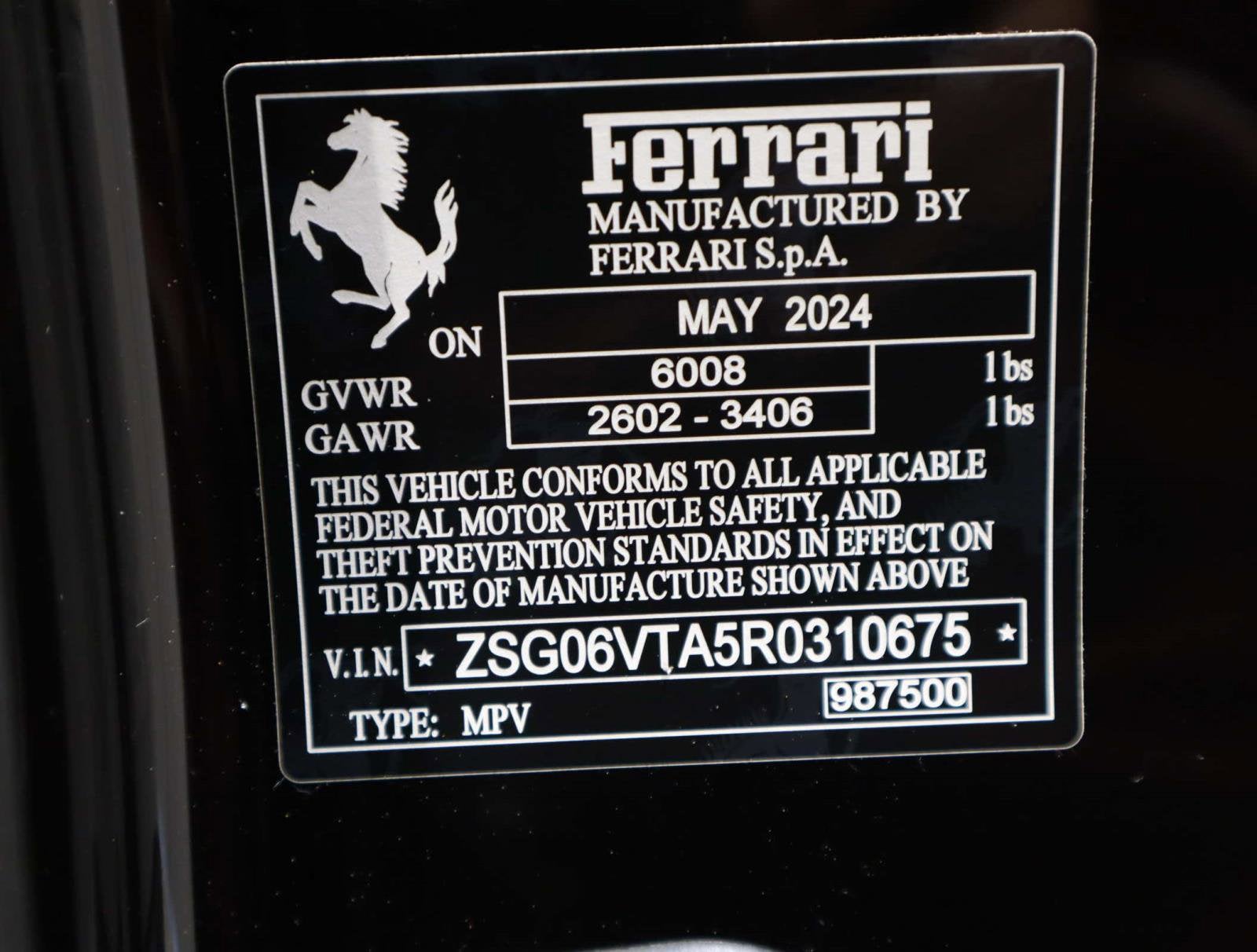 This 2024 Ferrari Purosangue, offered for sale by Ferrari of Atlanta, presents an exceptional opportunity to acquire Ferrari's groundbreaking four-door performance vehicle in a highly desirable specification. Showing just 2,471 miles, this Purosangue is finished in the rare and striking two-layer Aluminum Lucido paint, beautifully contrasted by a rich Bordeaux leather interior that underscores the car's bespoke character. With an original MSRP of $561,866, this example reflects a carefully curated build emphasizing both performance and luxury.Equipped with full exterior carbon fiber and a selection of other sought-after options, this Purosangue delivers the unmistakable presence, craftsmanship, and V12 performance expected from Ferrari's most exclusive modern offering. Meticulously maintained and presented in excellent condition, it represents a compelling blend of versatility and supercar pedigree, available now through Ferrari of Atlanta.