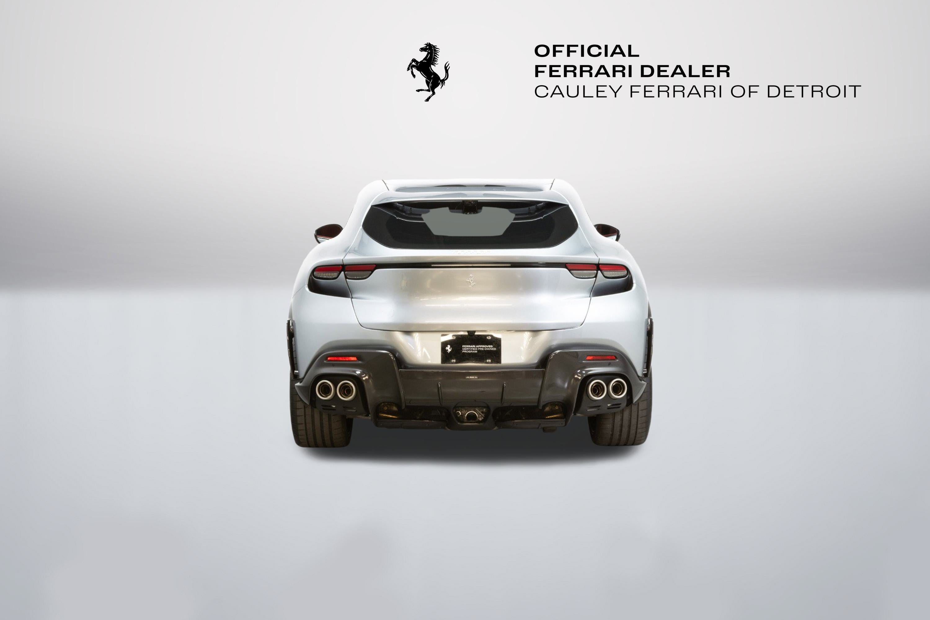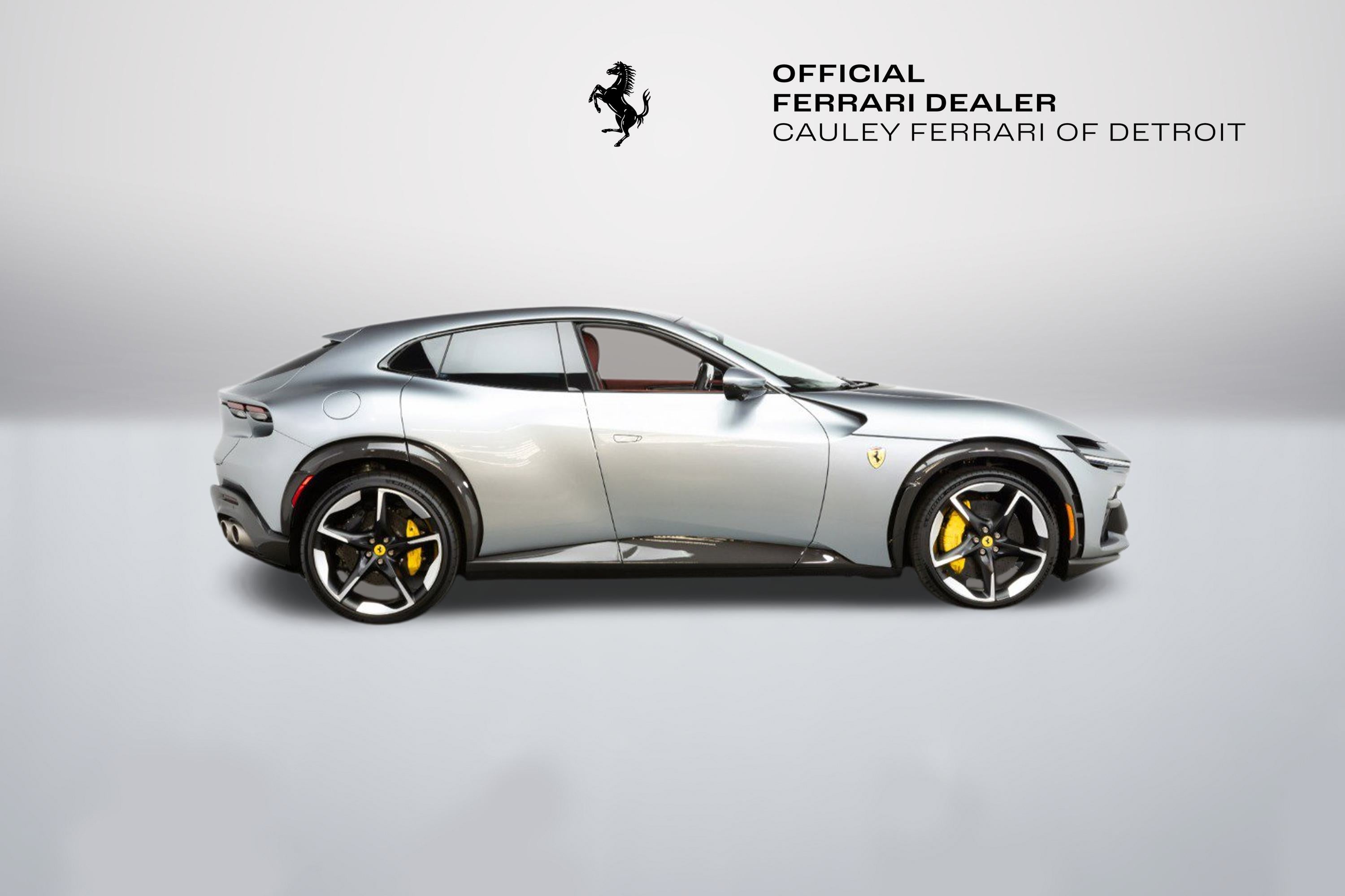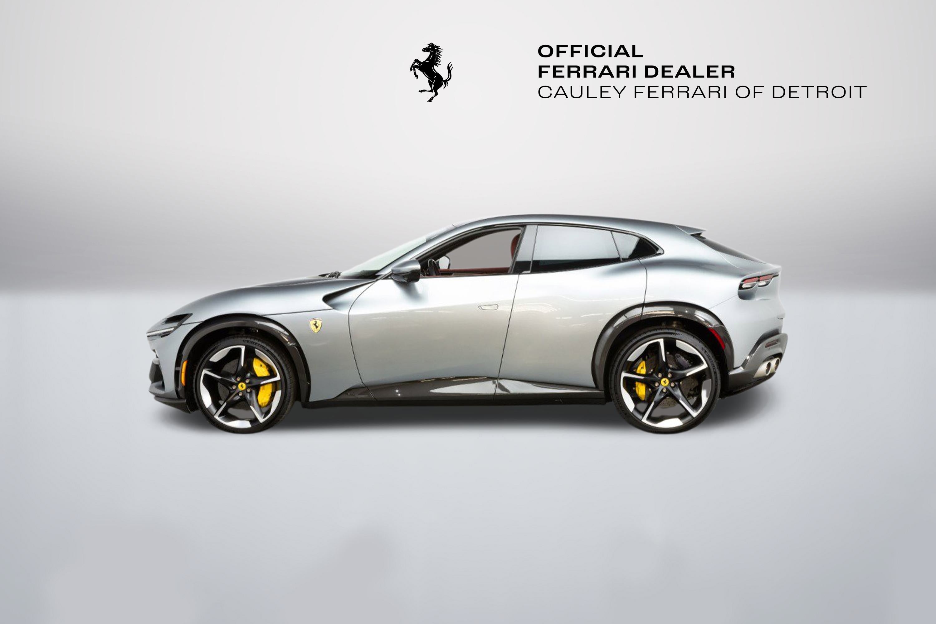 Cauley Ferrari of Detroit is excited to offer you this 2025 Purosangue finished in Grigio Titanio over a Bordeaux Alcantara interior. This car is like-new with only 83 miles on the odometer. Included in its build are several exterior carbon fiber trim pieces, Panoramic Roof, Carbon Fiber Steering Wheel + LEDs, Matte Forged Diamond Wheels, Burmester High-End Audio System, and more. The full options list can be seen below. This four-door V12 is being sold as a Ferrari Approved Certified Pre-Owned Vehicle and the full factory Bumper-to-Bumper Warranty runs through 3/27/2028, and the seven-year free scheduled maintenance is good until 3/27/2032. Give us a call or stop by to take a closer look at this gorgeous Ferrari Purosangue. Please ask us about our financing and leasing options available through Ferrari Financial Services (FFS). We can offer you monthly financing as far out as 84 months, Balloon financing up to 60 months, as well as Open-End Leasing scenarios. FFS is available on all new and pre-owned Ferrari models. These flexible payment options really make getting into a Ferrari easier than ever before. Let us show you how. Give us a call at 248-538-9600 to set up an appointment for a closer look or stop by our showroom in West Bloomfield, MI. Factory Options: - Air Quality Sensor - Yellow Brake Callipers - Carbon Fibre Wheelhouse Flares - Rear Diffuser in Carbon Fibre - Carbon Fibre Underdoor Cover - Carbon Fibre Door Panels - Exterior Sill Kickplate in Carbon - Upper Part of Centre Console in Carbon Fibre - Panoramic Roof - Front Lift - Sport Tailpipe Tips - Carbon Fibre Front Spoiler - Luggage Compartment Kit - MyFerrari Connect Readiness HW - Carbon Fibre Steering Wheel + LEDs - Scuderia Ferrari Shields - Digital Rear-View Mirror - Classic Colours Grigio Titanio Metall.FQ 3238 - Privacy Rear Windows - Matte Black Forged Diamond Polished Wheels - Smartphone Interface - High-End Audio System - Custom Specifications - Coloured Special Stitching O.R. Extrarange - Surround View - Titanium Wheel Bolts - Sport Tyres - Upper Part of Passenger Compartment in Leather Nero 8500 - Wireless Smartphone Charger - Active Matrix LED Lights USA - MyFerrari Connect 20 Activated The Ferrari Purosangue is the first ever four-door, four-seater car in Ferrari's history, but models with two rear seats have played a significant role in the company's strategy since the very beginning. Now, in the culmination of 75 years of leading-edge research, Ferrari has created a unique car and the encapsulation of the Prancing Horse's DNA, where performance, driving pleasure and comfort coexist in perfect harmony. The Purosangue is powered by a 6.5L V12, putting out 715 horsepower that redlines to 8,250 RPM. With this powertrain, it's no wonder the Italians gave this four-door the name, Purosangue, which translates to Thoroughbred in Italian.