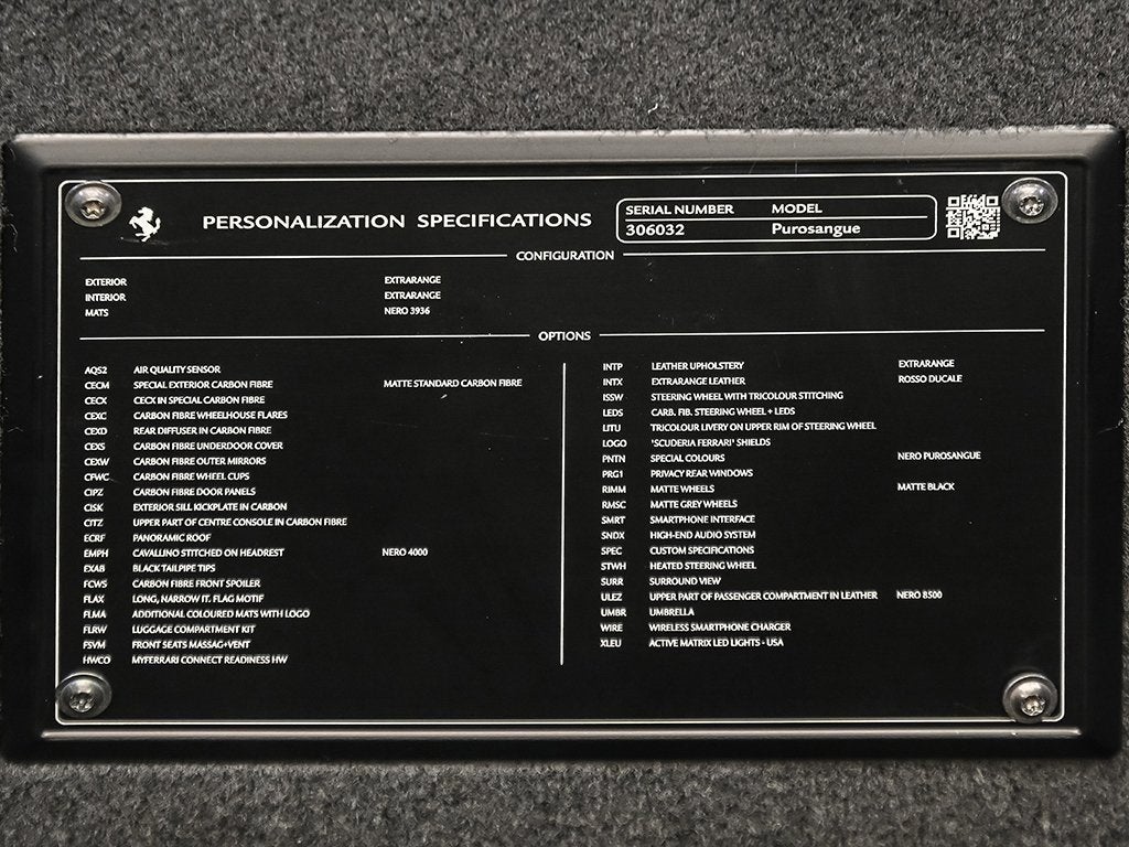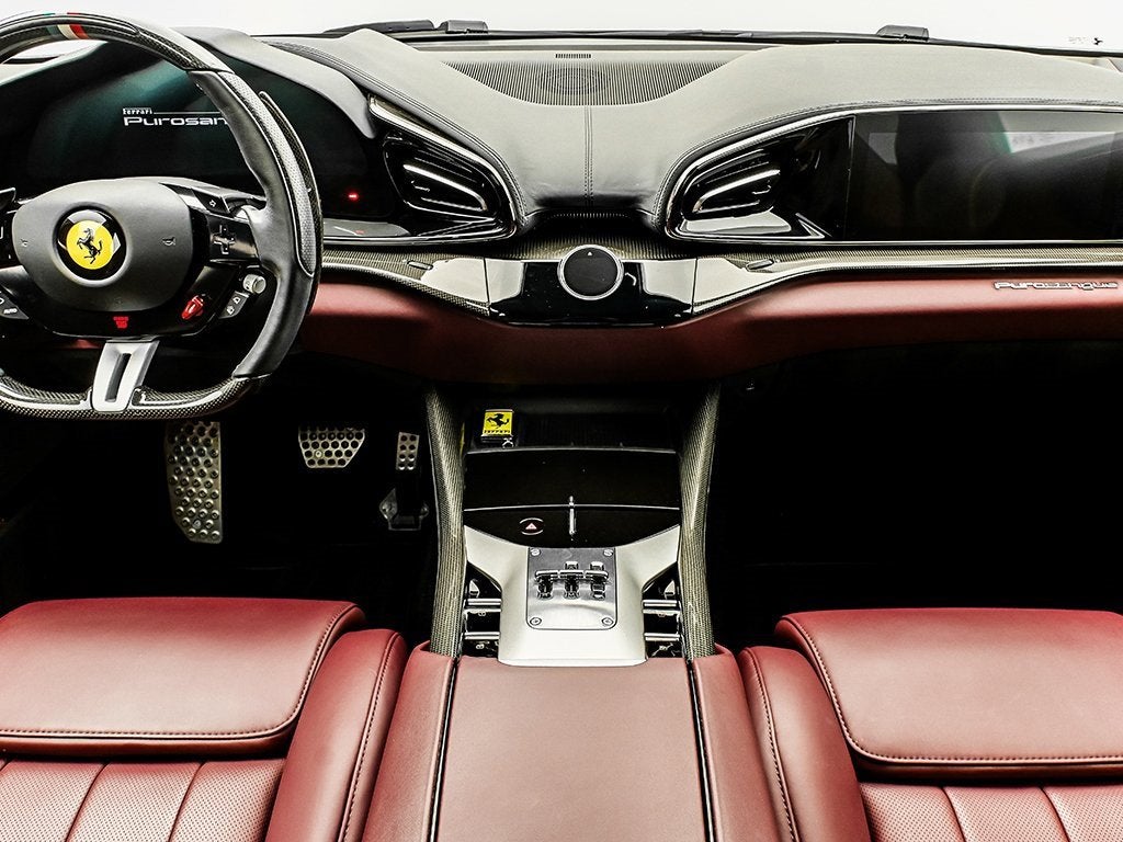 Introducing the 2024 Purosangue finished in Nero Purosangue to Ferrari of Austin! This Purosangue is Optionally Equipped with Exterior Special Carbon Fiber, Body Details with Special Carbon Fiber, Carbon Diffuser, Carbon Side Skirts, Carbon Fiber Outer Mirrors, Carbon Fiber Sill Plate, Carbon Center Caps, Carbon Outer Sill Kick, Upper Tunnel in Carbon Fiber Finish, Panoramic Roof, Black Ceramic Coated Tailpipes, Carbon Front Spoiler, Front Spoiler with Special Carbon Fiber, Italian Metallic Flag, Carbon Steering Wheel with LEDs, Italian Livery on Upper Arch, Scuderia Ferrari Fender Shields, Privacy Window, Matte Painted Wheels in Nero Opaco, Matte Grigio Corsa Rims, Carbon Door Panels, Special Carbon Door Sill, Carpets in Nero, Horse Stitched on Headrest in Nero, Mats with Logo, Ventilated Massaging Front Seats, Steering Wheel with Italian Stitch, and Upper Area in Nero. The Ferrari Purosangue is driven by a breathtaking V12 that roars with the passion of Maranellos finest creations. Each press of the throttle unleashes an endless surge of powerraw, intoxicating, and pure. It blends the grace of a grand tourer with the soul of a true Ferrari, transforming every drive into a symphony of performance, emotion, and exhilaration. It has an active Factory Warranty Extending until 05/23/2027 and a Genuine Maintenance Service Extending until 05/23/2031. The Original Manufacturers Suggested Retail Price was $585,776.00. It has paint protection film on the front end, the A pillar, and carbon fiber outer mirrors of the vehicle. We offer Ferrari Financial Services on all Pre-Owned Ferrari Inventory, with terms from 12-84 months. Please call one of our Ferrari Specialists today at 512.380.0231!