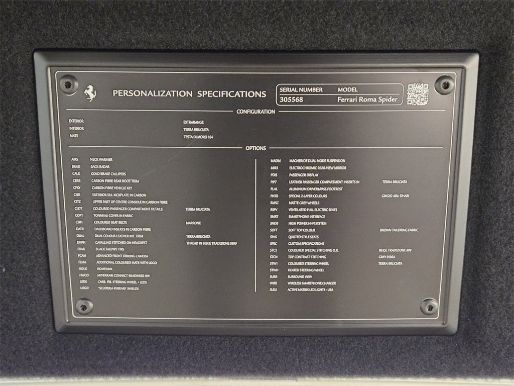 Authorized Dealer! Ferrari Of Las Vegas is pleased to offer this highly optioned delivery mile Roma Spider we just picked up! Finished in a special order Grigio Abu Dhabi exterior with Terra Bruciata interior this is the perfect Ferrari to add to your collection! Fully serviced and certified buy with confidence from Nevada's only authorized Ferrari retailer! Authorized Dealer! Ferrari CPO Approved $408,717 Original MSRP Grigio Abu Dhabi Exterior Terra Bruciata Interior Delivery Miles! Horse Stitched On Headrest $1304 Scuderia Ferrari Shields $1856 Gold Brake Calipers $1565 Colored Safety Belts $1390 Colored Stitching $759 Back Radar $2850 Homelink Garage Door Opener $1350 Carbon Fiber Steering Wheel + LEDS $5062 Magneride Dual Mode Suspension $5568 Electrochromatic Rearview Mirror $1350 Neck Warmer $3476 Carbon Fiber Rear Boot Trim $6083 Car Key In Carbon Fiber $869 Exterior Sill Kick In Carbon Fiber $2086 Carbon Fiber Upper Tunnel Trim $1738 Colored Inner Details $1738 Carbon Fiber Dashboard Inserts $4866 Dual Color Leather Interior Trim $8690 Black Ceramic Exhaust Pipes $1738 Colored Mats With LOGO $1390 Cockpit Details In Leather $1738 Front & Real Quilted Seating $5127 Full Electric Ventilated Front Seats $1390 Leather Steering Wheel $782 Lower Cockpit In Leather $2433 Driver + Passenger Aluminum Footrests $869 20' Matt Grigio Corsa Wheels $2607 Passenger Display $6083 Adaptive Front Headlights $3476 Surround View $6257 Heated Steering Wheel $1304 Premium HiFi $6431 Fresh Service! Buy with confidence from Nevada's only authorized Ferrari dealer, Ferrari of Las Vegas. We hand-select only the best with every car receiving an extensive reconditioning process to ensure that only the finest examples are offered for sale. Ferrari of Las Vegas does not reserve, or hold advertised vehicles. All cars in inventory are subject to sale on a first come first serve basis. We reserve the right to revise price, equipment, mileage, and certification status as a result of changing market conditions, manufacturer/distributor notices including recall notices, or errors. All vehicle pricing expires upon close of business the same day. Call 702-932-7100