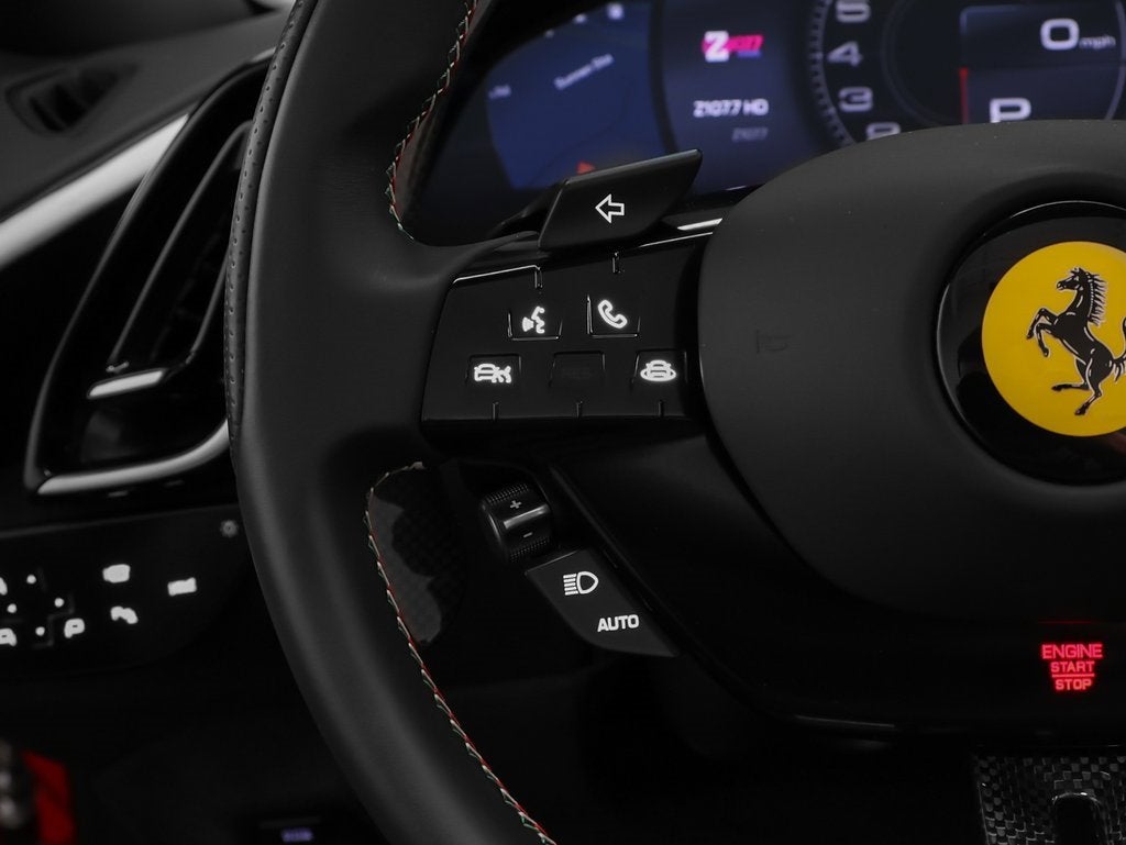 • Rosso Formula 1 2007 3-Layer Paint Ventilated Full Electric Seats ADAS Full Package Carbon Fiber Steering Wheel with LEDs Carbon Fiber Display Surround + Door Inserts Carbon Fiber Upper Tunnel Trim Surround View Camera Magnaride Dual Mode Suspension Sport Exhaust Pipes in Matte Black 20" Forged Diamond Rims Black Brake Calipers Scuderia Ferrari Shields High Power Hi-Fi System Smartphone Integration Wireless Smartphone Charger Soft Top in Tessuto Sartoriale Nero Charcoal 4304 Interior Piping on Seat Bolsters in Pelle Bianca Colour Upon Request for Piping Horse Stitched on Headrest in Bianco 2000 Rear Seats Prancing Horse in Bianco 2000 Coloured Special Stitching in Filo Speciale Bianco STW Tricolore Style Stitching CLDT with Special Leather Pelle Bianca Leather Cockpit Bands Extracampionario Neck Warmer Aluminum Driver & Passenger Footrests Coloured Mats with Logo Garage Door Opener (HomeLink) Vehicle Personalization Plate Personalization Pack Michelin Tires USA Vehicle Specification