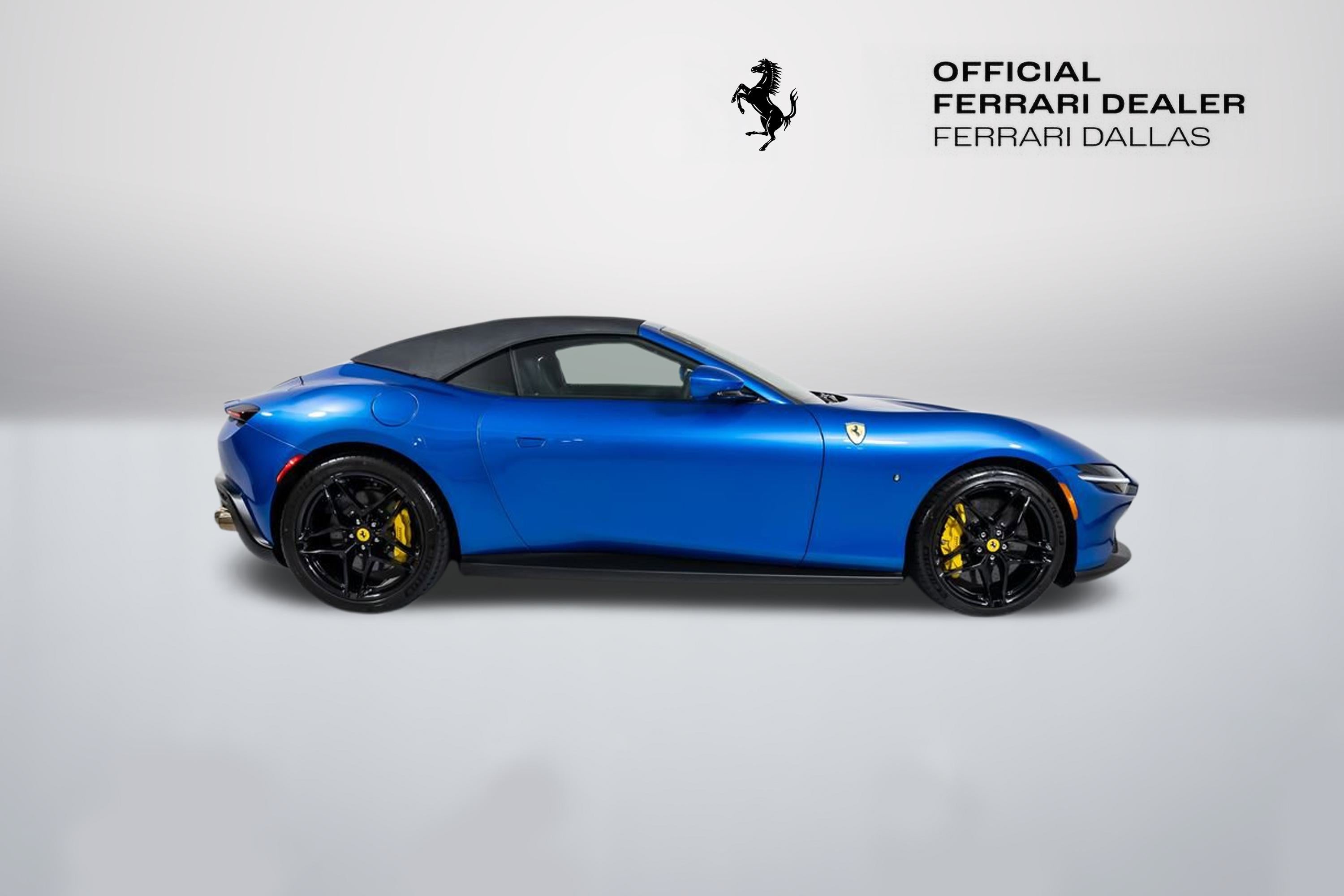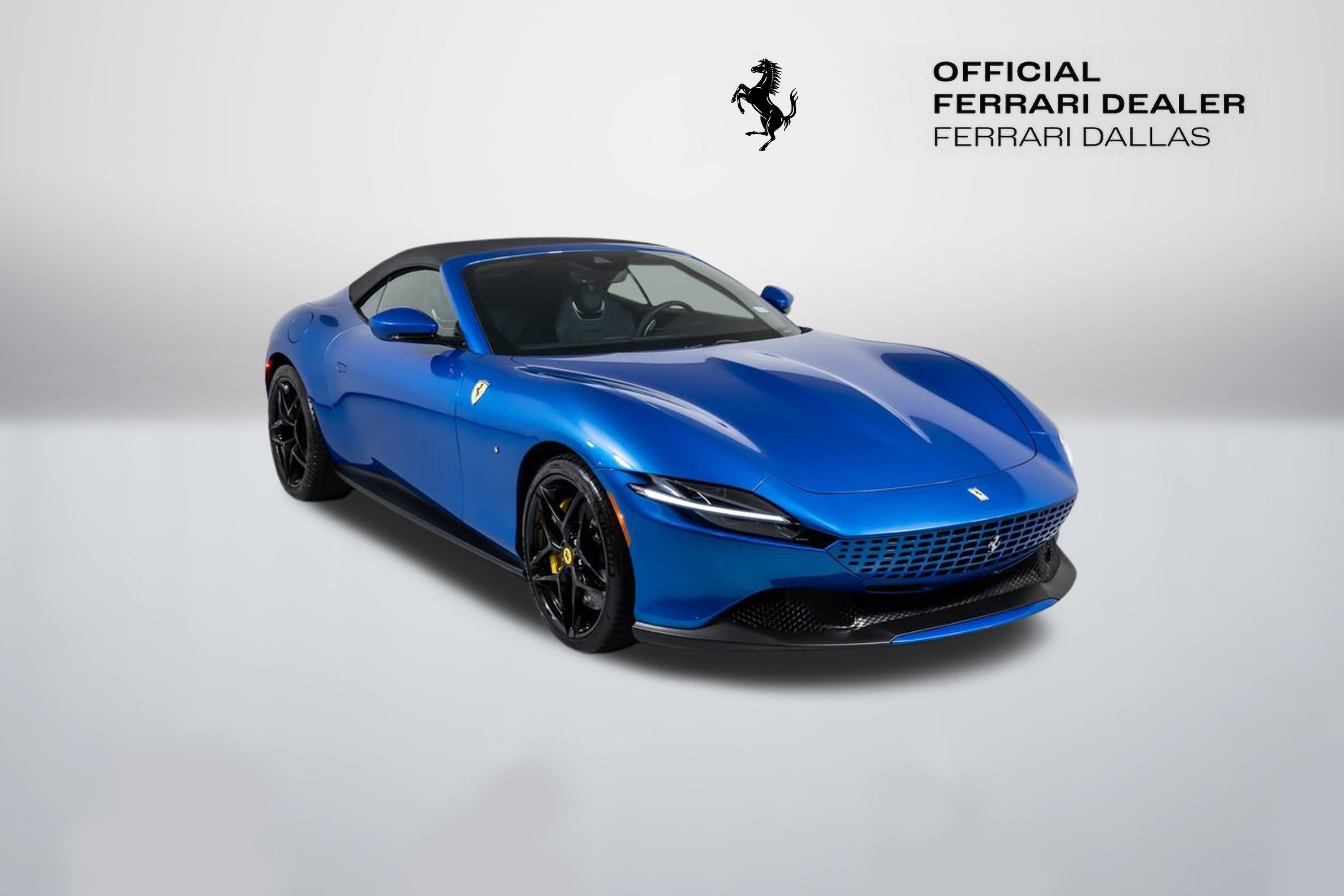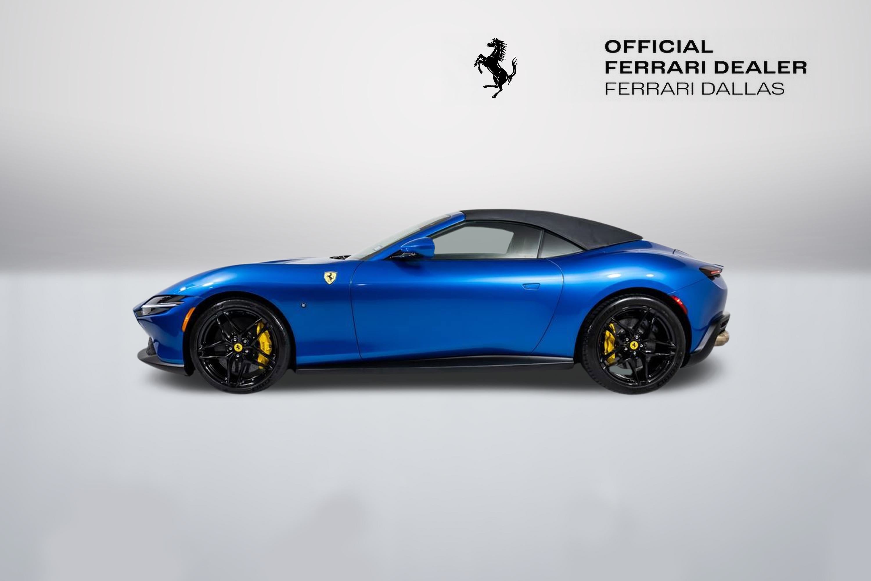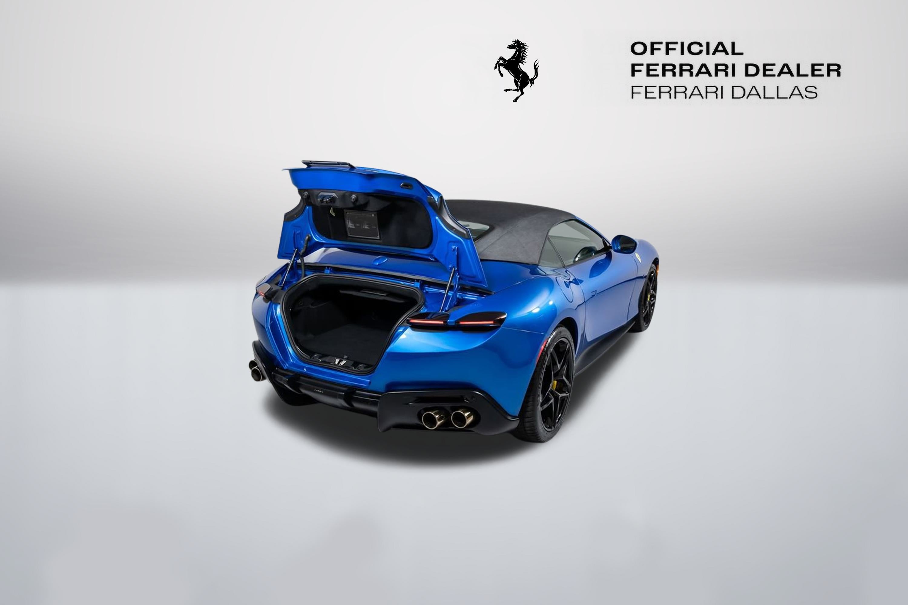 We are proud to present the all new Ferrari Roma Spider in Blu Corsa over Blu Sterling interior. This stunning example features the power retractable five layer woven top for that classic Ferrari look and feel. You ll experience the spirit of la dolce vita in this beauty with no shortage of power readily available in this 612 HP open-air grand tourer . Check out the list of options on this well appointed Spider : AIRS NECK WARMER BACK RADAR CALY YELLOW BRAKE CALIPERS COAC MYFERRARI CONNECT ACTIVATED COPT TONNEAU COVER IN TESSUTO CRPT Carpets colors 364703936 NERO 3936 EMPH HORSE STITCHED ON HEADREST 364100113 FILO GIALLO 0113 - YELLOW 0113 REAR SEATS PRANC HOR IN EMPH/X 364100113 FILO GIALLO 0113 - YELLOW 0113 External colors 364000000 EXTRACAMPIONARIO -NOT STANDARD FCAM ADVANCED FRONT DRIVING CAMERA HOLK HOMELINK GARAGE DOOR OPENER HWCO HW READINESS MYFERRARI CONNECT INTC Internal colors 364030429 BLU STERLING 130429 LLCN CENTRALE SEDILI PELLE LOGO SCUDERIA FERRARI SHIELDS MIR3 ELECTROCHROMIC REARWIEW MIRROR NDSP INTERNAL USE PNCC CLASSIC COLORS 87829400 BLU CORSA PPAC PERSONALIZATION PACK RICS CHROME PAINTED STD WHEELS RIMP GLOSSY PAINTED RIMS 94086162 NERO DS 1250 RSFV VENTILATED FULL ELECTRIC SEATS SMRT SMARTPHONE CONNECTION SOFT SOFT TOP COLOUR 94087189 Tessuto sartoriale NERO SPEC SPECIAL FEATURES VPPL VEHICLE PERSONALIZATION PLATE WIRE WIRELESS CHARGER SMARTPHONE As one of the top-selling preowned Ferrari dealers in the nation, Ferrari Dallas takes tremendous pride in offering only the best late-model, low-mileage Ferraris available anywhere in North America. For specific details on the vehicle listed above, please contact any of our qualified sales consultants by calling 888-701-5761. We look forward to assisting you.