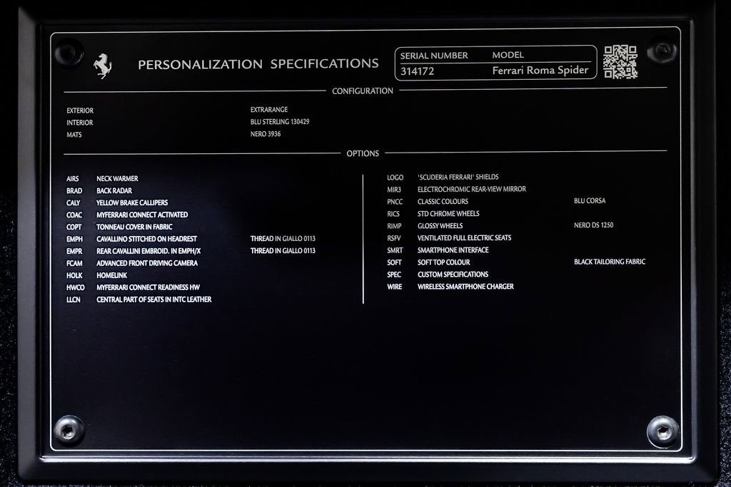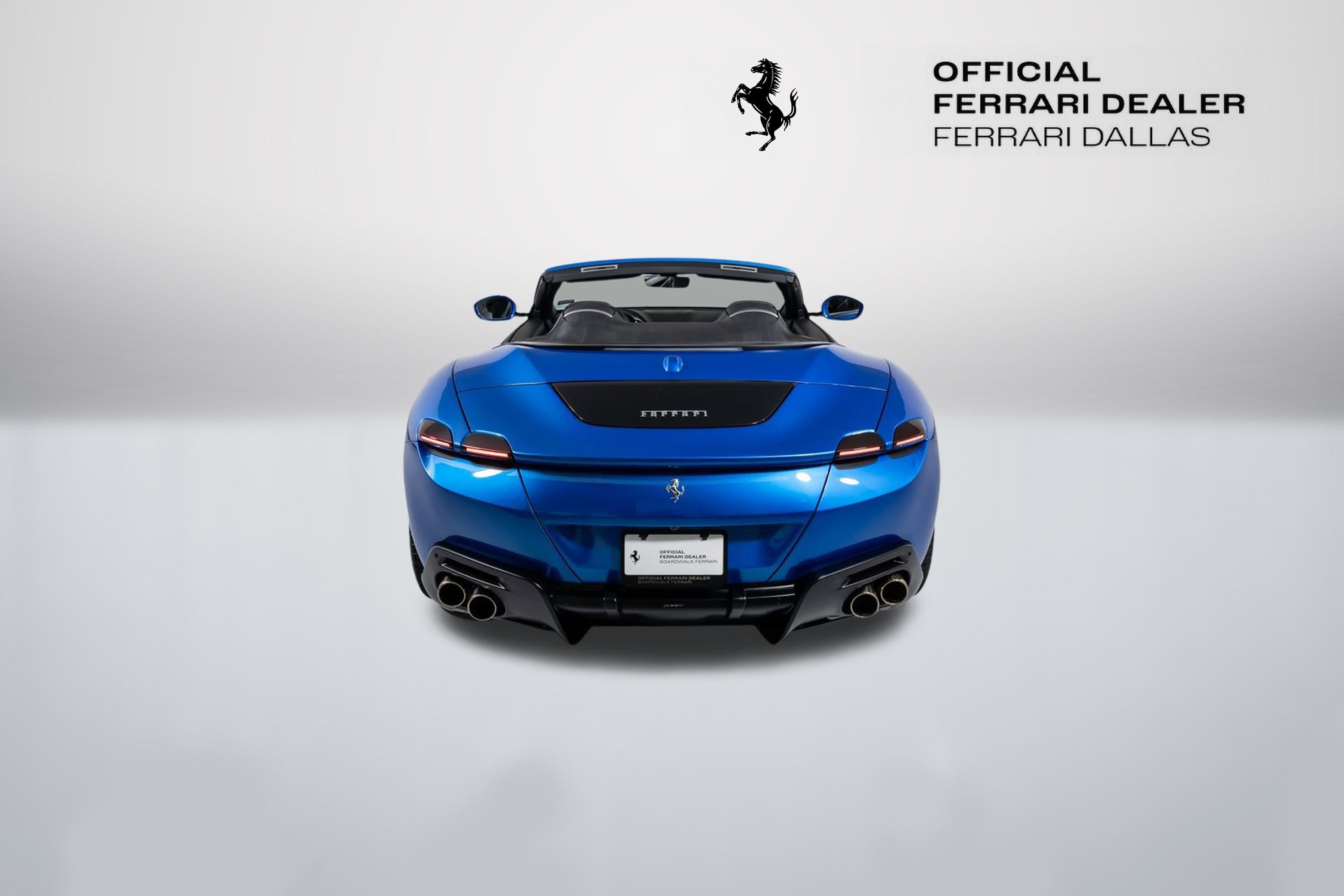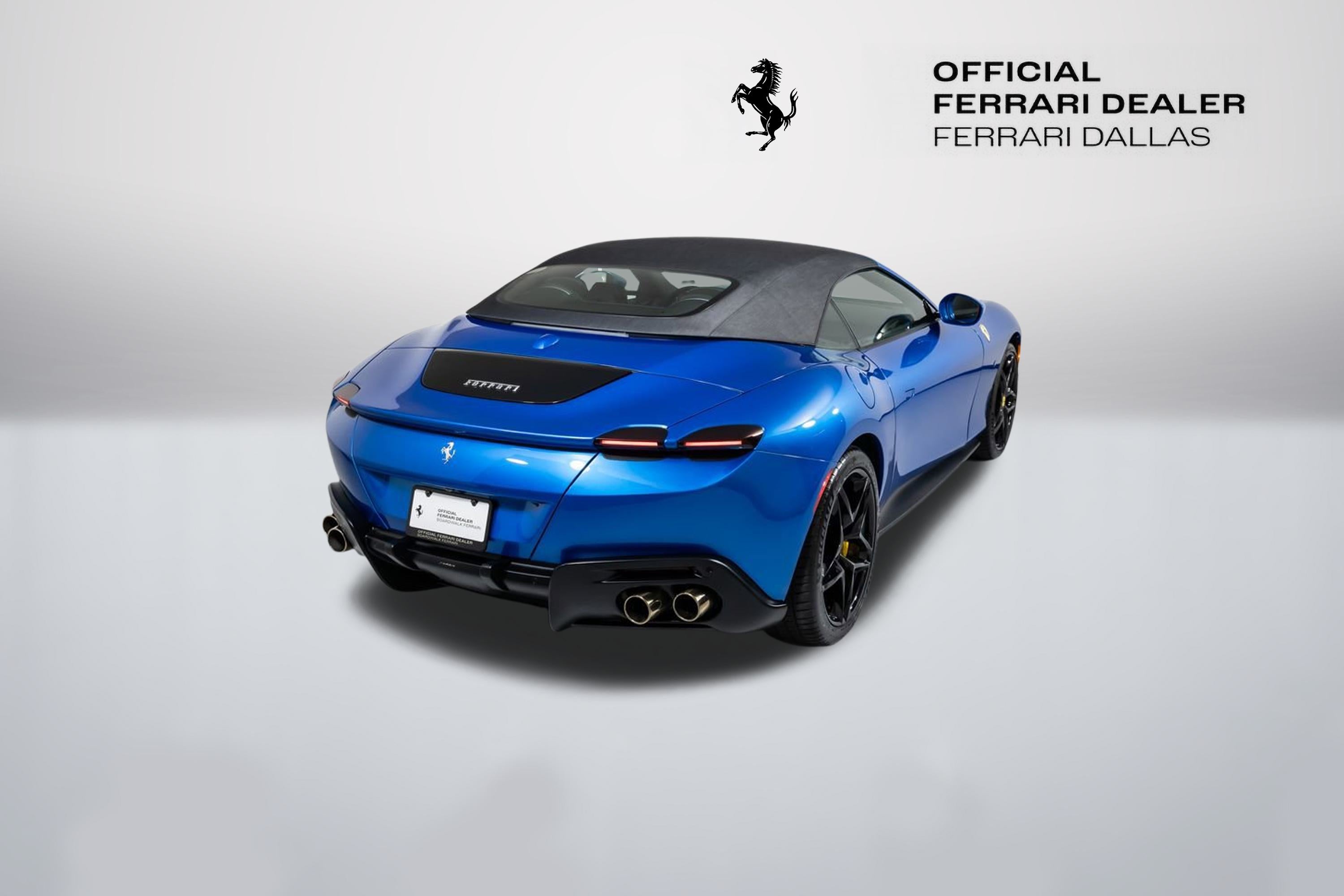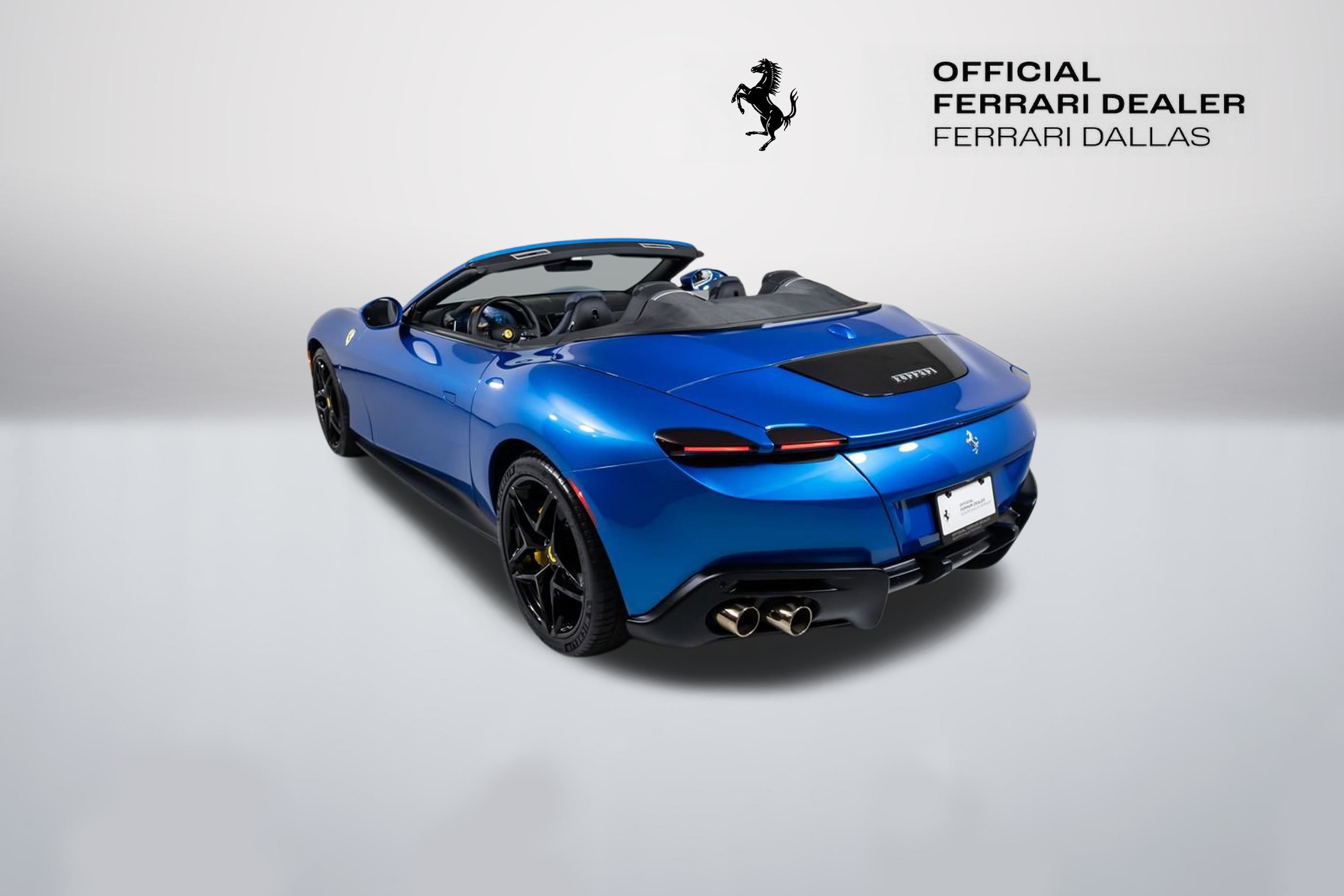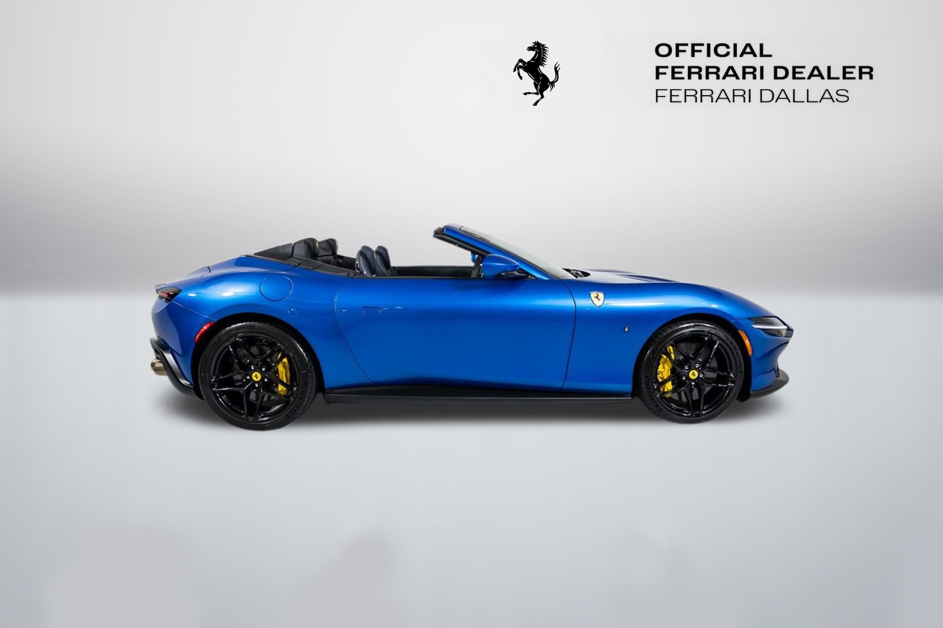 We are proud to present the all new Ferrari Roma Spider in Blu Corsa over Blu Sterling interior. This stunning example features the power retractable five layer woven top for that classic Ferrari look and feel. You ll experience the spirit of la dolce vita in this beauty with no shortage of power readily available in this 612 HP open-air grand tourer . Check out the list of options on this well appointed Spider : AIRS NECK WARMER BACK RADAR CALY YELLOW BRAKE CALIPERS COAC MYFERRARI CONNECT ACTIVATED COPT TONNEAU COVER IN TESSUTO CRPT Carpets colors 364703936 NERO 3936 EMPH HORSE STITCHED ON HEADREST 364100113 FILO GIALLO 0113 - YELLOW 0113 REAR SEATS PRANC HOR IN EMPH/X 364100113 FILO GIALLO 0113 - YELLOW 0113 External colors 364000000 EXTRACAMPIONARIO -NOT STANDARD FCAM ADVANCED FRONT DRIVING CAMERA HOLK HOMELINK GARAGE DOOR OPENER HWCO HW READINESS MYFERRARI CONNECT INTC Internal colors 364030429 BLU STERLING 130429 LLCN CENTRALE SEDILI PELLE LOGO SCUDERIA FERRARI SHIELDS MIR3 ELECTROCHROMIC REARWIEW MIRROR NDSP INTERNAL USE PNCC CLASSIC COLORS 87829400 BLU CORSA PPAC PERSONALIZATION PACK RICS CHROME PAINTED STD WHEELS RIMP GLOSSY PAINTED RIMS 94086162 NERO DS 1250 RSFV VENTILATED FULL ELECTRIC SEATS SMRT SMARTPHONE CONNECTION SOFT SOFT TOP COLOUR 94087189 Tessuto sartoriale NERO SPEC SPECIAL FEATURES VPPL VEHICLE PERSONALIZATION PLATE WIRE WIRELESS CHARGER SMARTPHONE As one of the top-selling preowned Ferrari dealers in the nation, Ferrari Dallas takes tremendous pride in offering only the best late-model, low-mileage Ferraris available anywhere in North America. For specific details on the vehicle listed above, please contact any of our qualified sales consultants by calling 888-701-5761. We look forward to assisting you.