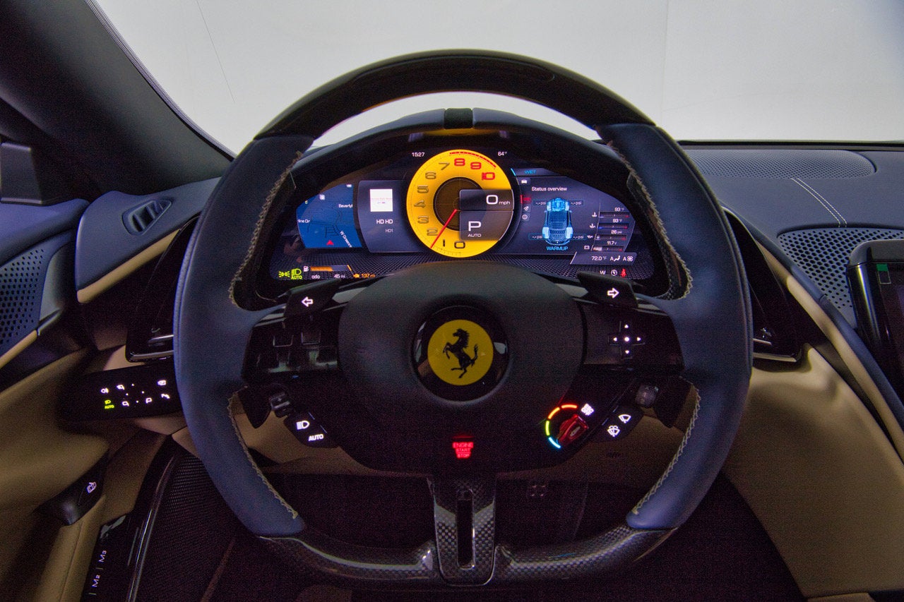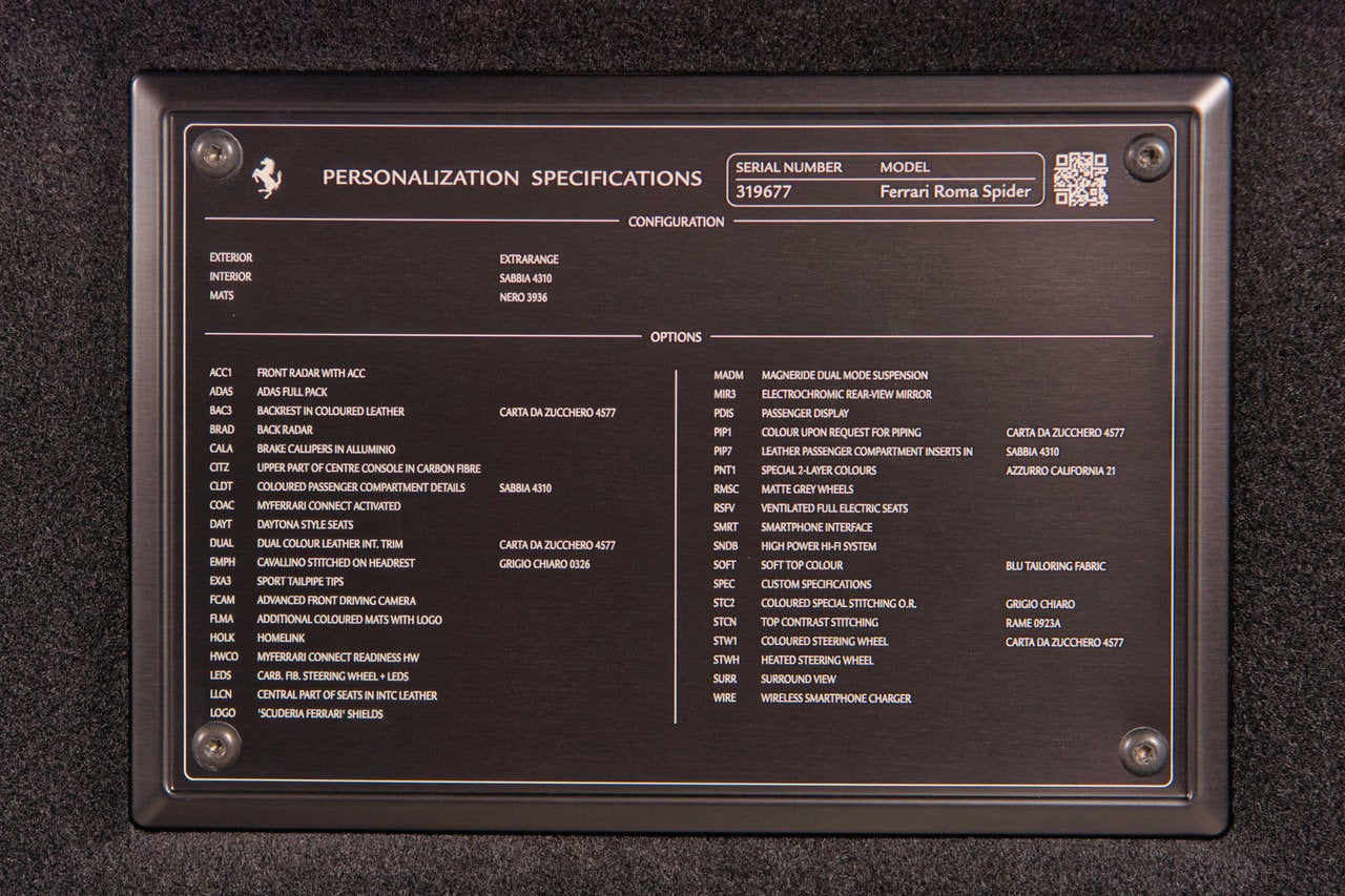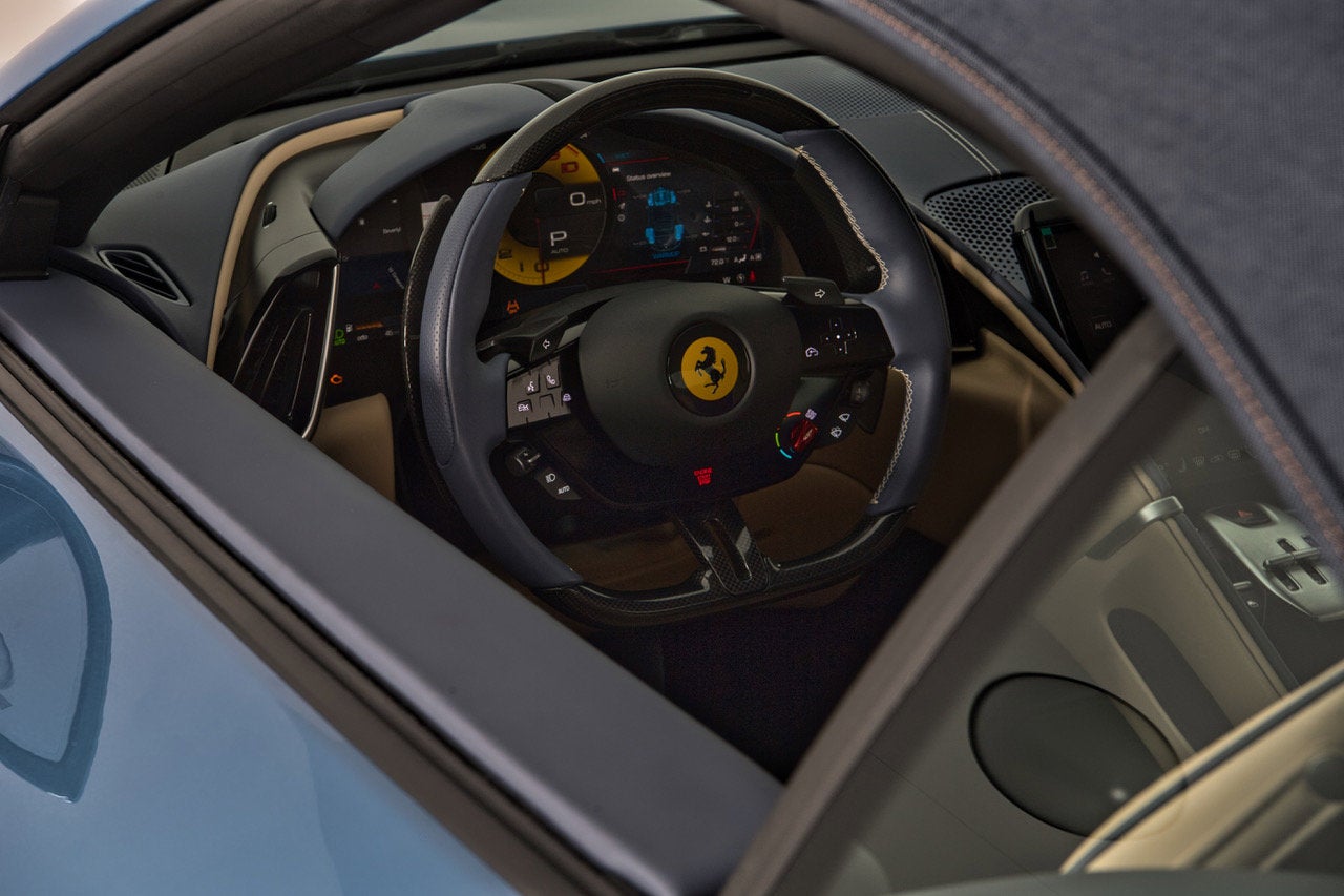 The Ferrari Roma Spider is a stunning and luxurious grand tourer that boasts a sleek and timeless design! We are proud to present this one-owner 2025 Roma Spider that has covered just 49 miles. It was tastefully ordered in stunning Azzurro California paint over Sabbia leather. It has a tremendous list of desirable factory options listed below. This Roma Spider is of course Ferrari Approved, and has completed a comprehensive 101 Point Ferrari inspection, and has had all service, updates, recalls, and service bulletins performed. It is complete with all keys, books/manuals, car cover and battery charger. This Roma Spider comes with Ferrari new car warranty until 5/31/2028, and no-cost annual maintenance until 5/31/2032. We offer a number of attractive financing programs through Ferrari Financial Services, including extended financing terms of up to 84 months, leasing, and balloon loan options that offer the flexibility of ownership with the affordable monthly obligation of a lease. ACC1FRONT RADAR WITH ACC ADASADAS FULL PACKAGE AM08AMALGAM MODEL 1:08 BAC3COLOR LEATHER SEATS BACKRESTCARTA DA ZUCCHERO 4577 BRADBACK RADAR CALAALLUMINUM BRAKE CALIPERS CITZCARBON FIBRE UPPER TUNNEL TRIM CLDTCOLOURED INNER DETAILSSABBIA 4310 (SAND) COACMYFERRARI CONNECT ACTIVATED CRPTCarpets colorsNERO 3936 DAYTDAYTONA STYLE SEATS DUALDUAL COLOUR LEATHER INT. TRIMCARTA DA ZUCCHERO 4577 EMPHHORSE STITCHED ON HEADRESTGRIGIO CHIARO (LIGHT GREY)0326 EXA3SPORT EXHAUST PIPES EXTCExternal colorsEXTRACAMPIONARIO-NOT STANDARD FCAMADVANCED FRONT DRIVING CAMERA FLMACOLOURED MATS WITH LOGO HOLKHOMELINK GARAGE DOOR OPENER HWCOHW READINESS MYFERRARI CONNECT INTCInternal colorsSABBIA 4310 (SAND) LEDSCARB.FIB.