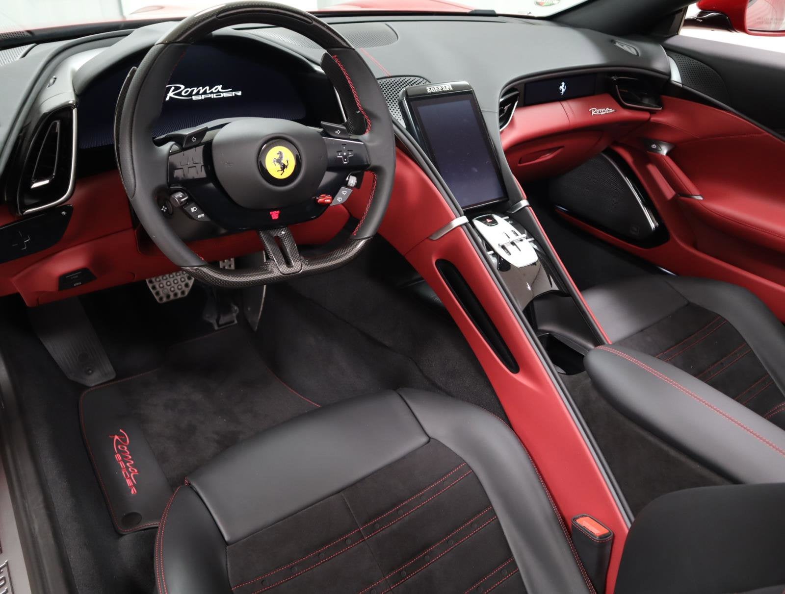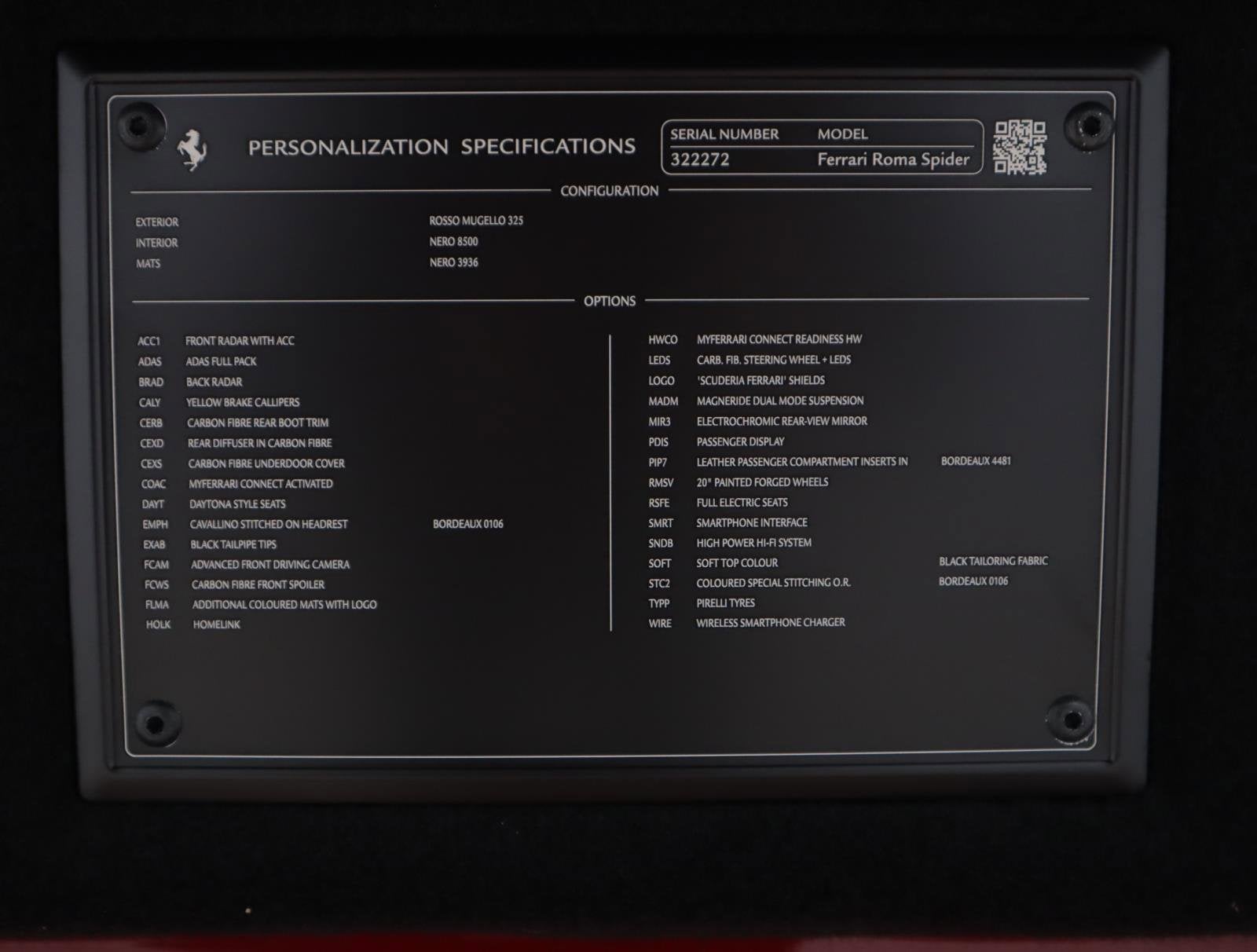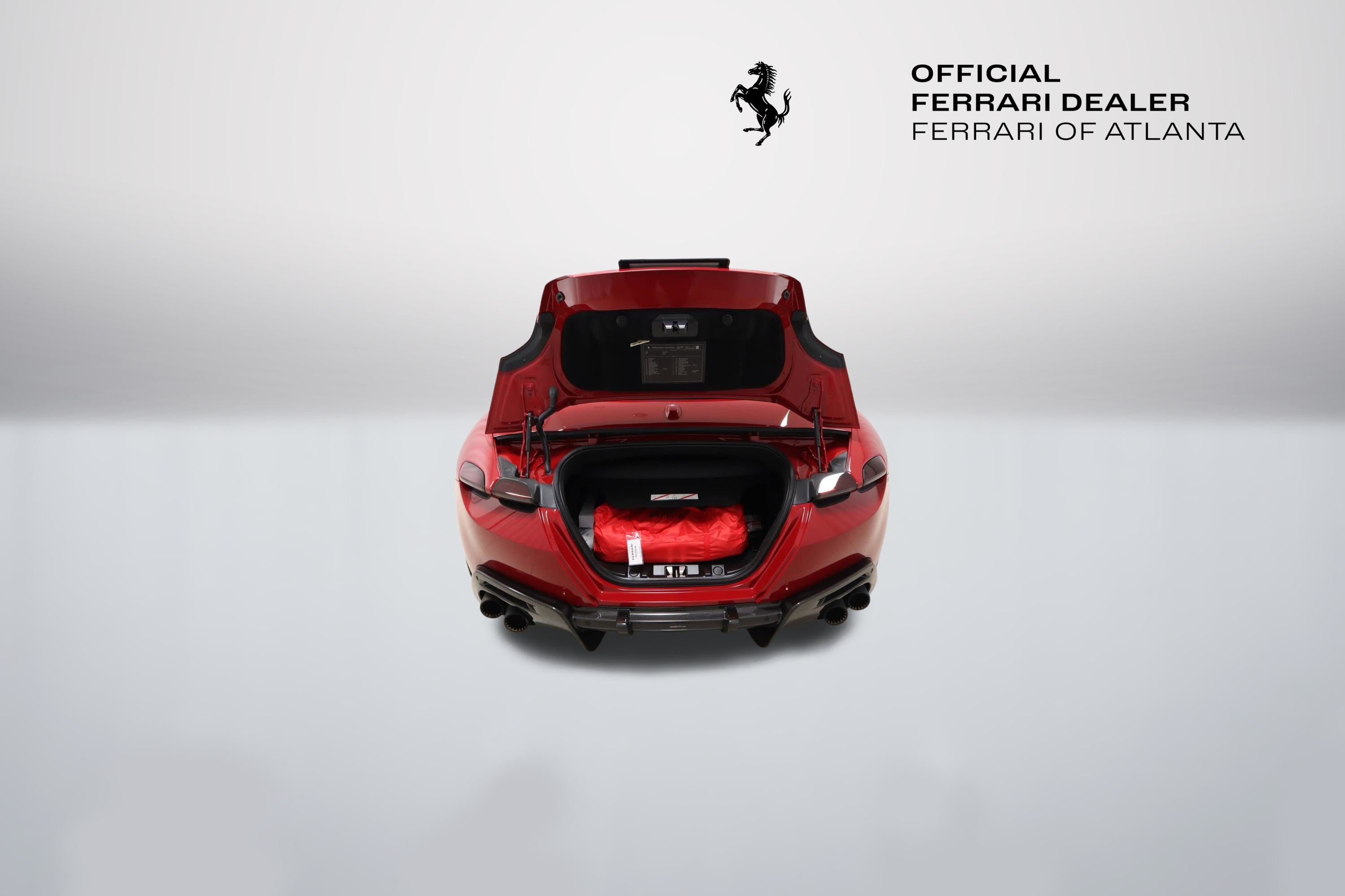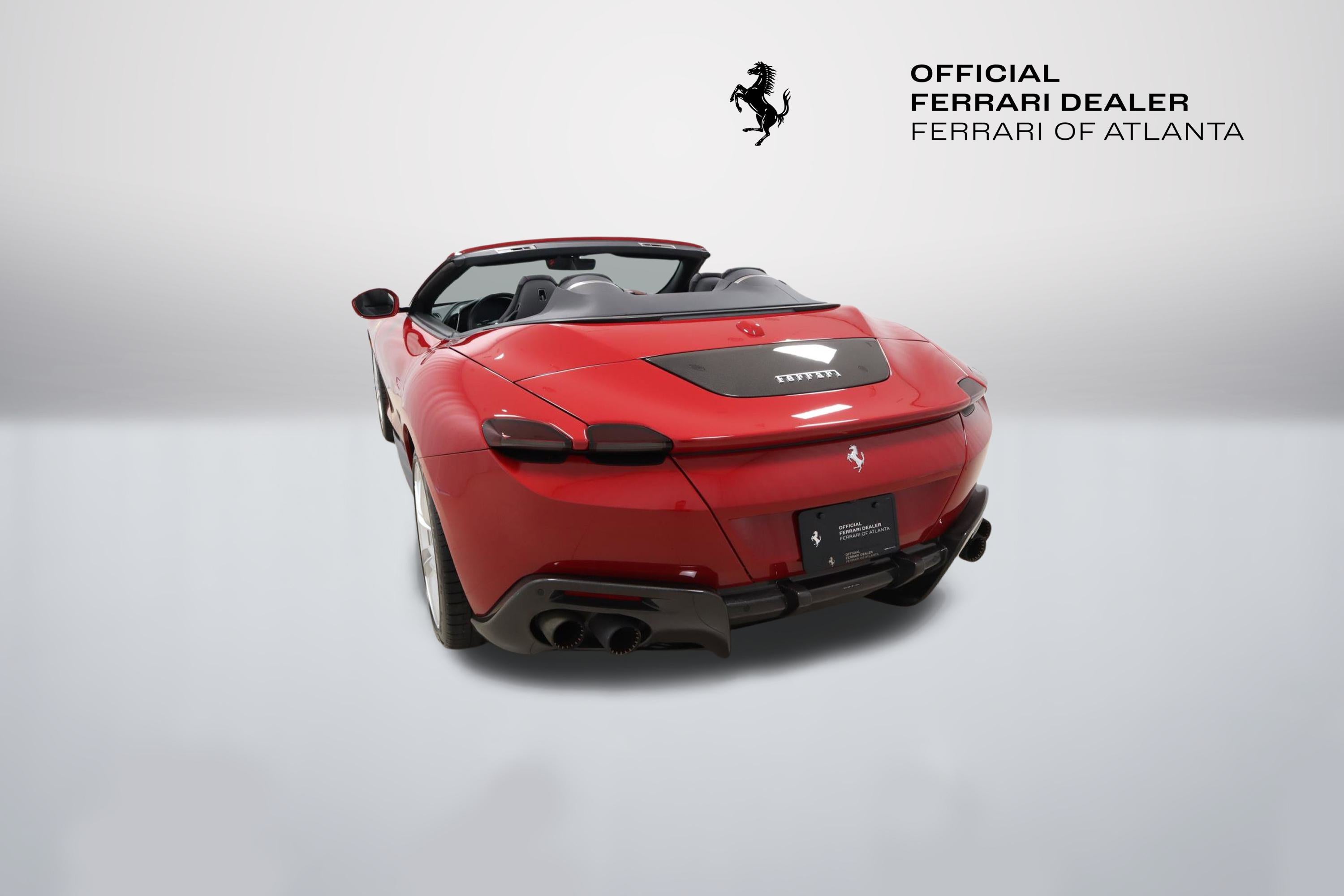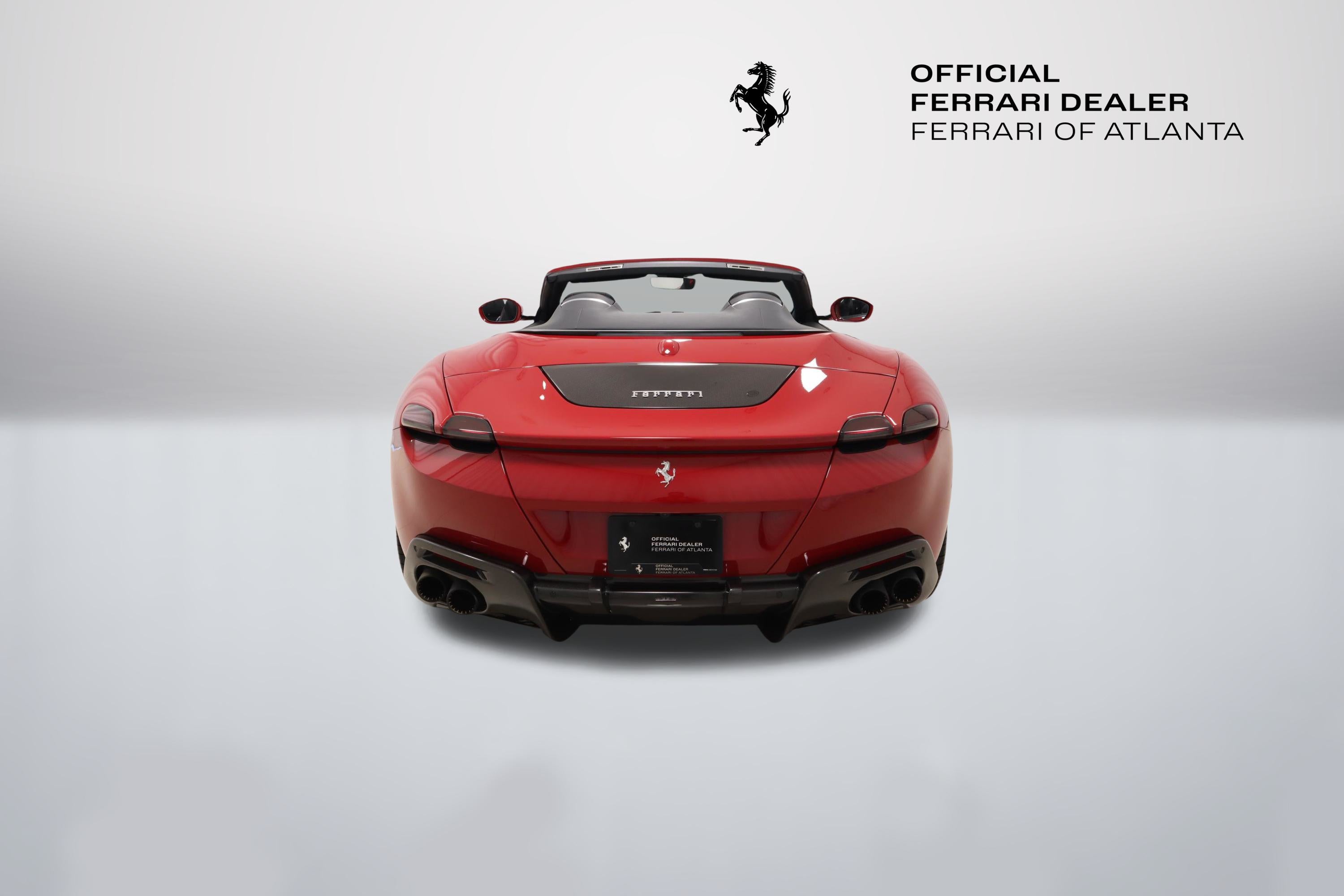 Ferrari of Atlanta is proud to present this delivery condition 2025 Ferrari Roma Spider. Finished in a rich Rosso Mugello over a Nero interior with Bordeaux accents, this Roma Spider is a classy example of Ferrari's gran touring convertible. Along with the excellent color combination, this Roma features loads of exterior carbon fiber, including the front spoiler, side skirts, rear spoiler, and rear diffuser and a sleek matte black exhaust. Inside the cabin, this Roma is equipped with Daytona seats with a Bordeaux Prancing Horse on the headrests, Bordeaux stitching throughout, a passenger display, and a carbon fiber steering wheel with LED shift lights. Other notable options include the ADAS package, HomeLink, and Magneride Dual Mode Suspension.