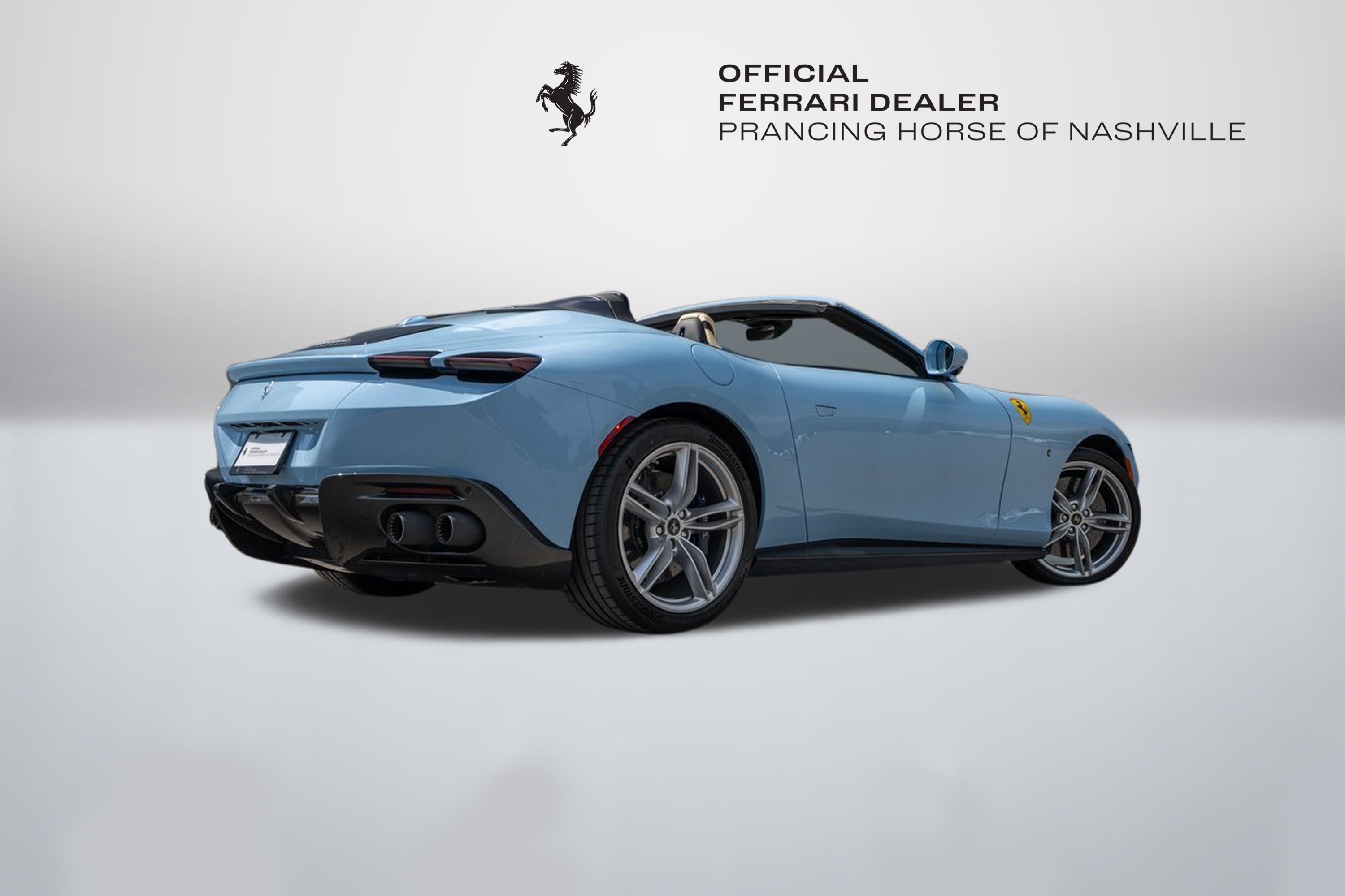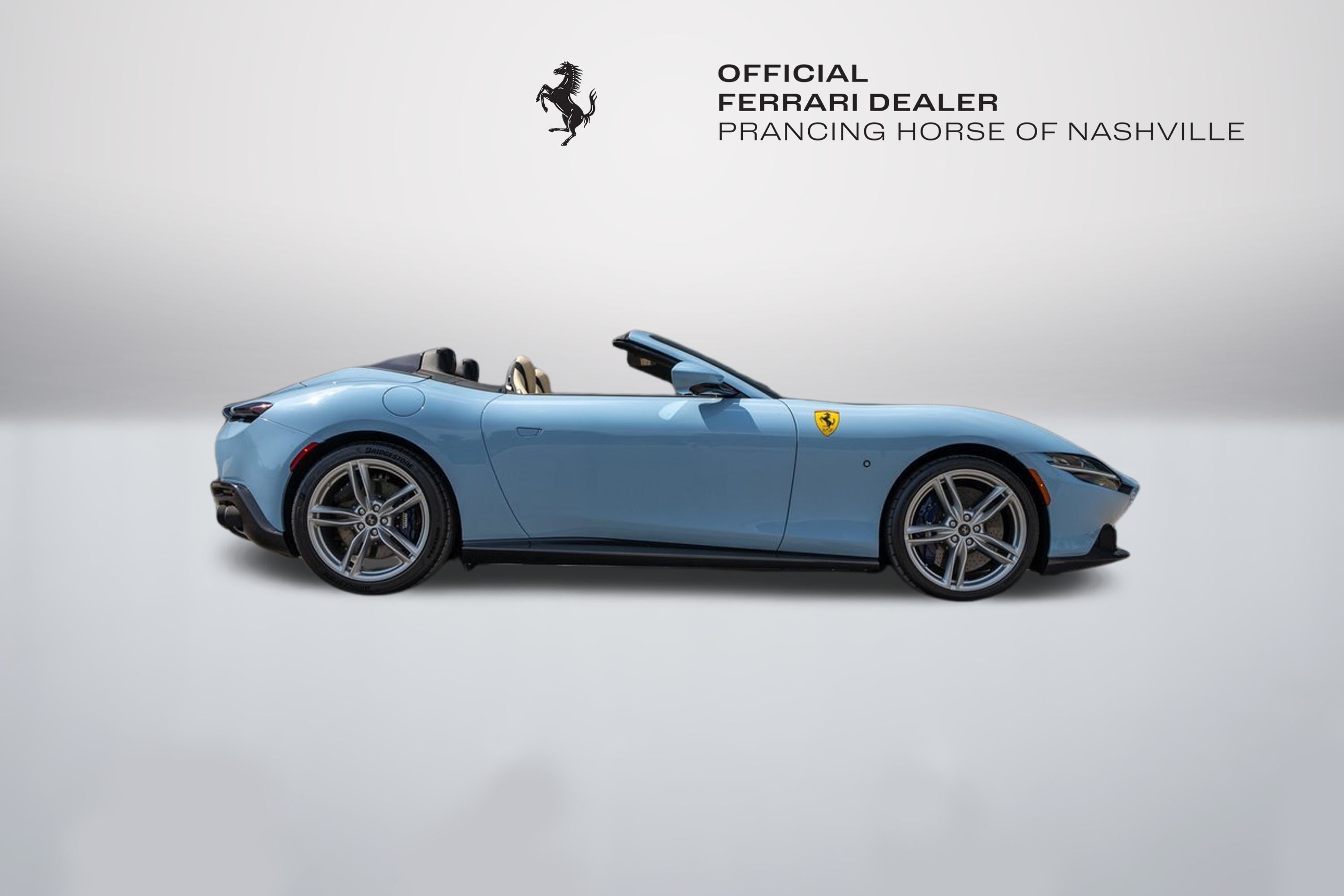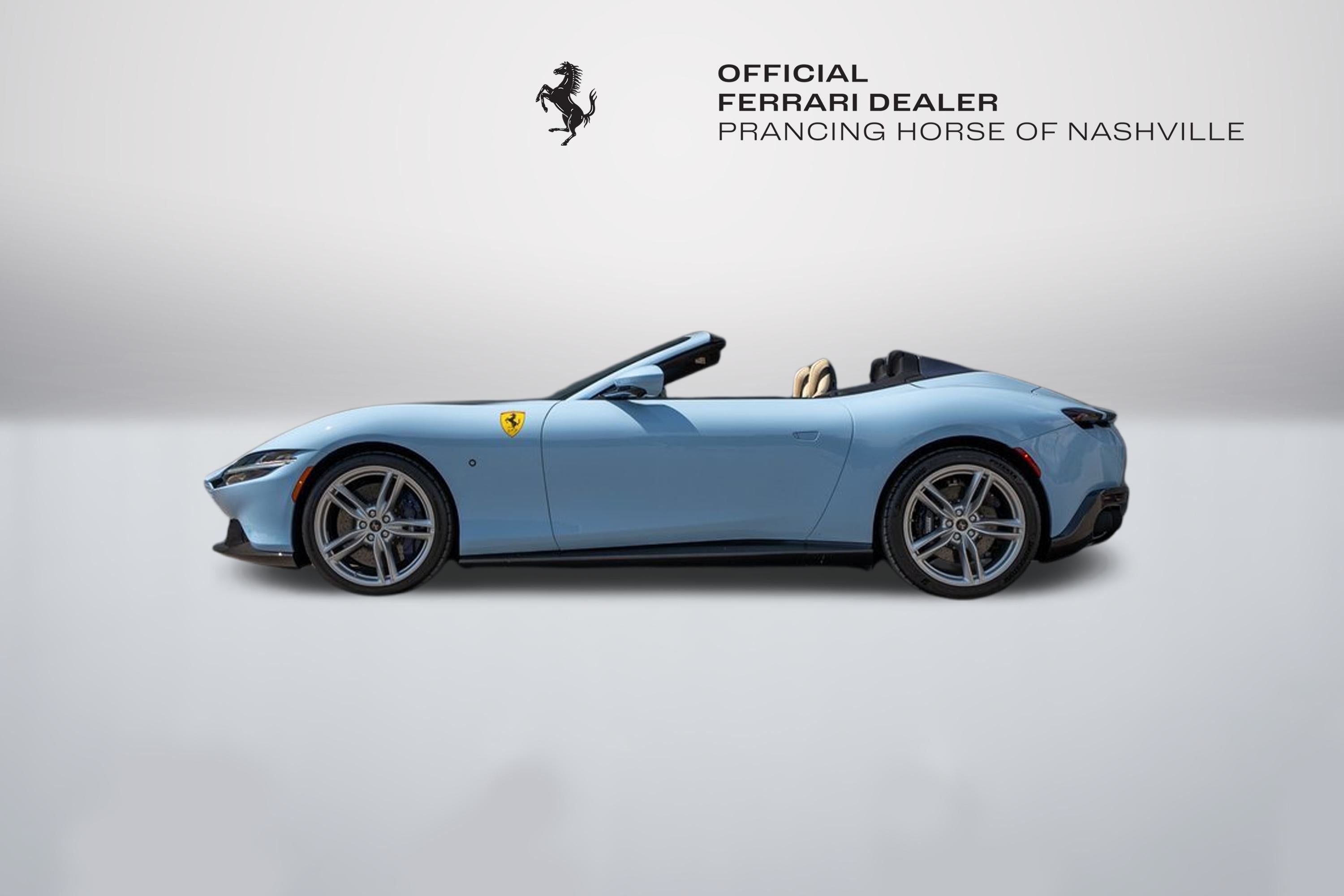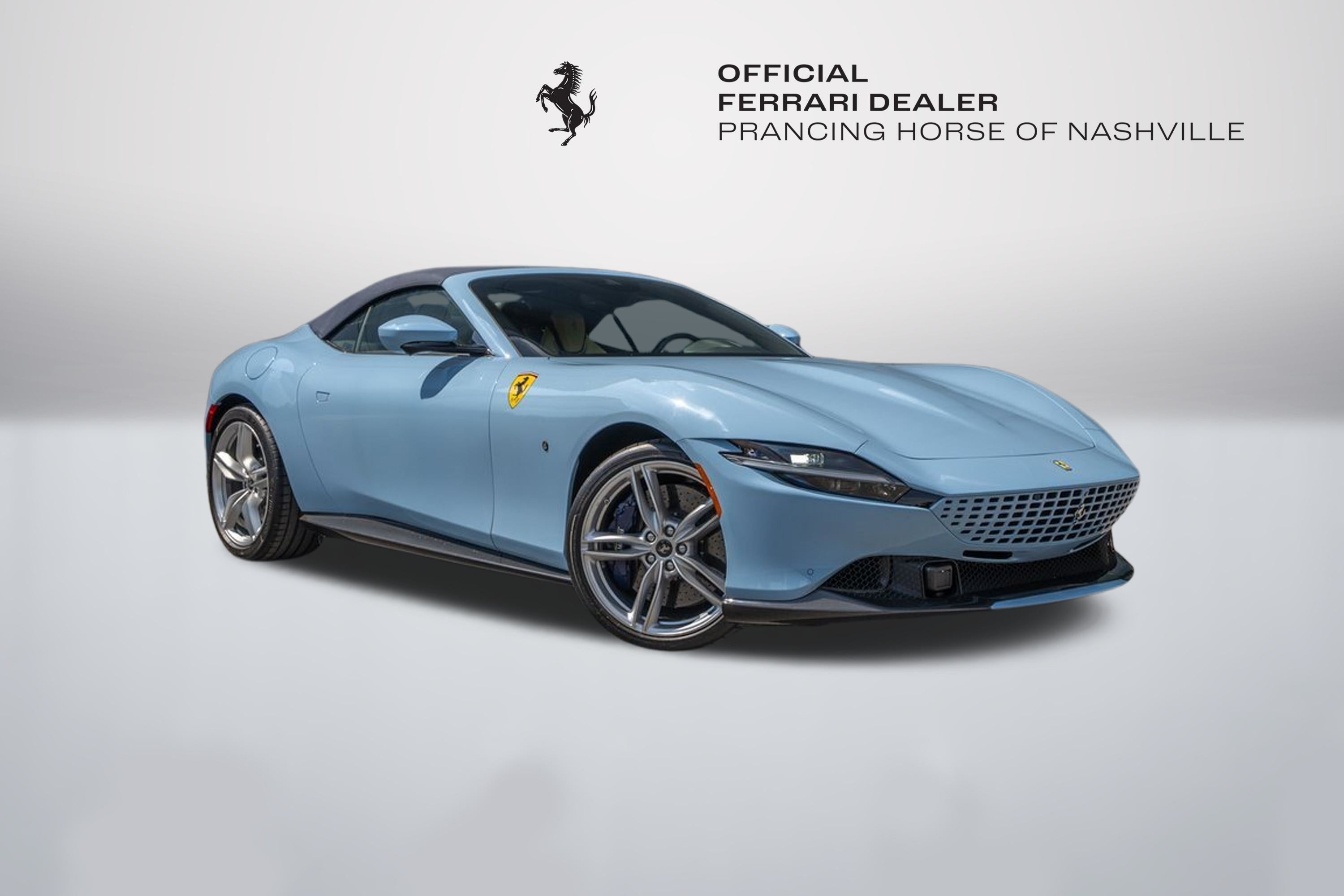 Prancing Horse of Nashville is pleased to present you this beautiful, Ferrari Approved, Certified Pre-Owned 2024 Ferrari Roma Spider in Special Azzuro La Plata on Crema with Complimentary Ferrari Bumper to Bumper Factory Warranty Extension and Pre-Paid Maintenance through 08/09/2031 The Ferrari Roma Spider is characterized by finesse and refinement, representing the pinnacle of performance in its category. This highly-optioned Roma Spider with original MSRP of $435,069 comes some of the most desirable features and sought-after equipment such as: Complete Adas pack Connectivity for Smartphone Wireless smartphone charger Heated Steering Wheel Premium Hi-Fi System Adaptive Front Headlights Active Matrix Led Lights Dual Mode Magneride Suspension Surround View Passenger Display Coloured Seat Belts Tonneau Cover in Tessuto Full electric ventilated front seats Front Seat Neck Warmer Carbon Fibre dashboard accents Carbon Fibre centre tunnel Horse Stitched on Headrest Gloss finish Carbon Fibre Kickplate Carbon Fibre.
