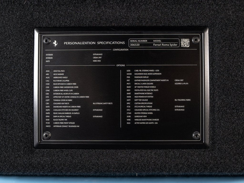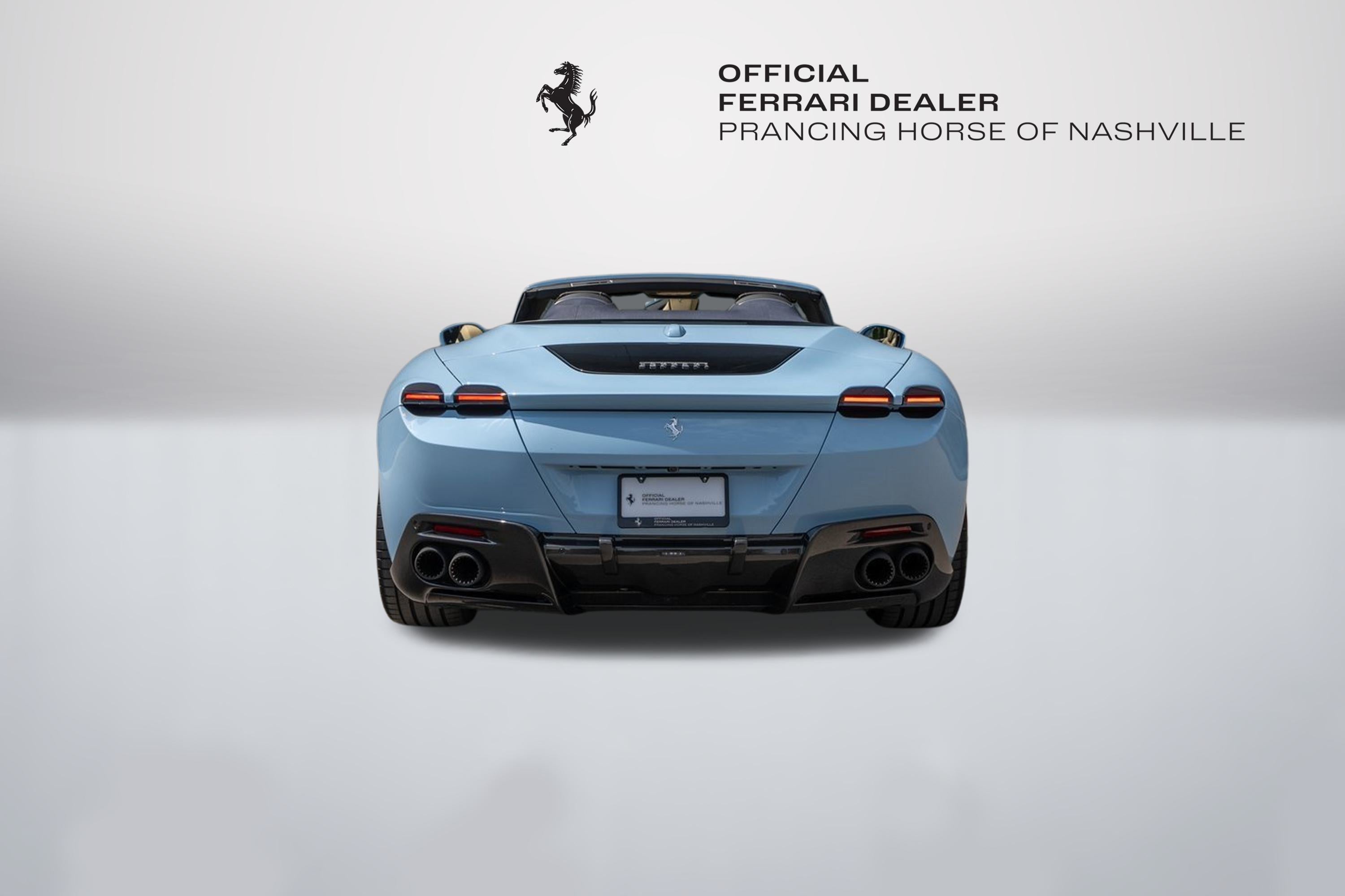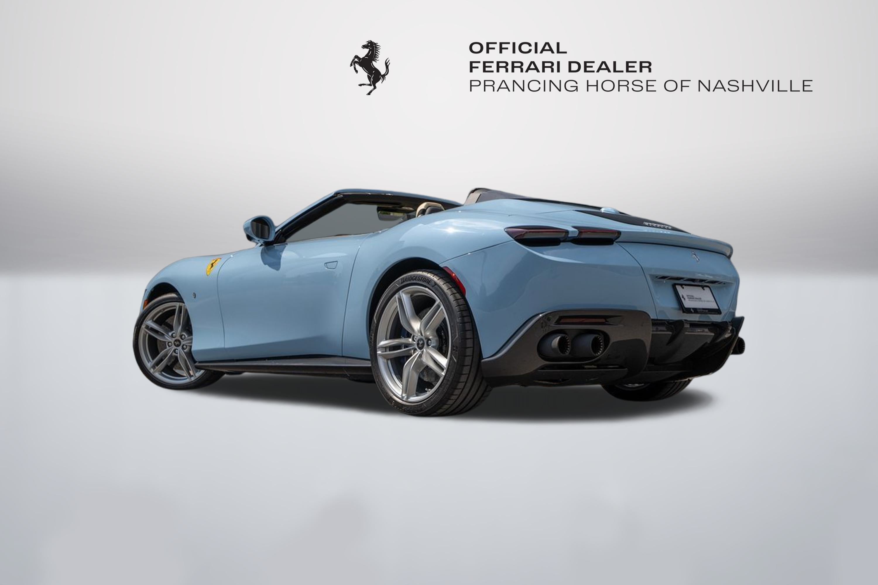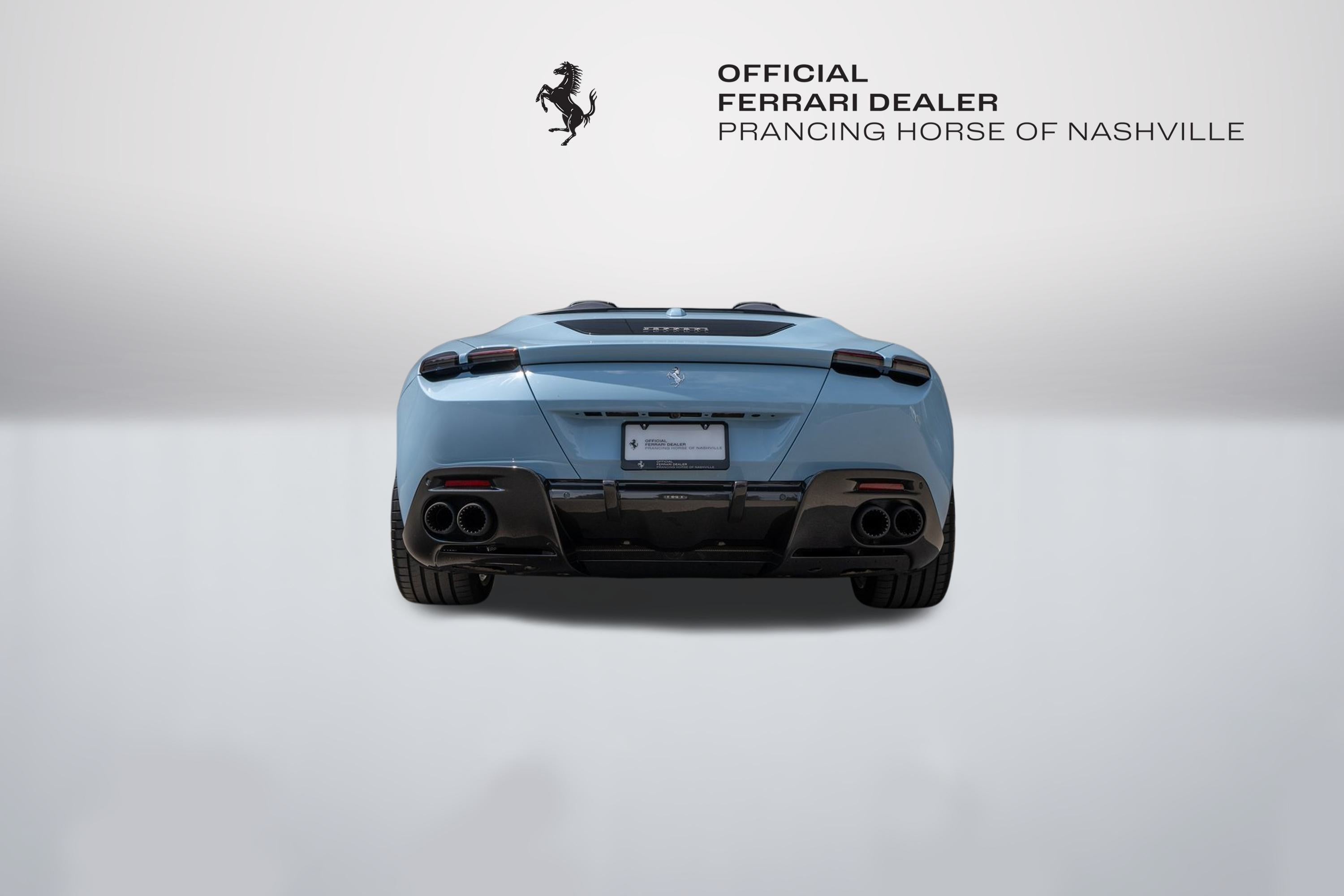 Prancing Horse of Nashville is pleased to present you this beautiful, Ferrari Approved, Certified Pre-Owned 2024 Ferrari Roma Spider in Special Azzuro La Plata on Crema with Complimentary Ferrari Bumper to Bumper Factory Warranty Extension and Pre-Paid Maintenance through 08/09/2031 The Ferrari Roma Spider is characterized by finesse and refinement, representing the pinnacle of performance in its category. This highly-optioned Roma Spider with original MSRP of $435,069 comes some of the most desirable features and sought-after equipment such as: Complete Adas pack Connectivity for Smartphone Wireless smartphone charger Heated Steering Wheel Premium Hi-Fi System Adaptive Front Headlights Active Matrix Led Lights Dual Mode Magneride Suspension Surround View Passenger Display Coloured Seat Belts Tonneau Cover in Tessuto Full electric ventilated front seats Front Seat Neck Warmer Carbon Fibre dashboard accents Carbon Fibre centre tunnel Horse Stitched on Headrest Gloss finish Carbon Fibre Kickplate Carbon Fibre.