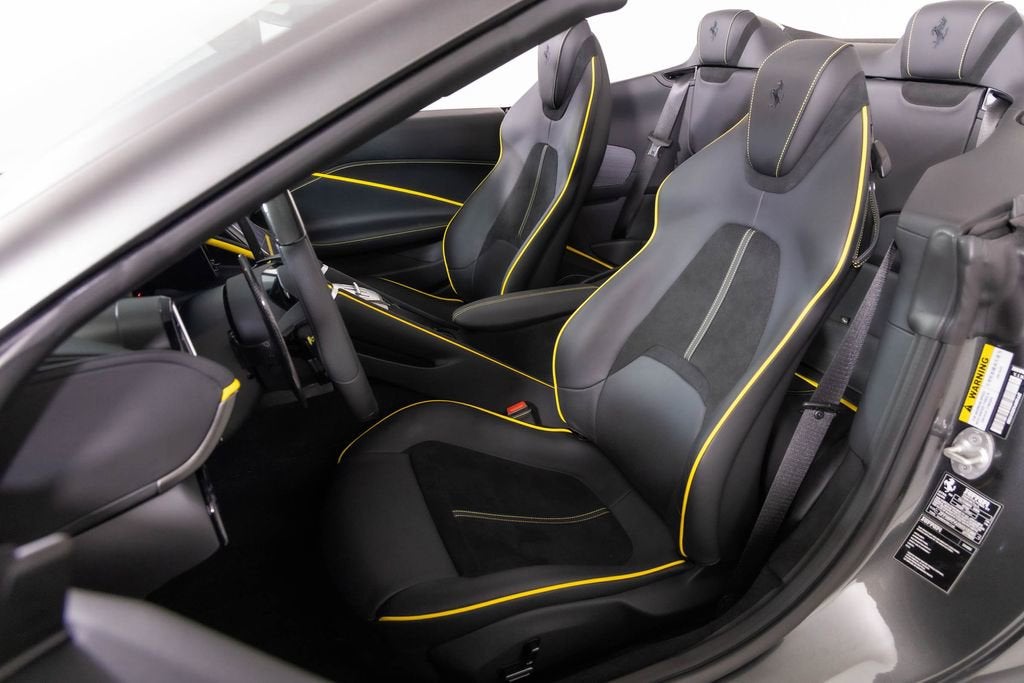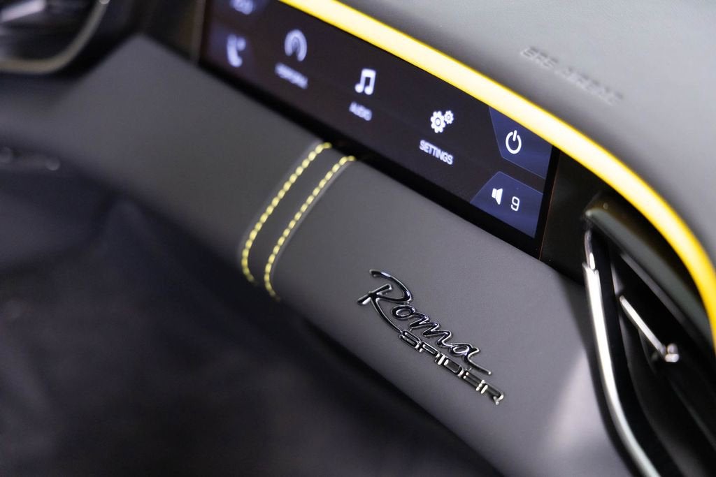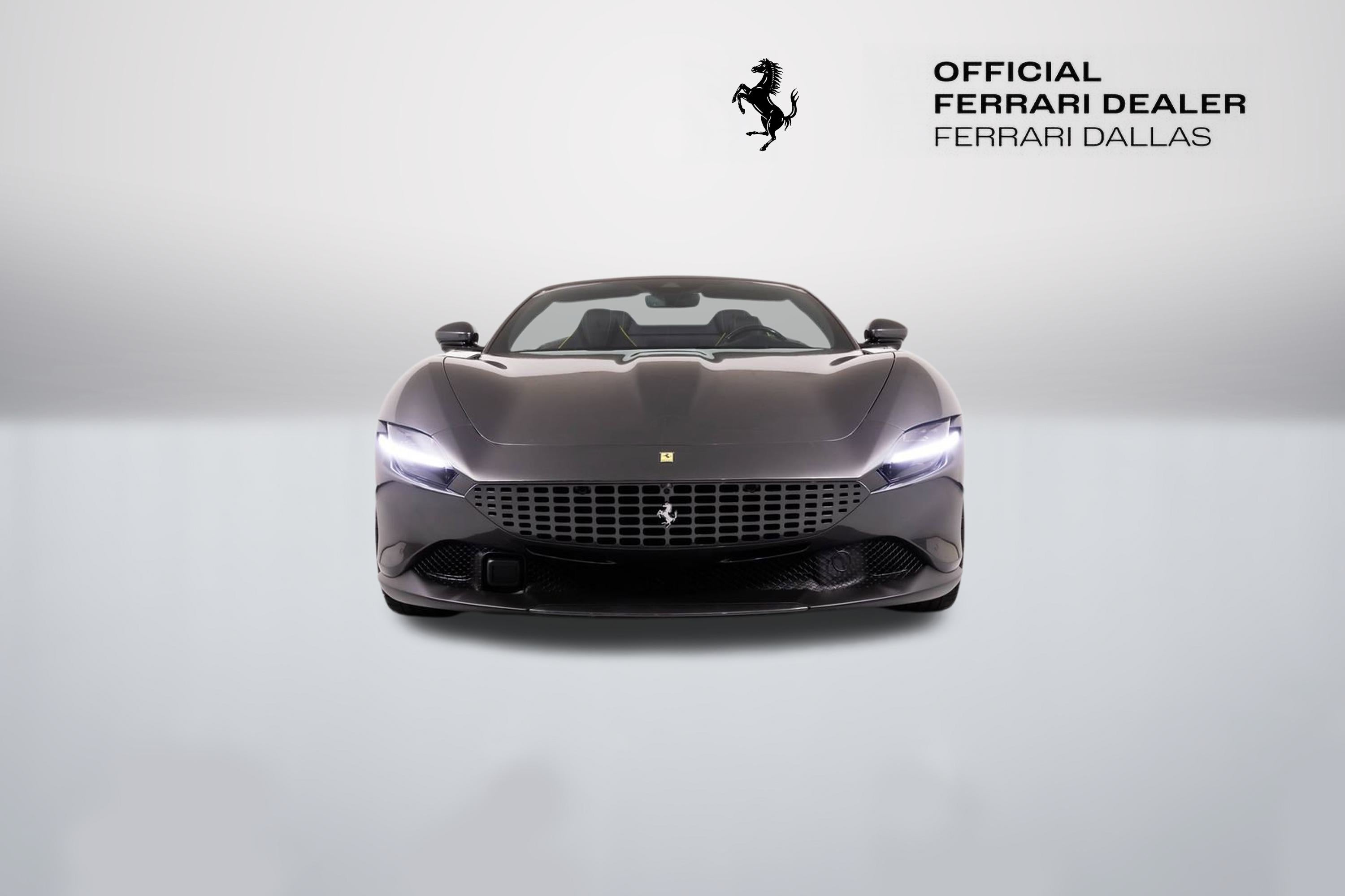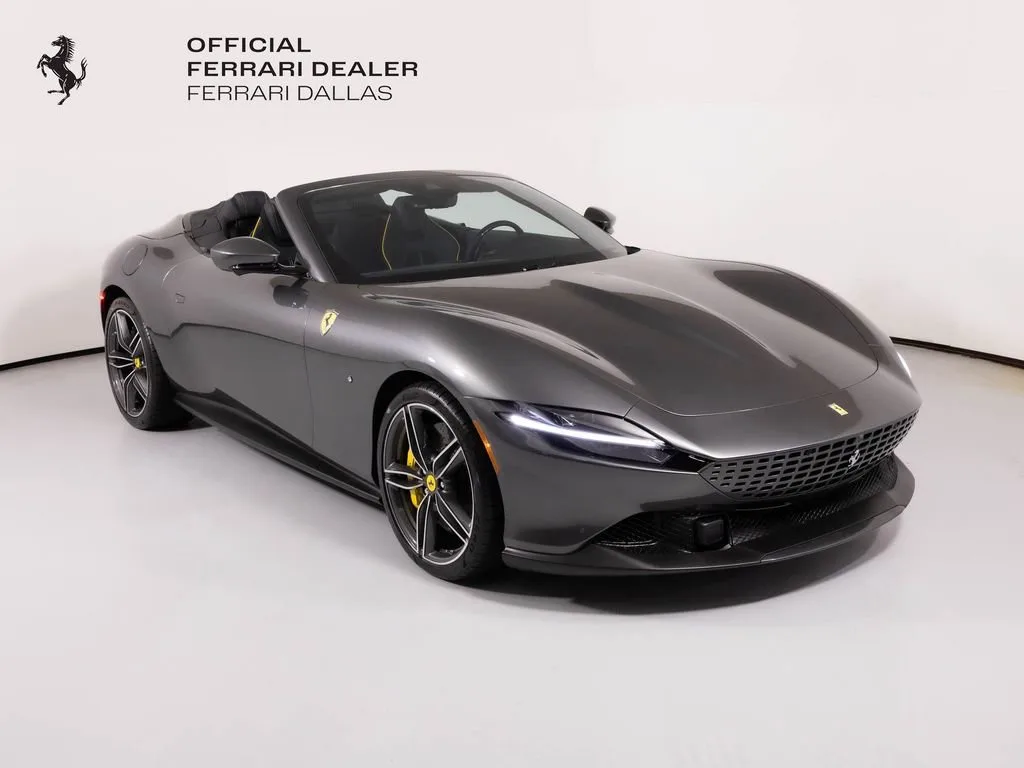 This Roma Spiders has $93,302 of customization and additional options. This 2025 Roma Spider has exactly that total in added features. The exterior color is non-standard and considered a historical Color. The Grigio Silverstone works incredibly well with the Nero leather Interior and yellow accents. This car has delivery miles of 199 and it has a clean CARFAX report. CLASSIC COLORS GRIGIO SILVERSTONE EXTRACAMPIONARIO-NOT STANDARD SOFT TOP COLOUR TESSUTO SARTORIALE NERO TONNEAU COVER IN TESSUTO NERO LEATHER INTERIOR COLOR LEATHER INTERIOR INSERTS NERO COLOURED INNER DETAILS EXTRACAMPIONARIO-NOT STANDARD PIPING ON SEAT BOLSTERS PELLE GIALLA CLDT WITH SPECIAL LEATHER PELLE GIALLA HORSE STITCHED ON HEADREST NERO REAR SEATS PRANC HOR IN EMPH NERO ADAS FULL PACKAGE YELLOW BRAKE CALIPERS CARBON FIBER STEERING WHEEL + LEDS EXTERIOR SILL KICK IN CARBON CARBON FIBRE UPPER TUNNEL TRIM DATR CARBON FIBRE DASHBOARD INSERTS BLACK CERAMIC EXHAUST PIPES HOMELINK GARAGE DOOR OPENER READINESS MYFERRARI CONNECT SCUDERIA FERRARI SHIELDS MAGNERIDE DUAL MODE SUSPENSION PASSENGER DISPLAY MYFERRARI CONNECT ACTIVATED PERSONALIZATION PACK 20 INCH FORGED DIAMOND RIMS VENTILATED FULL ELECTRIC SEATS SMARTPHONE CONNECTION HIGH POWER HIFI SYSTEM SPECIAL FEATURES COLOURED SPECIAL STITCHING FILO SPECIALE GIALLO HEATED STEERING WHEEL SURROUND VIEW PIRELLI TYRES VEHICLE PERSONALIZATION PLATE WIRELESS CHARGER SMARTPHONE ACTIVE MATRIX LED LIGHTS USA 2 KEYS MANUALS CAR COVER DUFFLE BAG BATTERY TENDER As one of the top-selling pre-owned Ferrari dealers in the nation, Ferrari Dallas takes tremendous pride in offering only the best late-model, low-mileage Ferraris available anywhere in North America. For specific details on the vehicle listed above, please contact any of our qualified sales consultants by calling 888-701-5761. We look forward to assisting you.
