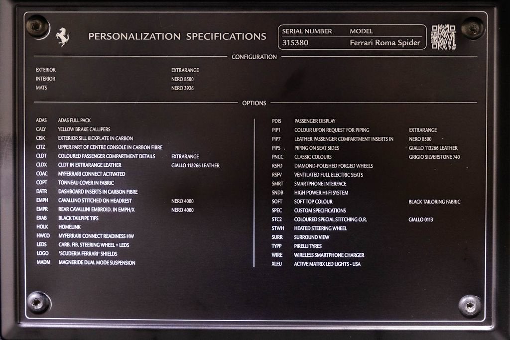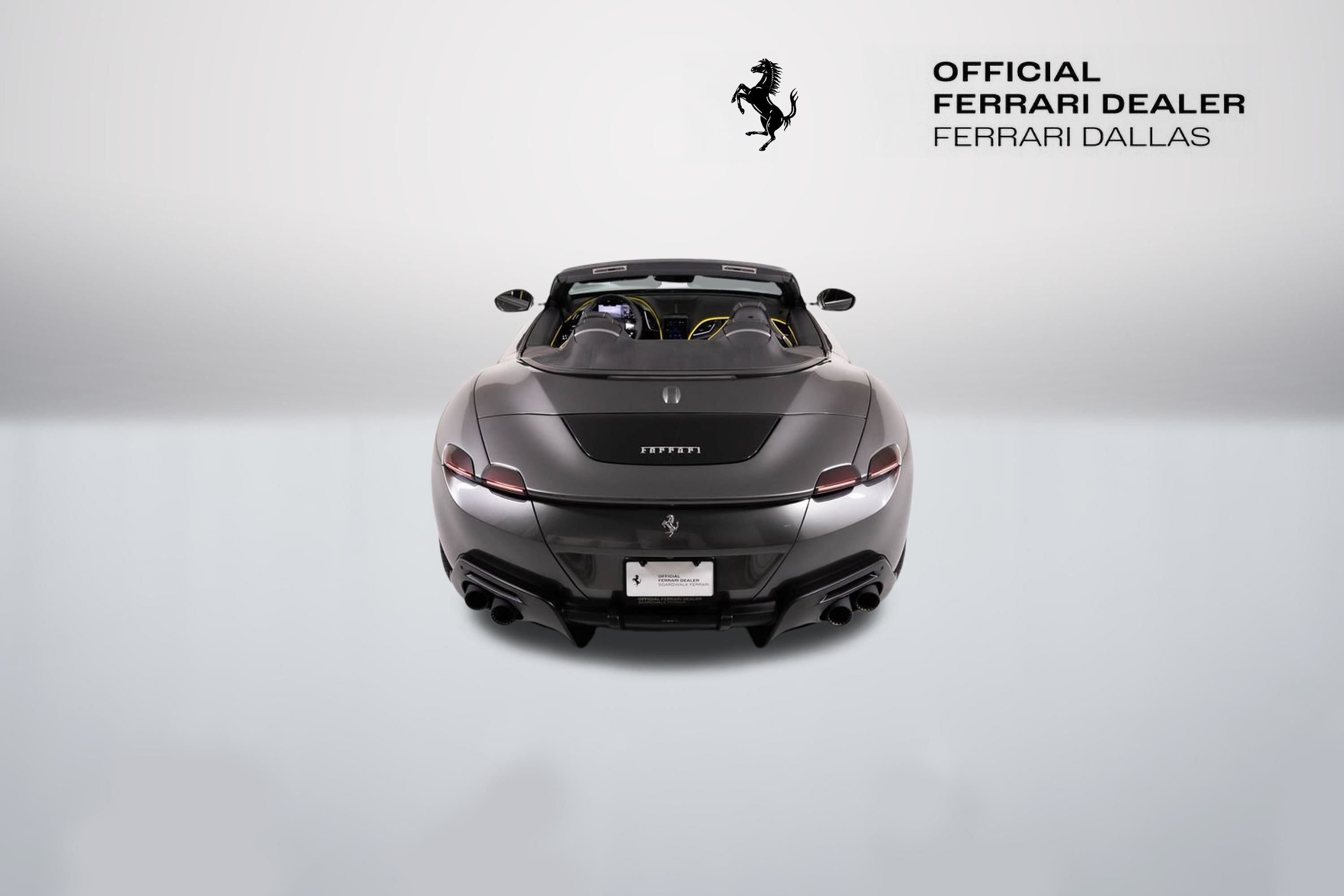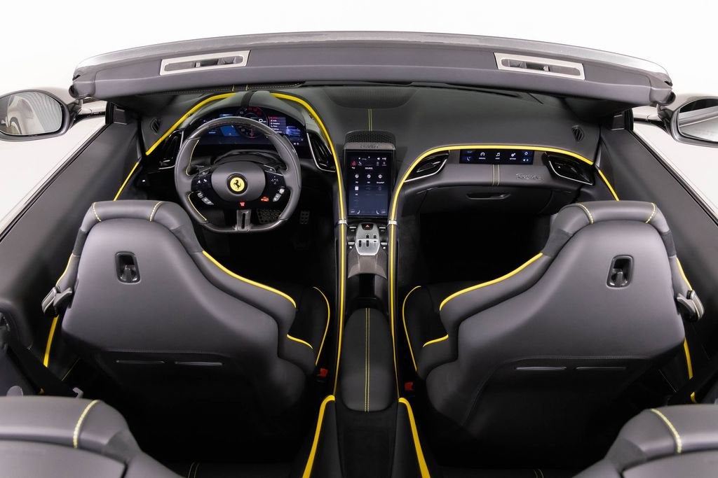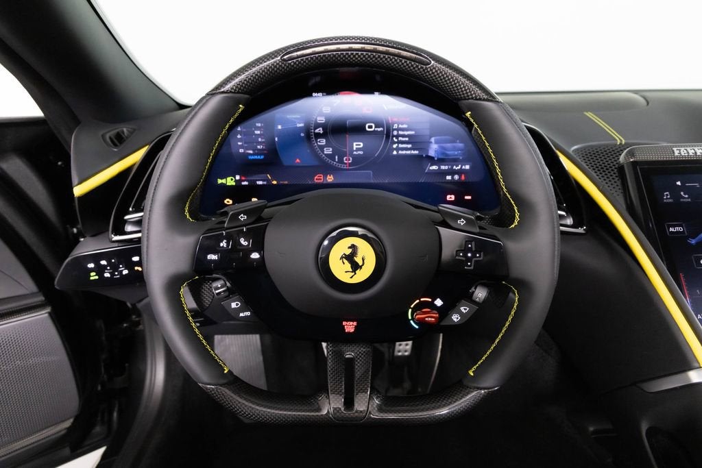 This Roma Spiders has $93,302 of customization and additional options. This 2025 Roma Spider has exactly that total in added features. The exterior color is non-standard and considered a historical Color. The Grigio Silverstone works incredibly well with the Nero leather Interior and yellow accents. This car has delivery miles of 199 and it has a clean CARFAX report. CLASSIC COLORS GRIGIO SILVERSTONE EXTRACAMPIONARIO-NOT STANDARD SOFT TOP COLOUR TESSUTO SARTORIALE NERO TONNEAU COVER IN TESSUTO NERO LEATHER INTERIOR COLOR LEATHER INTERIOR INSERTS NERO COLOURED INNER DETAILS EXTRACAMPIONARIO-NOT STANDARD PIPING ON SEAT BOLSTERS PELLE GIALLA CLDT WITH SPECIAL LEATHER PELLE GIALLA HORSE STITCHED ON HEADREST NERO REAR SEATS PRANC HOR IN EMPH NERO ADAS FULL PACKAGE YELLOW BRAKE CALIPERS CARBON FIBER STEERING WHEEL + LEDS EXTERIOR SILL KICK IN CARBON CARBON FIBRE UPPER TUNNEL TRIM DATR CARBON FIBRE DASHBOARD INSERTS BLACK CERAMIC EXHAUST PIPES HOMELINK GARAGE DOOR OPENER READINESS MYFERRARI CONNECT SCUDERIA FERRARI SHIELDS MAGNERIDE DUAL MODE SUSPENSION PASSENGER DISPLAY MYFERRARI CONNECT ACTIVATED PERSONALIZATION PACK 20 INCH FORGED DIAMOND RIMS VENTILATED FULL ELECTRIC SEATS SMARTPHONE CONNECTION HIGH POWER HIFI SYSTEM SPECIAL FEATURES COLOURED SPECIAL STITCHING FILO SPECIALE GIALLO HEATED STEERING WHEEL SURROUND VIEW PIRELLI TYRES VEHICLE PERSONALIZATION PLATE WIRELESS CHARGER SMARTPHONE ACTIVE MATRIX LED LIGHTS USA 2 KEYS MANUALS CAR COVER DUFFLE BAG BATTERY TENDER As one of the top-selling pre-owned Ferrari dealers in the nation, Ferrari Dallas takes tremendous pride in offering only the best late-model, low-mileage Ferraris available anywhere in North America. For specific details on the vehicle listed above, please contact any of our qualified sales consultants by calling 888-701-5761. We look forward to assisting you.