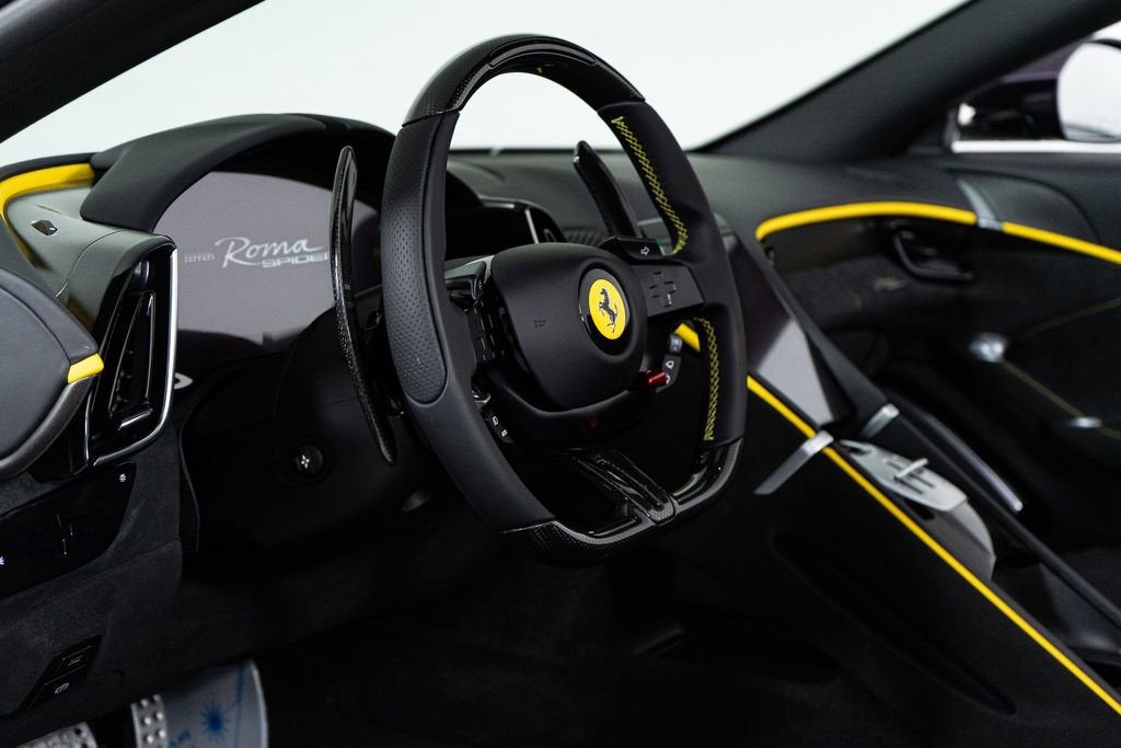 *Ferrari of Rancho Mirage* is proud to present a beautifully personalized open-top grand tourer the *Ferrari Roma Spider*. Finished in a sophisticated *Extra-Range Nero 8500* exterior over a refined *Nero 3936 interior*, this Roma Spider blends timeless Ferrari design with modern luxury and bespoke craftsmanship. This example is thoughtfully configured with a rich selection of comfort, technology, and design-focused options, highlighted by special exterior finishes, tailored interior details, and advanced connectivity features, creating a Roma Spider that is both elegant and highly distinctive. ==== Performance & Engineering Highlights ==== * *Diamond-Polished Forged Wheels* * *Black Tailpipe Tips* * *Glossy Black Brake Calipers* ==== Exterior & Design Features ==== * *Extra-Range Nero 8500* exterior finish * *Special 2-Layer Exterior Colours* * *Scuderia Ferrari Shields* on front fenders * *Fabric Tonneau Cover* * *Soft Top in Black Tailoring Fabric* ==== Interior & Driver-Focused Details ==== * *Nero 3936 interior* * *Quilted Style Seats* * *Full Electric Seats* * *Central Part of Seats in Extra-Range Giallo 113266 Leather* * *Coloured Passenger Compartment Details* * *Piping on Seat Sides* (Colour Upon Request) * *Coloured Standard Stitching O.R.* in Giallo (0113) * *Cavallino Stitched on Headrests* in Giallo (0113) ==== Technology & Convenience ==== * *Apple CarPlay / Smartphone Interface* * *Wireless Smartphone Charger* * *High Power Hi-Fi System* * *Advanced Front Driving Camera* * *Back Radar* * *Electrochromic Rear-View Mirror* * *MyFerrari Connect Activated* * *MyFerrari Connect Readiness Hardware* ==== Additional Details ==== * Model: Ferrari Roma Spider * Serial Number: 314531 * Exterior Color: Extra-Range Nero 8500 * Interior Color: Nero 3936 * Interior Accent Color: Extra-Range Giallo 113266 Leather * Contrast Stitching: Giallo (0113) * Factory Personalization Specifications on File The *Ferrari Roma Spider* offers an elegant interpretation of open-air Ferrari motoring, combining refined proportions, luxurious finishes, and advanced technology. With its Extra-Range exterior color, tailored interior detailing, and extensive personalization, this Roma Spider stands as a truly bespoke example designed for effortless grand touring. *Ferrari of Rancho Mirage*, a *LAPIS dealership*, delivers exceptional retail, service, and ownership experiences; world-class client care; and an unwavering commitment to the passion that inspires Ferrari owners and automotive enthusiasts around the world. For your convenience, we offer global shipping, trade-in opportunities, and personalized financing options. *Contact us today* to explore ownership of this extraordinary Ferrari. Visit us at *71441 CA-111, Rancho Mirage, CA 92270*, or call *760-469-9683*.