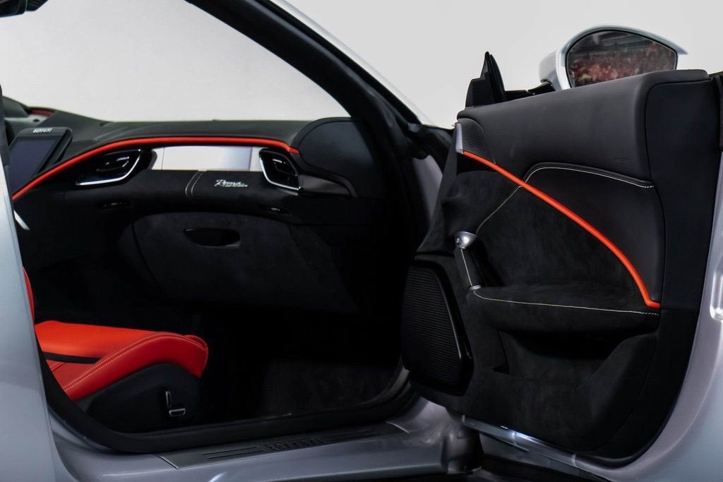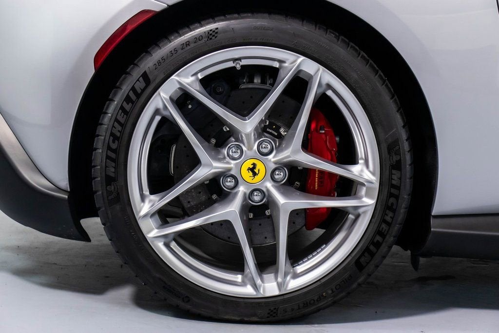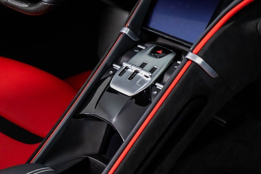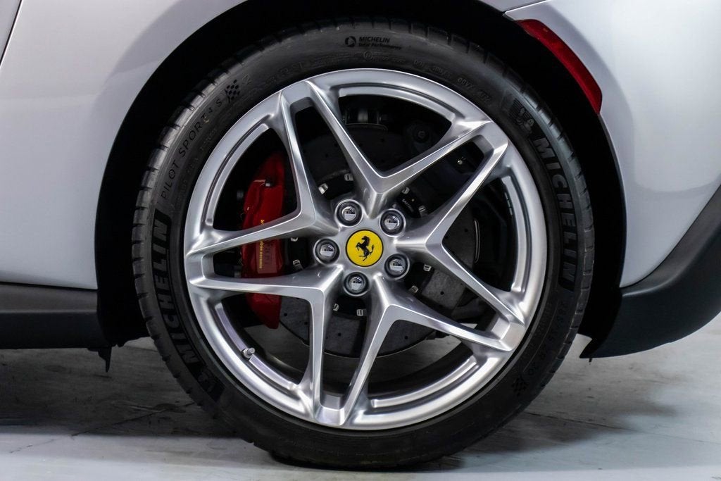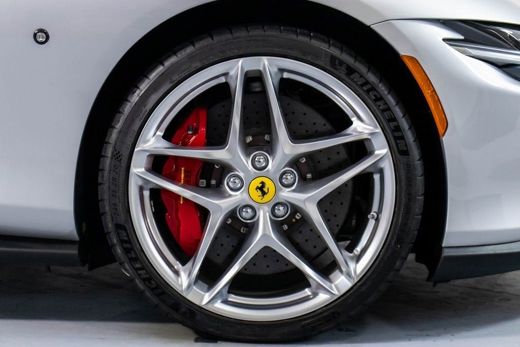 317039 Exterior: Argento Nurburgring Interior: Rosso Ferrari Mats: Nero 2025 Ferrari Roma Spider Options: Back Radar Red Brake Calipers MyFerrari Connect Activated Tonneau Cover in Fabric Cavallino Stitched on Headrest in Grigio Chiaro Black Tailpipe Tips Advanced Front Driving Camera Additional Colored Mats with Logo Home Link MyFerrari Connect Readiness HW Carb. Fib. Steering Wheel + LEDS Central Part of Seats in INTC Leather 'Scuderia Ferrari' Shields Magneride Dual Mode Suspension Electrochromic Rear-View Mirror Passenger Display Classic Colors Argento Nurburgring STD Chrome Wheels Ventilated Full Electric Seats Smartphone Interface Soft Top Color Black Tailoring Fabric Colored Special Stitching O.R. in Grigio Chiaro Surround View Michelin Tires Wireless Smartphone Charger The 2025 Ferrari Roma Spider in Argento Nurburgring blends classic Ferrari elegance with cutting-edge open-top performance. Its Rosso Ferrari interior and Nero mats create a bold, timeless cockpit enhanced by ventilated full electric seats, INTC leather seat centers, and Grigio Chiaro special stitching that matches the Cavallino embroidered on the headrests. A black tailoring fabric soft top pairs perfectly with the iconic silver exterior, while red brake calipers, chrome wheels, and 'Scuderia Ferrari' shields complete the signature Ferrari look. Advanced features such as Surround View, Advanced Front Driving Camera, Back Radar, Electrochromic rear-view mirror, and Magneride Dual Mode Suspension elevate both safety and driving precision. The cabin is enriched with a Passenger Display, Carb. Fib. Steering Wheel with LEDs, wireless smartphone charger, Home Link, and full MyFerrari Connect integration. Finished with black tailpipe tips, Michelin tires, and additional colored mats, this Roma Spider captures pure grand-touring spirit with open-air sophistication.
