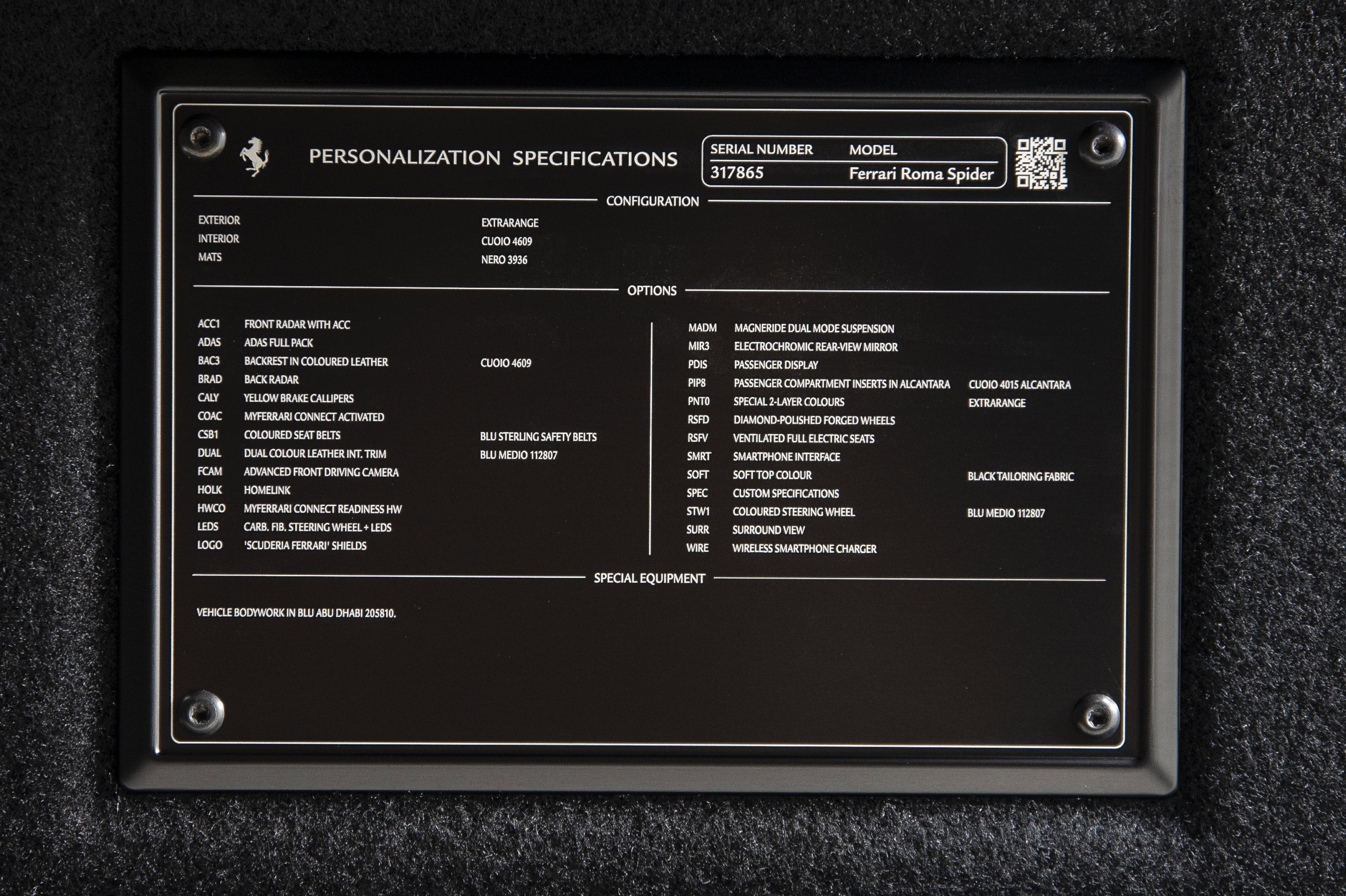 The Ferrari Roma Spider is a stunning and luxurious grand tourer that boasts a sleek and timeless design! We are proud to present this one-owner 2025 Roma Spider that has covered only 1,157 miles. It was tastefully ordered in stunning Blu Abu Dhabi paint over Cuoio leather. It has a tremendous list of desirable factory options listed below. This Roma Spider is of course Ferrari Approved, and has completed a comprehensive 101 Point Ferrari inspection, and has had all service, updates, recalls, and service bulletins performed. It is complete with all keys, books/manuals, car cover and battery charger. This Roma Spider comes with Ferrari warranty until 3/19/2029, and no-cost annual maintenance until 3/19/2032. We offer a number of attractive financing programs through Ferrari Financial Services, including extended financing terms of up to 84 months, leasing, and balloon loan options that offer the flexibility of ownership with the affordable monthly obligation of a lease. ACC1FRONT RADAR WITH ACC ADASADAS FULL PACKAGE BAC3COLOR LEATHER SEATS BACKRESTCUOIO 4609 BRADBACK RADAR CALYYELLOW BRAKE CALIPERS COACMYFERRARI CONNECT ACTIVATED CRPTCarpets colorsNERO 3936 CSB1COLOURED SAFETY BELTSCINTURE BLU STERLING DUALDUAL COLOUR LEATHER INT. TRIMBLU MEDIO 112807 EXTCExternal colorsEXTRACAMPIONARIO-NOT STANDARD FCAMADVANCED FRONT DRIVING CAMERA HOLKHOMELINK GARAGE DOOR OPENER HWCOHW READINESS MYFERRARI CONNECT INTCInternal colorsCUOIO 4609 LEDSCARB.FIB.STEERING WHEEL + LEDS LOGO'SCUDERIA FERRARI' SHIELDS MADMMAGNERIDE DUAL MODE SUSPENSION MIR3ELECTROCHROMIC REARWIEW MIRROR PDISPASSENGER DISPLAY PIP8COLOR ALCANTARA INT.