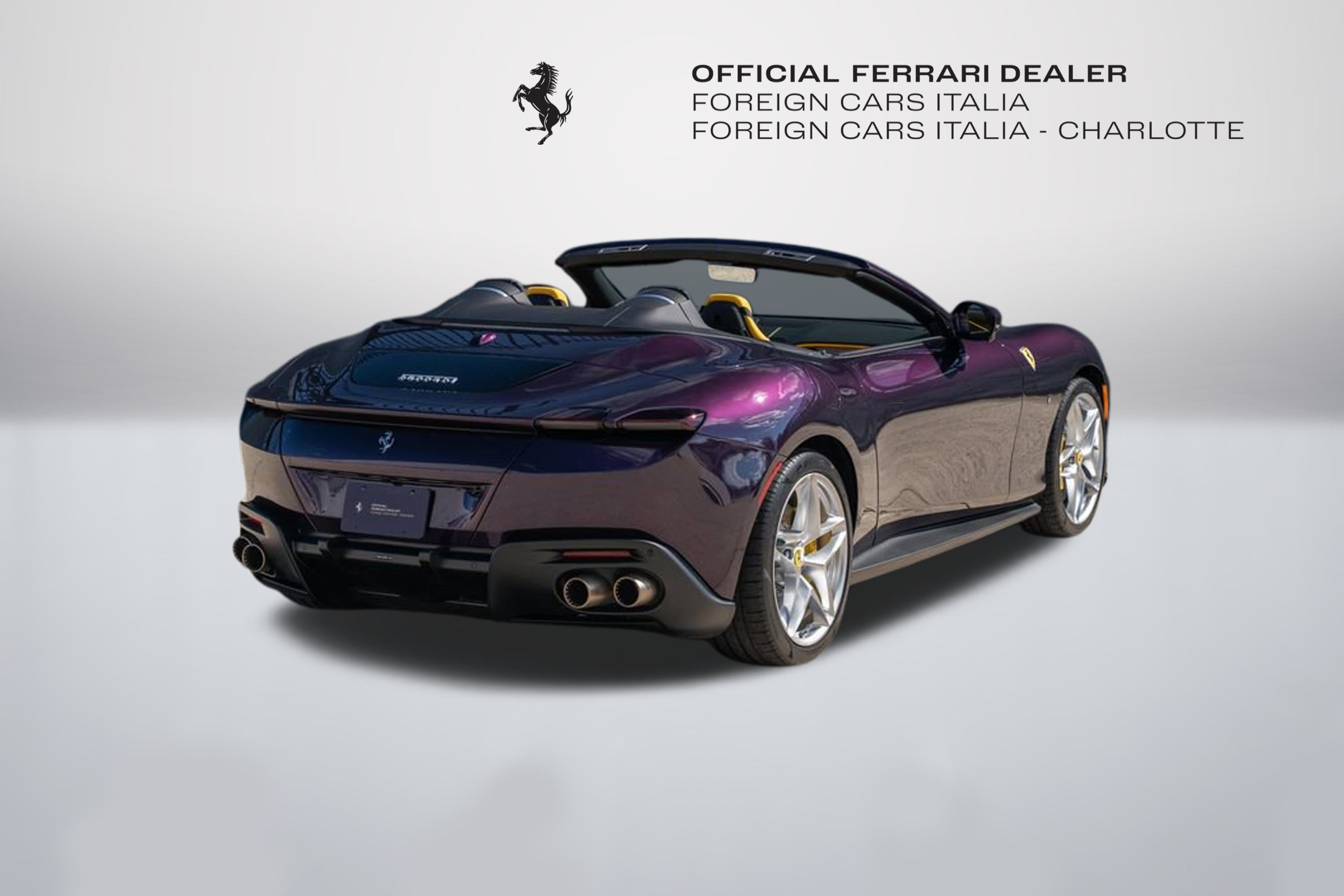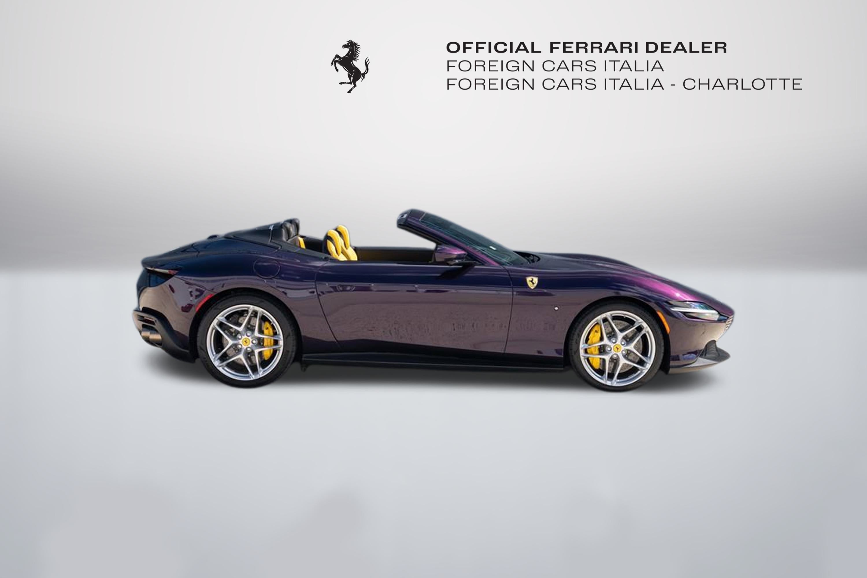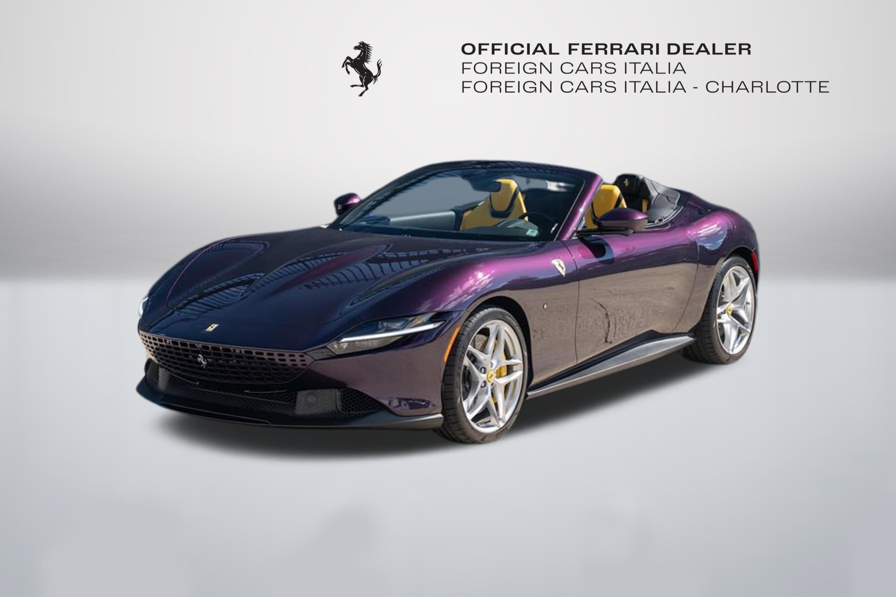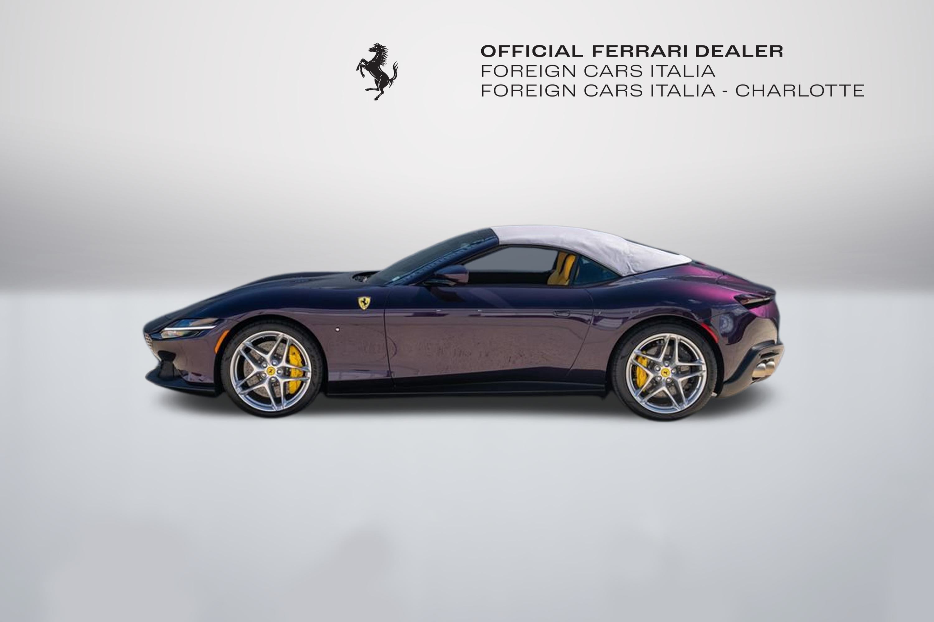 Foreign Cars Italia Charlotte | Official Ferrari Dealer. Is proud to offer this unique 2024 Ferrari Roma Spider consignment, featured in Hong Kong Viola over Giallo Modena interior. This vehicle is a head turner, and one fo the most beautifully appointed Roma Spiders currently in the market. This vehicle was originally purchase at our store, and its locally owned. This vehicle comes with: Neck Warmer | Back Radar | Yellow Calippers | Upper Centre Console in Carbon | Coloured Passanger Compartments | Coloured Seat Belts | Dashboard Inserts in Carbon | Daytona Seats | Cavallino Stitched on Headrest | Rear Cavallino on Headrest | Sport Tailtips | Advanced Front Driving Camera | Scuderia Shields | Magneride Suspension | Electrochromic Rear-View Mirror | 2-Layer Color (Hong Kong Viola) | Ventilated Electric Seats | Smartphone Interface | Hi-Fi System | Softop in Grey | Surrond View | and many more. For a tailored consultation, and carefully crafted walk around video, please contact Joe Greenberg, Ferrari General Manager at 860.550.1149.