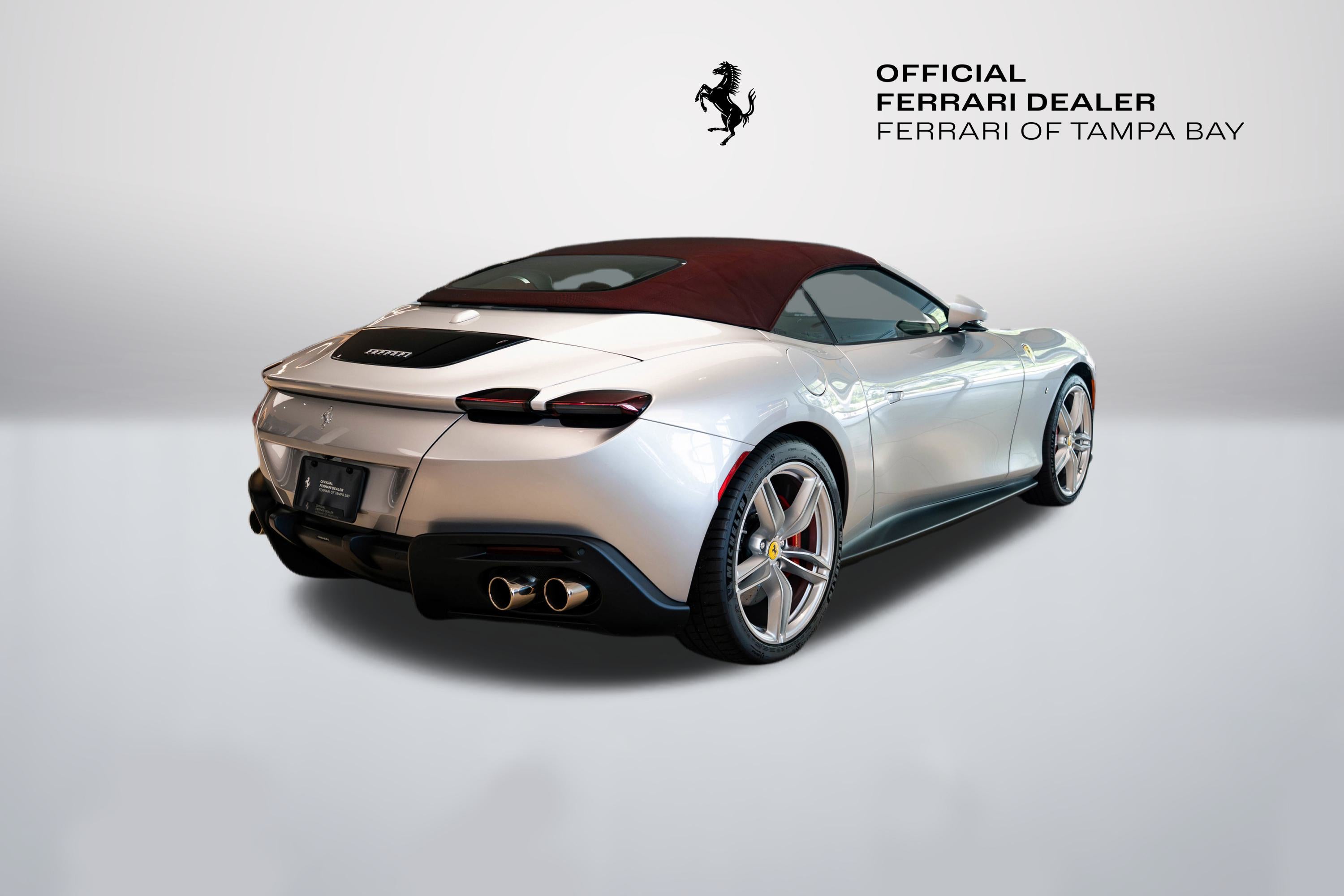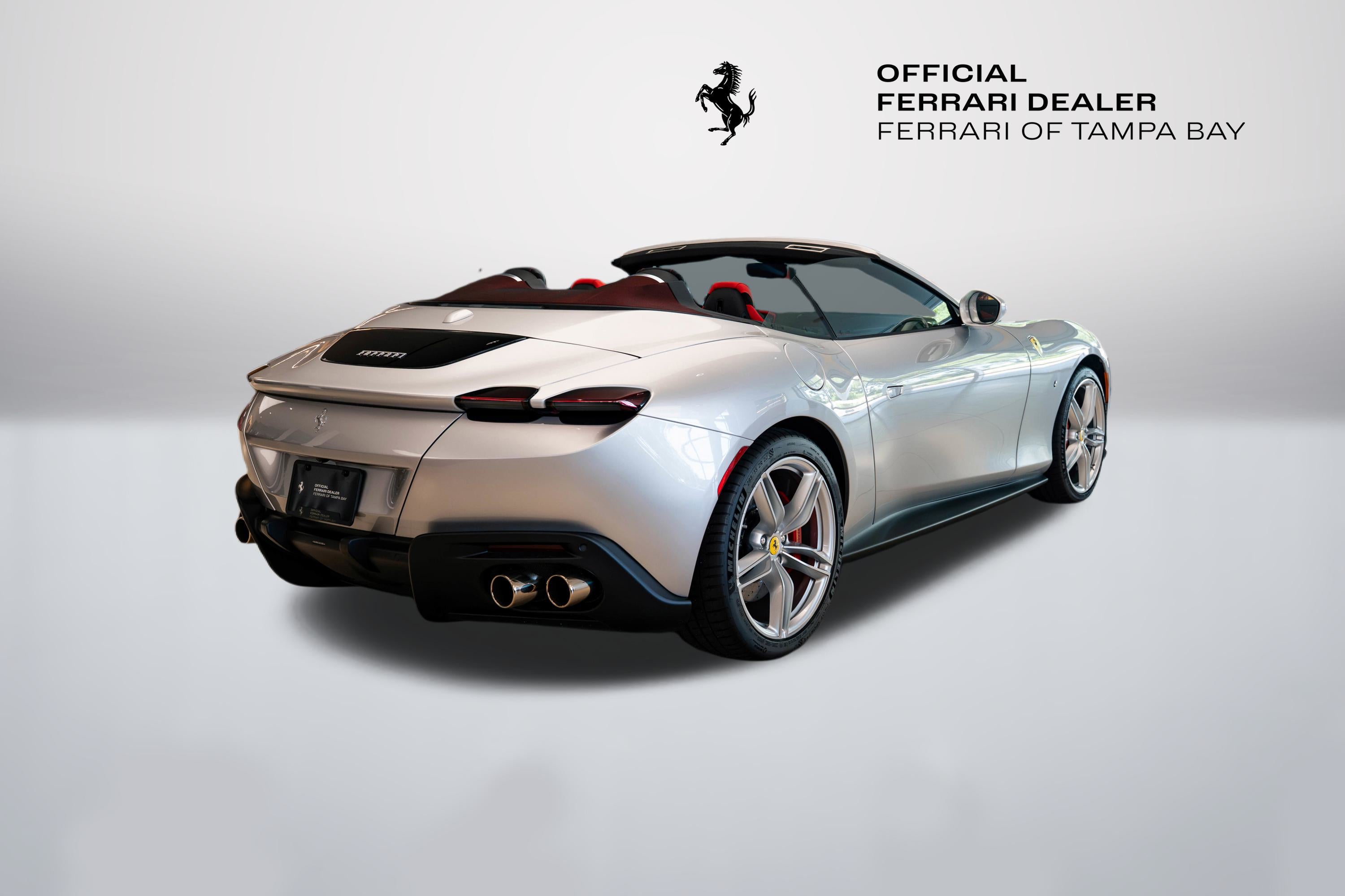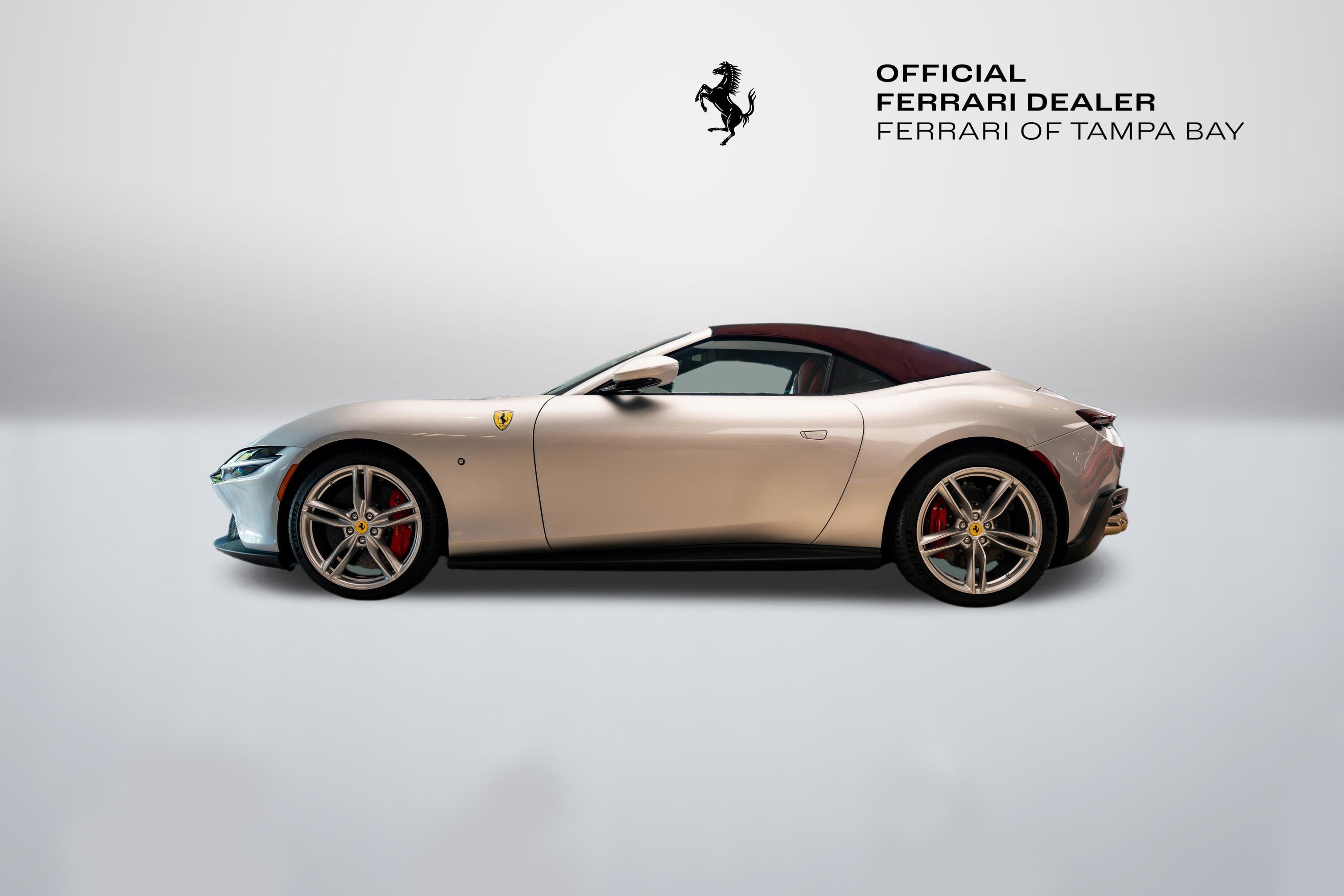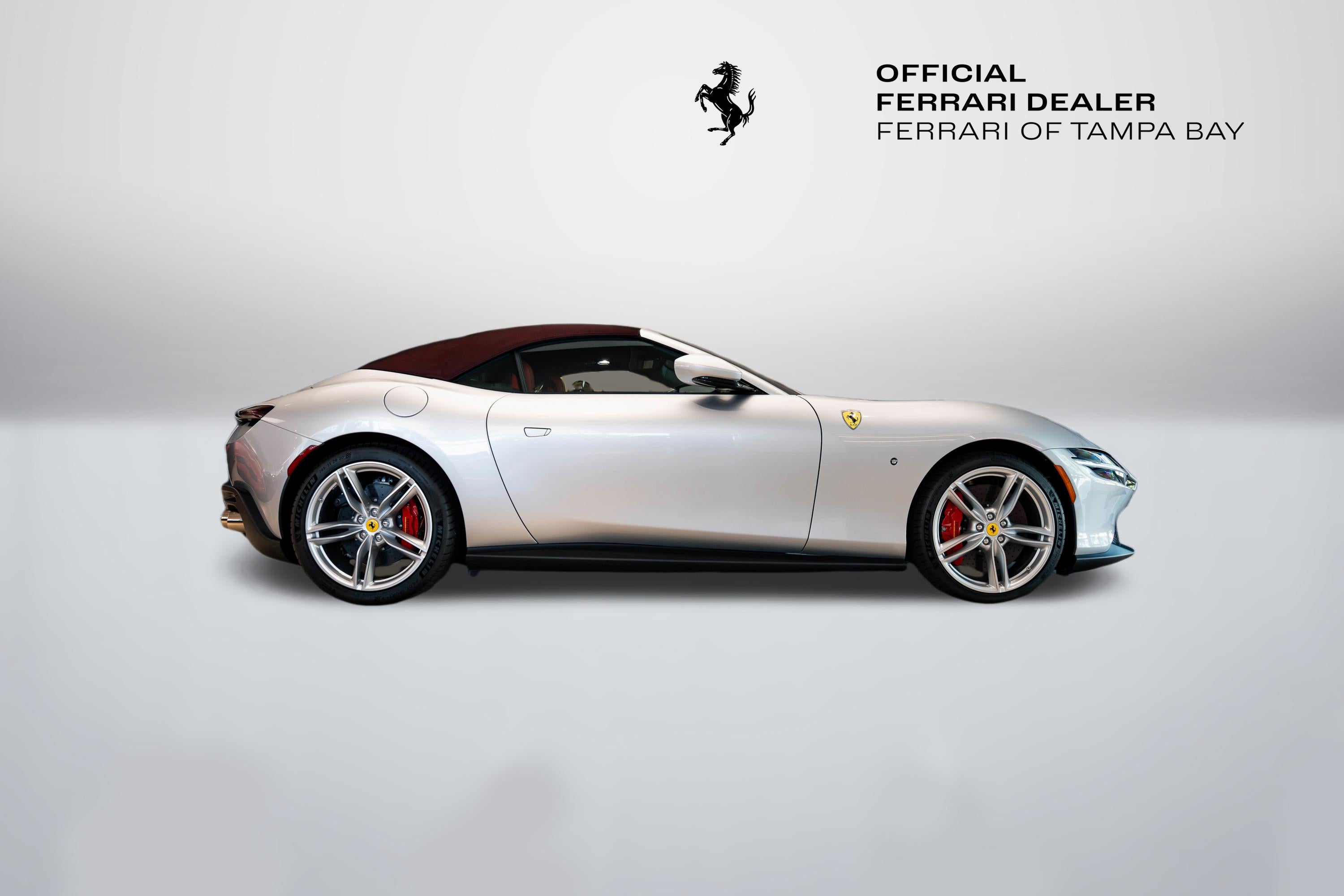 2024 Ferrari Roma Spider finished in the classic color of Argento Nurburgring (Silver Gray) with Rosso Ferrari (Red) interior and only 57 delivery miles on the odometer! Options include Rosso Brake Calipers, Scuderia Shields on the Fenders, 20" Forged Liquid Silver Wheels, Rosso Ferrari Leather Passenger Compartment Bands, Nero (Black) Cavallino Embroidered on the Headrests, Alcantara Seat Inserts, Aluminum Footrests, Carbon Fibre Steering Wheel with L.E.D.