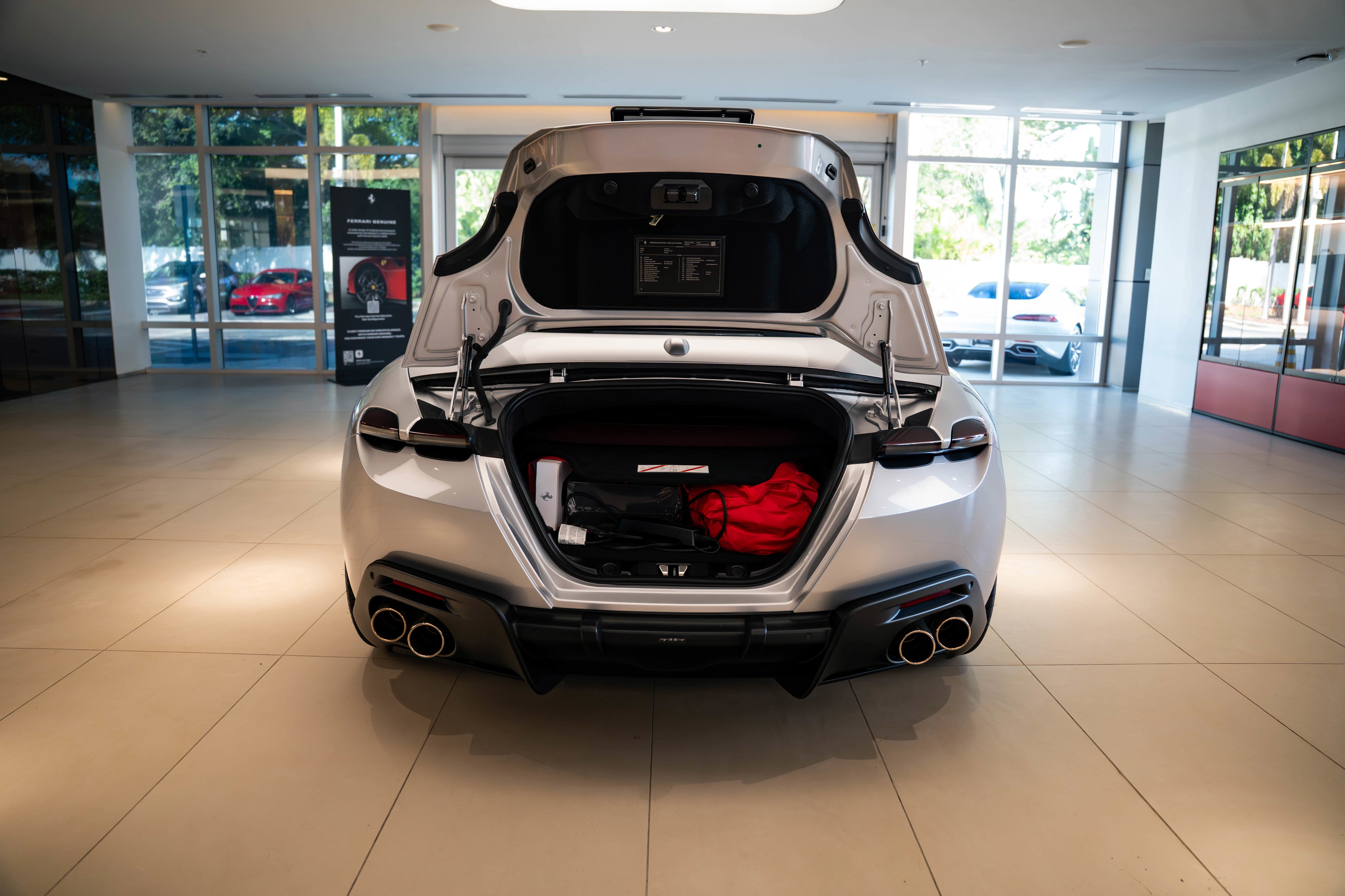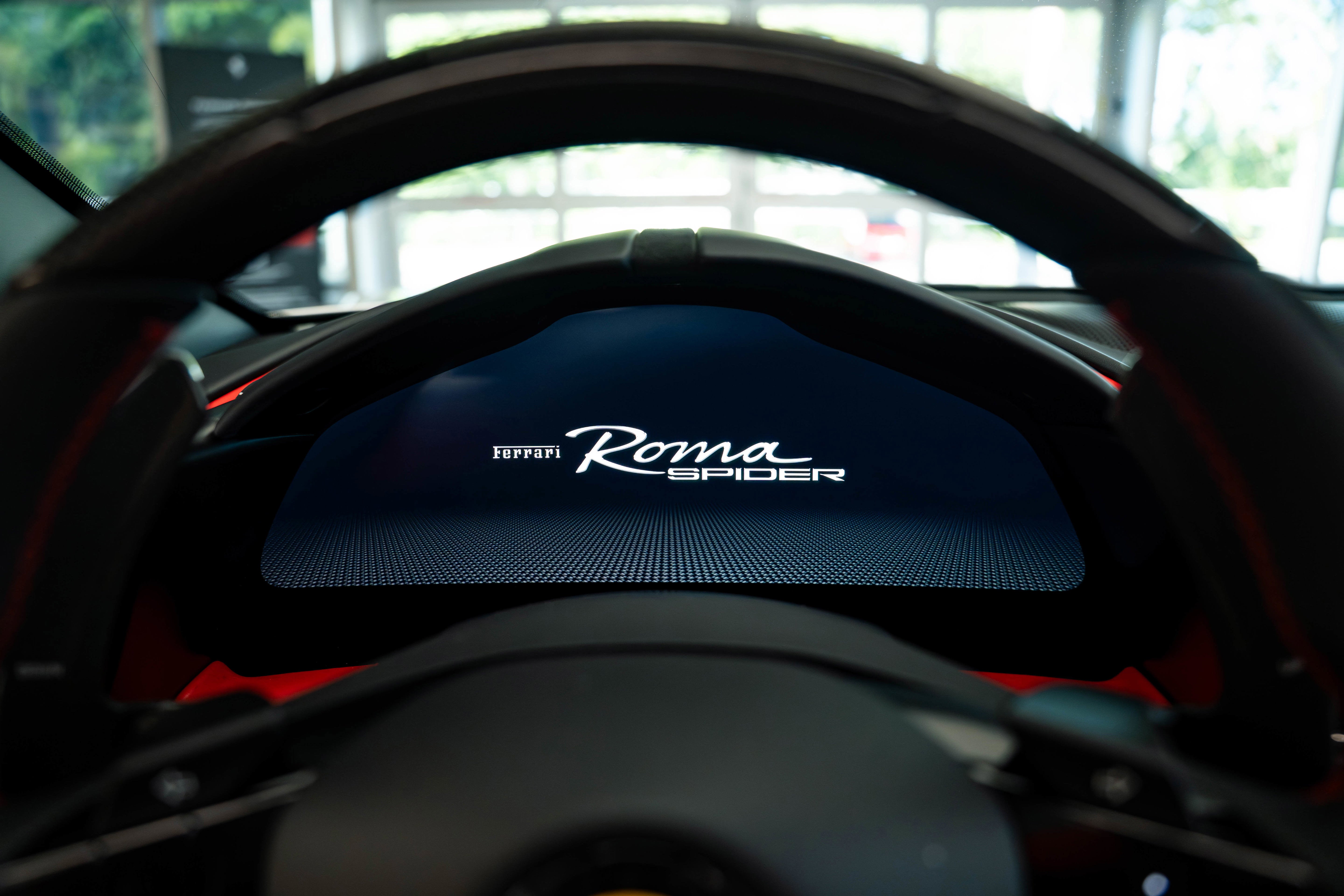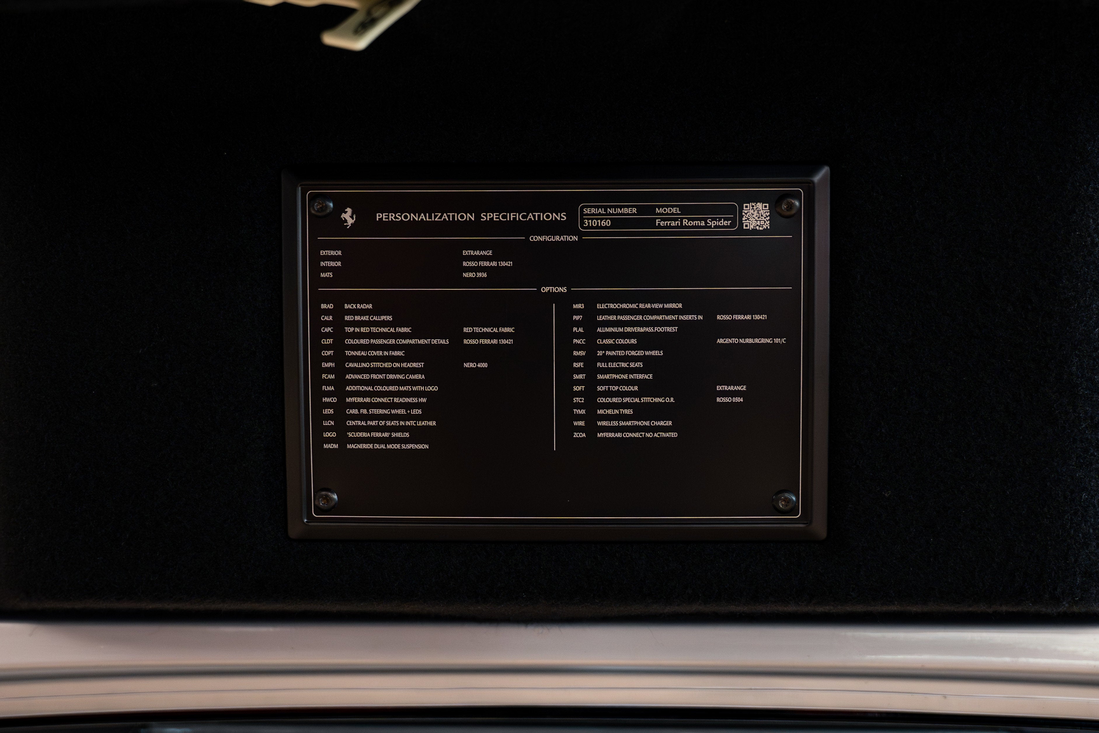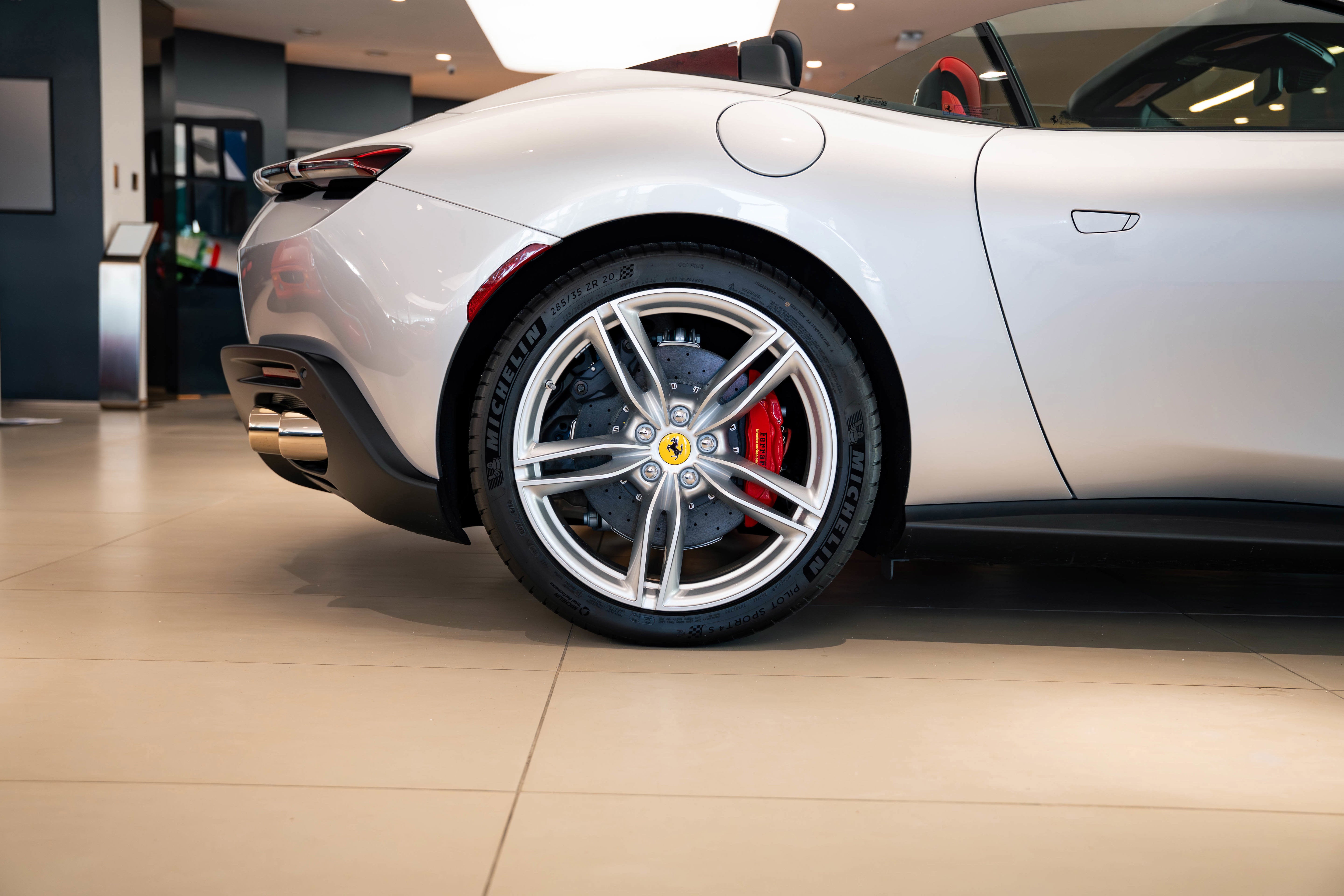 2024 Ferrari Roma Spider finished in the classic color of Argento Nurburgring (Silver Gray) with Rosso Ferrari (Red) interior and only 57 delivery miles on the odometer! Options include Rosso Brake Calipers, Scuderia Shields on the Fenders, 20" Forged Liquid Silver Wheels, Rosso Ferrari Leather Passenger Compartment Bands, Nero (Black) Cavallino Embroidered on the Headrests, Alcantara Seat Inserts, Aluminum Footrests, Carbon Fibre Steering Wheel with L.E.D.