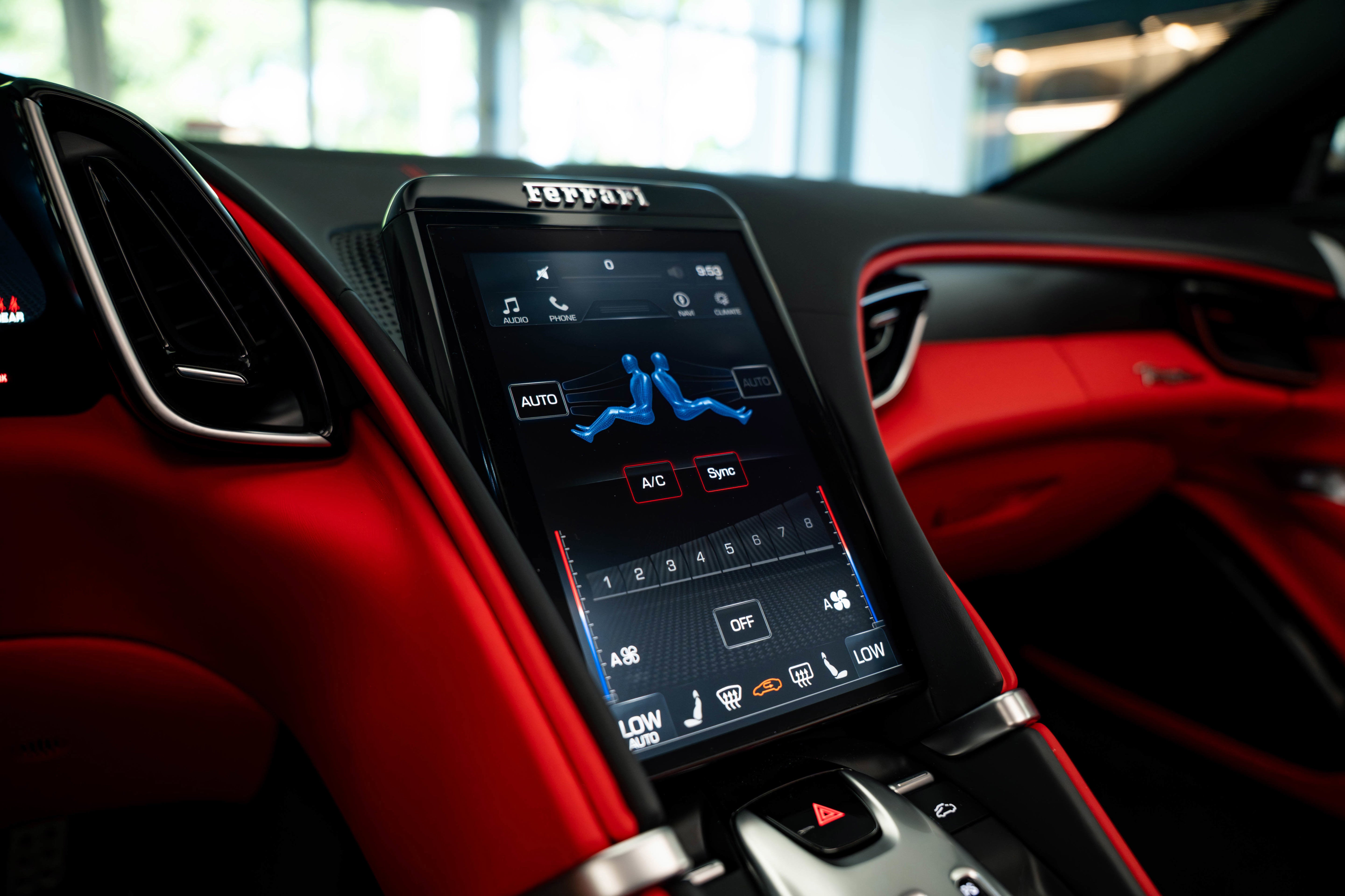• Leather passenger compartment accents in colour of customer's choice (Rosso Ferrari)