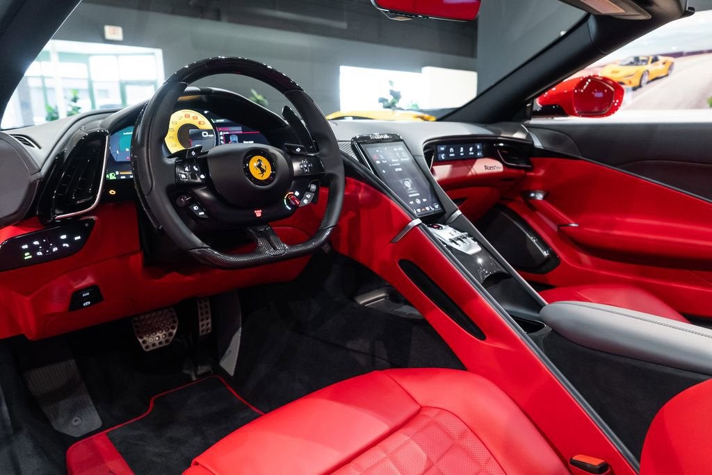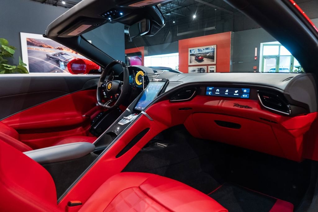 Ferrari of Lake Forest is Proud to Present this Certified Pre Owned 2024 Ferrari Roma Spider Finished in Stunning Rosso Corsa over Extra Range Rosso Giudecca Leather Interior. This Ferrari Roma Spider is Optionally Equipped with: Rosso Brake Calipers Carbon Fiber Rear Boot Trim Rear Diffuser in Carbon Fiber Carbon Fiber Under Door Cover Black Tailpipe Tips Carbon Fiber Front Spoiler Scuderia Ferrari Shields Magneride Dual Mode Suspension Glossy Nero Painted Wheels Soft Top in Black Tailoring Fabric Neck Warmer Carbon Fiber Vehicle Key Upper Part of Center Console in Carbon Fiber Dashboard Inserts in Carbon Fiber Dual Color Leather Interior Trim in Charcoal Cavallino Stitched on Headrests in Nero Advanced Driving Camera Colored Mats with Logo Homelink Carbon Fiber Steering Wheel with LEDs Central Part of Seats in Leather Electrochromic Rear View Mirror Passenger Display Leather Passenger Compart Inserts in Extra Range Rosso Giudecca Ventilated Full Electric Seats Smartphone Interface High Power HiFi System Quilted Style Seats Colored Special Stitching in Speciale Nero Wireless Smartphone Charger The Ferrari Roma Spider is pure Italian elegance set free. With its sleek lines, long bonnet and beautifully tailored fabric roof, it turns every drive into a sun-drenched celebration of la dolce vita. Underneath, a crisp twin-turbo V8 delivers effortless thrust and a rich soundtrack that builds with every shift. Its refined, romantic and quietly ferocious all at once a grand touring Ferrari made even more irresistible with the sky above you. The Ferrari Certified Pre Owned Coverage is Included in our asking price. For more information on this Certified Pre Owned Ferrari Roma Spider call one of our Ferrari Specialists today at 847.295.6560