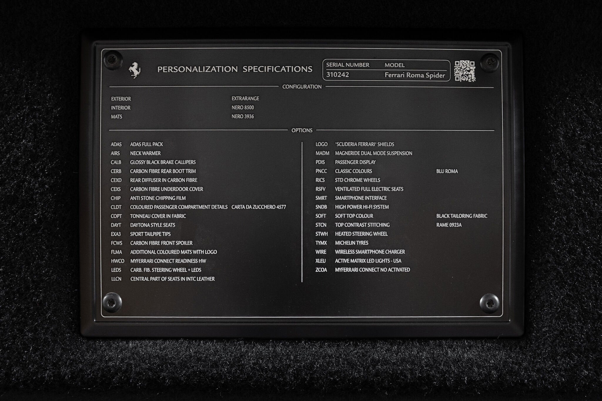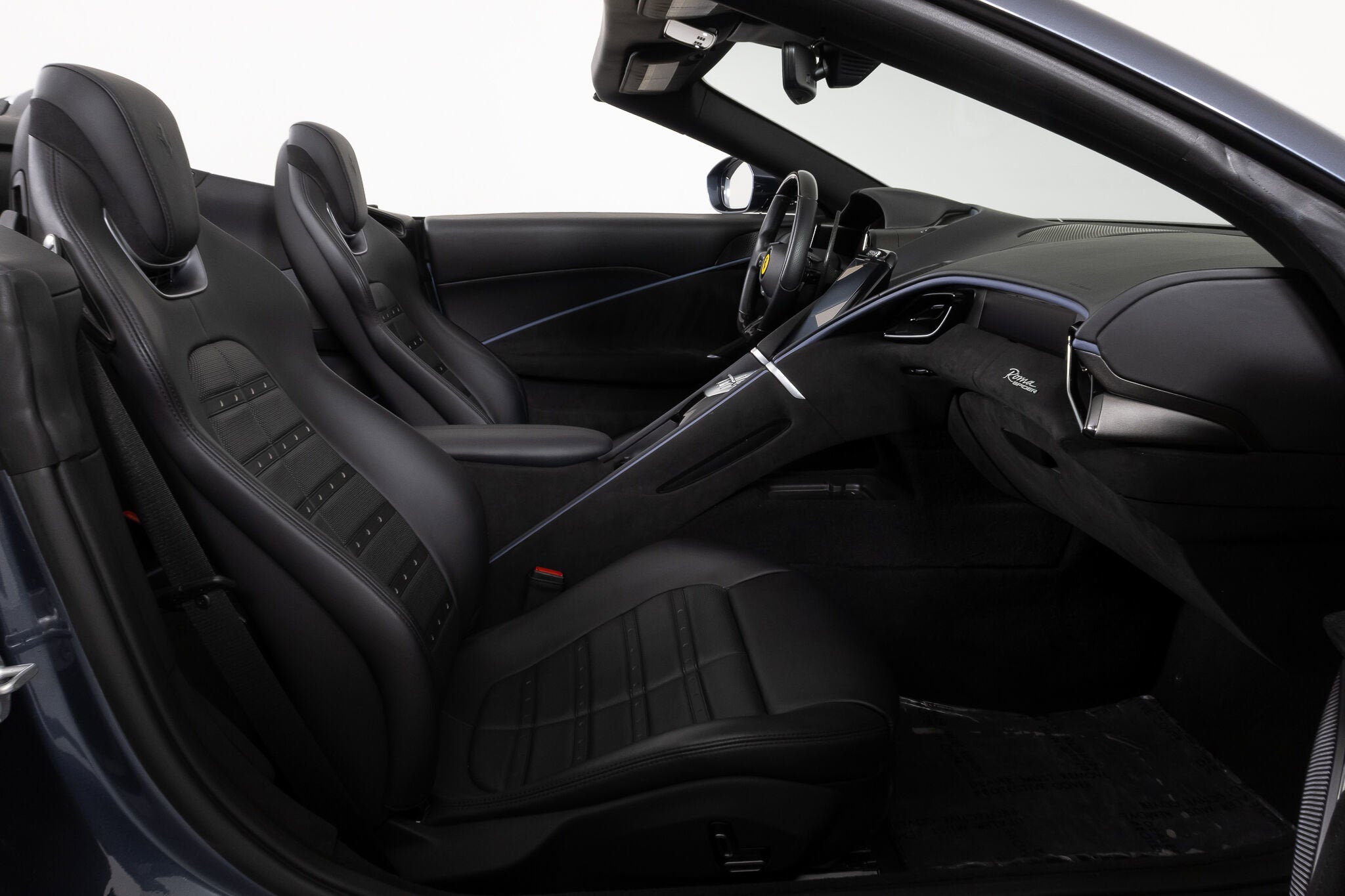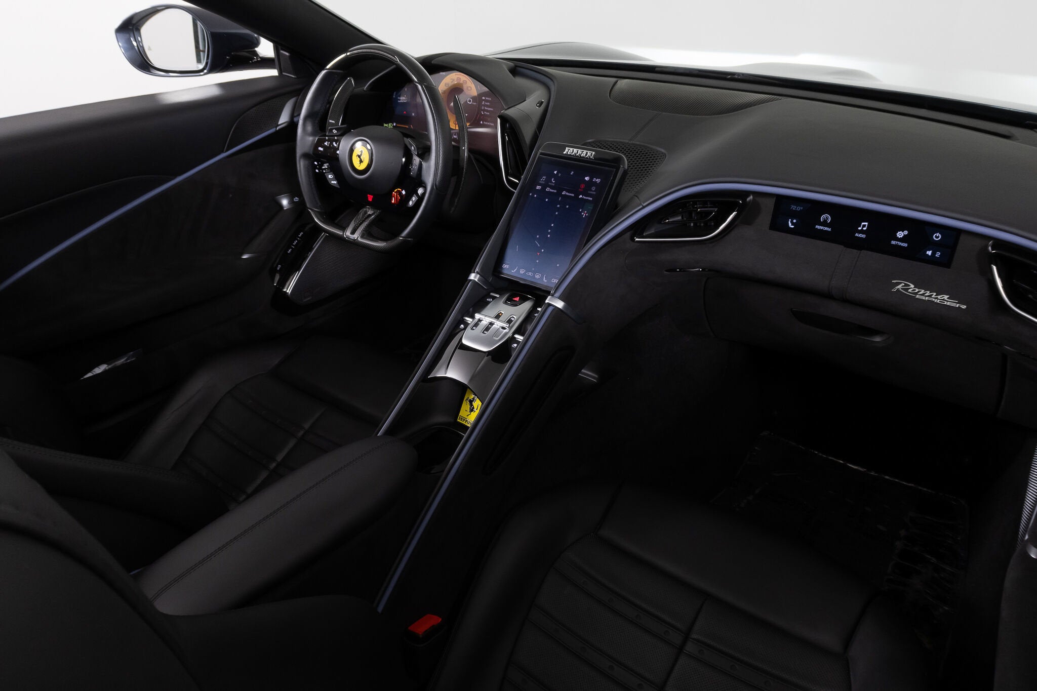 Ferrari South Bay is happy to bring to market this 1-owner 2024 Roma Spider, finished in stunning Blu Roma , with Nero Leather accented with Blue Leather Cabin Stripes. The Roma Spider offers a terrific opportunity to experience Ferrari's La Nuovo Dolce Vita. The sonorous song of Ferrari's Award-Winning 3.9 Liter twin-turbo V8 in a very elegant Convertible will turn heads whether at Cars & Coffee or on the Red Carpet. The exterior Blu Roma finish is accented by Sport Tailpipe Tips. Carbon Ceramic brakes with Glossy Black Calipers sit behind 20 Wheels finished in Chrome. Carbon Fiber covers the Rear boot Trim, Rear Diffuser, Underdoor Covers and Active Rear Spoiler. The 3.9 liter twin-turbo V8 produces 612 horsepower which is delivered through an 8-speed Dual Clutch transmission that will make short work of your favorite canyon, or provide a comfortable cruise to your favorite restaurant. The nose of the car has been covered in Paint Protective Film from the Factory, ensuring your Roma Spider will look perfectly elegant for years to come! Inside, you'll find gorgeous Nero Leather accented with Carta Da Zucchero (blue) Cockpit Bands. The Daytona Style seats are Fully Electric and Ventilated and are fitted with Neck Warmers. The Heated Steering Wheel is finished in Carbon Fiber, and features Ferrari's LED Shift Lights. The Reversing Camera helps with tight maneuvers. The Magneride Dual-Mode suspension smooths out road irregularities. A JBL Premium Sounding sound package will provide entertainment when the car itself can't, and the Passenger Display keeps your copilot informed of vehicle systems. The Wireless Smartphone Charger and Interface are welcome conveniences. This 2024 Ferrari Roma Spider is offered with both original keys, books and tools. As a Ferrari Certified Pre-Owned vehicle, it has passed Ferrari's rigorous 101-point inspection and carries the remainder of its Original Full Factory Warranty through August 21, 2027. An extended warranty is available for two years at the time of purchase. Ferrari's Genuine Maintenance Program will take care of all annual services through August 21, 2031. Please contact our knowledgeable sales staff if you'd like further information or to set up a time to stop in and take a look! Ferrari South Bay is proudly part of Holand Automotive Group, one of North America’s leading luxury automotive retailers. We offer nationwide shipping, trade-in opportunities, financing, client consignments, and world-class delivery service. Contact us today to explore ownership of this remarkable. Please visit us at 23305 Hawthorne Blvd, Torrance, CA 90505, or call us at (888) 578-8767.