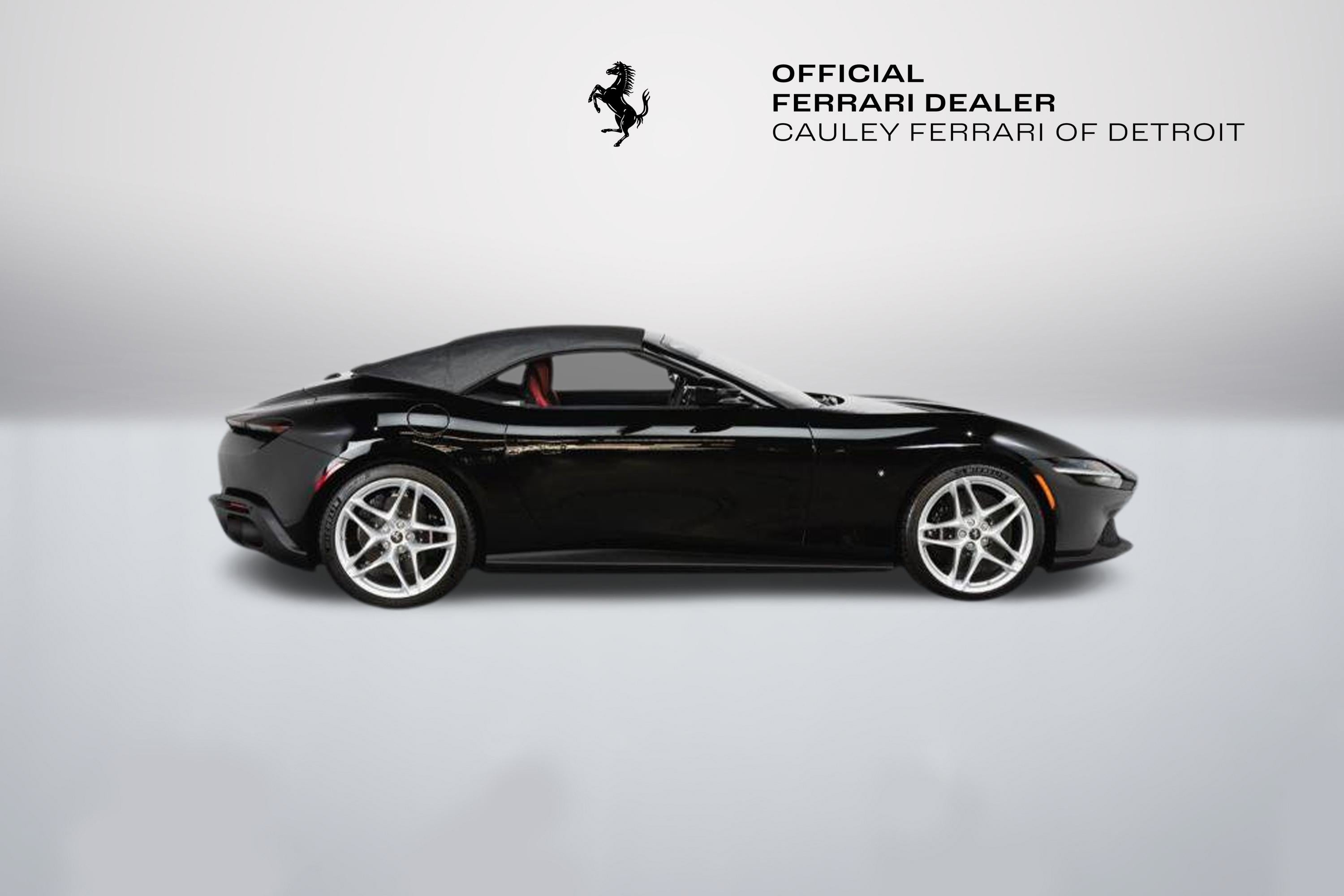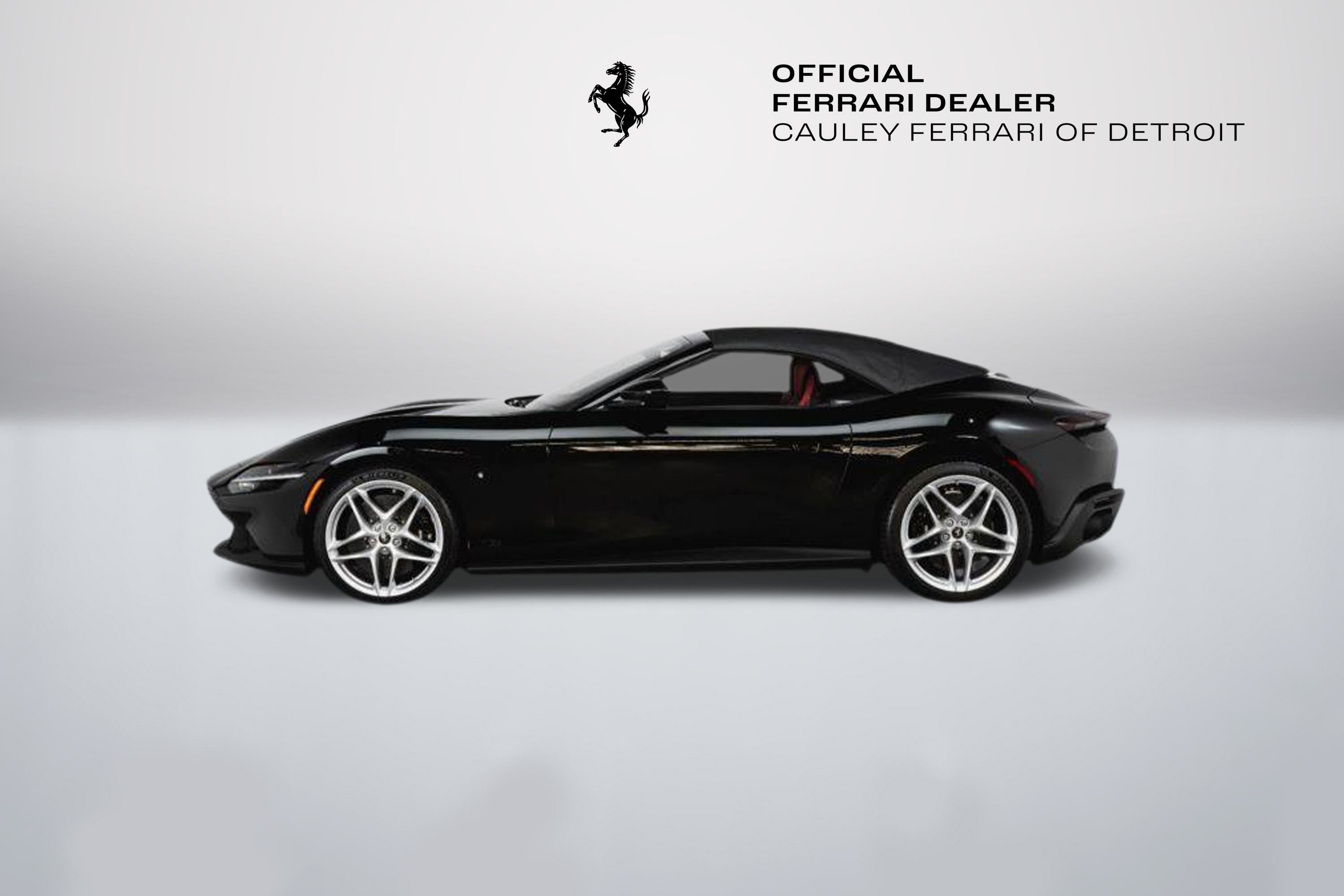 Cauley Ferrari of Detroit is excited to offer this gorgeous Roma Spider finished in Nero over Bordeaux. This car is equipped with desirable options such as Magneride Suspension, Advanced Front Driving Camera, Passenger Display, Front Radar, and much more. This Roma is being sold as a Certified Pre-Owned Vehicle, and the full factory warranty is good until 11/14/2027. Ferrari free annual service runs through 11/14/2031. Give us a call at 248-538-9600 to set up an appointment for a closer look or stop by our showroom in West Bloomfield, MI. Please ask us about our financing and leasing options available through Ferrari Financial Services (FFS). We can offer you monthly financing as far out as 84 months, Balloon financing up to 60 months, as well as Open-End Leasing scenarios. FFS is available on all new and pre-owned Ferrari models. These flexible payment options make getting into a Ferrari easier than ever before. Let us show you how. Give us a call at 248-538-9600 to set up an appointment for a closer look or stop by our showroom in West Bloomfield, MI. Factory Options: - Black Brake Callipers - Carbon Fibre Wheel Cup - Exhaust with Black Matte Finish - Exterior Sill Kickplate in Carbon - Inner Color Details in Nero - Central Seat Stripe in Matching Leather - Cavaillinos on Headrest Stitched in Nero - Floor Mats with Roma Spider Logo - Leather Central Seats - Passenger Display - Leather Accents in Cabin in Bordeaux - Full Electric Front Seats - Stitching throughout the cabin in Nero - Blind Spot Detection and Rear Radar - MyFerrari Connect - Advanced Front Driving Camera - Magneride Suspension - Electrochromic Rear-View Mirrors - Smartphone Interface - Michelin Tires The Ferrari Roma Spider is a timelessly elegant, high-performance car, but also a contemporary take on the chic, pleasure-seeking Italian lifestyle of the 1950s and 60s. This spider carries over the proportions, volumes and specifications of the Ferrari Roma?s hugely successful concept, but what makes it so striking is the adoption of a soft top, a solution making a welcome return to the Prancing Horse range on a front-engined car 54 years after the launch of the 1969 365 GTS4. The Ferrari Roma Spider is powered by an engine belonging to the V8 turbo family named "International Engine of the Year" for four consecutive years and also voted "Best Engine of the Last 20 Years" in 2018. The 3,855 cc power unit can punch out 620 cv at 7,500 rpm, the equivalent of 161 cV/I, which it combines with the flexibility of low-end pick-up, thanks to 80% of the torque being available at just 1900 rpm. Designed by the Ferrari Styling Centre headed by Flavio Manzoni, the Ferrari Roma Spider is a 2+ spider which boasts a sophisticated fabric soft top, designed to enhance the flawless proportions of the Ferrari Roma without modifying that car's elegantly flowing silhouette.
