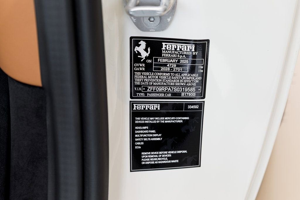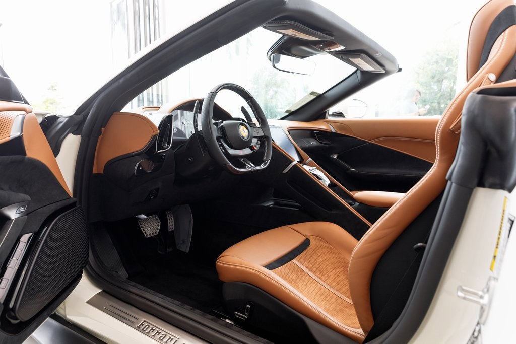 Factory options: External Color - Bianco Avus Internal Color - Cuoio Carpet Color - Nero -Matte painted wheels -Giallo Modena brake callipers -"Scuderia Ferrari" shields on fenders -Sports tailpipe tips with black finish -HW READINESS MYFERRARI CONNECT -MYFERRARI CONNECT ACTIVATED -Personalisation pack -Adaptive Front Headlights Afs3 (America) -Electrochromic exterior rear view mirrors -Dual mode MagneRide suspension -Blind Spot Detection and rear radar -Advanced Front Driving Camera -Wireless smartphone charger -Connectivity for smartphone -Homelink home access control system -Cavallino On Rear Seats In Emph/X -Mid and upper part of passenger compartment trim in leather -Special stitching in color of customer's choice -Full-electric ventilated front seats -Embroidered Cavallino emblem on headrest -Carbon fibre steering wheel with LEDs For more information or to schedule a test drive, contact us today!