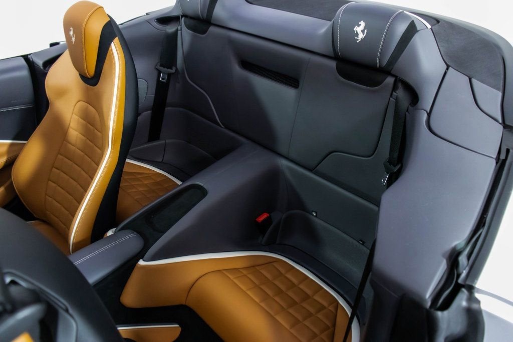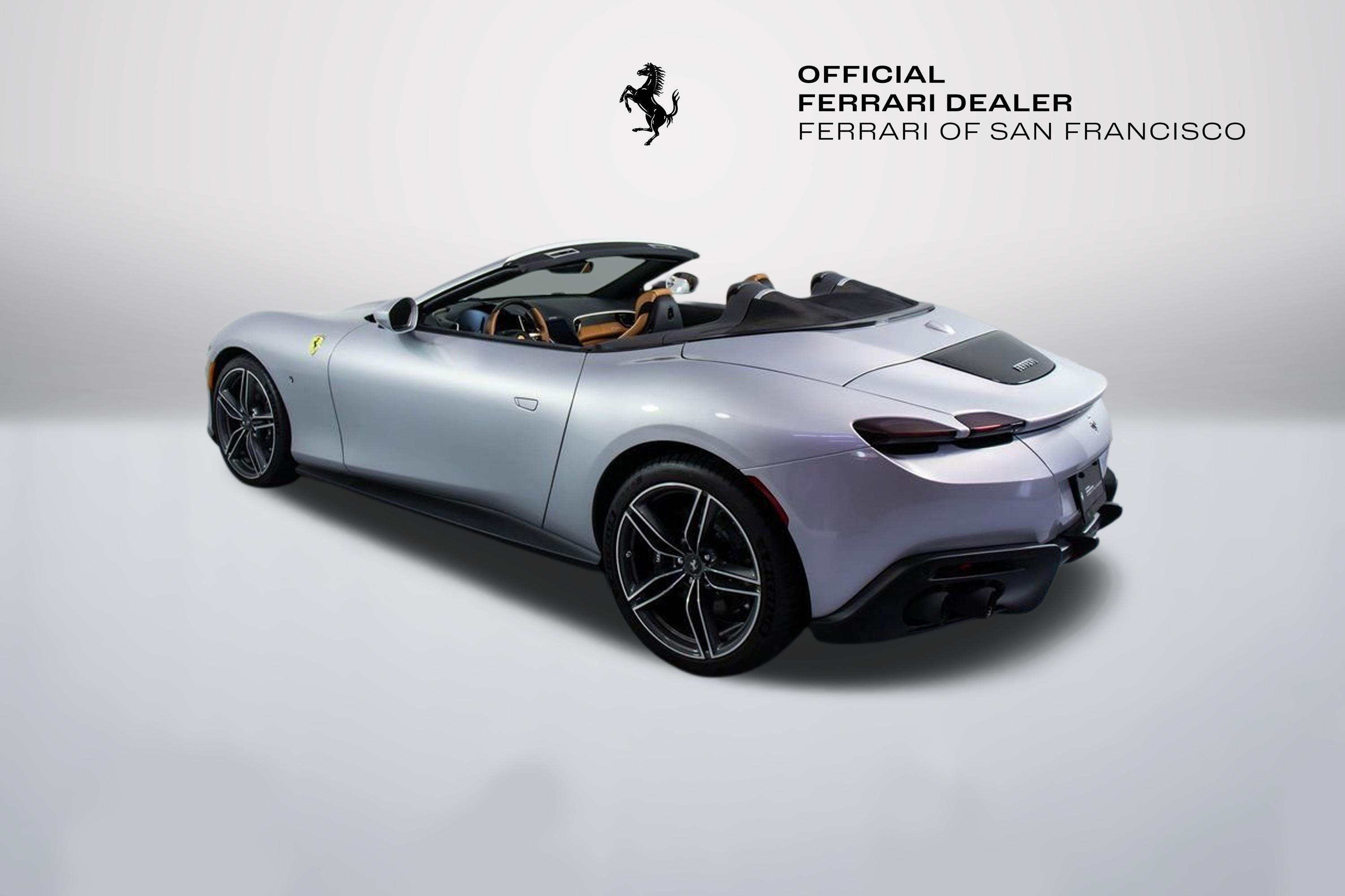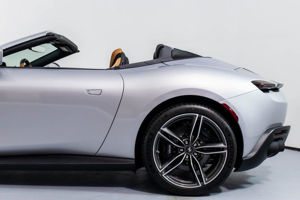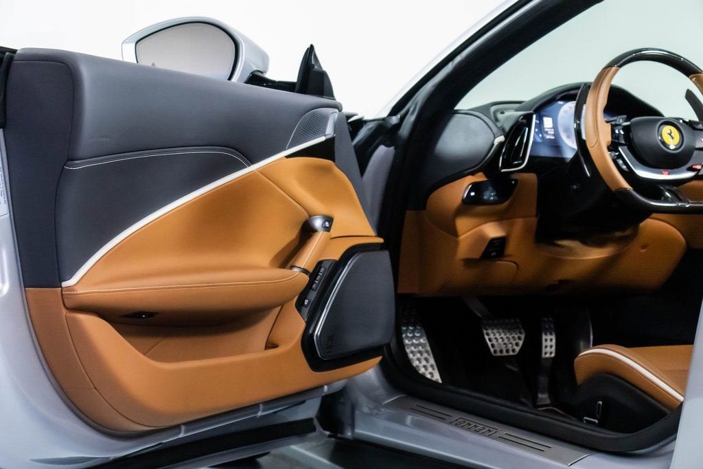 319224 Exterior: Argento Nurburgring Interior: Cuoio Mats: Nero 2025 Ferrari Roma Spider Options: Back Radar Glossy Black Brake Calipers Carbon Fiber Wheel Cups Upper Part of Center Console in Carbon Fiber Colored Passenger Compartment Details CLDT in Extra Range Leather in Grigio Chiaro MyFerrari Connect Activated Tonneau Cover in Fabric Dashboard Inserts in Carbon Fiber Dual Color Leather INT. Trim in Charcoal Cavallino Stitched on Headrest in Grigio Chiaro Rear Cavallini Embroid. In EMPH/X in Grigio Chiaro Black Tailpipe Tips Advanced Front Driving Camera Additional Colored Mats with Logo Home Link MyFerrari Connect Readiness HW Leather Inserts on Sides of Seats in Grigio Chiaro Carb. Fib. Steering Wheel + LEDS Central Part of Seat in INTC Leather 'Scuderia Ferrari' Shields Magneride Dual Mode Suspension Electrochromic Rear-View Mirror Leather Passenger Compartment Inserts in Cuoio Aluminum Driver&Pass. Footrest Classic Colors in Argento Nurburgring Diamond-Polished Forged Wheels Ventilated Full Electric Seats Smartphone Interface High Power Hi-Fi System Soft Top Color in Black Tailoring Fabric Quilted Style Seats Custom Specifications Colored Special Stitching O.R. in Grigio Chiaro Colored Steering Wheel in Cuoio Wireless Smartphone Charger This 2025 Ferrari Roma Spider is a stunning blend of modern elegance and open-air performance, finished in classic Argento Nurburgring over a refined Cuoio leather interior with Nero mats. Its sophisticated design is enhanced by diamond-polished forged wheels, glossy black brake calipers, carbon fiber accents throughout the cabin, and a black tailoring fabric soft top, creating a timeless yet athletic presence. Inside, quilted ventilated full electric seats with Grigio Chiaro detailing, dual-color leather trim, and a Cuoio steering wheel deliver exceptional comfort and craftsmanship, while carbon fiber steering wheel with LEDs adds a motorsport-inspired touch. Equipped with Magneride dual-mode suspension, advanced front driving camera, back radar, and MyFerrari Connect, this Roma Spider offers confident performance and cutting-edge technology. Premium features such as a high-power Hi-Fi system, smartphone interface, wireless charging, and HomeLink ensure everyday usability, making this beautifully specified Roma Spider an exceptional expression of Ferraris luxury grand touring heritage.