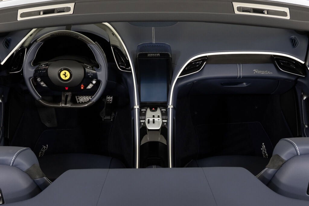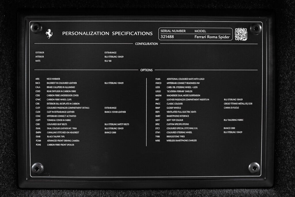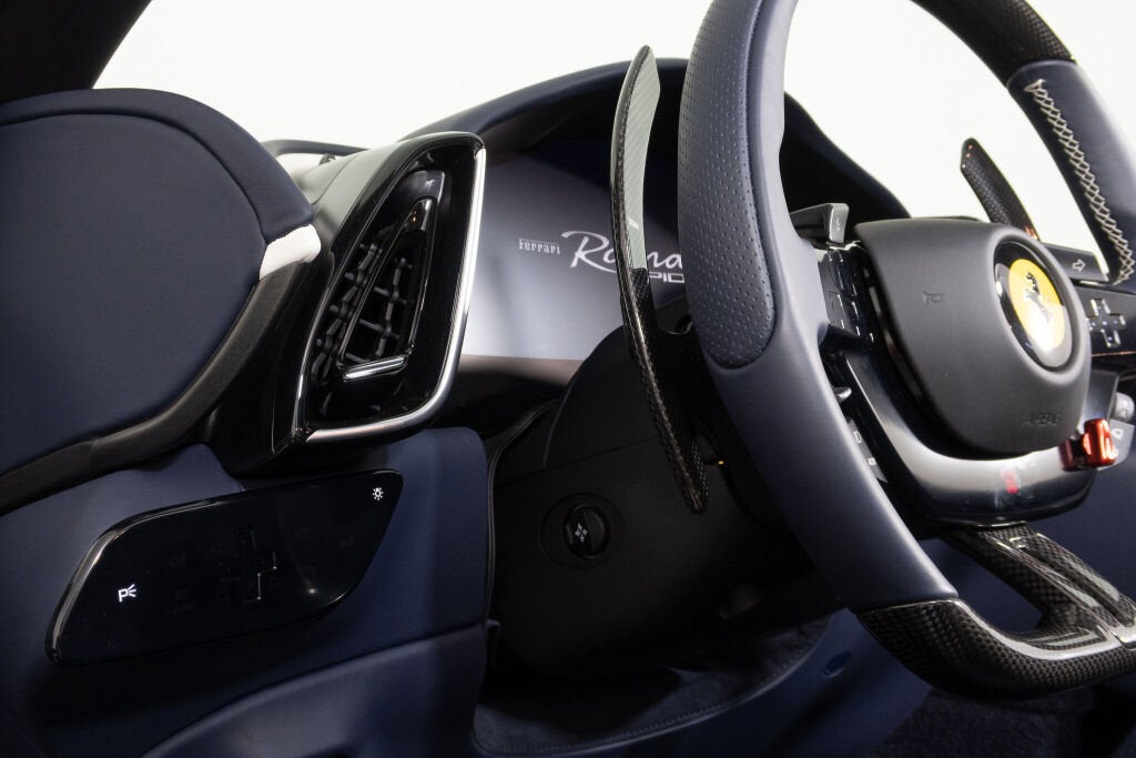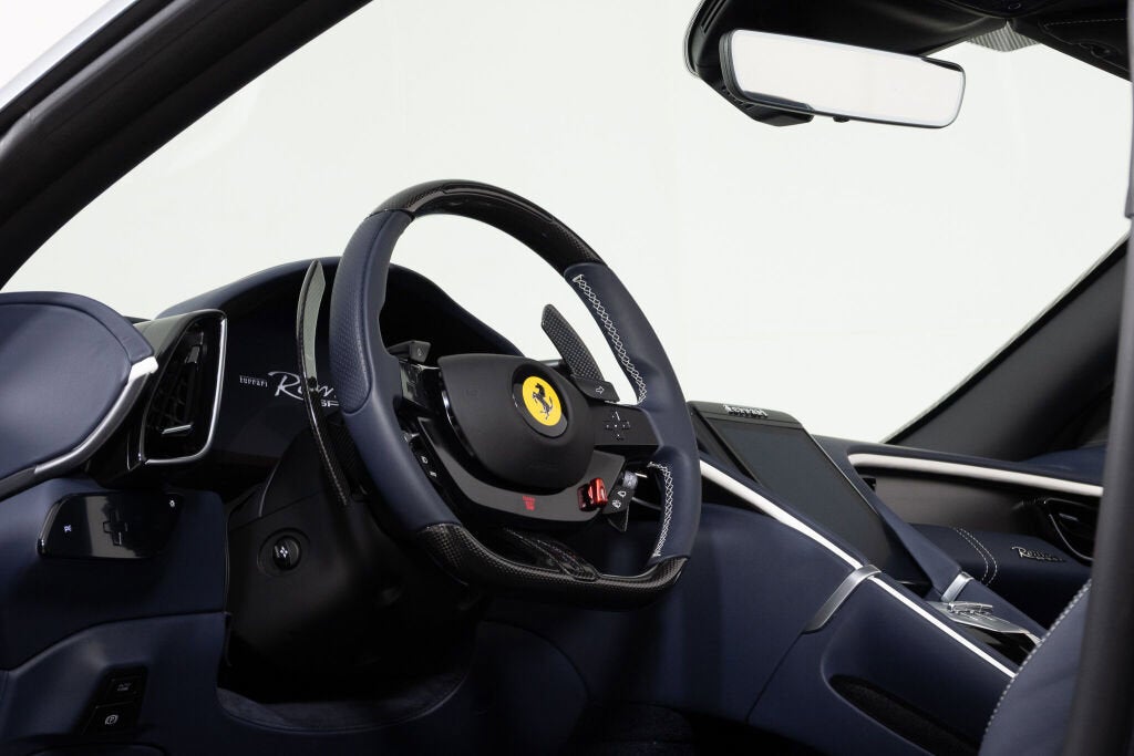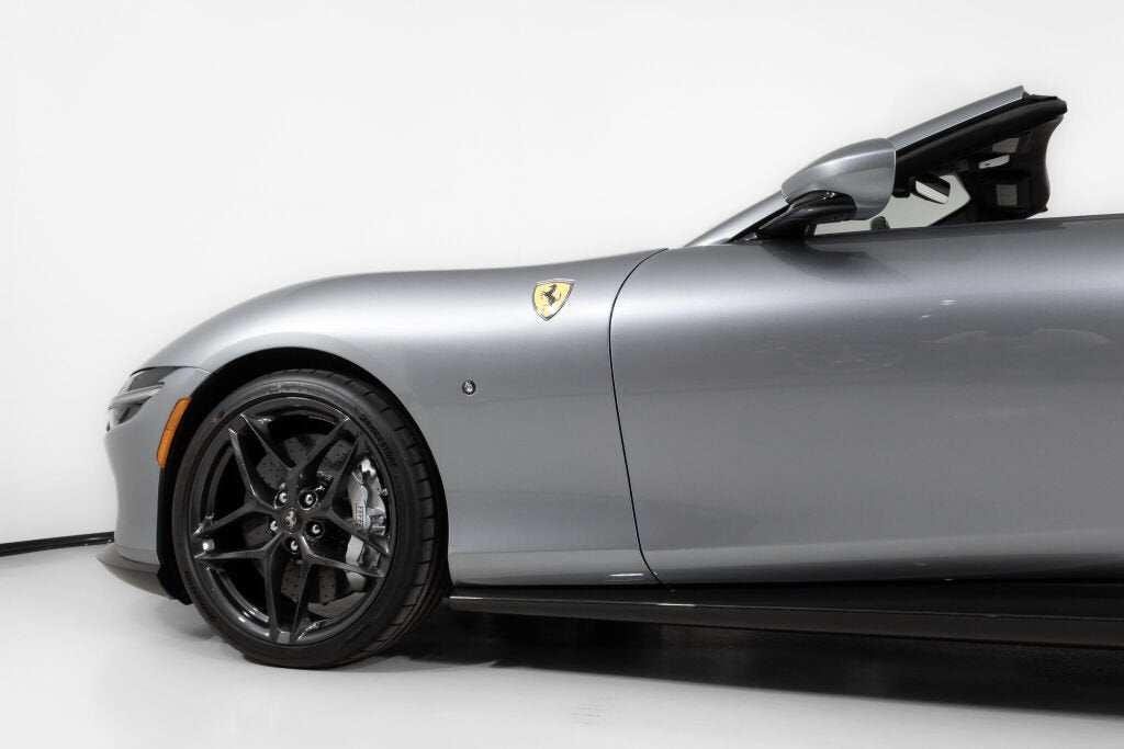 Ferrari Westlake is excited to show this one-owner Roma Spider with a very well thought out color combination. The classic color, Grigio Titanio Metallic, is complimented by Blu Sterling leather interior, blue carpeting, blue soft top and Carbon fiber trim. The interior design language is highlighted by white cockpit bands and contrasting stitching. The Ferrari Roma Spider brings La Nuova Dolce Vita into the open air with an elegant fabric roof the first soft-top on a front-engined Ferrari since the 1969 365 GTS/4. Powered by a twin-turbocharged 3.9-liter V8 producing 612 horsepower, it sprints from 0 to 60 mph in 3.3 seconds while offering refined grand touring comfort. Marrying timeless design with modern performance, the Roma Spider is a contemporary nod to Ferrari’s most stylish GT convertibles of the past. The original Ferrari Factory Warranty is in effect until 08/15/2028. Ferrari Genuine Maintenance 7 Year Program is in effect until 08/15/2032. If you'd like to learn more about this stunning Roma Spider or set up a viewing in our showroom, please reach out to our Ferrari Westlake sales team.