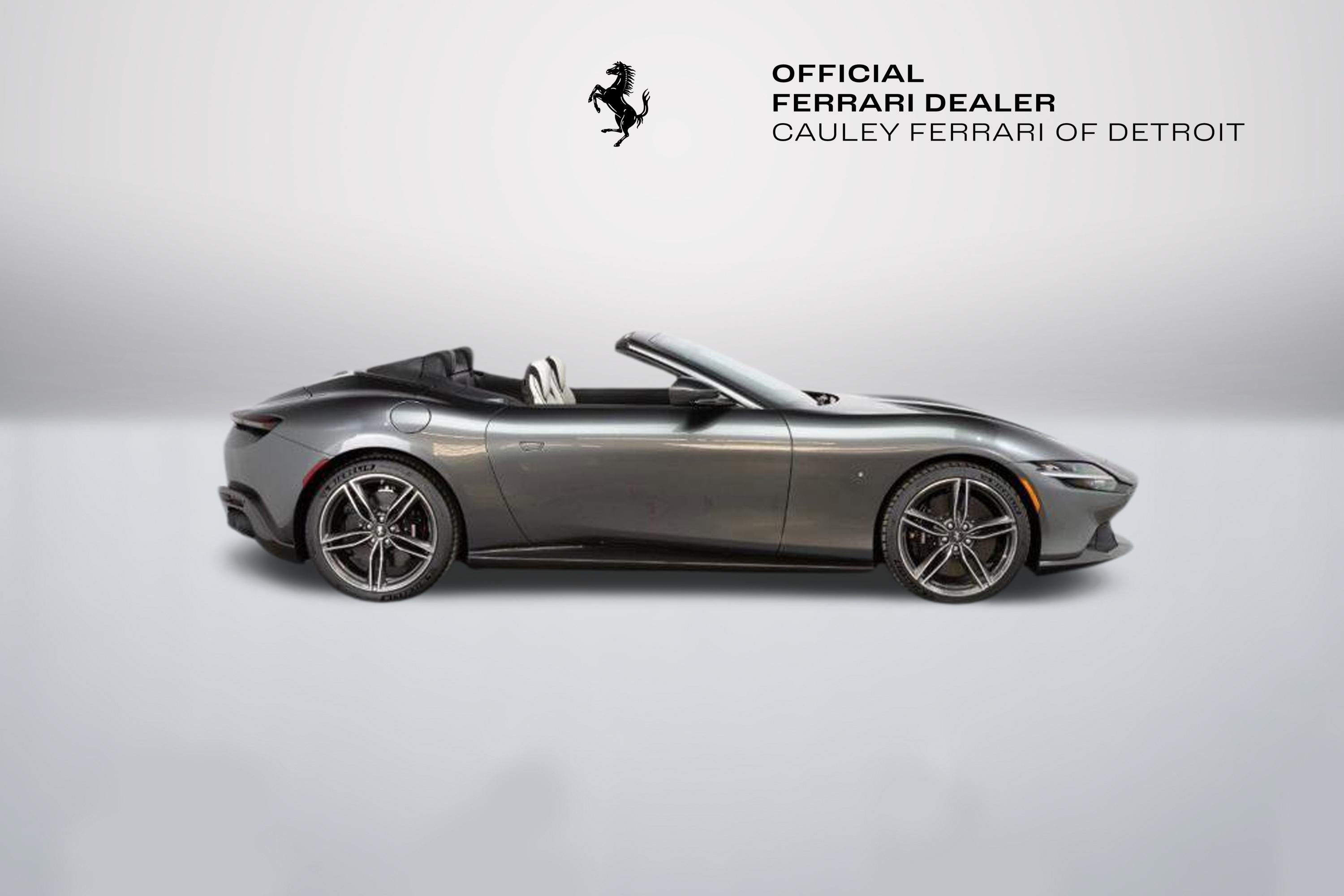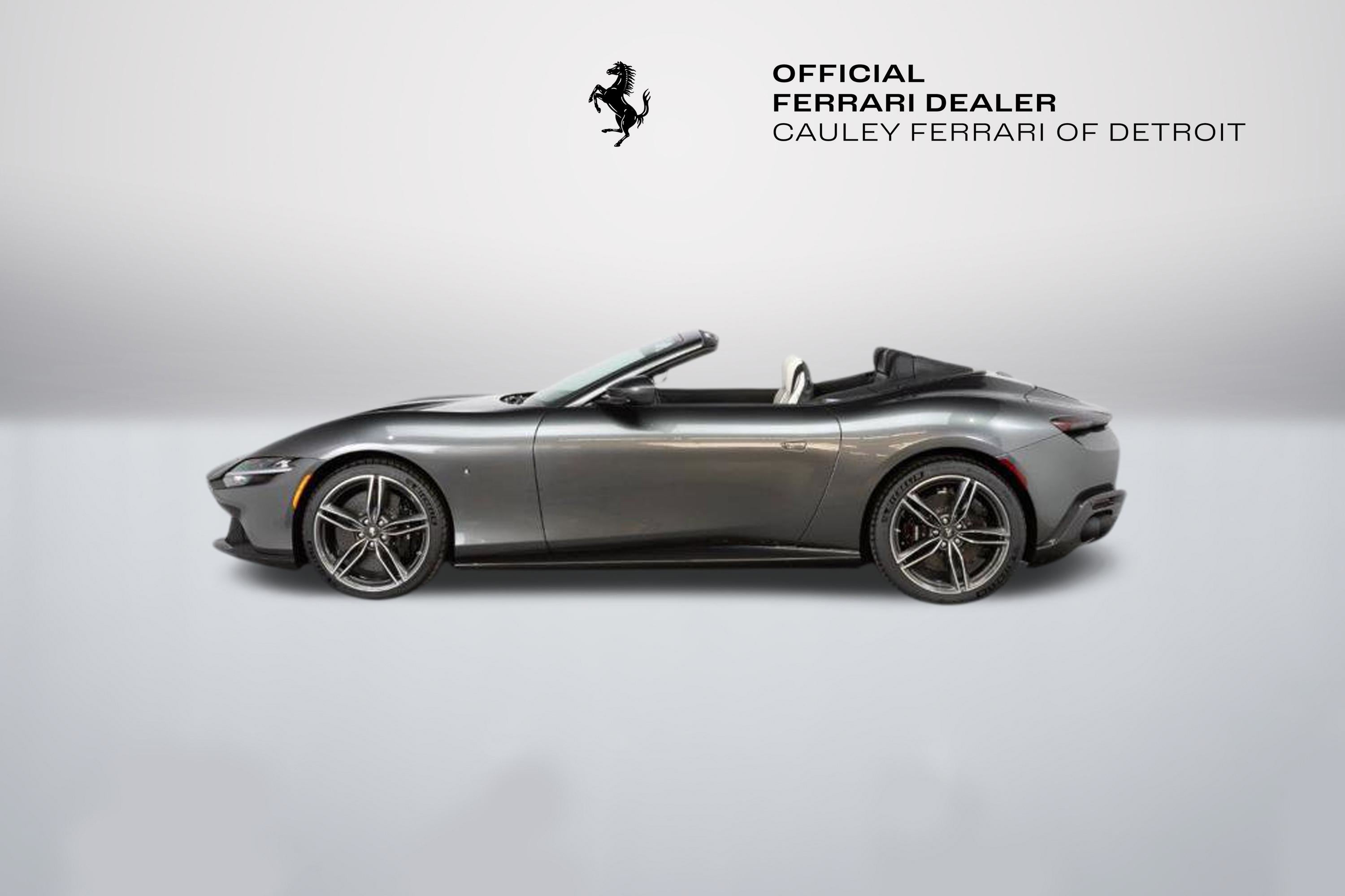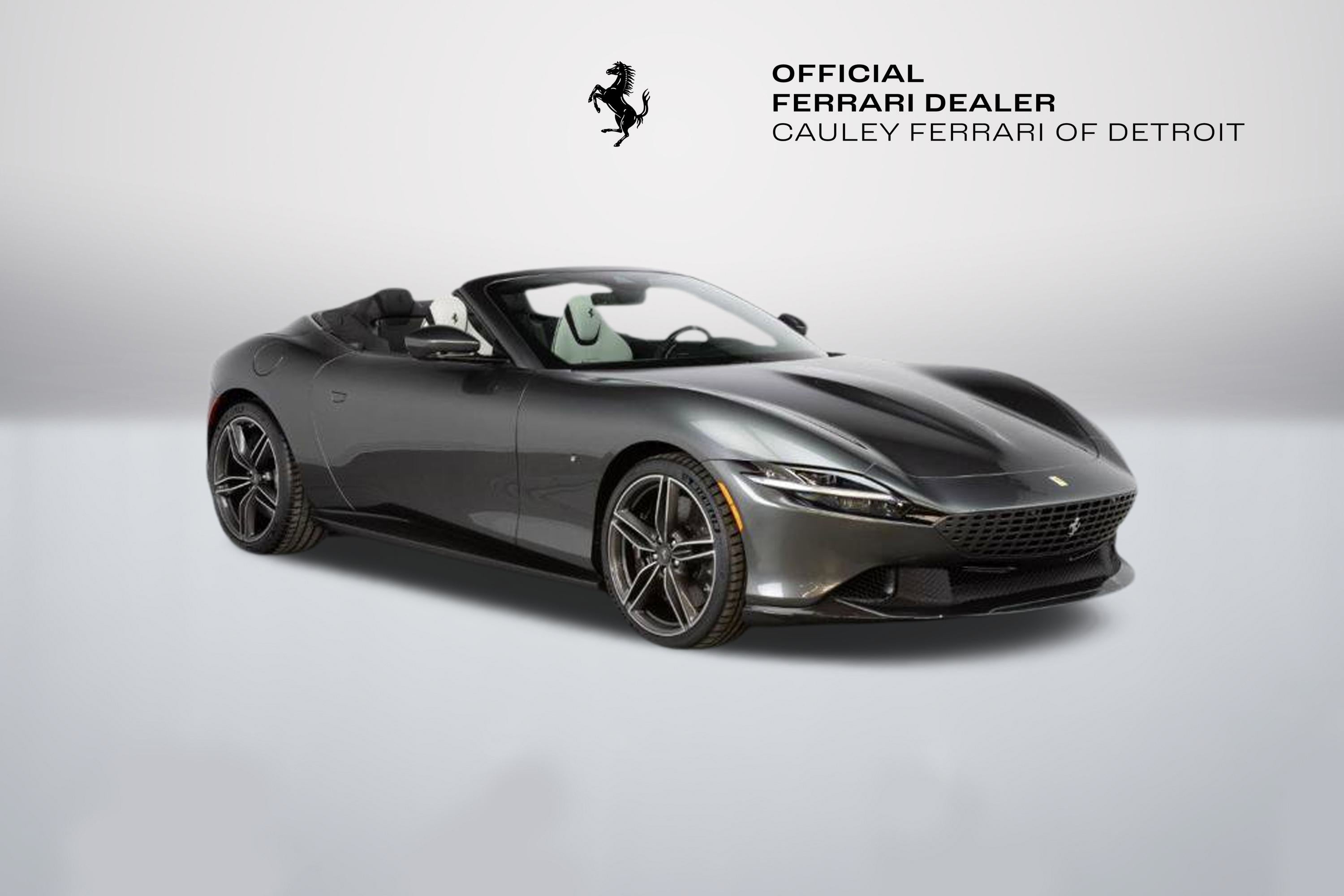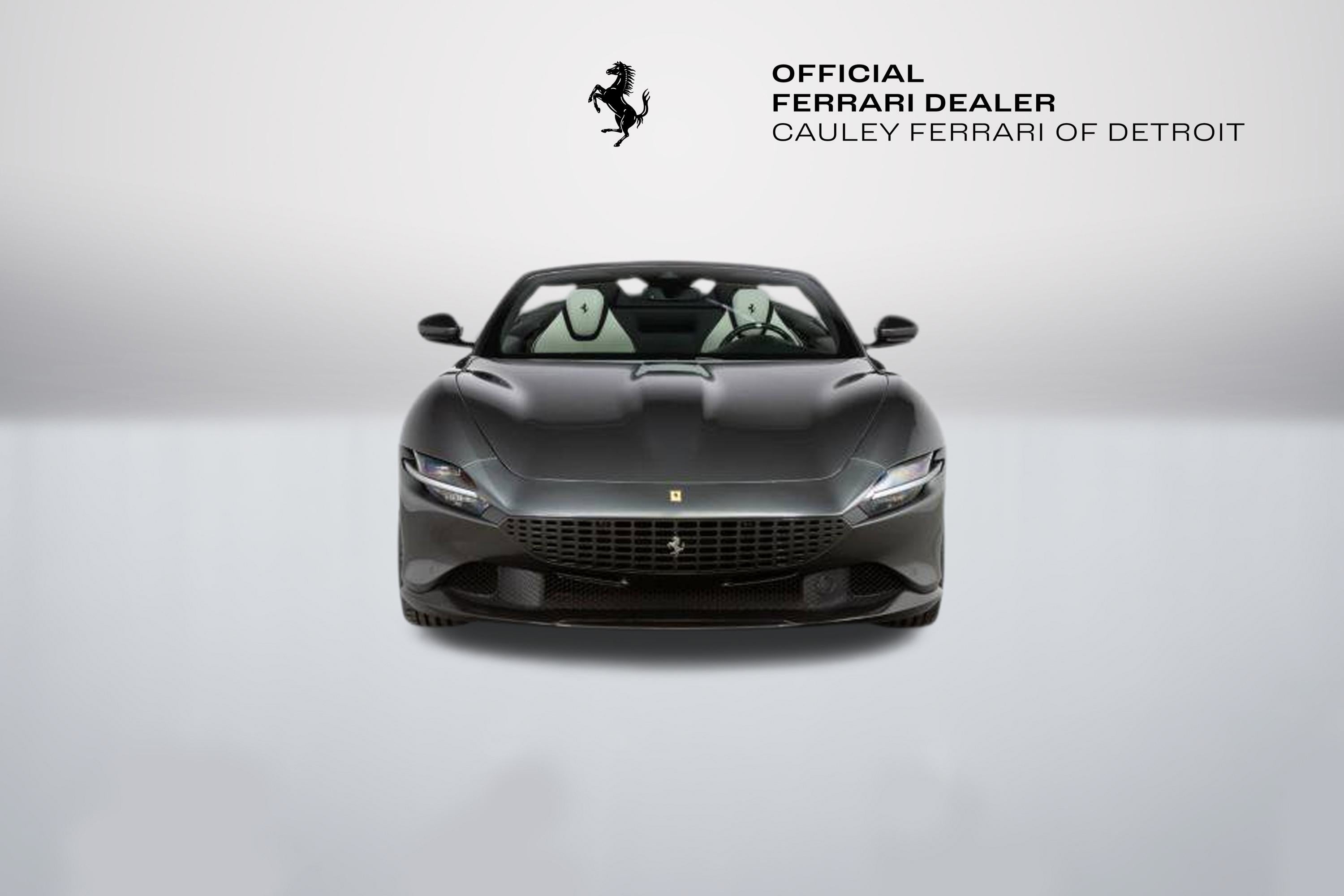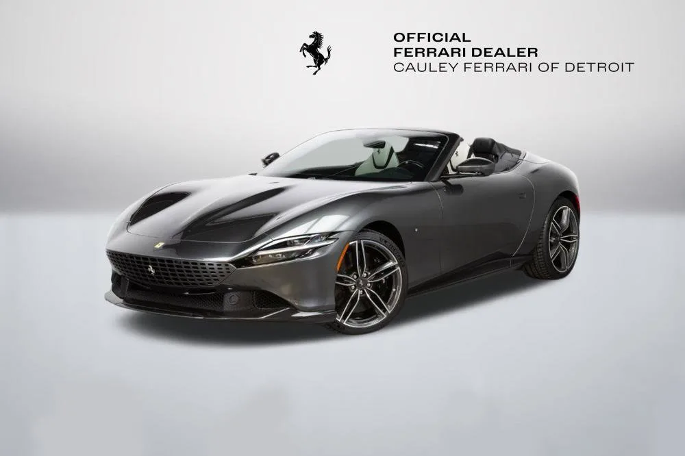 Cauley Ferrari of Detroit is excited to offer this classy Roma Spider finished in Grigio Silverstone over a stunning Grigio Chiaro interior. This car is equipped with desirable options such as Diamond Polished Forged Wheels, Magneride Suspension, Advanced Front Driving Camera, Carbon Fiber Steering Wheel + LEDs and much more. This Roma is being sold as a Certified Pre-Owned Vehicle and the full factory warranty is good until 11/14/2027. Ferrari free annual service runs through 11/14/2031. Give us a call at 248-538-9600 to set up an appointment for a closer look or stop by our showroom in West Bloomfield, MI. Please ask us about our financing and leasing options available through Ferrari Financial Services (FFS). We can offer you monthly financing as far out as 84 months, Balloon financing up to 60 months, as well as Open-End Leasing scenarios. FFS is available on all new and pre-owned Ferrari models. These flexible payment options make getting into a Ferrari easier than ever before. Let us show you how. Give us a call at 248-538-9600 to set up an appointment for a closer look or stop by our showroom in West Bloomfield, MI. Factory Options: - Back Radar - Glossy Black Brake Calipers - Rear Diffuser in Carbon Fibre - Carbon Fibre Underdoor Cover - Carbon Fibre Wheel Cup - Exterior Sill Kickplate in Carbon - Tonneau Cover in Fabric - Single-Colour Dreamline on F1 Paddles Argento Nurburgring 101/C - Cavallino Stitched on Headrest Nero 4000 - Black Tailpipe Tips - Advanced Front Driving Camera - Carbon Fibre Front Spoiler - Long, Narrow It. Flag Motif - MyFerrari Connect Readiness HW - Extrarange Leather Grigio Chiaro 4301 - Carb. Fib. Steering Wheel + LEDs - Single-Colour Livery on Upper Steering Wheel Rim Argento Nurburgring 101/C - Central Part of Seats in Intx Leather - Magneride Dual Mode Suspension - Electrochromic Rear-View Mirror - Passenger Display - Pip7 in Extrarange Leather - Colour Upon Request for Piping Nero 8500 - Leather Passenger Compartment Inserts in Extrarange - Classic Colours Grigio Silverstone 740 - Diamond-Polished Forged Wheels - Full Electric Seats - Smartphone Interface - Soft Top Colour Black Tailoring Fabric - Custom Specifications - Michelin Tyres - Wireless Smartphone Charger - Active Matrix LED Lights - USA - MyFerrari Connect No Activated The Ferrari Roma Spider is a timelessly elegant, high-performance car, but also a contemporary take on the chic, pleasure-seeking Italian lifestyle of the 1950s and 60s. This spider carries over the proportions, volumes and specifications of the Ferrari Roma?s hugely successful concept, but what makes it so striking is the adoption of a soft top, a solution making a welcome return to the Prancing Horse range on a front-engined car 54 years after the launch of the 1969 365 GTS4. The Ferrari Roma Spider is powered by an engine belonging to the V8 turbo family named "International Engine of the Year" for four consecutive years and also voted "Best Engine of the Last 20 Years" in 2018. The 3,855 cc power unit can punch out 620 cv at 7,500 rpm, the equivalent of 161 cV/I, which it combines with the flexibility of low-end pick-up, thanks to 80% of the torque being available at just 1900 rpm. Designed by the Ferrari Styling Centre headed by Flavio Manzoni, the Ferrari Roma Spider is a 2+ spider which boasts a sophisticated fabric soft top, designed to enhance the flawless proportions of the Ferrari Roma without modifying that car's elegantly flowing silhouette.