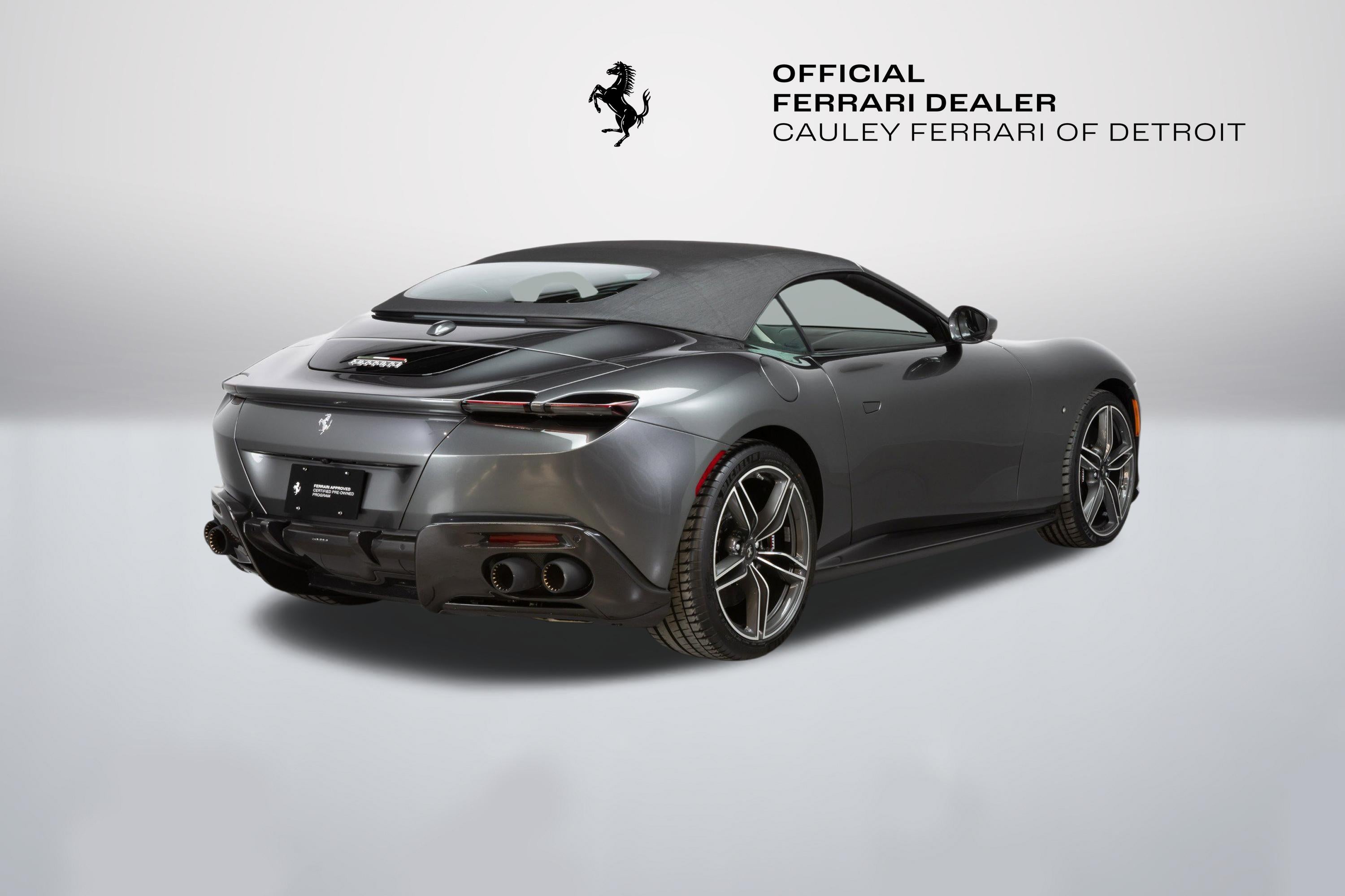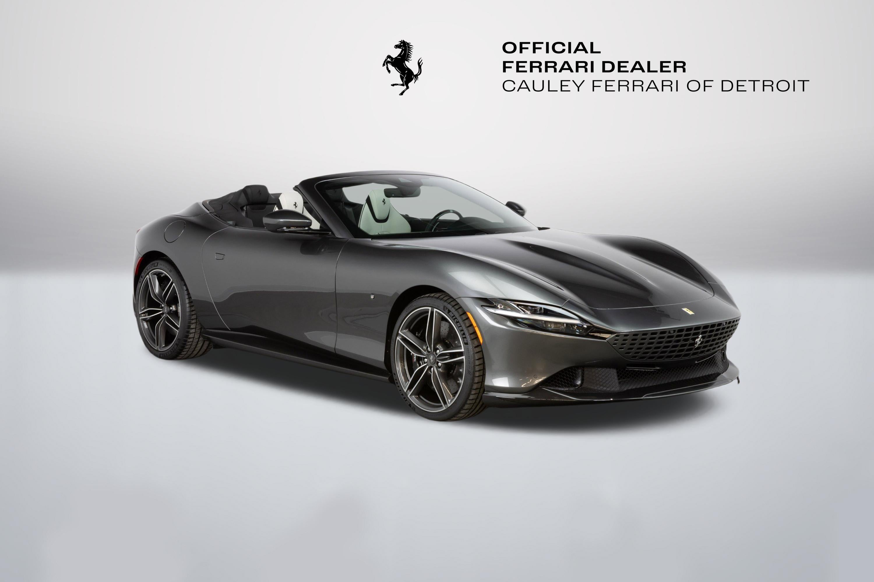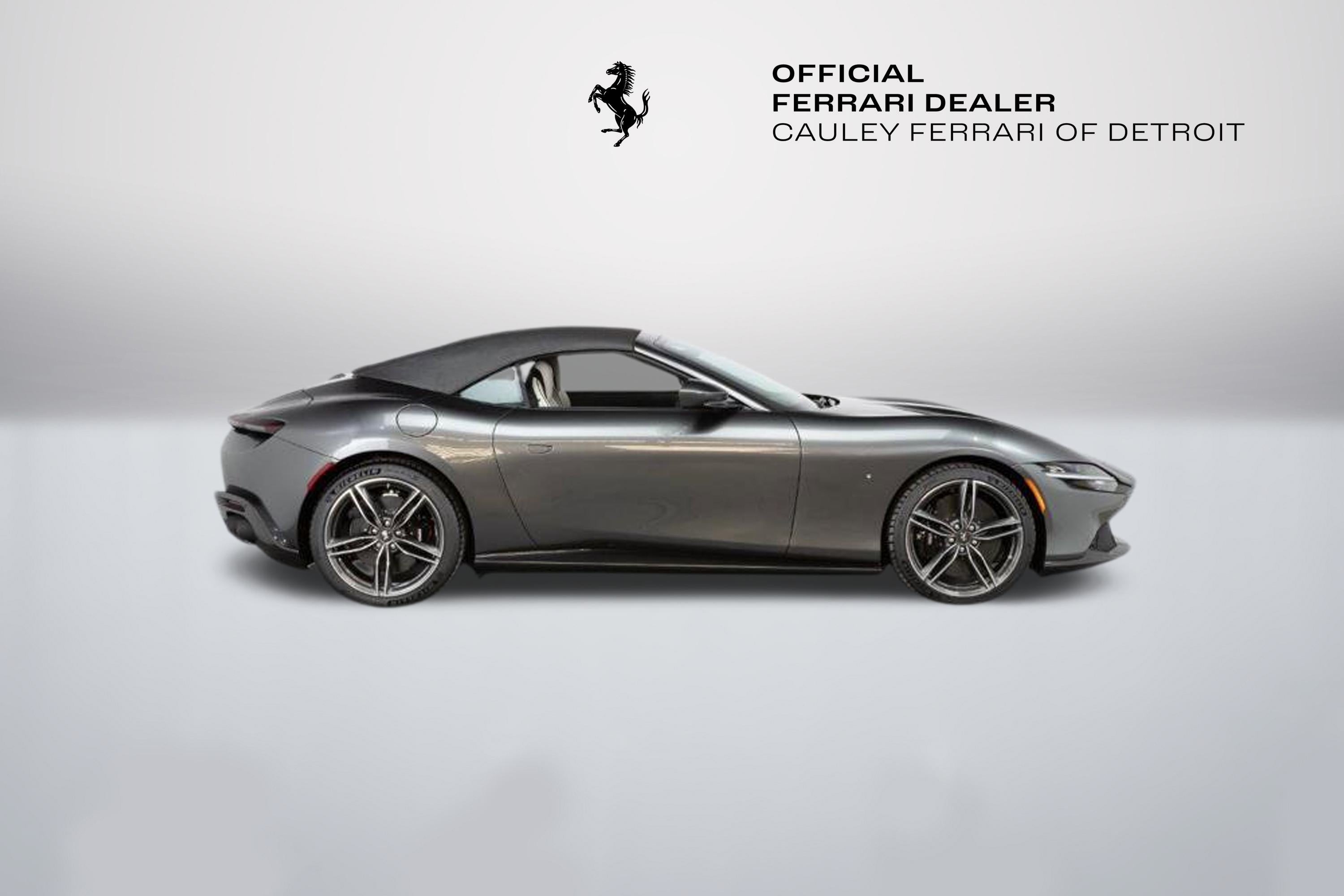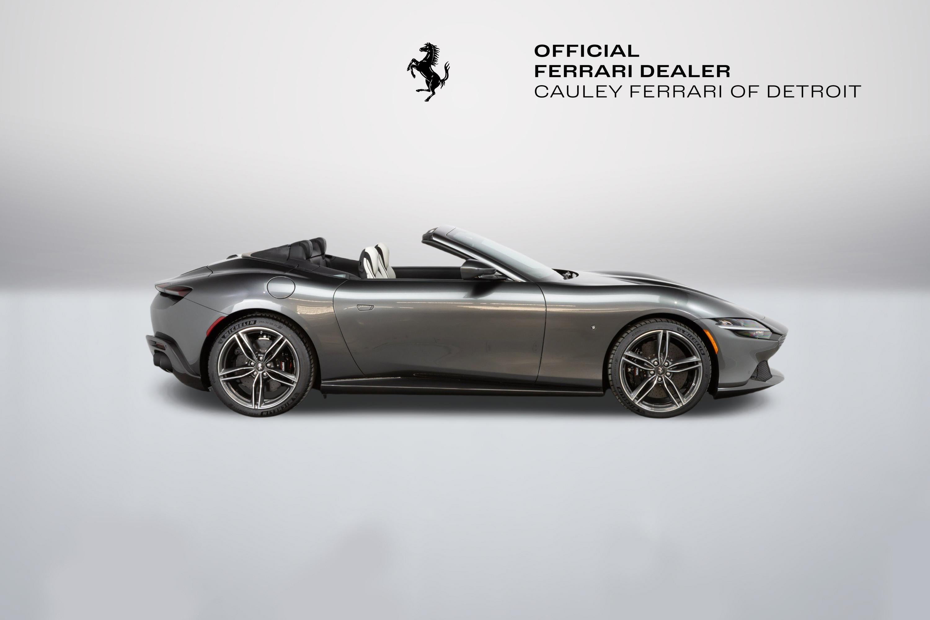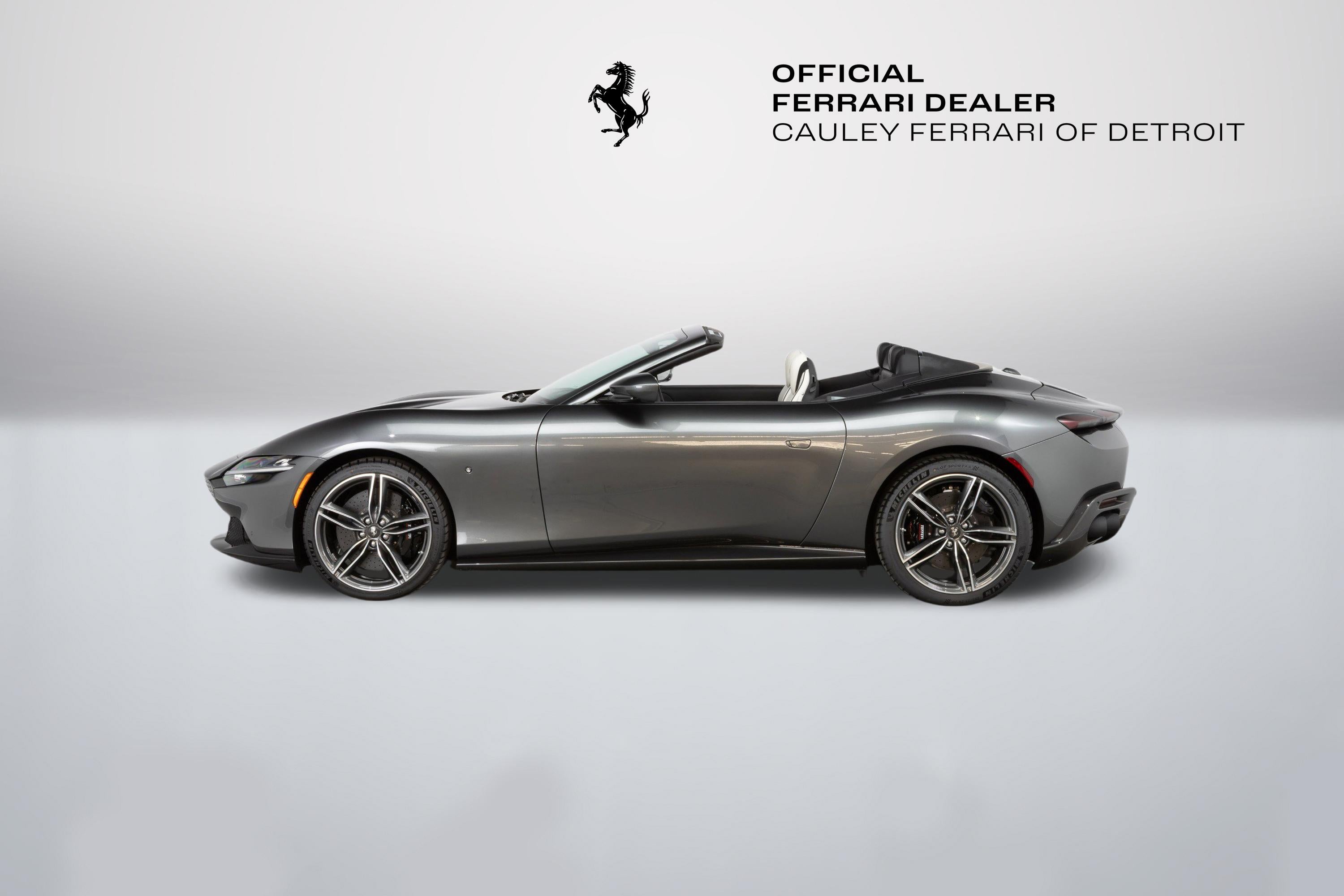 Cauley Ferrari of Detroit is excited to offer this classy Roma Spider finished in Grigio Silverstone over a stunning Grigio Chiaro interior. This car is equipped with desirable options such as Diamond Polished Forged Wheels, Magneride Suspension, Advanced Front Driving Camera, Carbon Fiber Steering Wheel + LEDs and much more. This Roma is being sold as a Certified Pre-Owned Vehicle and the full factory warranty is good until 11/14/2027. Ferrari free annual service runs through 11/14/2031. Give us a call at 248-538-9600 to set up an appointment for a closer look or stop by our showroom in West Bloomfield, MI. Please ask us about our financing and leasing options available through Ferrari Financial Services (FFS). We can offer you monthly financing as far out as 84 months, Balloon financing up to 60 months, as well as Open-End Leasing scenarios. FFS is available on all new and pre-owned Ferrari models. These flexible payment options make getting into a Ferrari easier than ever before. Let us show you how. Give us a call at 248-538-9600 to set up an appointment for a closer look or stop by our showroom in West Bloomfield, MI. Factory Options: - Back Radar - Glossy Black Brake Calipers - Rear Diffuser in Carbon Fibre - Carbon Fibre Underdoor Cover - Carbon Fibre Wheel Cup - Exterior Sill Kickplate in Carbon - Tonneau Cover in Fabric - Single-Colour Dreamline on F1 Paddles Argento Nurburgring 101/C - Cavallino Stitched on Headrest Nero 4000 - Black Tailpipe Tips - Advanced Front Driving Camera - Carbon Fibre Front Spoiler - Long, Narrow It. Flag Motif - MyFerrari Connect Readiness HW - Extrarange Leather Grigio Chiaro 4301 - Carb. Fib. Steering Wheel + LEDs - Single-Colour Livery on Upper Steering Wheel Rim Argento Nurburgring 101/C - Central Part of Seats in Intx Leather - Magneride Dual Mode Suspension - Electrochromic Rear-View Mirror - Passenger Display - Pip7 in Extrarange Leather - Colour Upon Request for Piping Nero 8500 - Leather Passenger Compartment Inserts in Extrarange - Classic Colours Grigio Silverstone 740 - Diamond-Polished Forged Wheels - Full Electric Seats - Smartphone Interface - Soft Top Colour Black Tailoring Fabric - Custom Specifications - Michelin Tyres - Wireless Smartphone Charger - Active Matrix LED Lights - USA - MyFerrari Connect No Activated The Ferrari Roma Spider is a timelessly elegant, high-performance car, but also a contemporary take on the chic, pleasure-seeking Italian lifestyle of the 1950s and 60s. This spider carries over the proportions, volumes and specifications of the Ferrari Roma?s hugely successful concept, but what makes it so striking is the adoption of a soft top, a solution making a welcome return to the Prancing Horse range on a front-engined car 54 years after the launch of the 1969 365 GTS4. The Ferrari Roma Spider is powered by an engine belonging to the V8 turbo family named "International Engine of the Year" for four consecutive years and also voted "Best Engine of the Last 20 Years" in 2018. The 3,855 cc power unit can punch out 620 cv at 7,500 rpm, the equivalent of 161 cV/I, which it combines with the flexibility of low-end pick-up, thanks to 80% of the torque being available at just 1900 rpm. Designed by the Ferrari Styling Centre headed by Flavio Manzoni, the Ferrari Roma Spider is a 2+ spider which boasts a sophisticated fabric soft top, designed to enhance the flawless proportions of the Ferrari Roma without modifying that car's elegantly flowing silhouette.