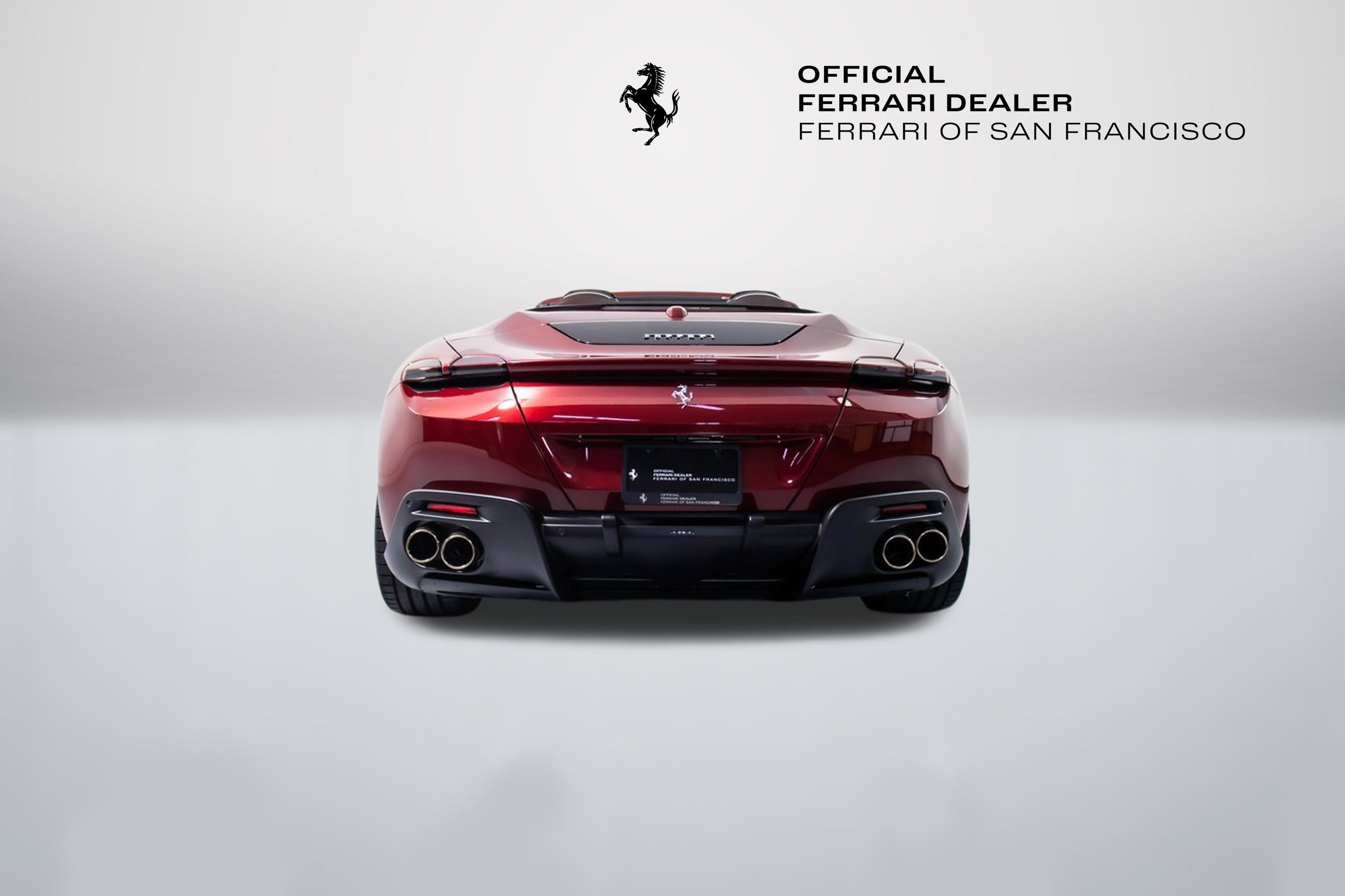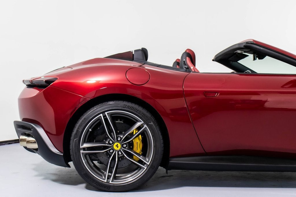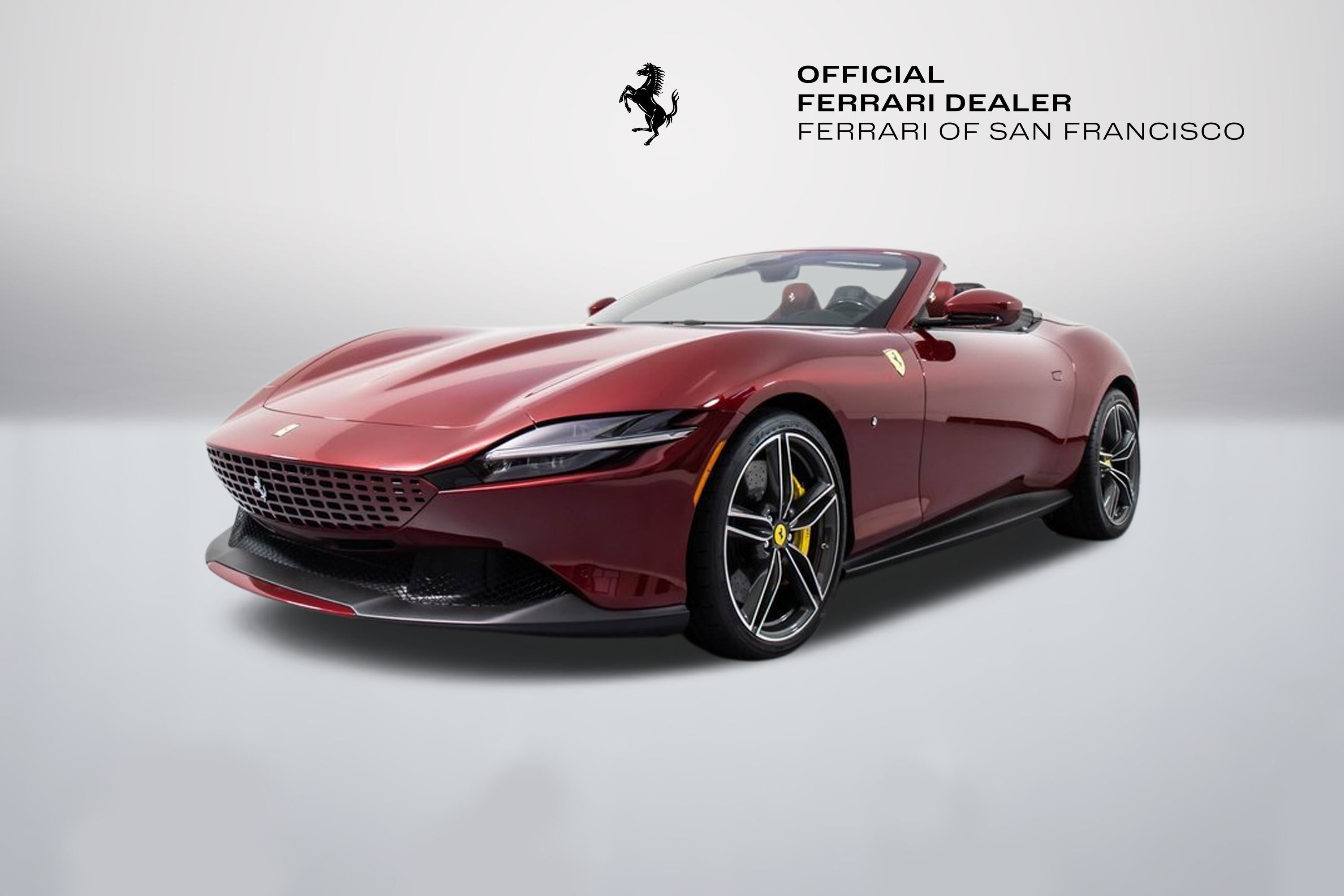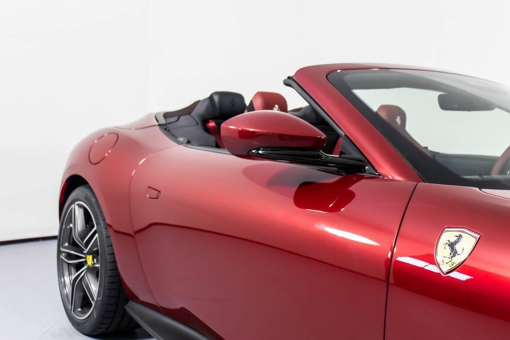 316753 Exterior: Rosso California Interior: Bordeaux Mats: Nero 2025 Ferrari Roma Spider Options: Top in Red Technical Fabric Colored Passenger Compartment Details in Bordeaux Colored Seat Belts in Bordeaux Cavallino Stitched on Headrest EMPH in Special Thread Leather Passenger Compartment Inserts in Nero Special 2-Layer Colors in Rosso California Soft Top Color Top Contrast Stitching in Rosso Colored Steering Wheel in Bordeaux The 2025 Ferrari Roma Spider arrives in a stunning Rosso California finish, paired perfectly with an elegant Bordeaux interior and contrasting Nero mats, embodying open-air sophistication with unmistakable Ferrari flair. Its red technical fabric soft top enhances its sleek profile, while Special 2-Layer Rosso California paint adds exceptional depth and richness. Inside, the cabin exudes refined luxury with Bordeaux-colored passenger compartment details, matching Bordeaux seat belts, and a Bordeaux-colored steering wheel, complemented by Nero leather inserts for balanced contrast. The iconic Cavallino stitched on the headrest and special-thread EMPH detailing elevate the craftsmanship, while top contrast stitching in Rosso ties together the cars expressive aesthetic. This Roma Spider is a harmonious blend of classic Italian grand touring spirit and contemporary open-top elegance.