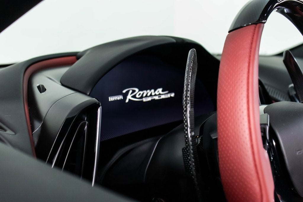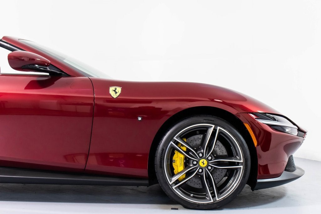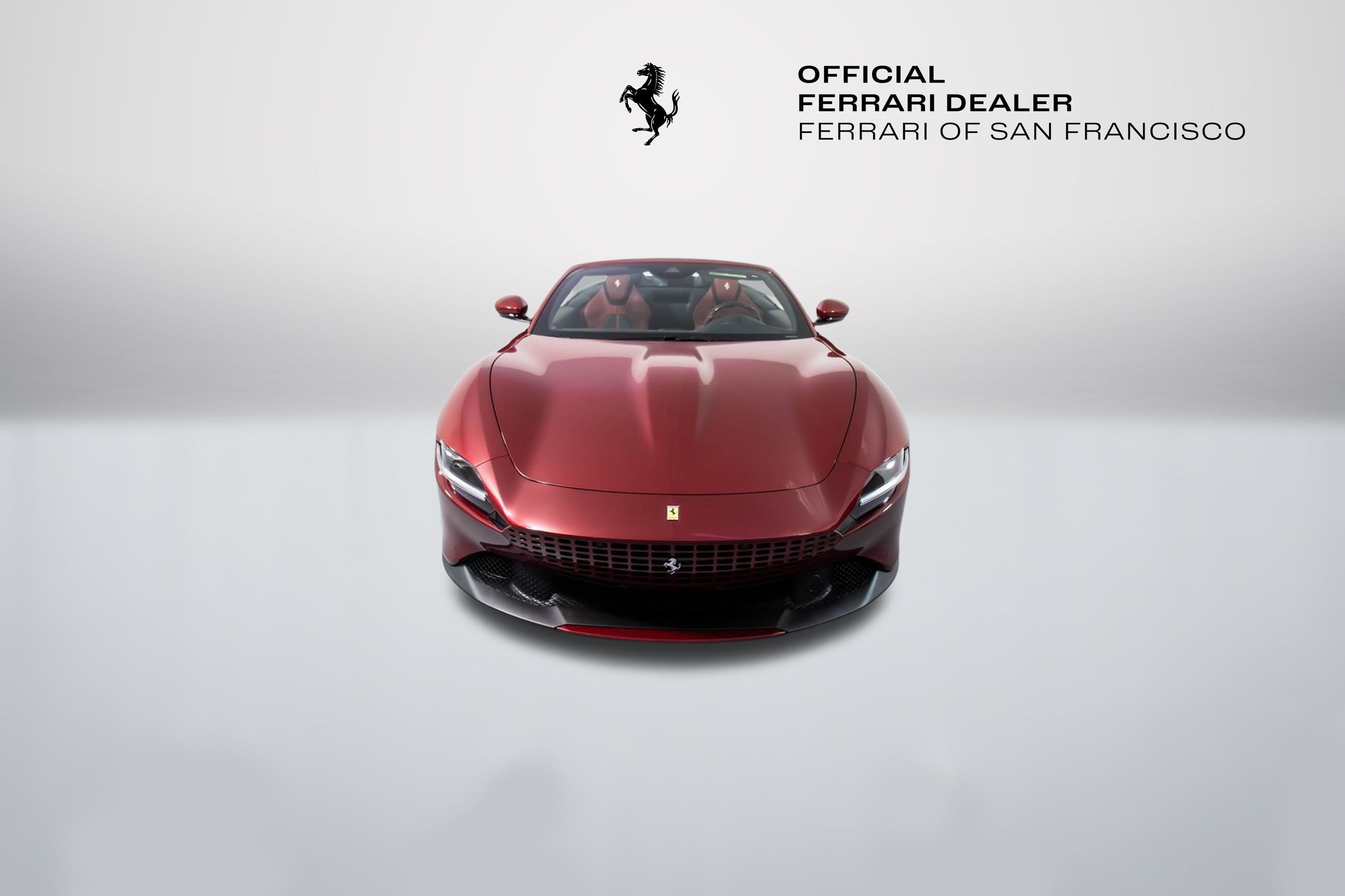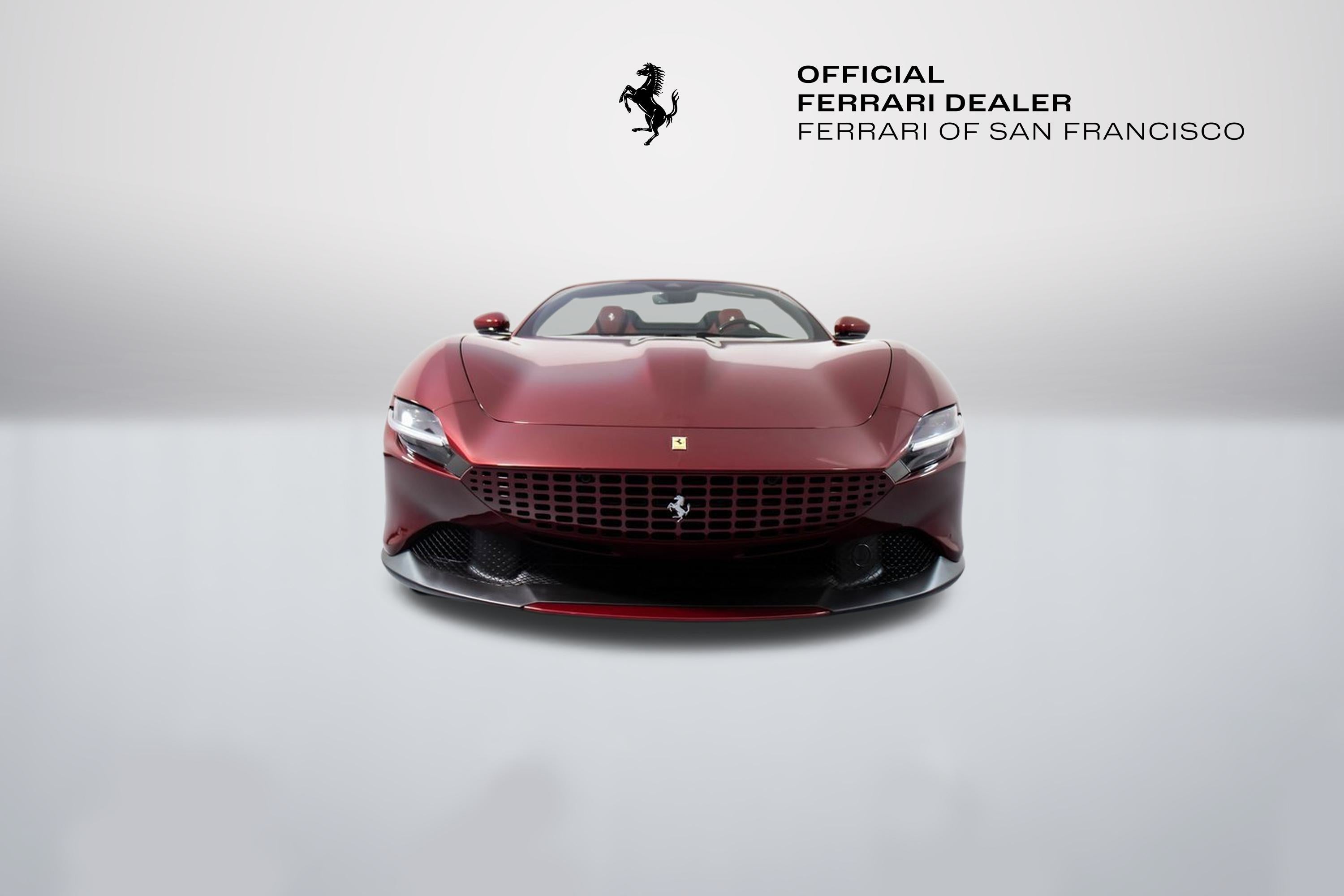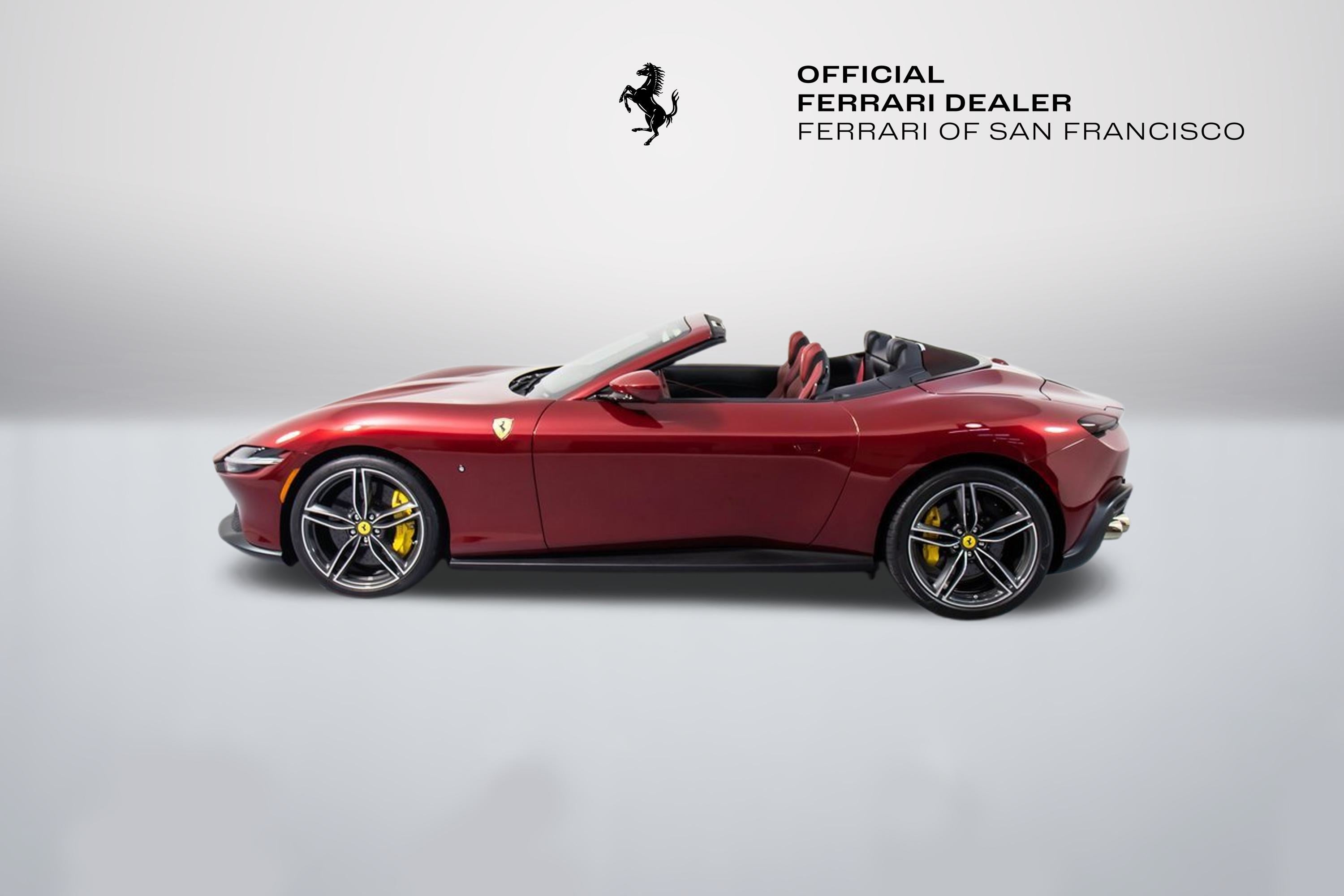 316753 Exterior: Rosso California Interior: Bordeaux Mats: Nero 2025 Ferrari Roma Spider Options: Top in Red Technical Fabric Colored Passenger Compartment Details in Bordeaux Colored Seat Belts in Bordeaux Cavallino Stitched on Headrest EMPH in Special Thread Leather Passenger Compartment Inserts in Nero Special 2-Layer Colors in Rosso California Soft Top Color Top Contrast Stitching in Rosso Colored Steering Wheel in Bordeaux The 2025 Ferrari Roma Spider arrives in a stunning Rosso California finish, paired perfectly with an elegant Bordeaux interior and contrasting Nero mats, embodying open-air sophistication with unmistakable Ferrari flair. Its red technical fabric soft top enhances its sleek profile, while Special 2-Layer Rosso California paint adds exceptional depth and richness. Inside, the cabin exudes refined luxury with Bordeaux-colored passenger compartment details, matching Bordeaux seat belts, and a Bordeaux-colored steering wheel, complemented by Nero leather inserts for balanced contrast. The iconic Cavallino stitched on the headrest and special-thread EMPH detailing elevate the craftsmanship, while top contrast stitching in Rosso ties together the cars expressive aesthetic. This Roma Spider is a harmonious blend of classic Italian grand touring spirit and contemporary open-top elegance.