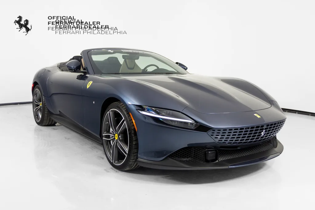 Ferrari Philadelphia is pleased to offer this 2024 Ferrari Roma Spider with only 1,074 miles. This vehicle is being sold with the balance of the factory warranty valid until 10/31/2027 & is under the Ferrari Certified Pre-Owned Program. The Ferrari Roma Spider is a sophisticated convertible that blends timeless elegance with cutting-edge performance. Powered by a 620 cv turbocharged V8 engine, it delivers exhilarating acceleration and driving dynamics, true to Ferrari's grand touring tradition. Its soft-top design, the first on a front-engine Ferrari since the 1960s, ensures a refined open-air experience without compromising style or comfort. Inside, the dual-cockpit layout and luxurious materials reflect the Roma Spider's seamless fusion of innovation and Italian craftsmanship. The exterior color of this Ferrari is hand-finished in Blu Roma complemented by a Tortora leather interior. The options on this Roma Spider include: