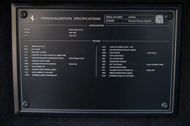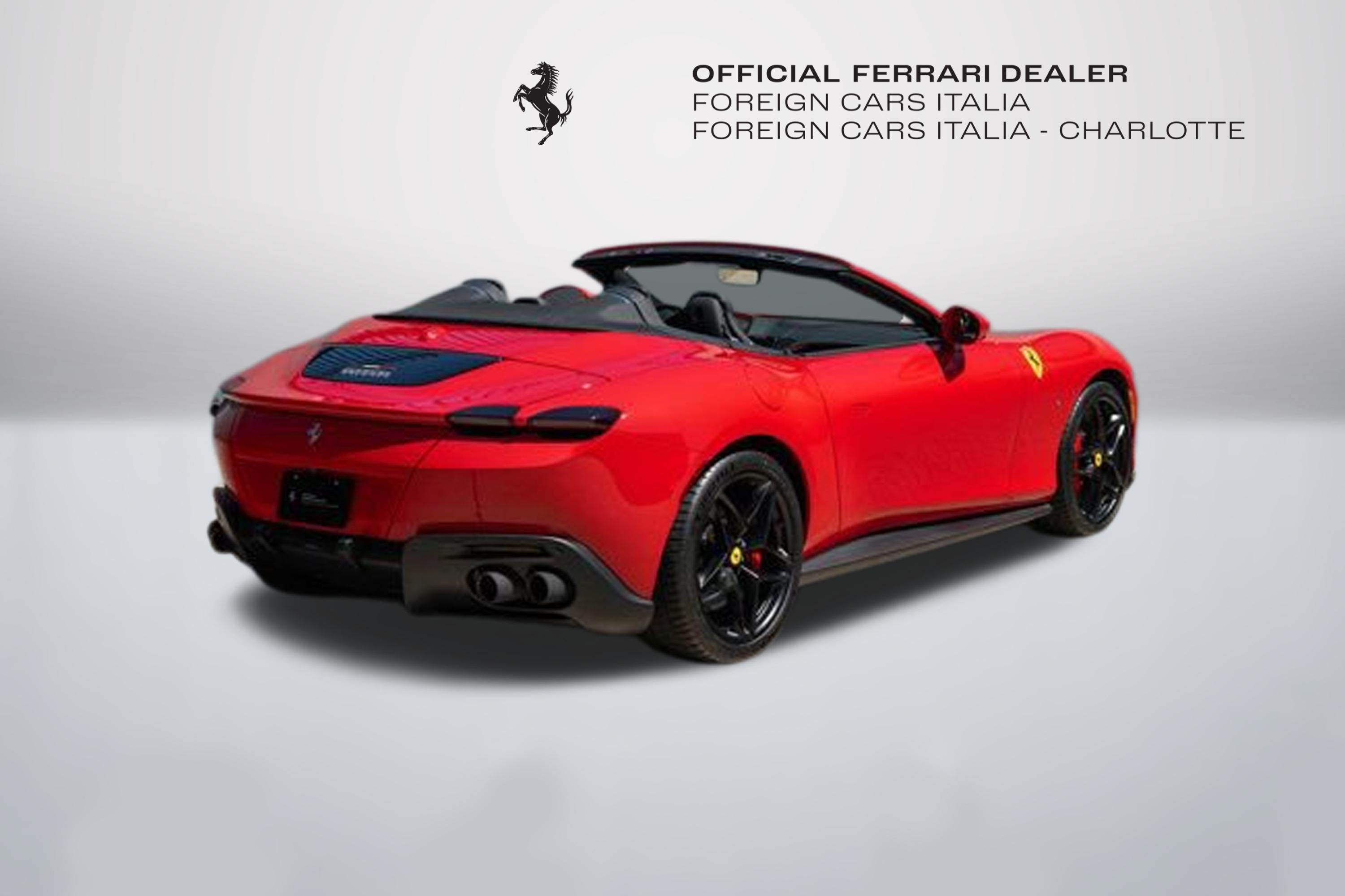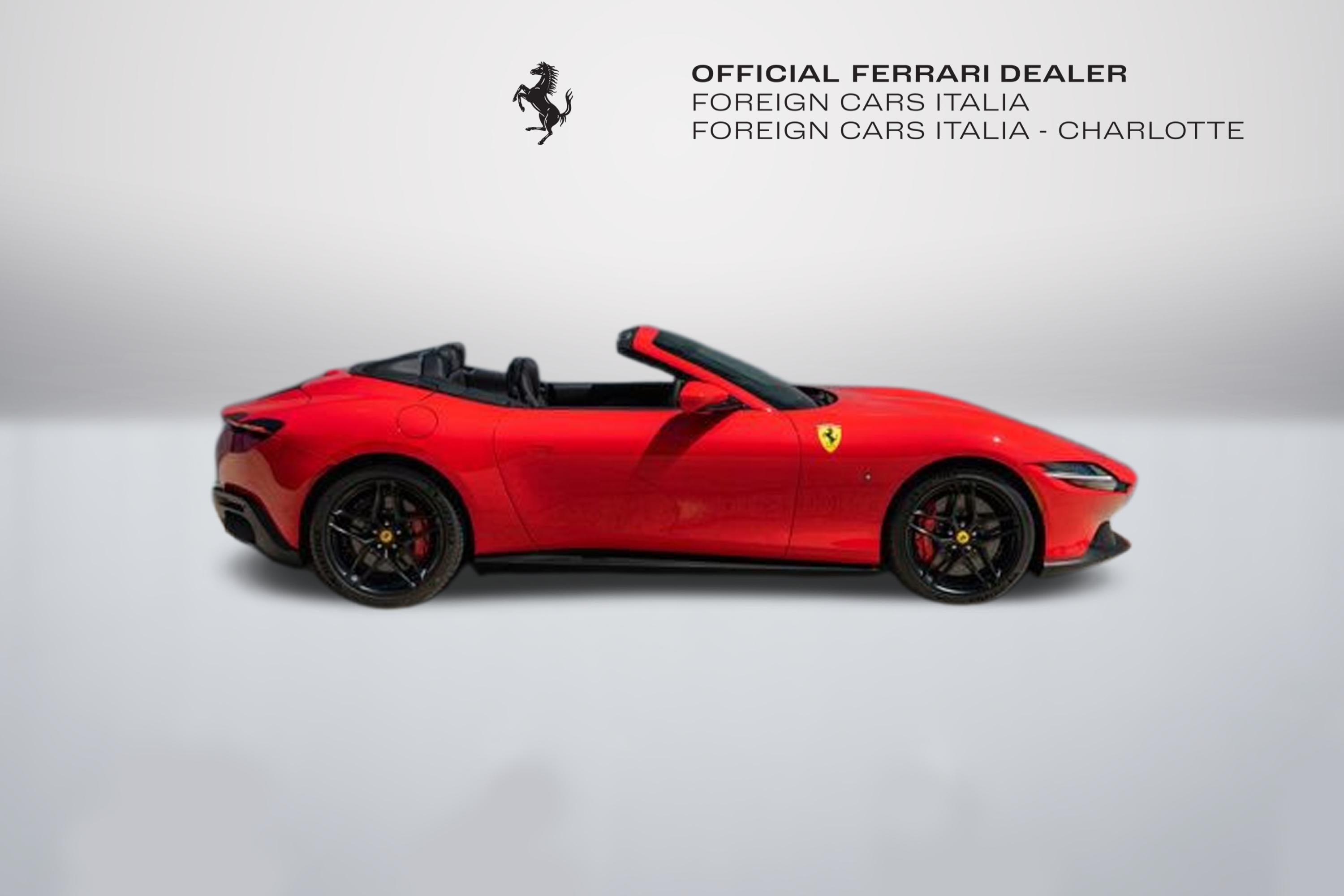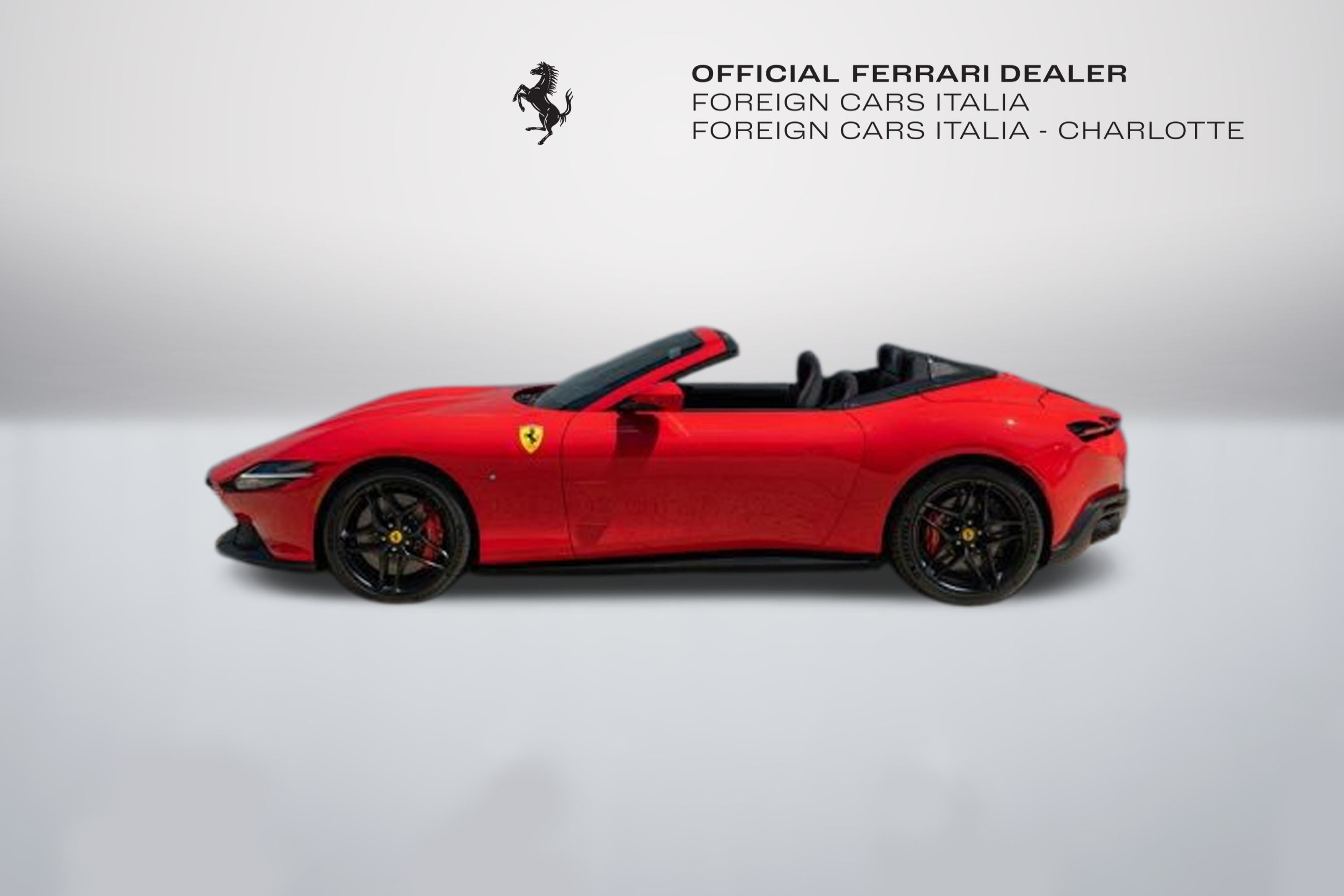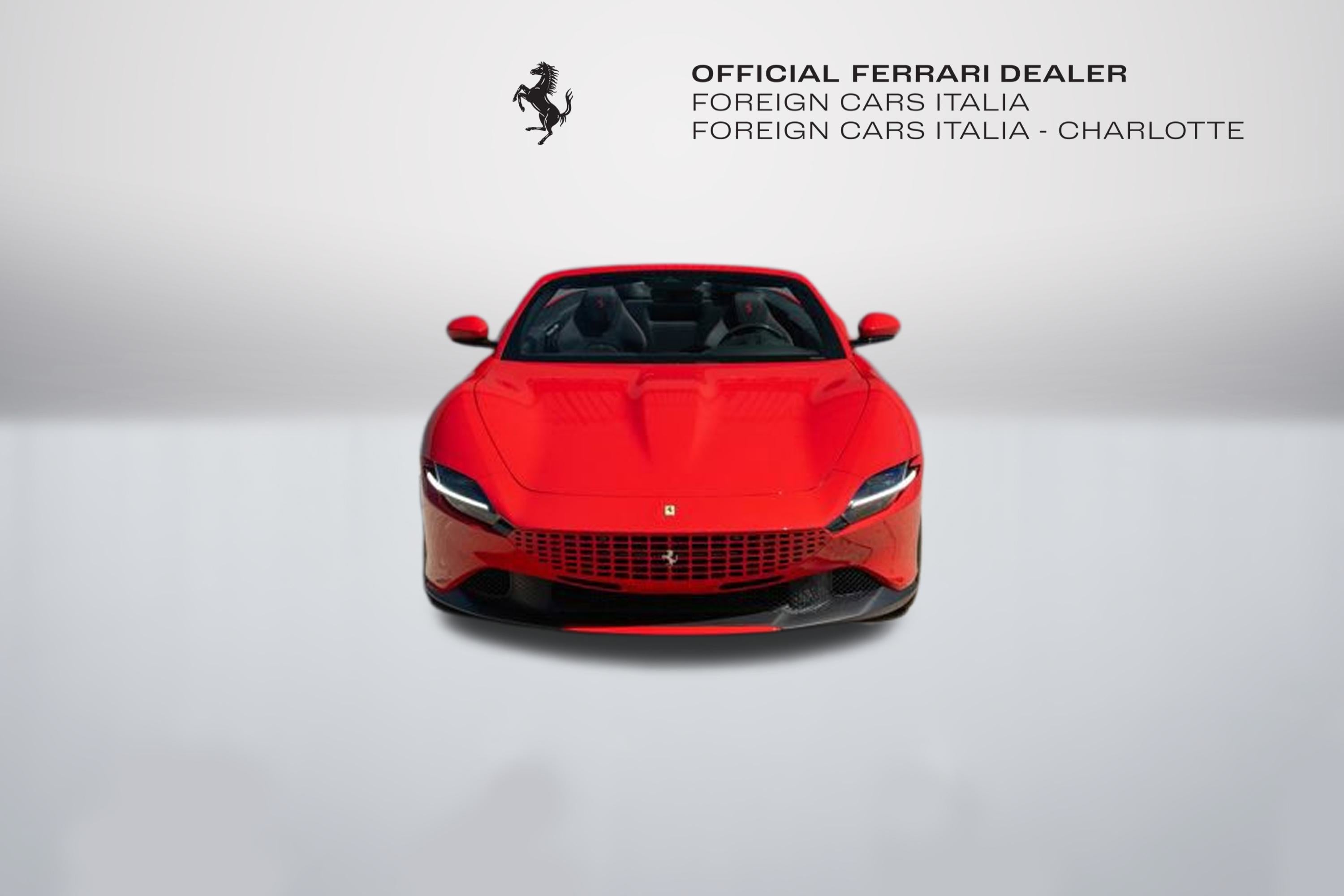 Foreign Cars Italia Charlotte | Official Ferrari Dealer is happy to offer this Rare 2025 Ferrari Roma Spider, that it was largely inspired by the Ferrari Roadsters of the 60s. This 2025 Ferrari Roma Spider is offered in Rosso Corsa, over black interior. This beautifully appointed Spider features elegant Painted Scuderia Shields, drawing inspiration from Ferraris of the past. This vehicle was locally owned and driven, and its as clean as the day it left Maranello. This vehicle comes with: Painted Scuderia Shields | Back Radar | Red Brake Calipers | Carbon Fiber Upper Tunnel Trim | Colored inner Details | Horse Stitched on Headrest | Black Ceramic Exhaust Pipes | Long & Thin Italian Flag | Carbon Fiber Steering Wheel + Leds | Electrochromic Rear View Mirror | Matt Painted Rims | Matt Grigio Corsa Wheels | Coloured Stitching. For a tailored consultation, and carefully crafted walk around video, please contact Joe Greenberg, Ferrari General Manager at 860.550.1149.
