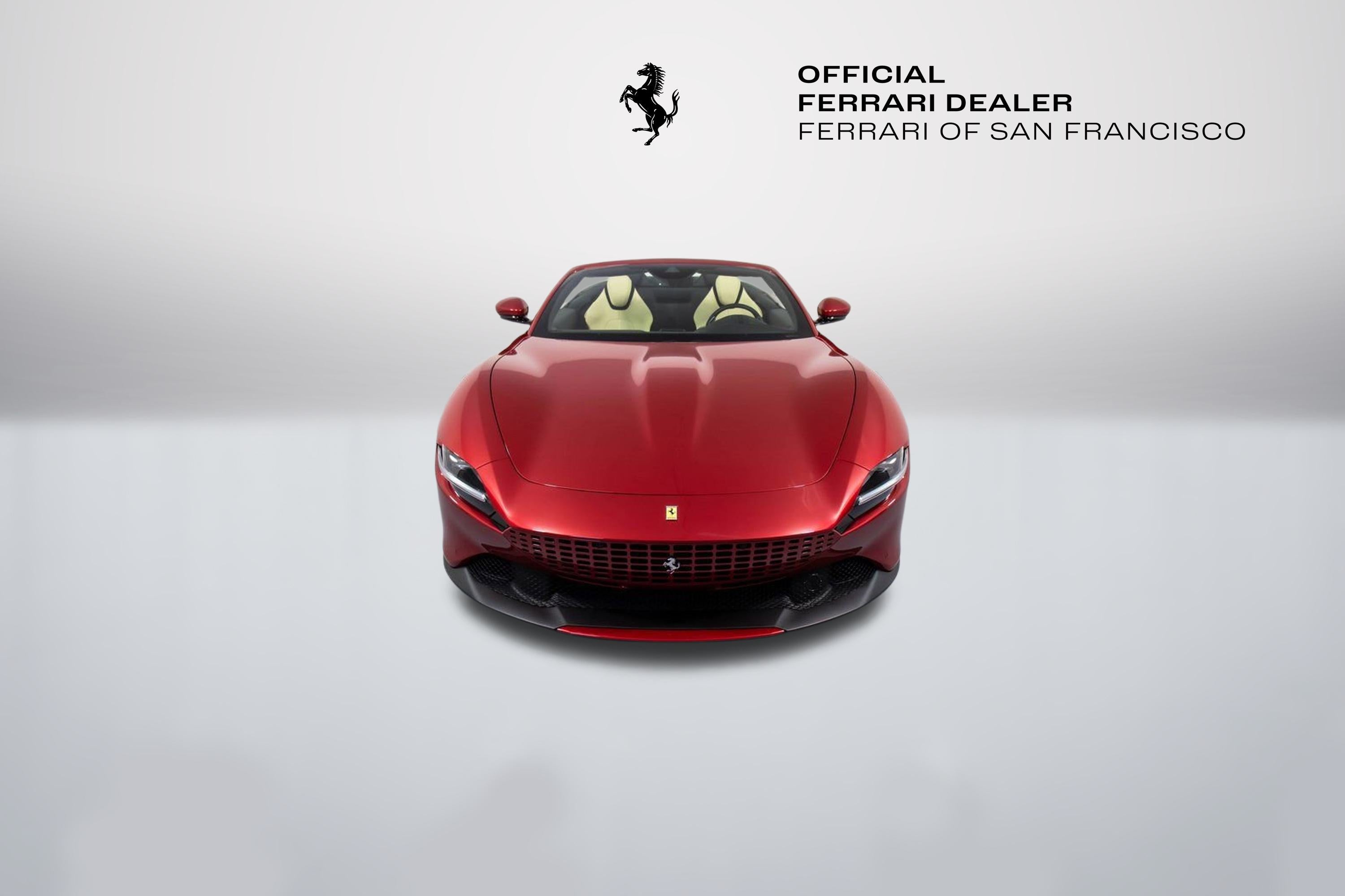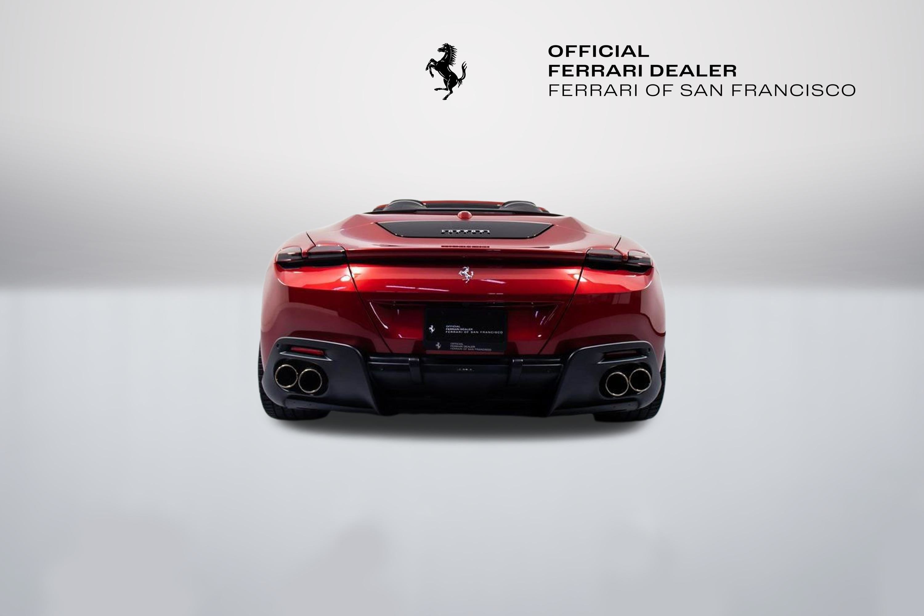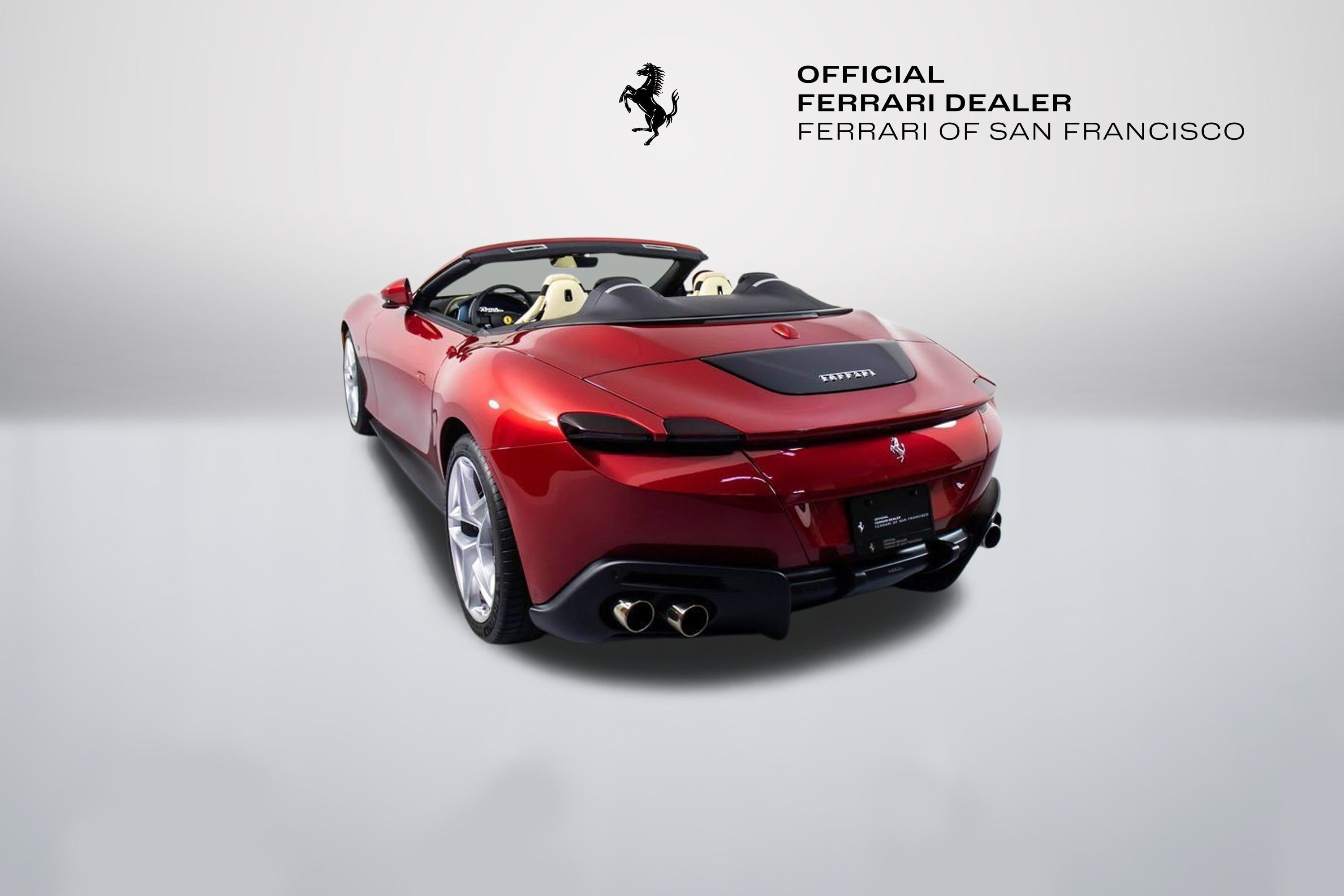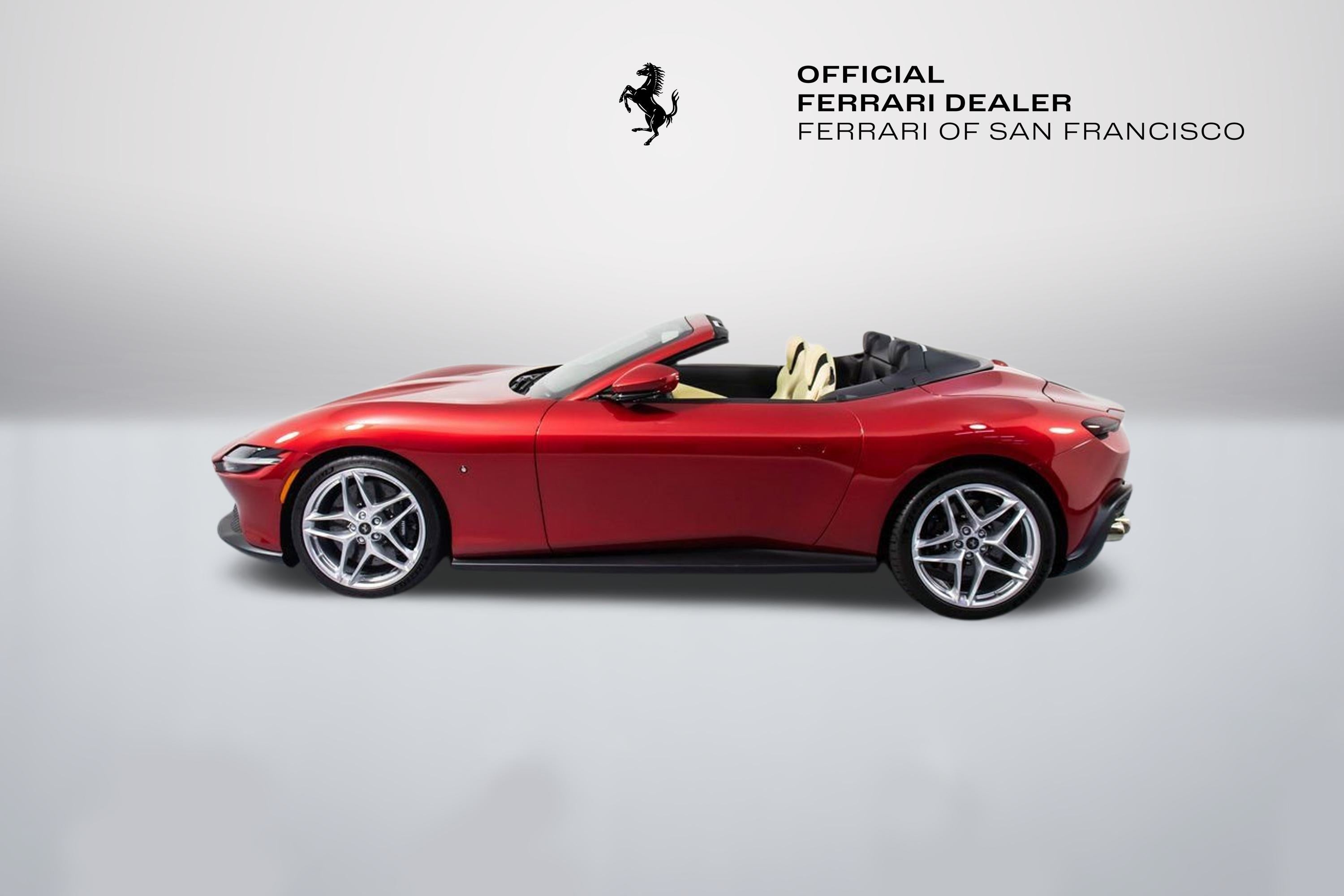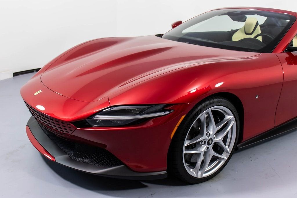 309668 Exterior: Rosso Imola Interior: Crema Mats: Nero 2024 Ferrari Roma Spider Options: Backrest in Colored Leather in Crema Back Radar Glossy Black Brake Calipers Carbon Fiber Wheel Cups Advanced Front Driving Camera Additional Colored Mats with Logo MyFerrari Connect Readiness HW Magneride Dual Mode Suspension Electrochromic Rear-View Mirror Leather Passenger Compartment Inserts in Crema Classic Colors in Rosso Imola STD Chrome Wheels Full Electric Seats Smartphone Interface High Power Hi-Fi System Soft Top Color in Black Tailoring Fabric Top Contrast Stitching in Rosso Michelin Tires Wireless Smartphone Charger The 2024 Ferrari Roma Spider in Rosso Imola is a breathtaking open-top grand tourer that blends refined luxury with unmistakable Ferrari performance. Its bold exterior is paired with a sophisticated Crema interior, enhanced by matching leather passenger compartment inserts and a backrest finished in colored Crema leather for a warm, elegant cabin atmosphere. Glossy Black brake calipers, carbon fiber wheel cups, and classic Rosso Imola paint elevate its visual presence, while the black tailoring-fabric soft top adds a sleek contrast. Comfort and technology come together with full electric seats, Magneride Dual Mode Suspension, an electrochromic rear-view mirror, a high-power Hi-Fi system, and seamless connectivity through the smartphone interface and wireless charger. Advanced features such as Back Radar, the Advanced Front Driving Camera, and MyFerrari Connect Readiness enhance confidence on every drive. Riding on chrome wheels and Michelin tires, this Roma Spider delivers a perfect fusion of open-air elegance and modern Ferrari craftsmanship.