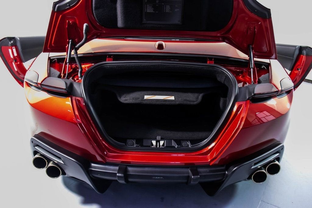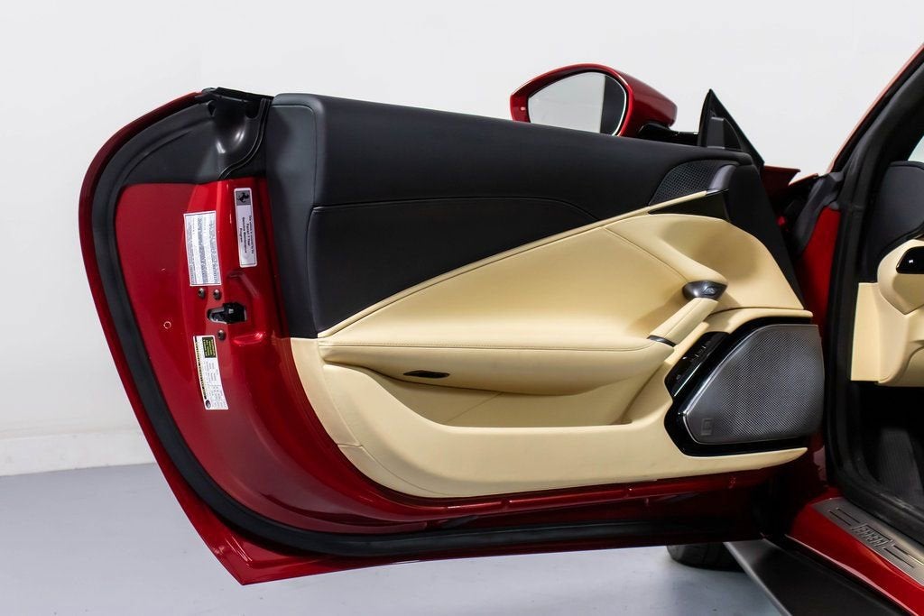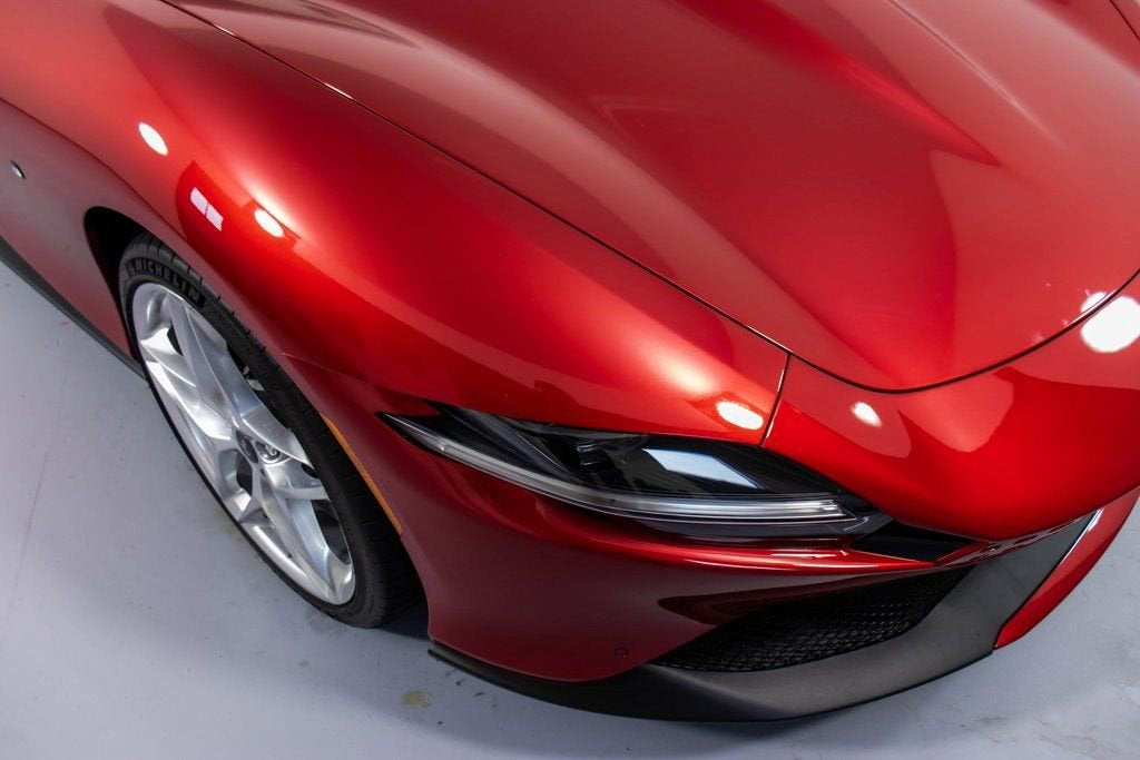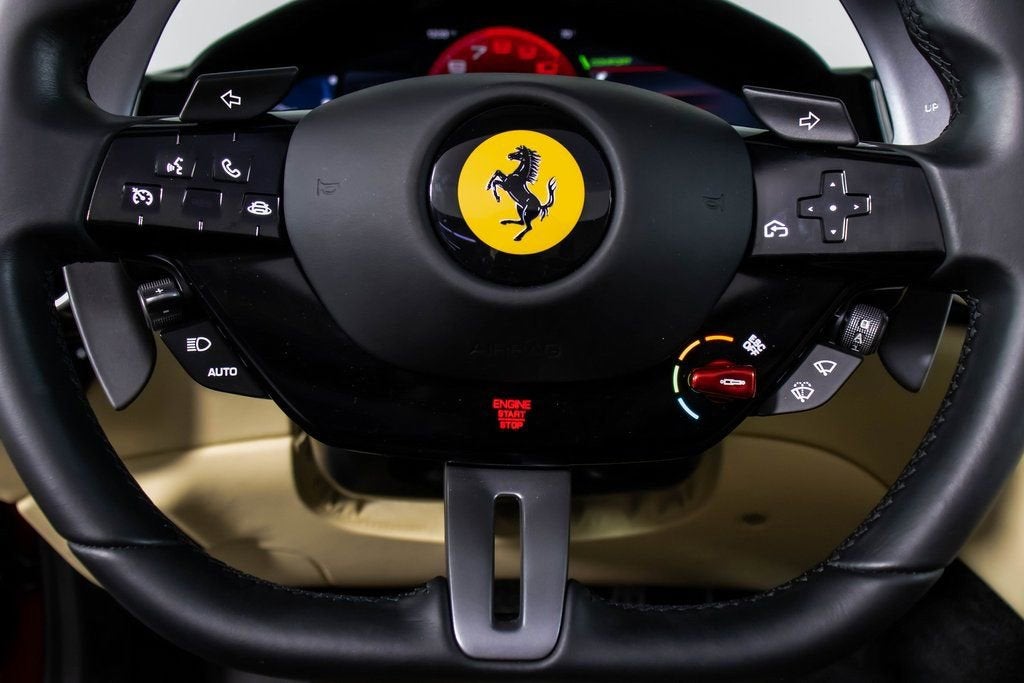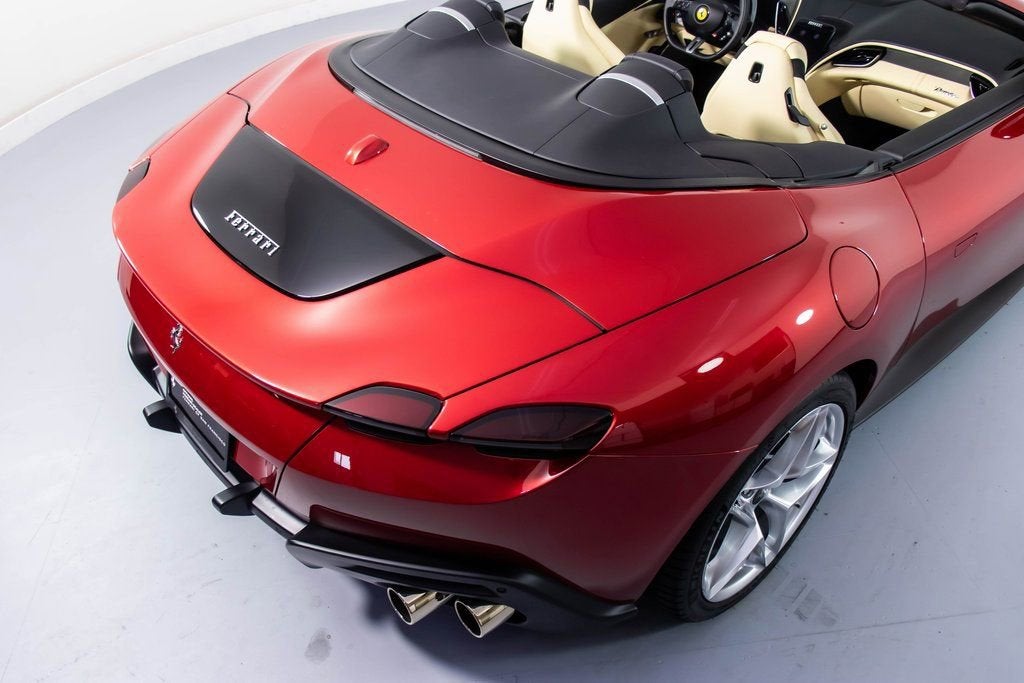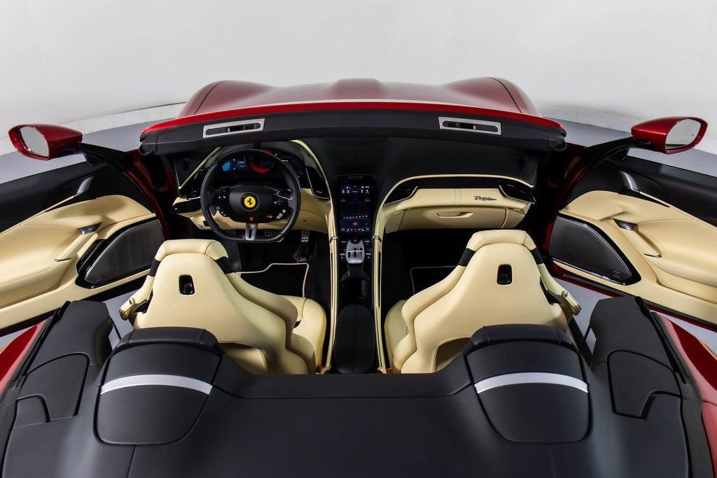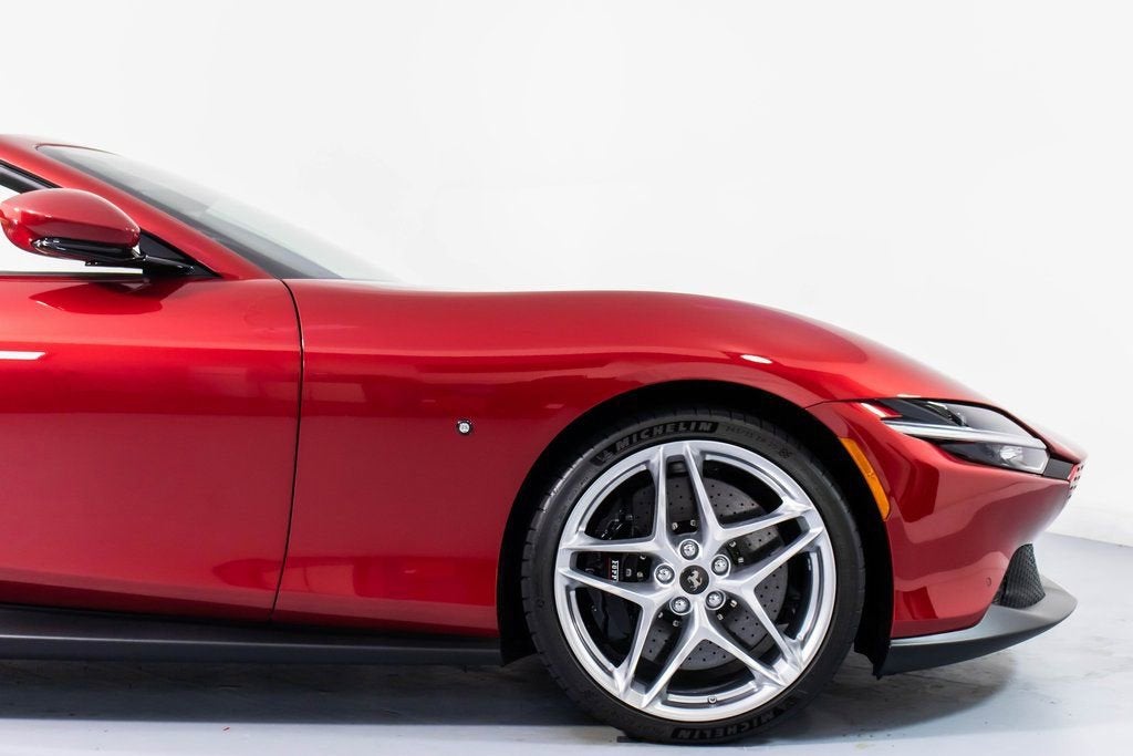 309668 Exterior: Rosso Imola Interior: Crema Mats: Nero 2024 Ferrari Roma Spider Options: Backrest in Colored Leather in Crema Back Radar Glossy Black Brake Calipers Carbon Fiber Wheel Cups Advanced Front Driving Camera Additional Colored Mats with Logo MyFerrari Connect Readiness HW Magneride Dual Mode Suspension Electrochromic Rear-View Mirror Leather Passenger Compartment Inserts in Crema Classic Colors in Rosso Imola STD Chrome Wheels Full Electric Seats Smartphone Interface High Power Hi-Fi System Soft Top Color in Black Tailoring Fabric Top Contrast Stitching in Rosso Michelin Tires Wireless Smartphone Charger The 2024 Ferrari Roma Spider in Rosso Imola is a breathtaking open-top grand tourer that blends refined luxury with unmistakable Ferrari performance. Its bold exterior is paired with a sophisticated Crema interior, enhanced by matching leather passenger compartment inserts and a backrest finished in colored Crema leather for a warm, elegant cabin atmosphere. Glossy Black brake calipers, carbon fiber wheel cups, and classic Rosso Imola paint elevate its visual presence, while the black tailoring-fabric soft top adds a sleek contrast. Comfort and technology come together with full electric seats, Magneride Dual Mode Suspension, an electrochromic rear-view mirror, a high-power Hi-Fi system, and seamless connectivity through the smartphone interface and wireless charger. Advanced features such as Back Radar, the Advanced Front Driving Camera, and MyFerrari Connect Readiness enhance confidence on every drive. Riding on chrome wheels and Michelin tires, this Roma Spider delivers a perfect fusion of open-air elegance and modern Ferrari craftsmanship.