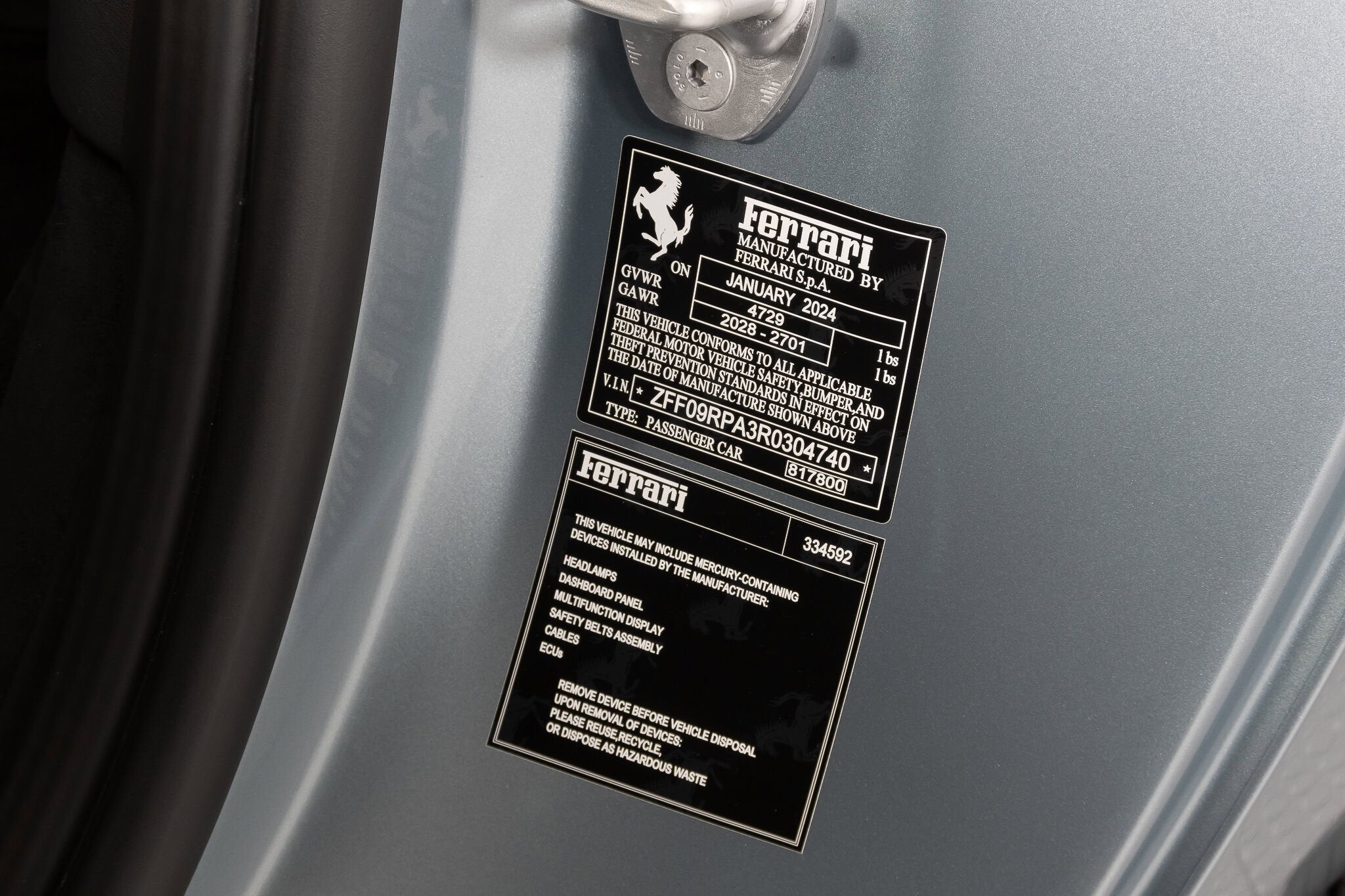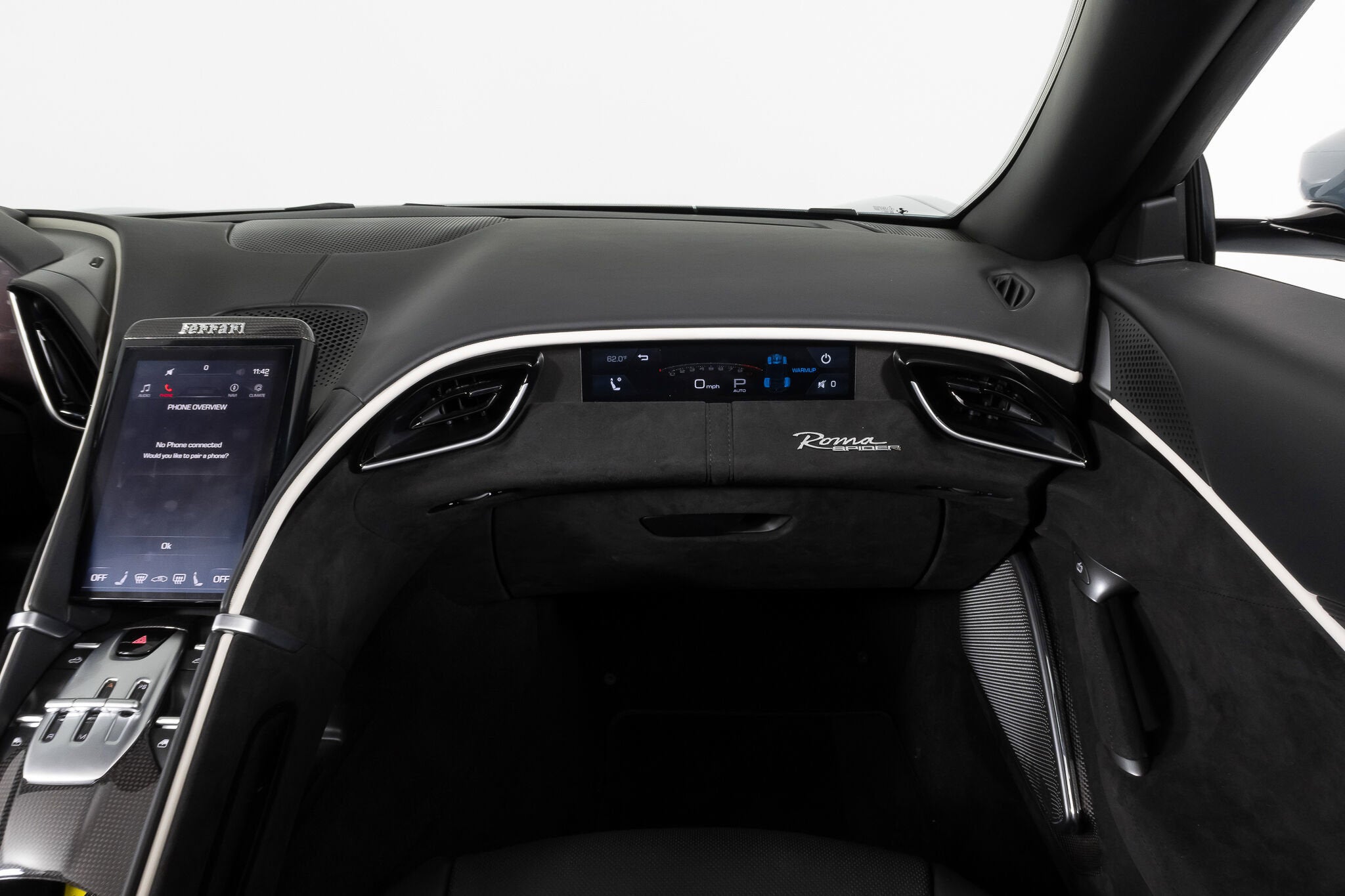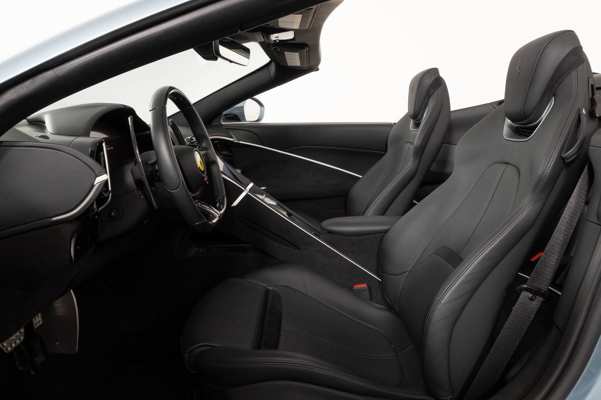 Ferrari South Bay is happy to bring to market this 1-owner 2024 Roma Spider, finished in stunning Celest Trevi, with Nero Leather accented with Gray Leather Cabin Stripes. The Roma Spider offers a terrific opportunity to experience Ferrari's La Nuovo Dolce Vita. The sonorous song of Ferrari's Award-Winning 3.9 Liter twin-turbo V8 in a very elegant Convertible will turn heads whether at Cars & Coffee or on the Red Carpet. The exterior Celest Trevi finish is accented by Matte Aluminum Tailpipe Tips. Carbon Ceramic brakes with Glossy Black Calipers sit behind 20 Wheels finished in Gloss Liquid Silver. Carbon Fiber covers the Active Rear Spoiler, Rear Diffuser, Underdoor Covers, and Front Spoiler, The 3.9 liter twin-turbo V8 produces 612 horsepower which is delivered through an 8-speed Dual Clutch transmission that will make short work of your favorite canyon, or provide a comfortable cruise to your favorite restaurant. The entire exterior of the car is covered with Paint Protective Film, ensuring your Roma Spider will look perfectly elegant for years to come! Inside, you'll find gorgeous Nero Leather accented with Gray Leather Cockpit Bands. The seats are Fully Electric and Ventilated and are fitted with a Neck Warmer. The Heated Steering Wheel is finished in Carbon Fiber, and features Ferrari's LED Shift Lights. Carbon Fiber also covers the Exterior Sill Kicks, Dashboard Inserts and Center Console Tunnel. The Advanced Front Driving Camera and Rear Radar help with tight maneuvers, while Blind Spot Detection assures safe lane changes on the highway. Highway drives are further assisted with Front Radar and Adaptive Cruise Control. The Magneride Dual-Mode suspension smooths out road irregularities. A JBL Premium Sounding sound package will provide entertainment when the car itself can't, and the Passenger Display keeps your copilot informed of vehicle systems. The Wireless Smartphone Charger and Interface are welcome conveniences. This 2024 Ferrari Roma Spider is offered with both keys, car cover, battery tender and tools. As a Ferrari Certified Pre-Owned vehicle, it has passed Ferrari's rigorous 101-point inspection and carries the remainder of its Original Full Factory Warranty through June 4, 2027. An extended warranty is available for up to two years at the time of purchase. Ferrari's Genuine Maintenance Program will take care of all annual services through June 4, 2031.