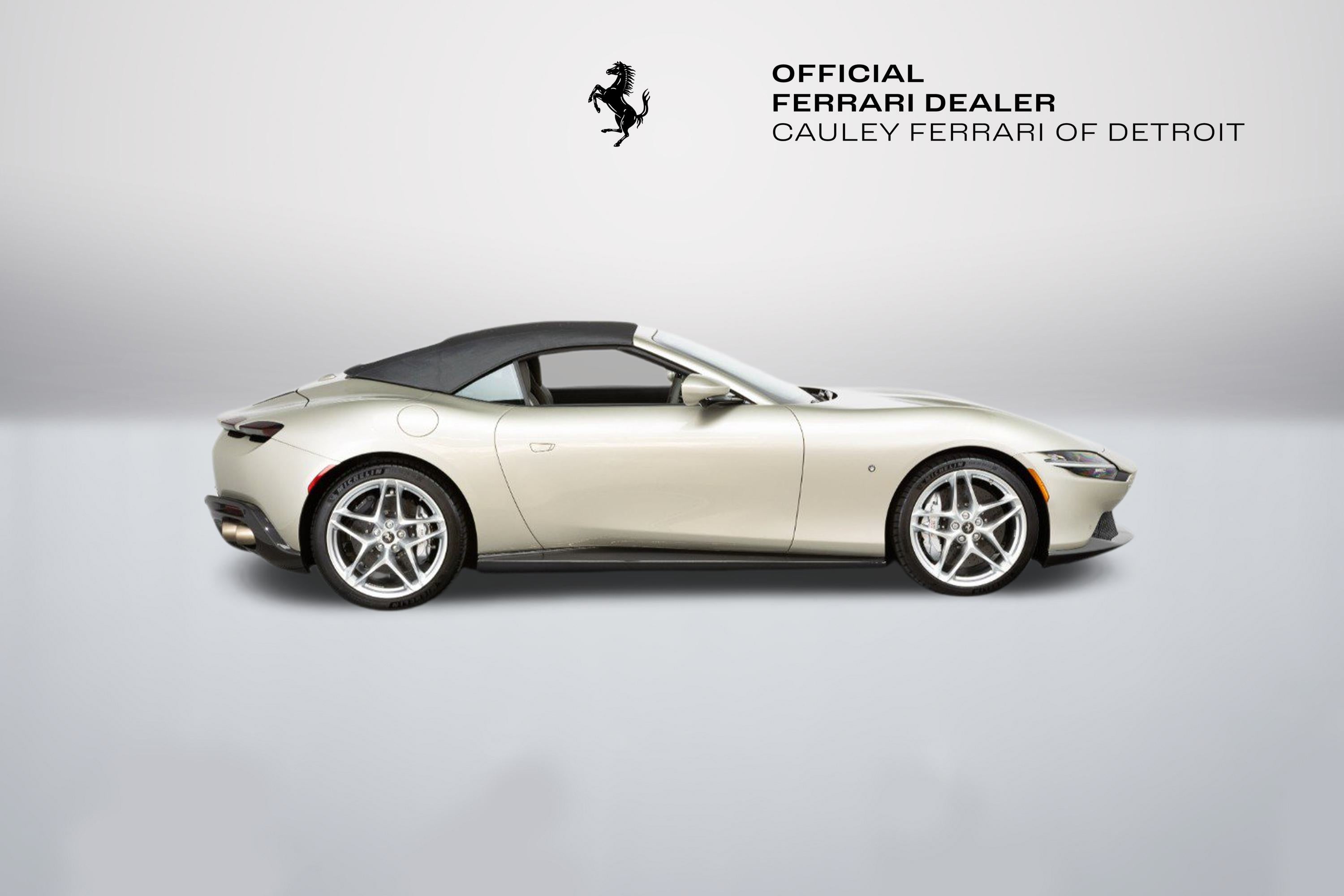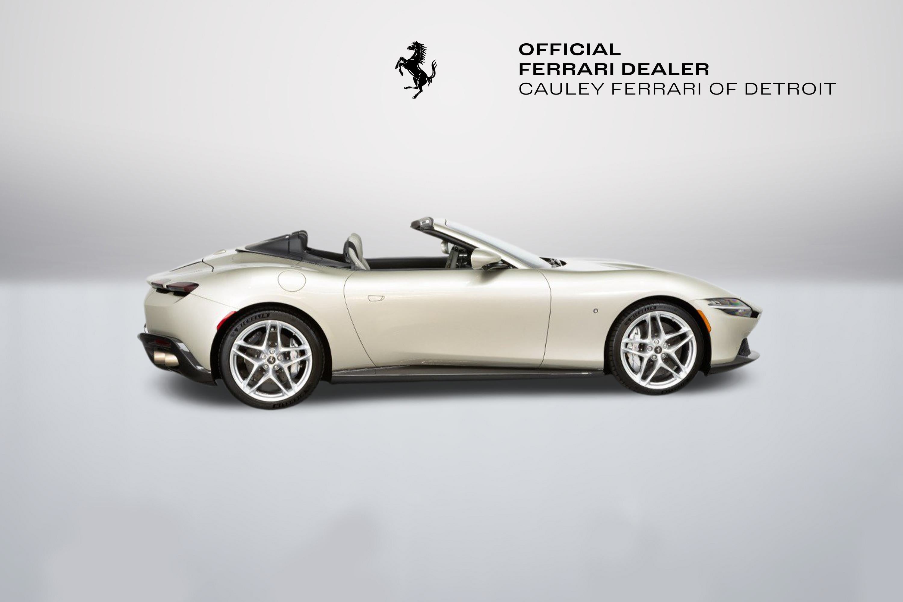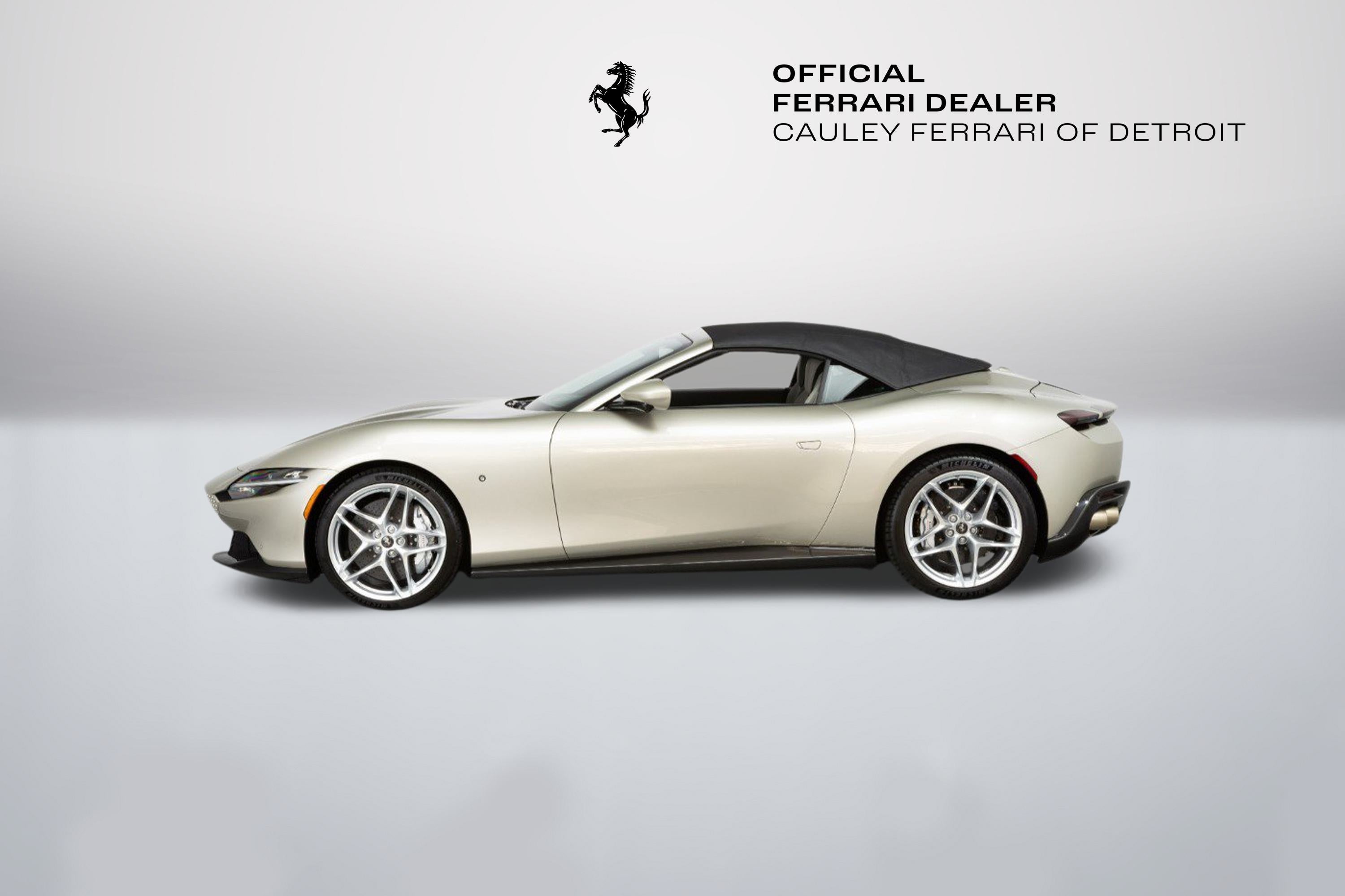 Cauley Ferrari of Detroit is excited to offer this gorgeous Roma Spider finished in Girgio Ingrid over Girgio Chiaro. This car is equipped with desirable options such as Magneride Suspension, Advanced Front Driving Camera, Passenger Display, Carbon Fiber options throughout the interior and exterior, and much more. This Roma Spider is being sold as a Certified Pre-Owned Vehicle, and the full factory warranty is good until 7/31/2027. It will be followed by a 1 Year Ferrari bumper-to-bumper warranty through 7/31/2028. Ferrari free annual service runs through 7/31. Give us a call at 248-538-9600 to set up an appointment for a closer look or stop by our showroom in West Bloomfield, MI. Please ask us about our financing and leasing options available through Ferrari Financial Services (FFS). We can offer you monthly financing as far out as 84 months, Balloon financing up to 60 months, as well as Open-End Leasing scenarios. FFS is available on all new and pre-owned Ferrari models. These flexible payment options make getting into a Ferrari easier than ever before. Let us show you how. Give us a call at 248-538-9600 to set up an appointment for a closer look or stop by our showroom in West Bloomfield, MI. Factory Options: - Back radar - Brake calipers in alluminio - Rear diffuser in carbon fibre - Carbon fibre underdoor cover - Carbon fibre wheel cups - Exterior sill kickplate in carbon - Coloured passenger compartment details extrarrange - CLDT in extrarrange leather - Dashboard inserts in carbon fibre - Daytona style seats - Cavallino stitched on headrest - Rear Cavallini embroidery in EMPR/HX - Sport tailpipe tips - Advanced front driving camera - Carbon fibre front spoiler - Additional coloured mats with logo - MyFerrari connect readiness hardware - Extrarrange leather - LEDs (carbon fibre steering wheel + LEDs) - Central part of seats in extra range leather - Magneride dual-mode suspension - Electrochromic rear-view mirror - Passenger display - PIP7 in extra range leather - Leather passenger compartment inserts in extra range - Special 2-layer colours extra range - Standard chrome wheels - Ventilated full electric seats - Smartphone interface - High power hi-fi system - Soft top colour - Custom specifications - Coloured special stitching O.R. - Leather perforated inserts extra range - STP1 in extra range leather - Coloured steering wheel extra range - Heated steering wheel - Surround view - Michelin tyres - Wireless smartphone charger - Active matrix LED lights USA Special Equipment: - Grigio Ingrid car paint The Ferrari Roma Spider is a timelessly elegant, high-performance car, but also a contemporary take on the chic, pleasure-seeking Italian lifestyle of the 1950s and 60s. This spider carries over the proportions, volumes and specifications of the Ferrari Roma's hugely successful concept, but what makes it so striking is the adoption of a soft top, a solution making a welcome return to the Prancing Horse range on a front-engined car 54 years after the launch of the 1969 365 GTS4. The Ferrari Roma Spider is powered by an engine belonging to the V8 turbo family, named "International Engine of the Year" for four consecutive years and also voted "Best Engine of the Last 20 Years" in 2018. The 3,855 cc power unit can punch out 620 cv at 7,500 rpm, the equivalent of 161 cV/I, which it combines with the flexibility of low-end pick-up, thanks to 80% of the torque being available at just 1900 rpm. Designed by the Ferrari Styling Centre headed by Flavio Manzoni, the Ferrari Roma Spider is a 2+ spider which boasts a sophisticated fabric soft top, designed to enhance the flawless proportions of the Ferrari Roma without modifying that car's elegantly flowing silhouette.