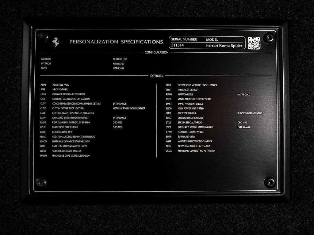 Prancing Horse of Nashville is pleased to present you this beautiful, One owner, Ferrari Approved, Certified Pre-Owned 2024 Ferrari Roma Spider in Special Nero on Nero with Complimentary 2 Year Ferrari Bumper to Bumper Factory Warranty Extension and Pre-Paid Maintenance through 10/29/2031 The Ferrari Roma Spider is characterized by finesse and refinement, representing the pinnacle of performance in its category. This highly-optioned Roma Spider comes some of the most desirable features and sought-after equipment such as: Complete Adas pack Connectivity for Smartphone Wireless smartphone charger Active Matrix Led Lights Dual Mode MagneRide Suspension Surround View Premium Hi-Fi system Heated Steering Whell Front seat neck warmer Full electric ventilated front seats Horse Stitched on Headrest Horse Embroidered on the Rear Wall Gloss finish Carbon Fibre Kickplate Carbon Fibre.