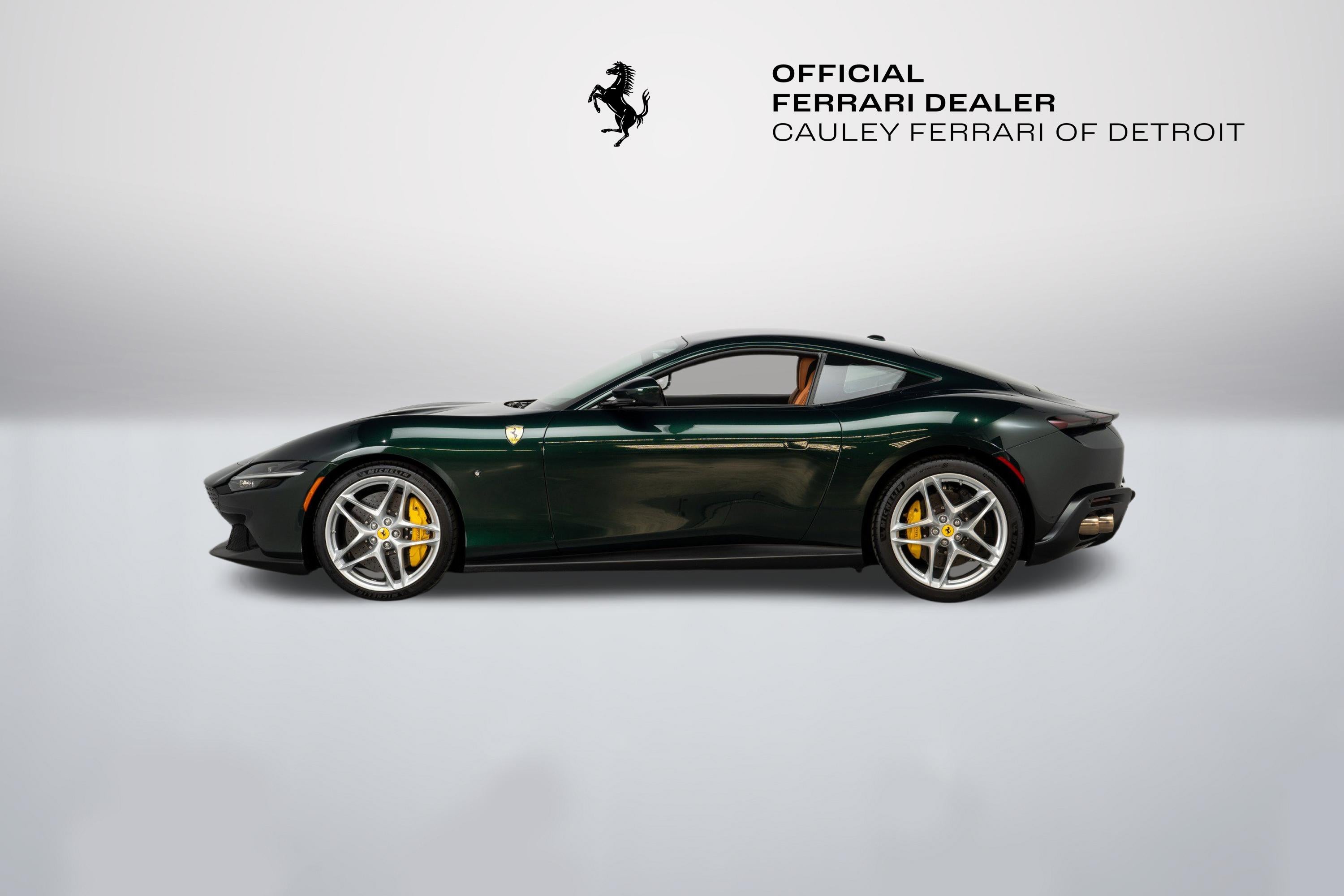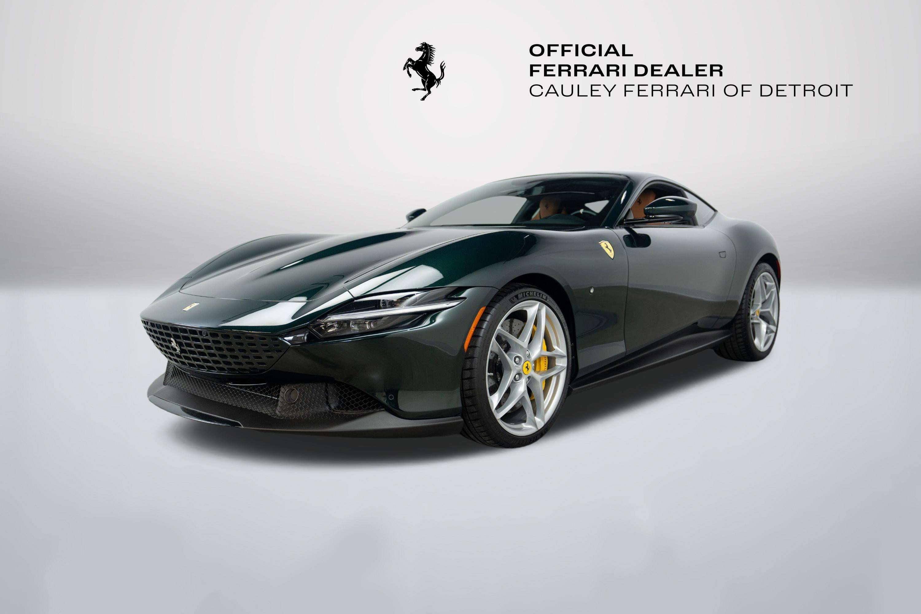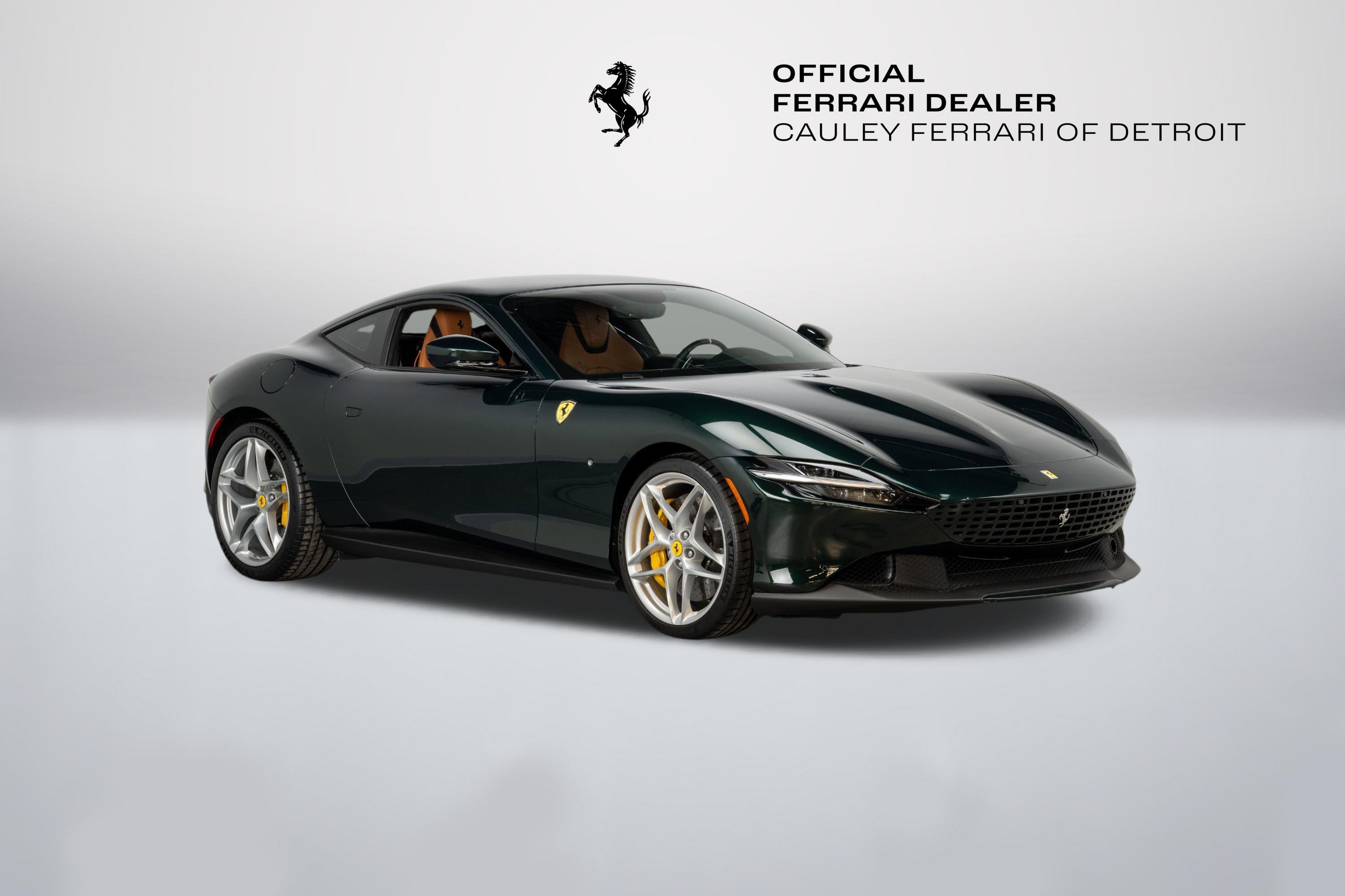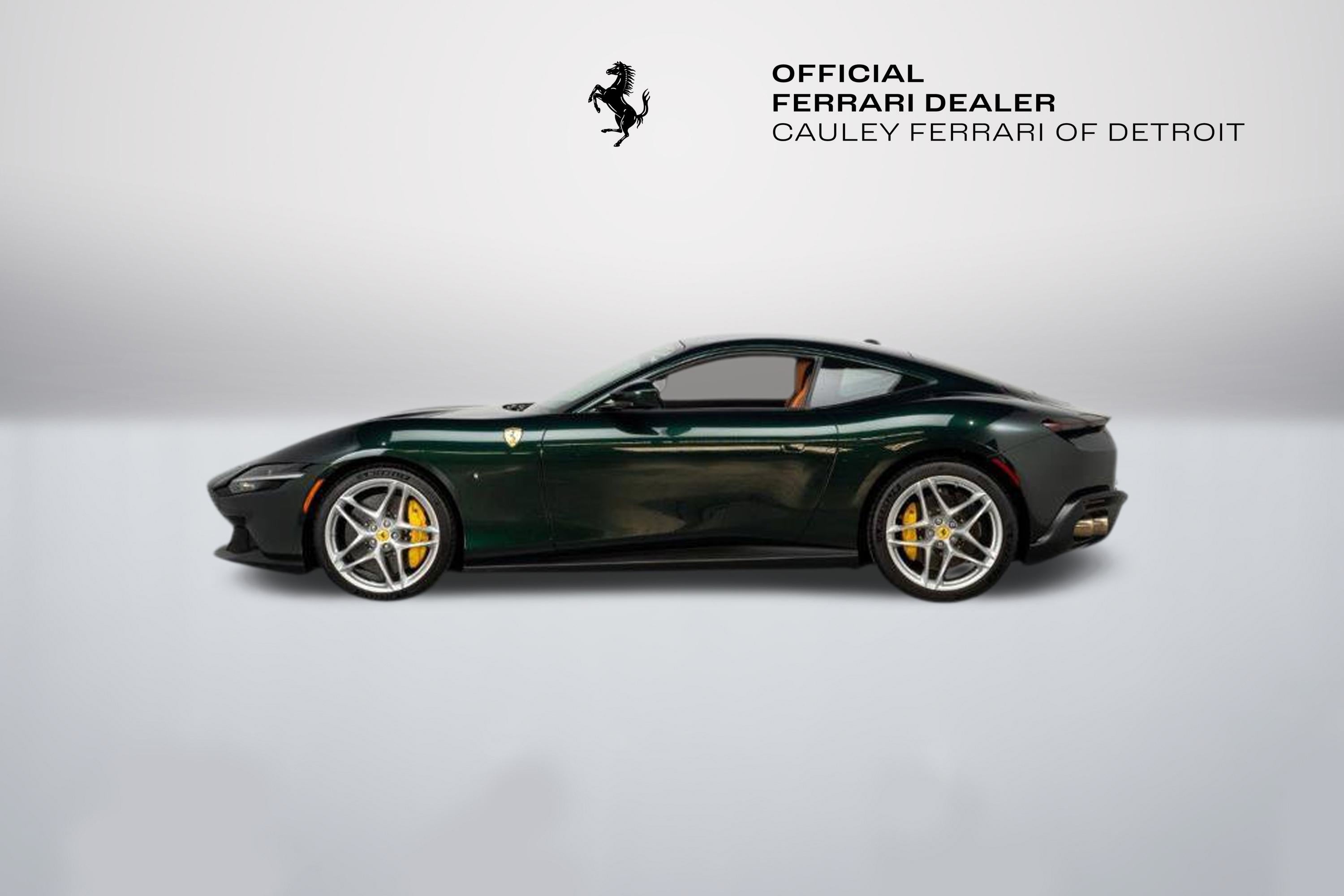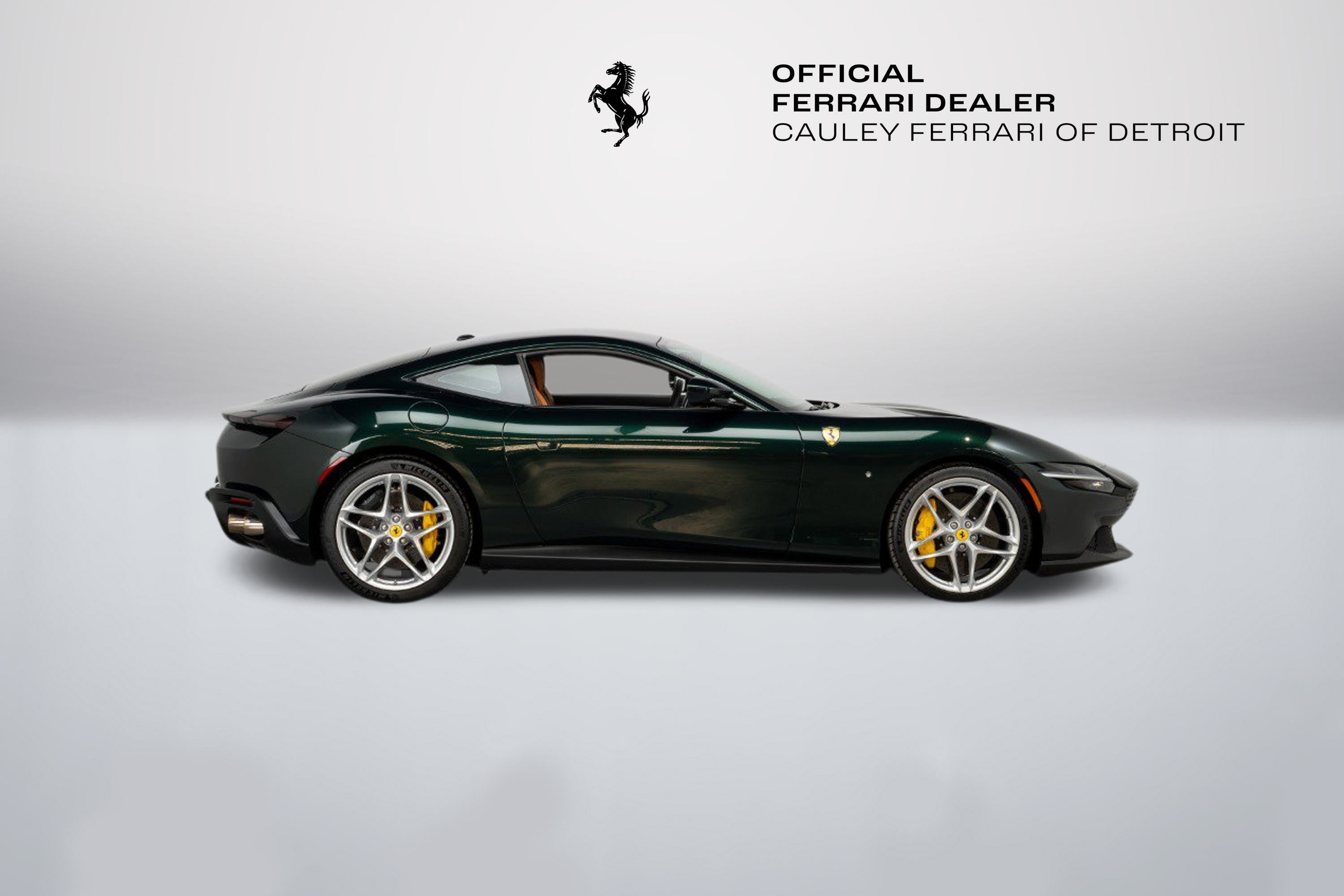 Cauley Ferrari of Detroit is excited to offer this stunning Roma finished in the 2-Layer custom color Verde Zeltweg over a Cuoio interior. This Roma has only 4,770 miles and is in very nice condition. This Roma comes with Yellow Brake calipers, Scuderia Ferrari Shields, Michelin Tires, Full Electric Seats, and much more. The Verde Zeltweg Paint is breathtaking in person, and if you were to order that color today on a new Ferrari model, it would cost you more than $37,000. We are selling this Roma as a Ferrari Certified Pre-owned car, and it will come with at least 2 years of Ferrari Power Warranty Coverage. The seven-year free scheduled maintenance is good until 5/20/2029. Give us a call at 248-538-9600 to set up an appointment for a closer look or stop by our showroom in West Bloomfield, MI. Please ask us about our financing and leasing options available through Ferrari Financial Services (FFS). We can offer you monthly financing as far out as 84 months, Balloon financing up to 60 months, as well as Open-End Leasing scenarios. FFS is available on all new and pre-owned Ferrari models. These flexible payment options really make getting into a Ferrari easier than ever before. Let us show you how.