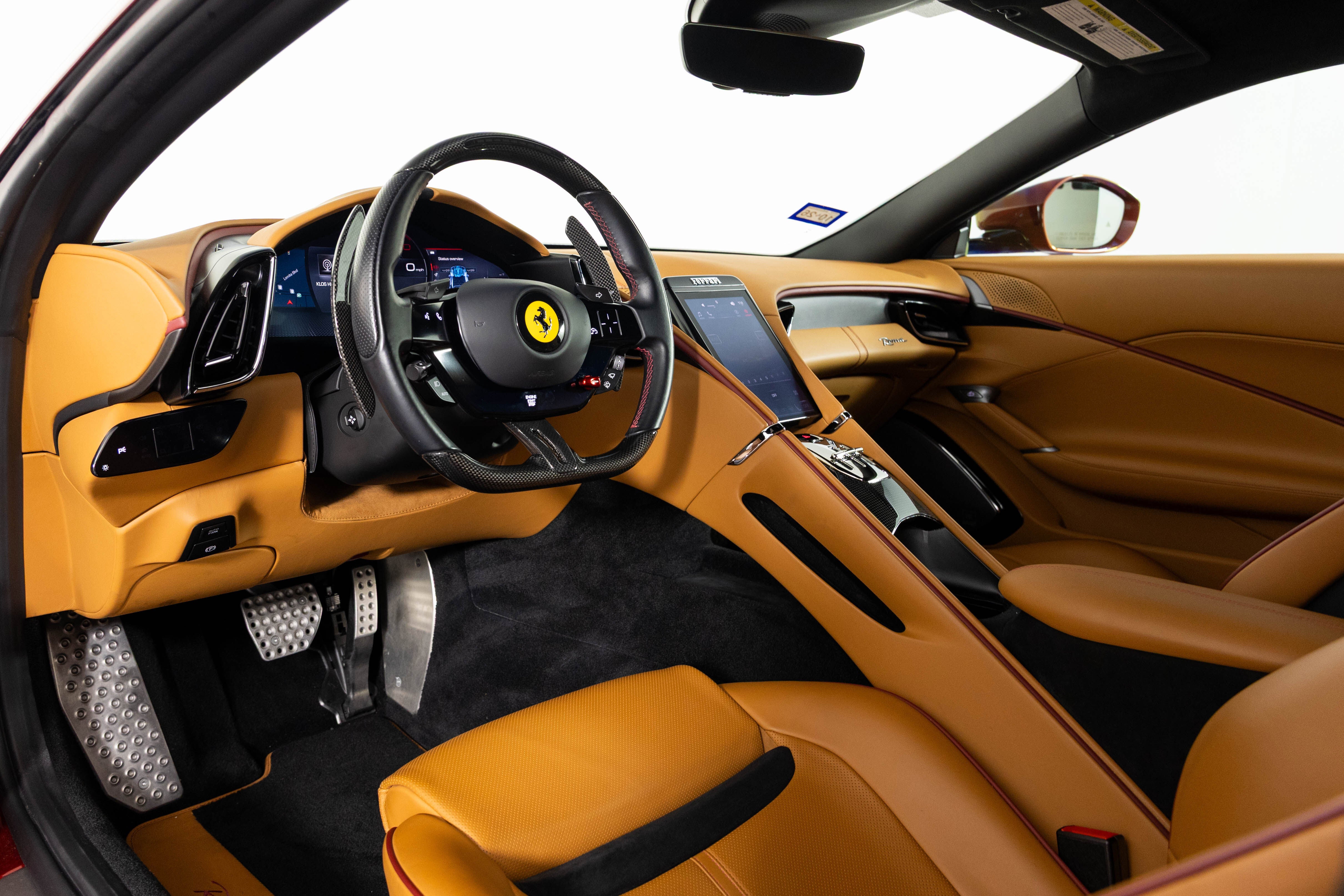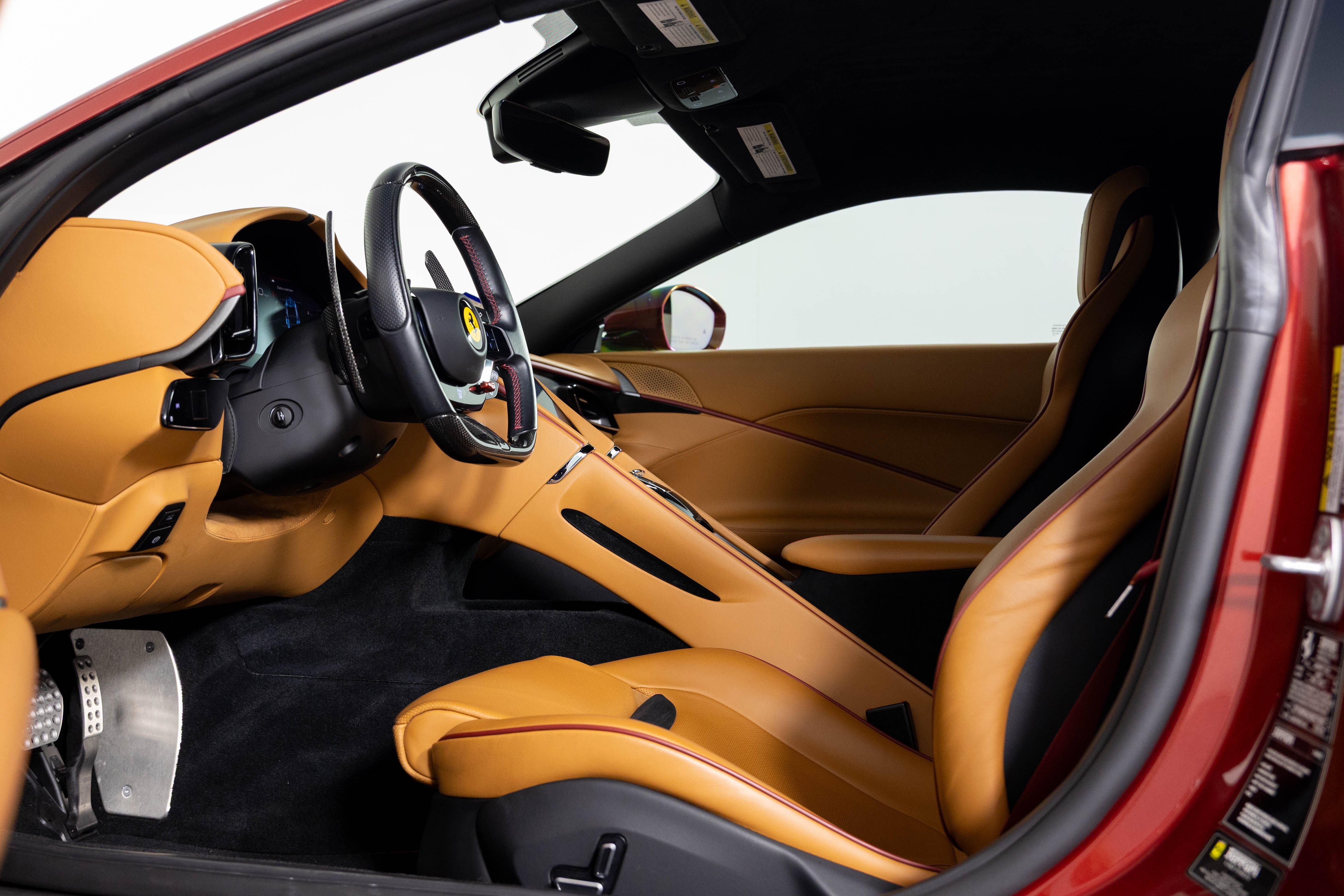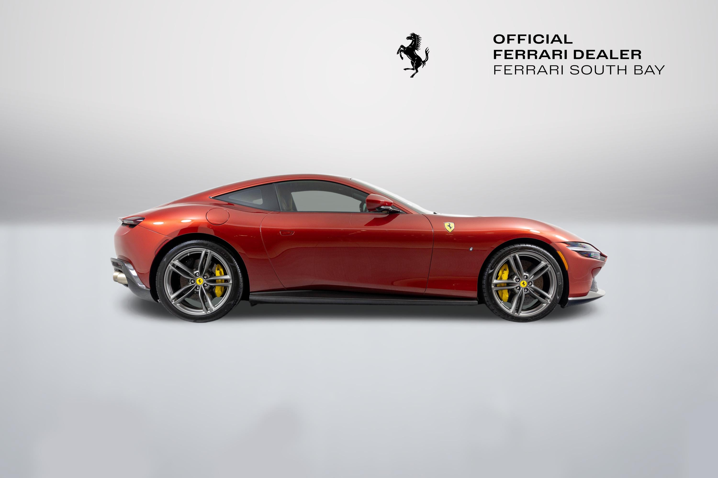 Ferrari South Bay is happy to bring to market this VERY well-equipped Roma, finished in gorgeous Rosso Fiorano, over Cuoio Leather interior with Bordeaux Stitching and Leather Accents. It's a beautiful opportunity for you to experience Ferrari's La Nuovo Dolce Vita accompanied by the glorious symphony of a twin turbocharged Ferrari V8 in a very elegant coupe that's sure to turn heads at your favorite restaurant or on the red carpet. The exterior Rosso Fiorano finish is accented by Sport Tailpipe Tips in Matte Aluminum. Carbon Fiber finishes the Active Aero Spoiler, Diffuser, Underdoor Trim, and Front Spoiler. Carbon Ceramic brakes with Yellow Calipers sit behind 20 Forged Wheels finished in Matte Grigio Corsa. Scuderia Ferrari Shields grace the front fenders. The entire car has been covered with Paint Protective Film since new, ensuring your beautiful car remains stunning for years to come. Inside, you'll find rich Cuoio leather with Bordeaux Leather Cockpit Bands and Stitching. Bordeaux stitching is employed on all surfaces, including the Cavallinos embroidered on the headrests of the Fully Electric and Ventilated Seats. The Advanced Front Driving Camera Rear Radar and Surround View Cameras help with tight maneuvers, while Blind Spot Detection assures safe lane-changes on the highway. The car's Magneride Suspension adapts to tame any road surface at the press of the Manettino on the Carbon Fiber Steering wheel (which is fitted with Ferrari's signatured LED Shift Lights). When your driving isn't entertaining enough, there's JBL Premium Sound. The Folding Rear Seat Passthrough allows room for your skis on the way to the slopes, and the Wireless Smartphone Charger and Interface are welcome conveniences. This 2022 Ferrari Roma is offered with both keys, tools, books, battery tender and cover. As a Ferrari Certified Pre-Owned vehicle, it has passed Ferrari's rigorous 101-point inspection and is eligible for a two-year warranty extension at time of purchase. Ferrari's Genuine Maintenance Program will take care of all annual services through April 22, 2029. Please contact our knowledgeable sales staff if you'd like further information or to set up a time to stop in and take a look! Ferrari South Bay is proudly part of Holand Automotive Group, one of North America’s leading luxury automotive retailers. We offer nationwide shipping, trade-in opportunities, financing, client consignments, and world-class delivery service. Contact us today to explore ownership of this remarkable Ferrari. Please visit us at 23305 Hawthorne Blvd, Torrance, CA 90505, or call us at (888) 578-8767.