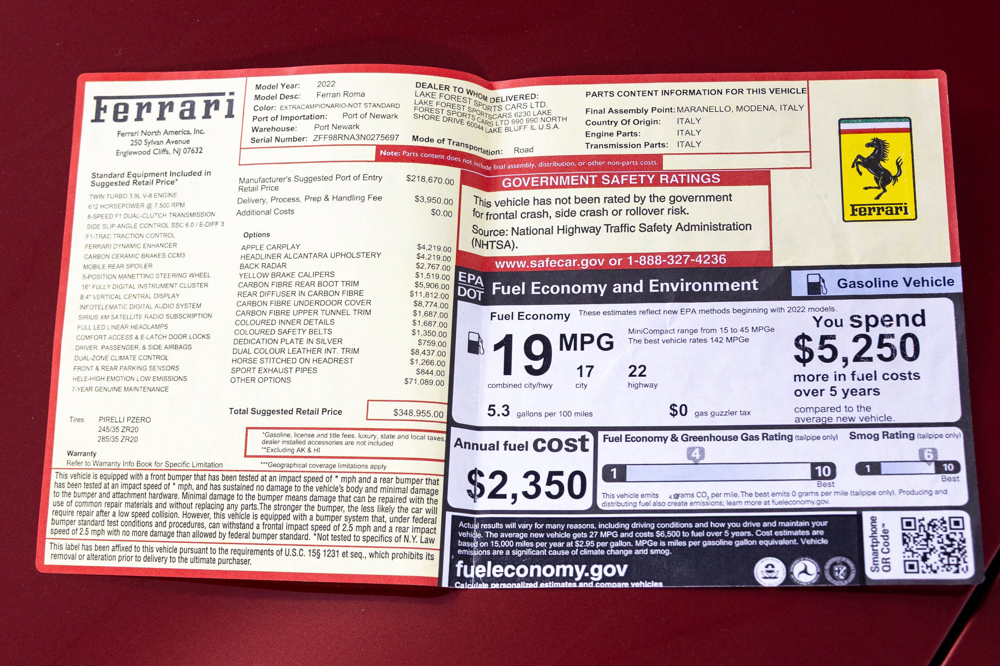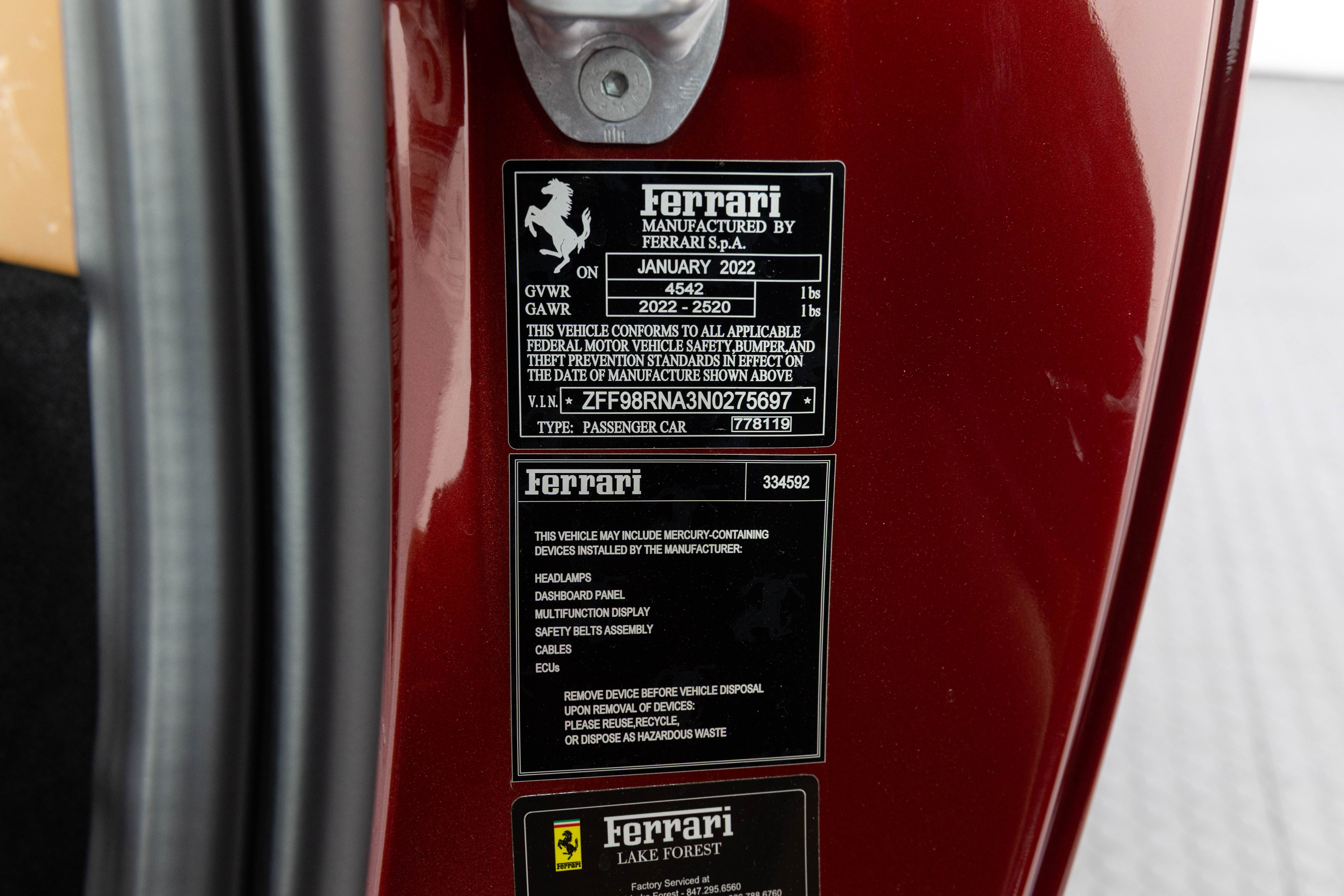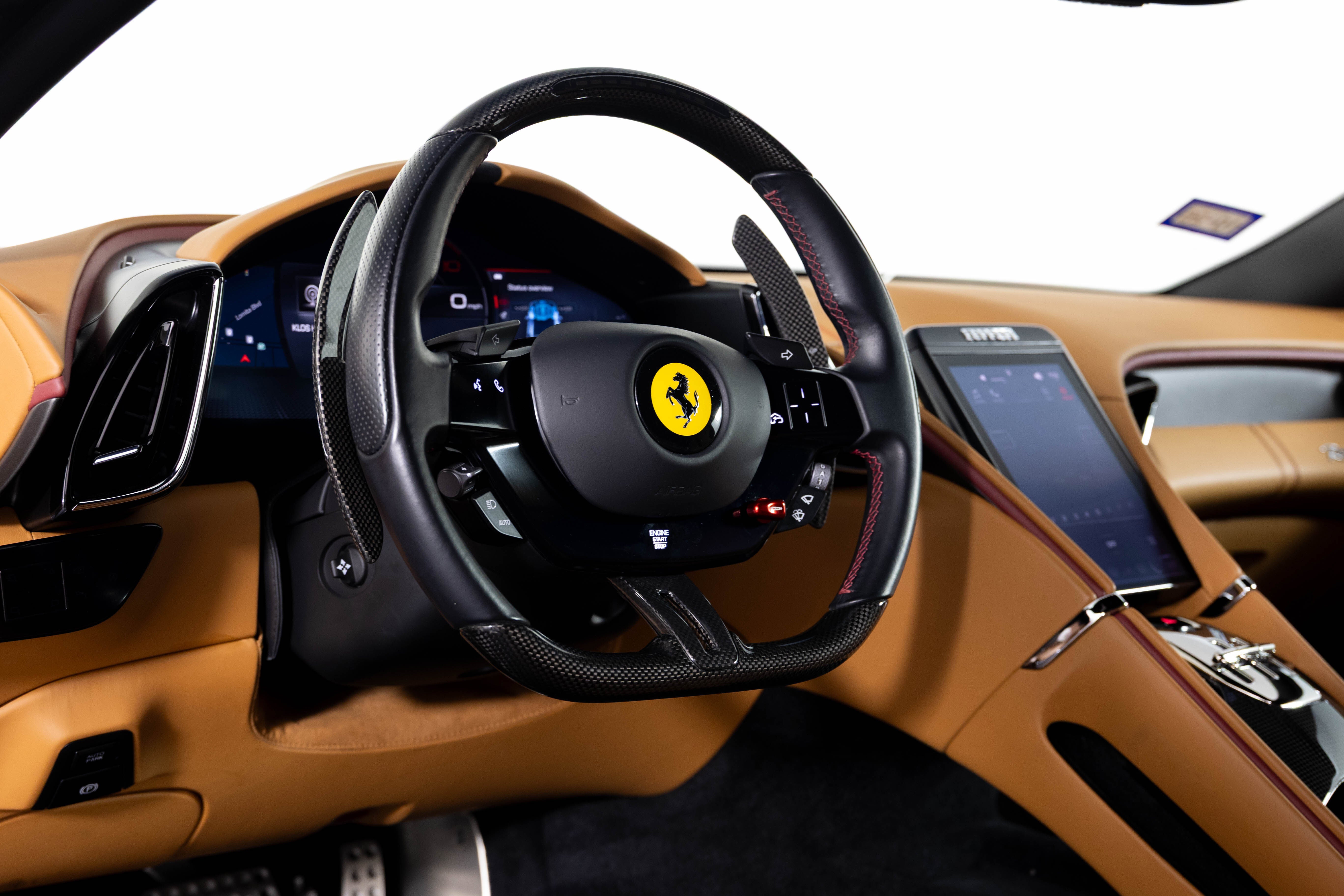 Ferrari South Bay is happy to bring to market this VERY well-equipped Roma, finished in gorgeous Rosso Fiorano, over Cuoio Leather interior with Bordeaux Stitching and Leather Accents. It's a beautiful opportunity for you to experience Ferrari's La Nuovo Dolce Vita accompanied by the glorious symphony of a twin turbocharged Ferrari V8 in a very elegant coupe that's sure to turn heads at your favorite restaurant or on the red carpet. The exterior Rosso Fiorano finish is accented by Sport Tailpipe Tips in Matte Aluminum. Carbon Fiber finishes the Active Aero Spoiler, Diffuser, Underdoor Trim, and Front Spoiler. Carbon Ceramic brakes with Yellow Calipers sit behind 20 Forged Wheels finished in Matte Grigio Corsa. Scuderia Ferrari Shields grace the front fenders. The entire car has been covered with Paint Protective Film since new, ensuring your beautiful car remains stunning for years to come. Inside, you'll find rich Cuoio leather with Bordeaux Leather Cockpit Bands and Stitching. Bordeaux stitching is employed on all surfaces, including the Cavallinos embroidered on the headrests of the Fully Electric and Ventilated Seats. The Advanced Front Driving Camera Rear Radar and Surround View Cameras help with tight maneuvers, while Blind Spot Detection assures safe lane-changes on the highway. The car's Magneride Suspension adapts to tame any road surface at the press of the Manettino on the Carbon Fiber Steering wheel (which is fitted with Ferrari's signatured LED Shift Lights). When your driving isn't entertaining enough, there's JBL Premium Sound. The Folding Rear Seat Passthrough allows room for your skis on the way to the slopes, and the Wireless Smartphone Charger and Interface are welcome conveniences. This 2022 Ferrari Roma is offered with both keys, tools, books, battery tender and cover. As a Ferrari Certified Pre-Owned vehicle, it has passed Ferrari's rigorous 101-point inspection and is eligible for a two-year warranty extension at time of purchase. Ferrari's Genuine Maintenance Program will take care of all annual services through April 22, 2029. Please contact our knowledgeable sales staff if you'd like further information or to set up a time to stop in and take a look! Ferrari South Bay is proudly part of Holand Automotive Group, one of North America’s leading luxury automotive retailers. We offer nationwide shipping, trade-in opportunities, financing, client consignments, and world-class delivery service. Contact us today to explore ownership of this remarkable Ferrari. Please visit us at 23305 Hawthorne Blvd, Torrance, CA 90505, or call us at (888) 578-8767.