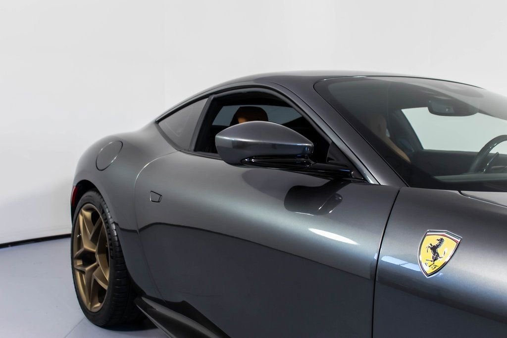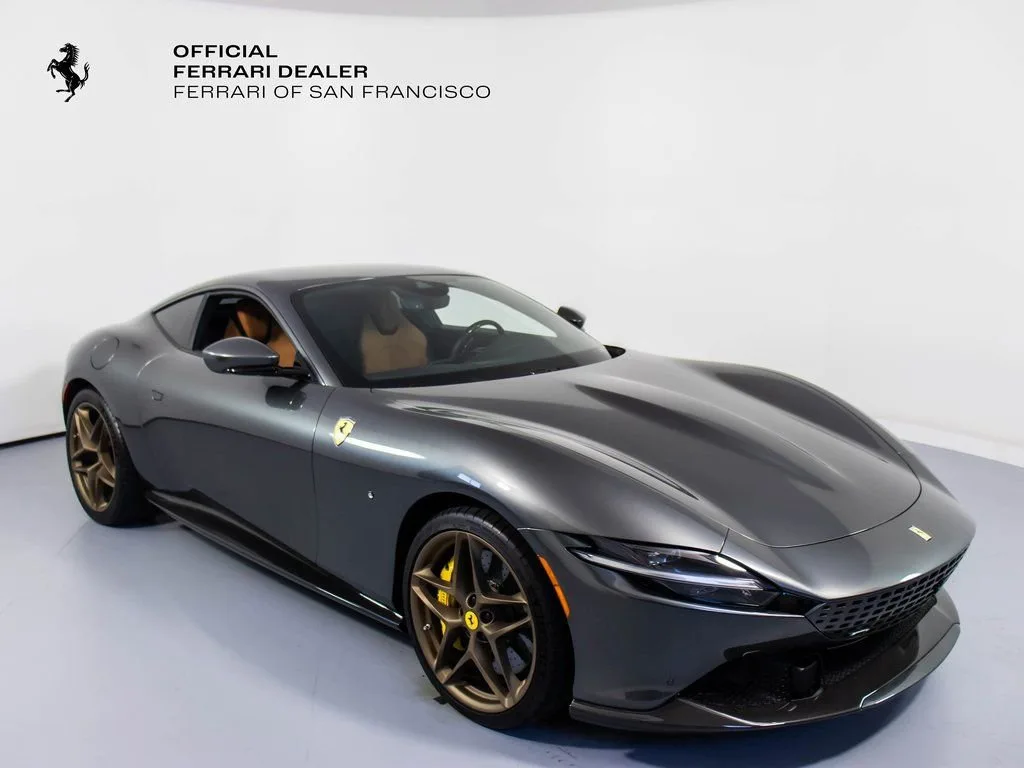 303903 Exterior: Grigio Silverstone Interior: Cuoio Mats: Nero 2024 Ferrari Roma Options: Front Radar with ACC Back Radar Yellow Brake Calipers Rear Diffuser in Carbon Fiber Carbon Fiber Under Door Cover Upper Part of Center Console in Carbon Fiber Cavallino Stitched on Headrest Nero Black Tailpipe Tips Advanced Front Driving Camera Carbon Fiber Front Spoiler Home Link Carb. Fib. Steering Wheel + LEDS 'Scuderia Ferrari' Shields Magneride Dual Mode Suspension Electrochromic Rear-View Mirror Matte Grey Wheels Full Electric Seats Foldable Rear Seat Backrests Smartphone Interface Colored Special Stitching O.R. in Nero Michelin Tires Wireless Smartphone Charger This elegant 2024 Ferrari Roma is beautifully finished in Grigio Silverstone, showcasing a refined contrast against its luxurious Cuoio interior and Nero mats. Combining timeless sophistication with cutting-edge performance, this Roma is equipped with carbon fiber accents throughout, including the front spoiler, under door covers, and center console, emphasizing its sporty character. The Cavallino stitched on the headrests in Nero and colored special stitching add subtle bespoke touches, while modern comforts like full electric seats, foldable rear seat backrests, Apple CarPlay, and wireless smartphone charging ensure an elevated driving experience. Performance enhancements include yellow brake calipers, Magneride dual mode suspension, and Matte Grey wheels wrapped in Michelin tires, blending style with precision handling. With advanced technology such as front and back radar, adaptive cruise control, advanced front driving camera, and electrochromic rear-view mirror, this Roma represents the perfect harmony of Italian luxury, innovation, and grand touring performance.