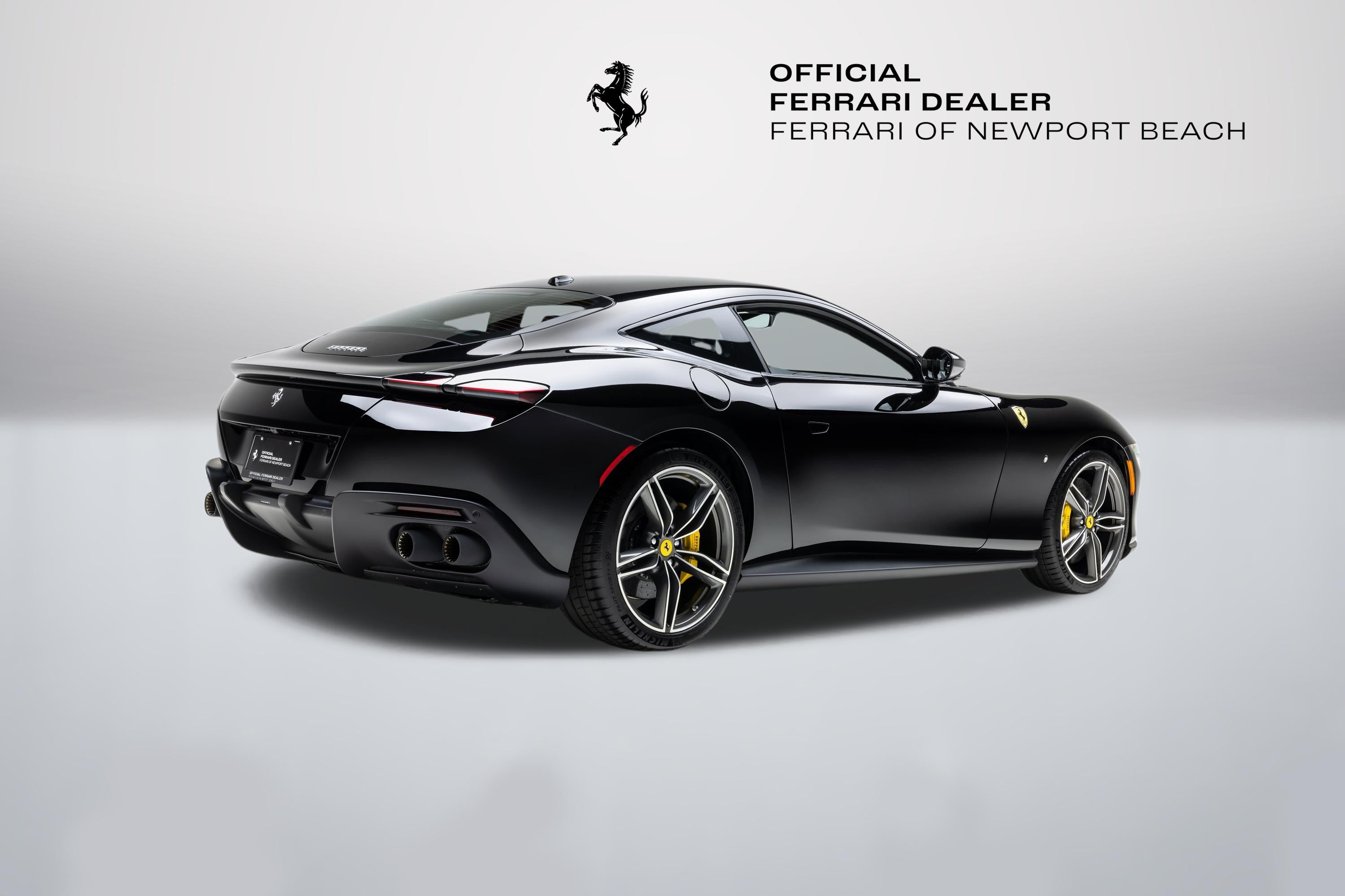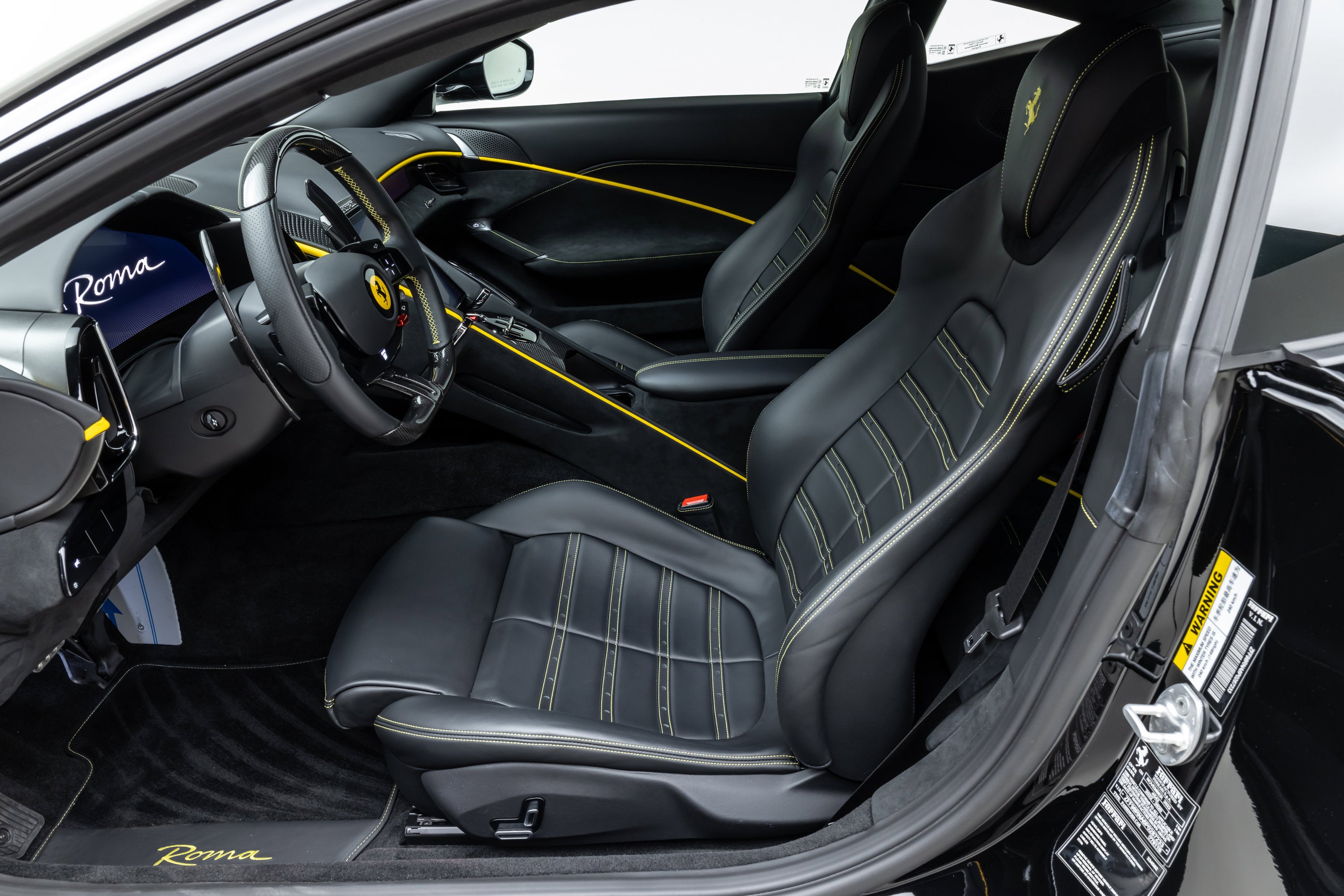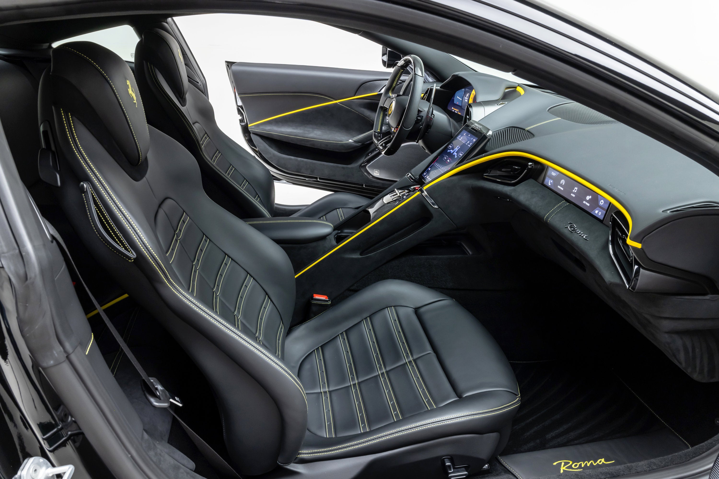 ===== 2023 Ferrari Roma ===== Nero over Nero with Giallo Accents 464 Miles | VIN: ZFF98RNA6P0287233 Finished in Nero, this 2023 Ferrari Roma presents an exceptionally clean and well-optioned example with just 464 miles. The deep black exterior highlights the Roma's elegant, minimalist design, while Giallo accents throughout provide subtle contrast and a classic Ferrari touch. The interior is trimmed in Nero leather with Giallo stitching, Cavallino embroidery, and matching details, creating a cohesive and driver-focused cabin. ==== Factory Options & Highlights (from window sticker) ==== * Carbon Fiber Steering Wheel with LEDs * Carbon Fiber Dashboard Inserts * Carbon Fiber Upper Tunnel Trim * Daytona Style Seats * Passenger Display Additional features include: